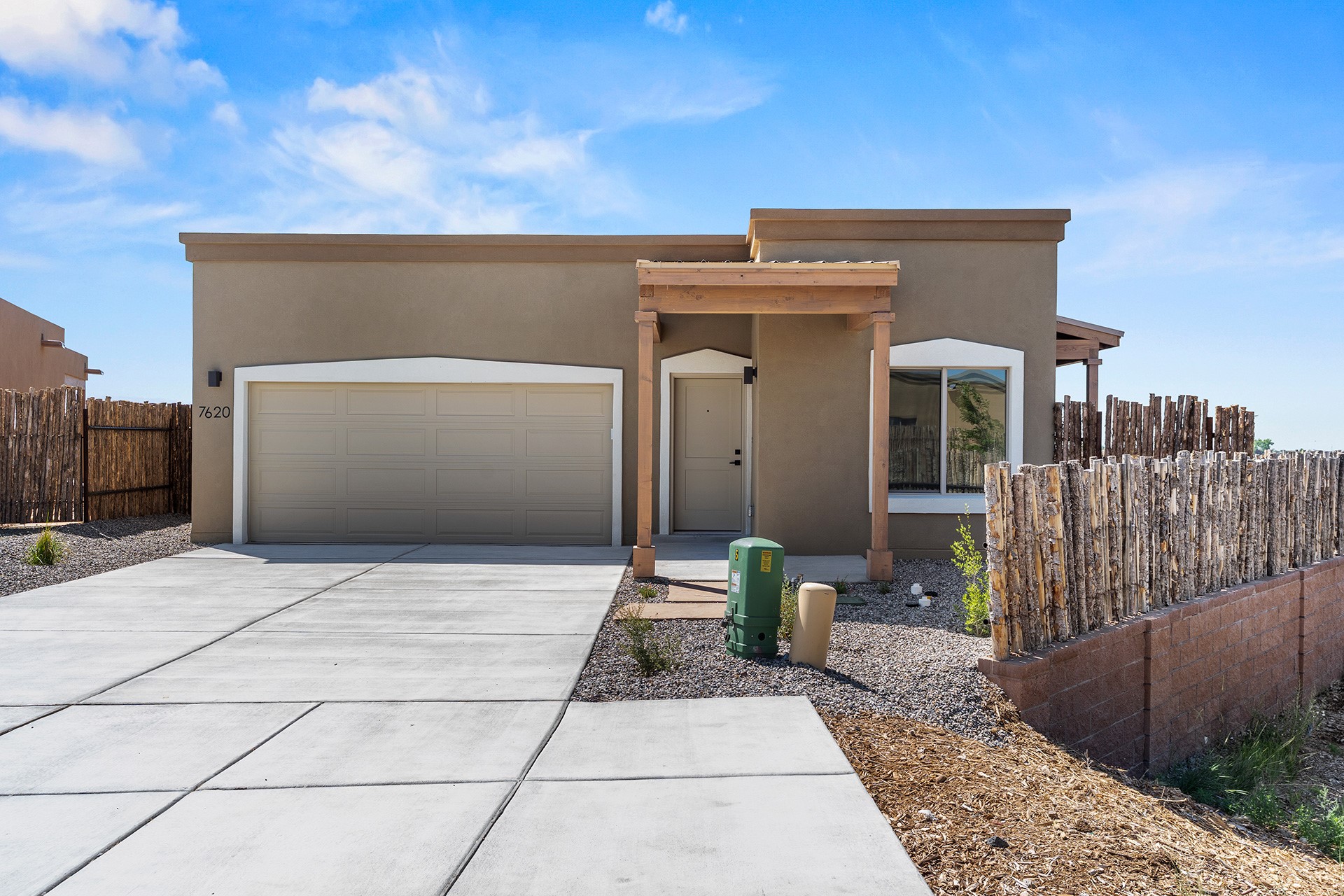 **Newly Completed and Move-In Ready** Introducing El Sol, an exceptional 3-bedroom, 2-bathroom residence situated on a premium corner lot with breathtaking views of the Sandia Mountains. This home boasts the most upgrades in the community. Highlights include an expansive side patio to enhance the Sandia vistas, 42" upgraded kitchen cabinets, a stylish kitchen backsplash, enhanced quartz countertops, tile flooring in the great room, premium carpeting in the bedrooms, upgraded tile in all tiled areas, and luxurious owner's bath with an upgraded shower surround.The great room has soaring 9-foot vaulted ceilings bathed in natural light. The gourmet kitchen features upgraded quartz countertops, stainless steel appliances, and a pantry. Bedrooms offer 9-foot ceilings, ceiling fans, and plush carpeting, with the owner's suite boasting a walk-in closet. Outdoor living shines with covered portals and a finished insulated garage, while the exterior showcases timeless territorial-style architecture, and decorative lighting. 10-year roof warranty. Arroyo Oeste offers thoughtfully designed residences ranging from 1,106 to 1,783 square feet, featuring modern and traditional styles with stunning mountain views. Choose from two to four-bedroom floor plans, with options for single-story or two-story layouts. Each home boasts spacious kitchens with breakfast bars, solid wood cabinetry, stainless steel appliances, quartz countertops, and tile flooring. The community also provides low-maintenance front yard landscaping, private outdoor spaces, and access to nearby walking trails.