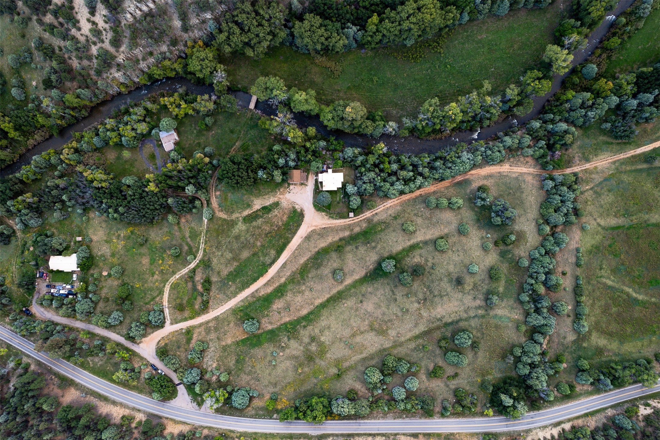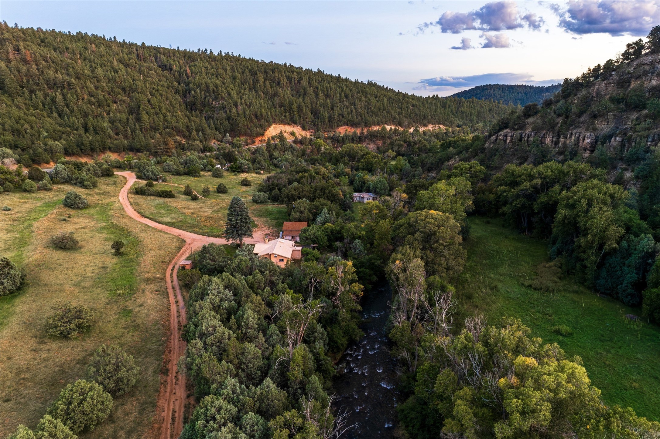ONE OF A KIND Pecos River front property located in the heart of the Pecos Canyon offered for sale for the first time. The rareness of this listing is profound. The land includes several meadows, dramatic rock outcroppings, at least 856 feet of the Pecos River (both sides), excellent solar gain, first class bridge over the river, and sloping treed hillside adjoining the Santa Fe National Forest. Ideal for quality fishing in one of the premiere New Mexico rivers on your own private stretch. The potential for horses or other livestock is profound with ample space for a barn and or corrals. Additionally there is a modest 2 bedroom, 2 bath house with covered portal, sunroom, private well and oversize 2 car garage. For folks seeking a private, quality destination property less than 30 minutes to Santa Fe consider this listing.