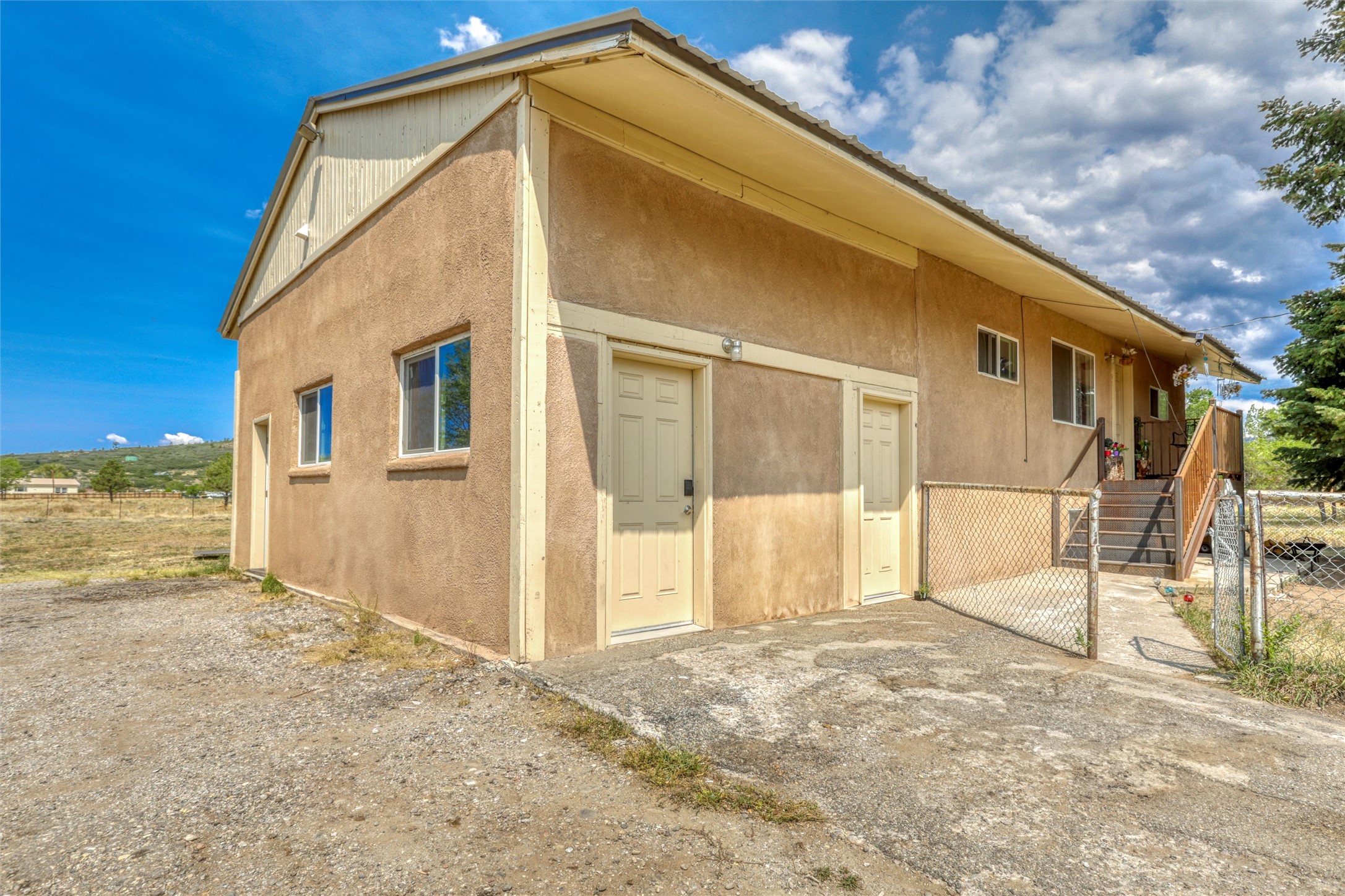 This duplex is fully rented and more than pays for itself. It has a 3 bedroom, 1 bath on the first floor and a 2 bedroom, 1 bath on the 2nd floor. The garage was recently converted to a storage room with a washer / dryer hookup, which is also rented. Exterior improvements include new stucco and paint, steel constructed stairs on the front and a newly installed roof with warranty. The property includes a half acre of land on Highway 17 in the Village of Chama and is on city utilities and natural gas. With a 1/2 acres there is room for expansion and is conveniently located between downtown Chama and the highway 64/84 intersection. Some photos show virtual staging.