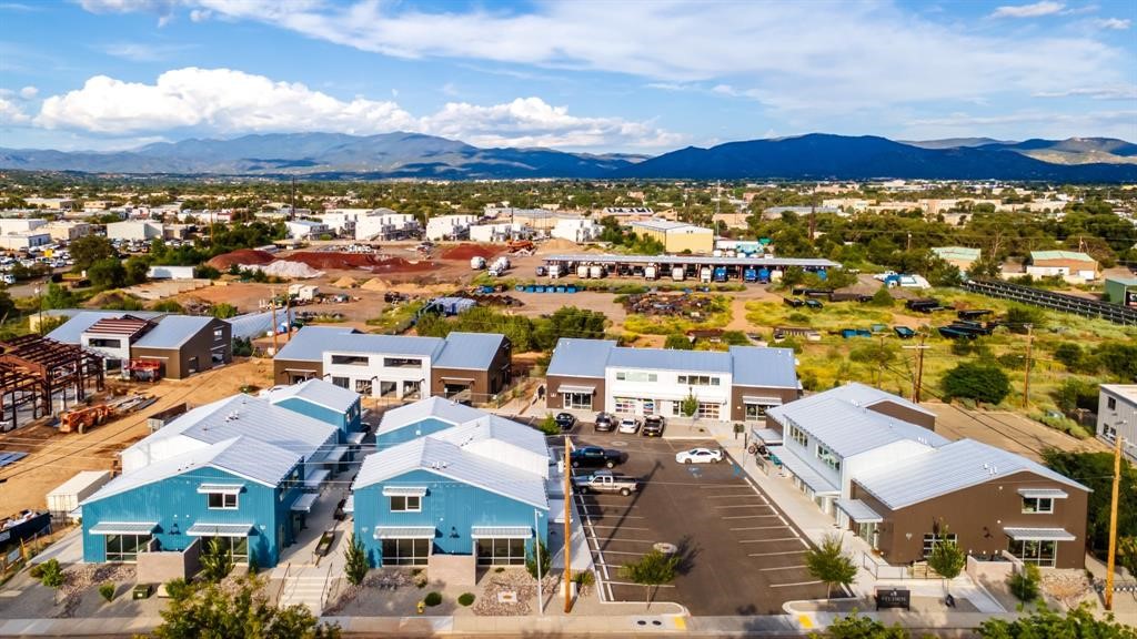 The Studios at Parkway is Santa Fe's newest commercial, industrial, and flex-use condominium development, ideally located in the burgeoning Warehouse and Arts District of Siler/Rufina. Designed to inspire creativity and support growth, the community will total 29 units, with Phase II's 14 units scheduled for completion in Spring 2026. Already home to thriving businesses including Wild Leaven, F1 Cyclery, and 2Faded Barbershop, The Studios offers durable metal buildings with an industrial aesthetic and contemporary design. Each unit features 1,677 heated square feet with soaring 24-foot ceilings, expansive storefront windows, and roll-up aluminum glass garage doors that flood the interiors with natural light. Thoughtful finishes include polished concrete floors, LED lighting, smooth drywall, and handcrafted steel staircases with oak treads, while provisions are stubbed for kitchens and showers to allow flexible use. Wide sidewalks provide opportunities for seating, shipping, and receiving, and the landscaped grounds create an inviting atmosphere for both visitors and tenants. Zoned I-1, the property accommodates a wide range of uses--from offices and galleries to light industry, wellness studios, and artisan workshops--and with solar-ready rooftops and its location within a Federal Opportunity Zone, The Studios at Parkway presents both a dynamic environment for businesses and a compelling opportunity for investors. Multiple units can be combined together for larger spaces.
