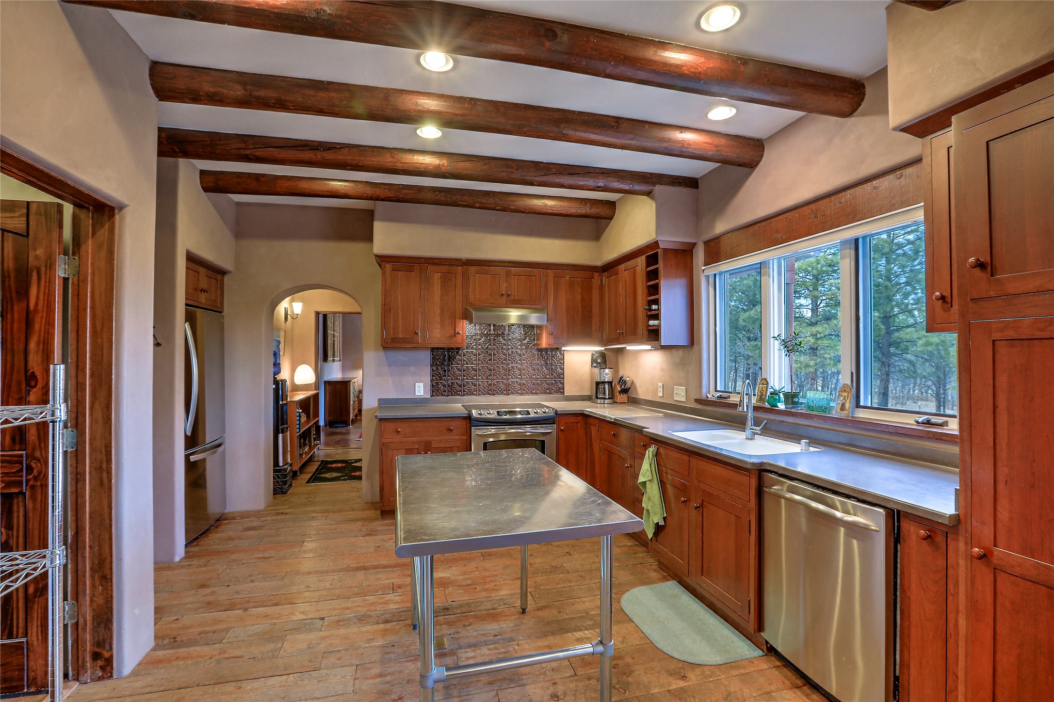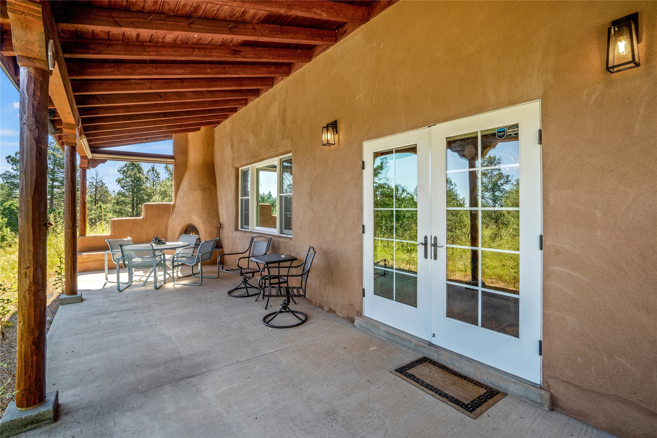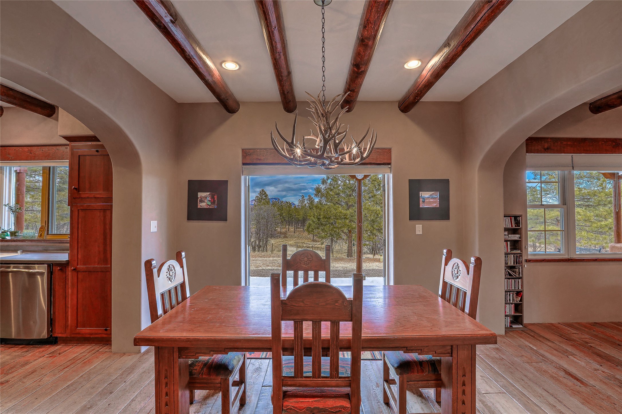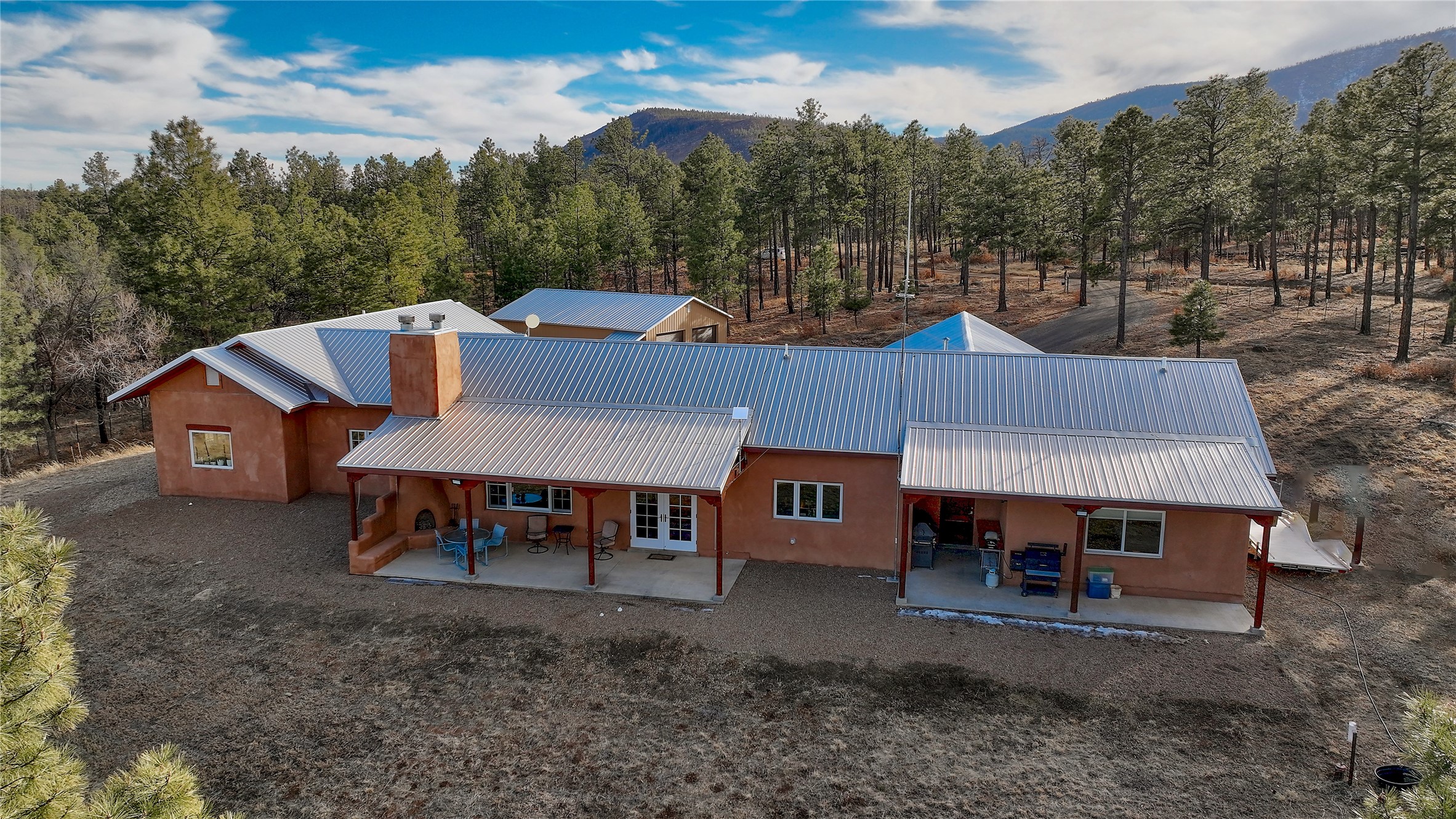 Price reduced by motivated sellers! This stunning custom-built 3,155 square-foot Northern New Mexico style home is situated on 13 beautiful, forested acres near Las Vegas, NM. Built by Knutson Construction in 2010, this three bedroom, two bath, two half bath house features Insulated Concrete Form construction with foot-thick walls and a standing seam metal roof, ensuring maximum durability and energy efficiency. The interior is highlighted by 9' ceilings with wood vigas, radiant in-floor heat, beautiful diamond plaster walls, solid Douglas Fir and stained concrete flooring, Cherry Shaker cabinets, Corian countertops, and a kiva fireplace with banco that add a natural feel to the home. French doors open to the back veranda with an outdoor kiva fireplace with bancos and iconic Hermit's Peak as the backdrop.For those needing additional space, the property includes an insulated 28-foot by 38-foot shop--ideal for projects, storing tools, equipment, and vehicles--complete with a commercial-grade walk-in cooler. An attached two-car garage provides further convenience. The property also benefits from a strong well, ensuring reliable water access for the home and landscape. With its modern amenities, natural beauty, and privacy, this home is the perfect retreat for anyone seeking tranquility and a connection to the New Mexico landscape.This Ranchito offers spectacular views of Hermit's Peak and is dotted with majestic Ponderosa Pines and Gambel Oaks, making it a haven for wildlife enthusiasts. Residents can enjoy easy access to the Santa Fe National Forest, which is perfect for horseback riding, ATV adventures, and hiking. The area teems with wildlife, including mule deer, elk, turkey, bears, foxes, coyotes, songbirds, hummingbirds, and raptors, providing an unparalleled connection to nature. The property is located in GMU 46, which offers unlimited landowner elk tags and over-the-counter landowner deer tags. Santillanes Creek Ranch is an ideal property for year-round living or a summer getaway, with the perfect mix of seclusion and convenience.