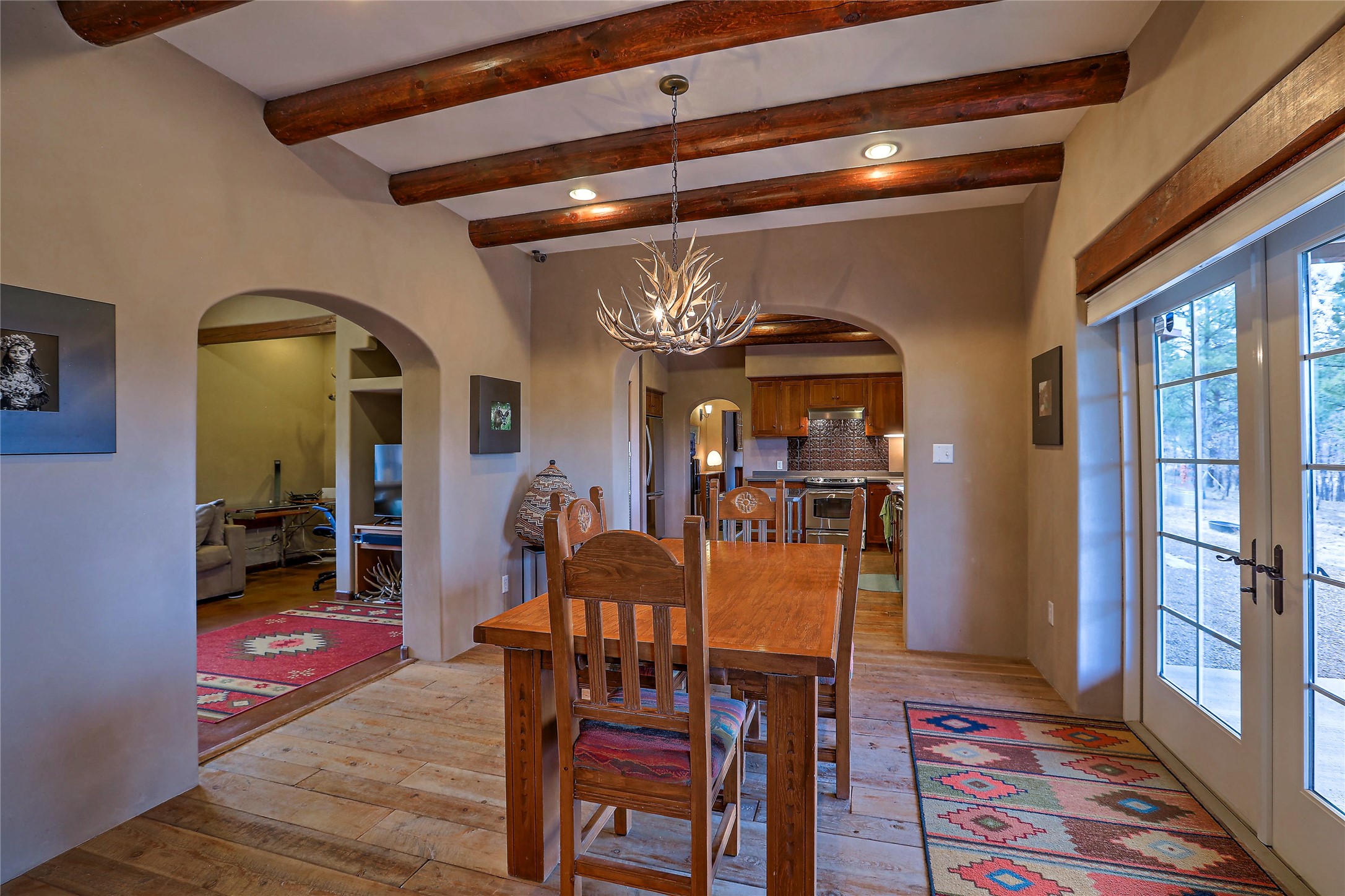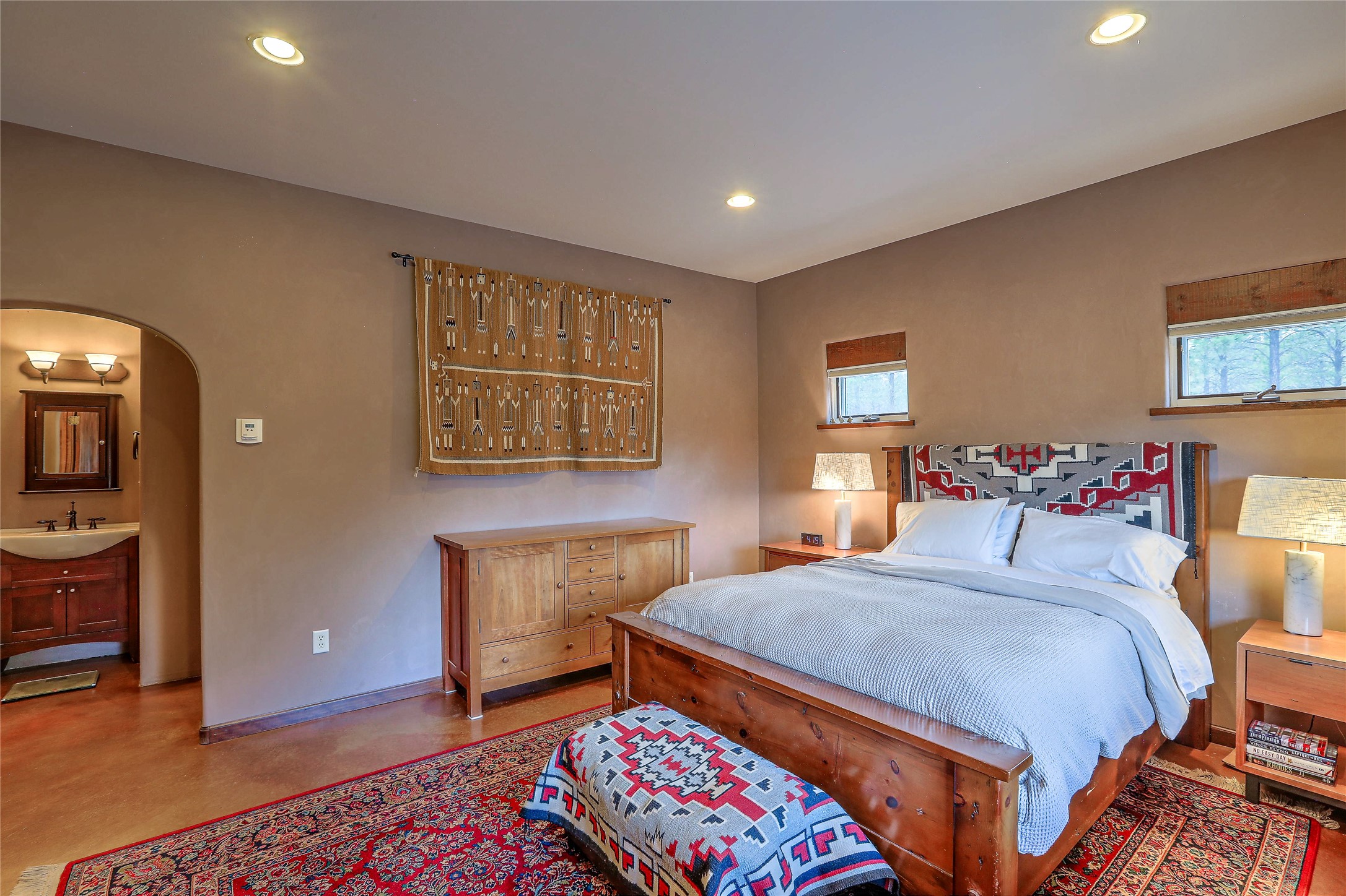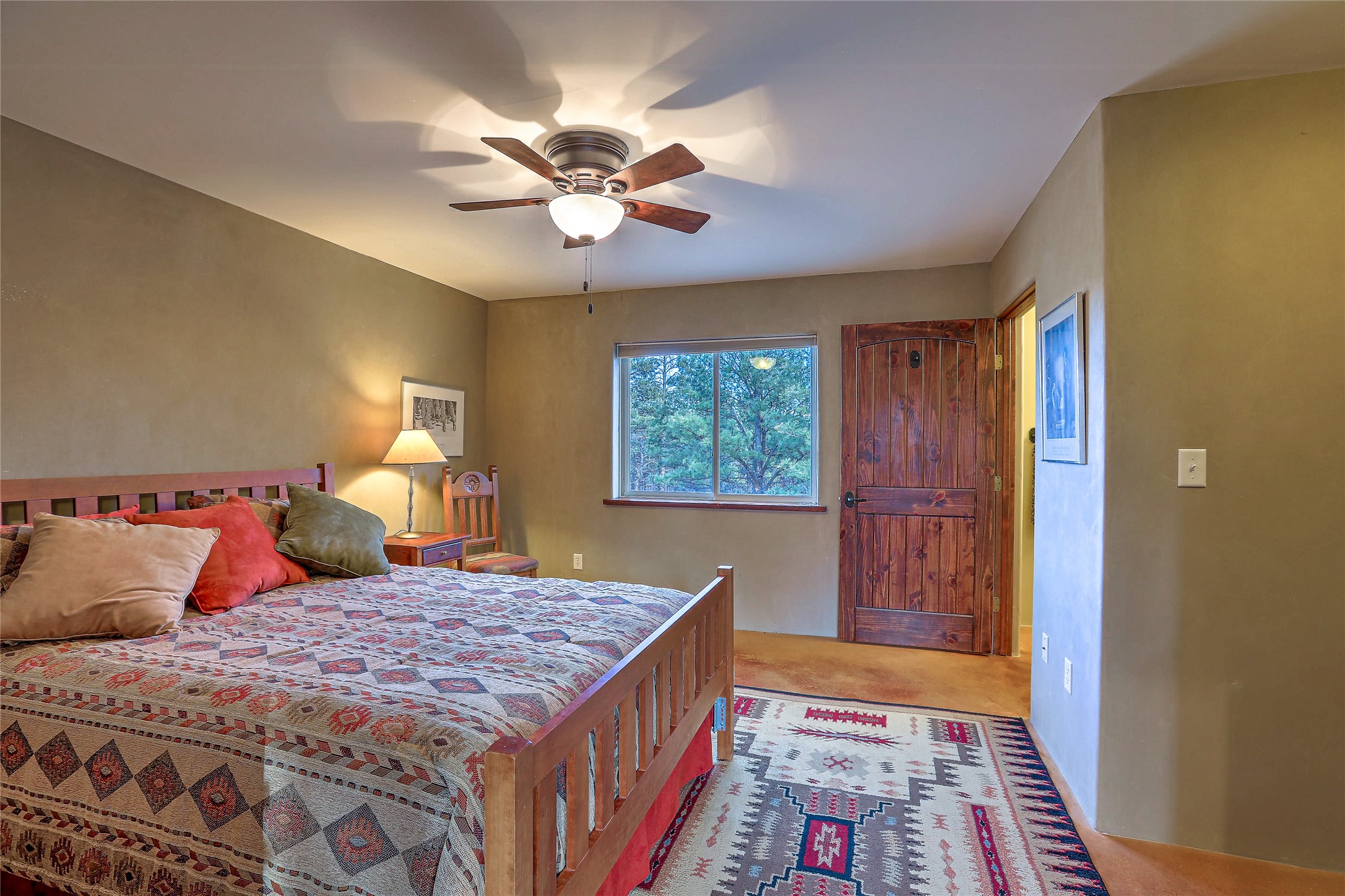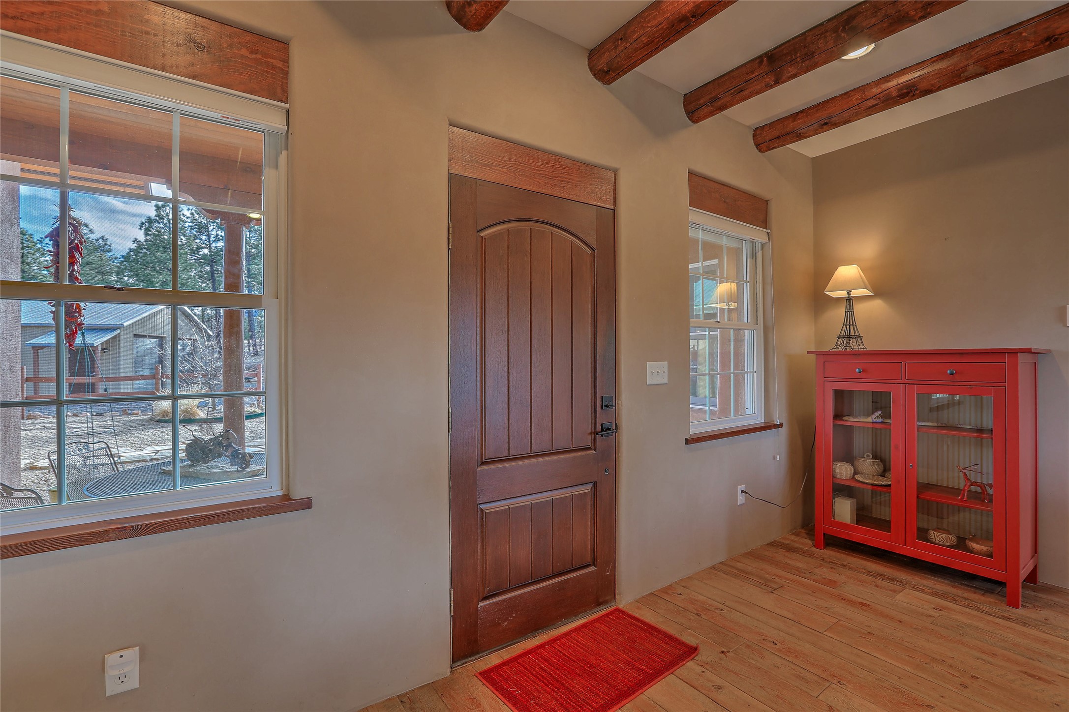 Price reduced by motivated sellers! This stunning custom-built 3,155 square-foot Northern New Mexico style home is situated on 13 beautiful, forested acres near Las Vegas, NM. Built by Knutson Construction in 2010, this three bedroom, two bath, two half bath house features Insulated Concrete Form construction with foot-thick walls and a standing seam metal roof, ensuring maximum durability and energy efficiency. The interior is highlighted by 9' ceilings with wood vigas, radiant in-floor heat, beautiful diamond plaster walls, solid Douglas Fir and stained concrete flooring, Cherry Shaker cabinets, Corian countertops, and a kiva fireplace with banco that add a natural feel to the home. French doors open to the back veranda with an outdoor kiva fireplace with bancos and iconic Hermit's Peak as the backdrop.For those needing additional space, the property includes an insulated 28-foot by 38-foot shop--ideal for projects, storing tools, equipment, and vehicles--complete with a commercial-grade walk-in cooler. An attached two-car garage provides further convenience. The property also benefits from a strong well, ensuring reliable water access for the home and landscape. With its modern amenities, natural beauty, and privacy, this home is the perfect retreat for anyone seeking tranquility and a connection to the New Mexico landscape.This Ranchito offers spectacular views of Hermit's Peak and is dotted with majestic Ponderosa Pines and Gambel Oaks, making it a haven for wildlife enthusiasts. Residents can enjoy easy access to the Santa Fe National Forest, which is perfect for horseback riding, ATV adventures, and hiking. The area teems with wildlife, including mule deer, elk, turkey, bears, foxes, coyotes, songbirds, hummingbirds, and raptors, providing an unparalleled connection to nature. The property is located in GMU 46, which offers unlimited landowner elk tags and over-the-counter landowner deer tags. Santillanes Creek Ranch is an ideal property for year-round living or a summer getaway, with the perfect mix of seclusion and convenience.