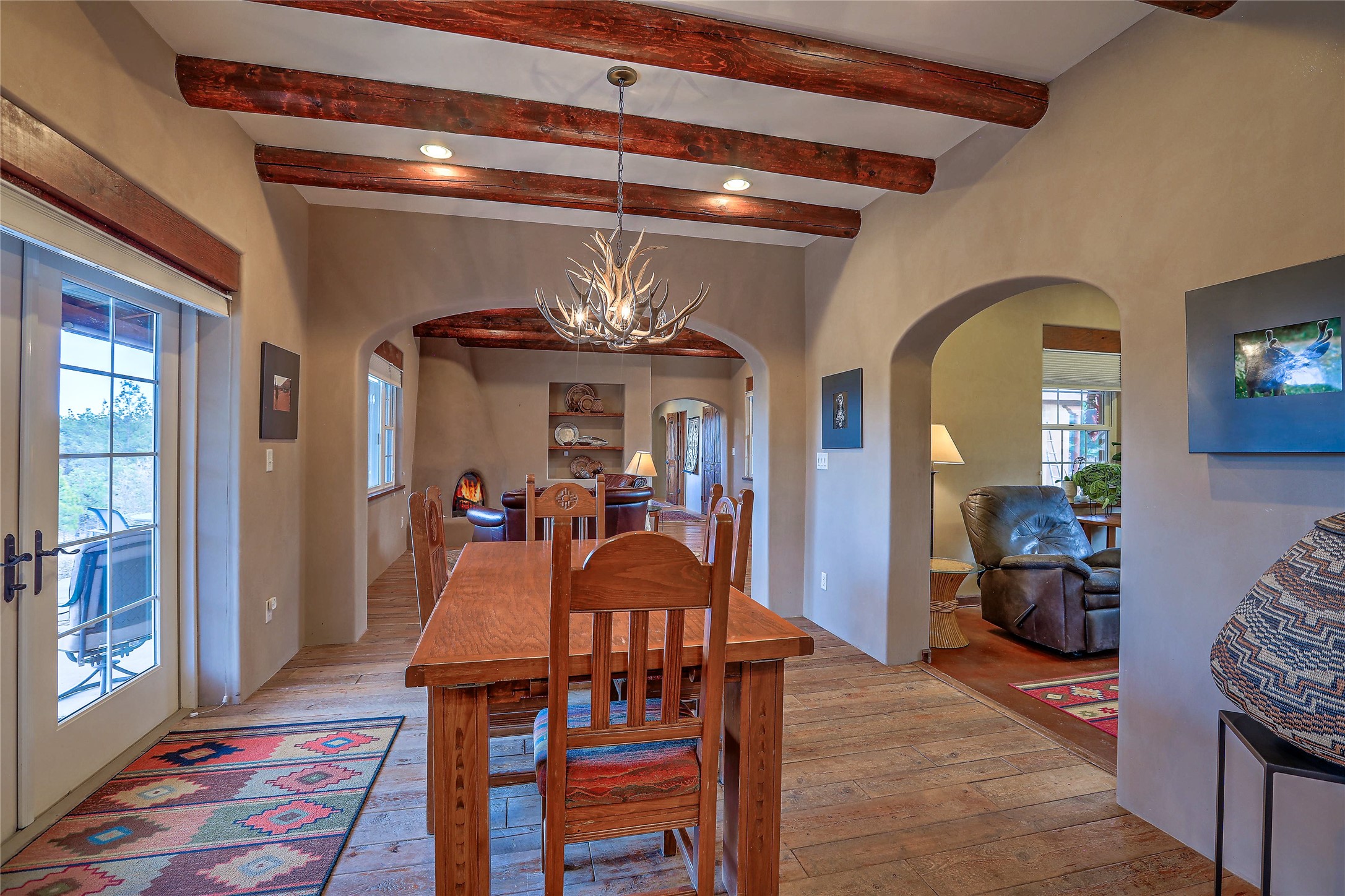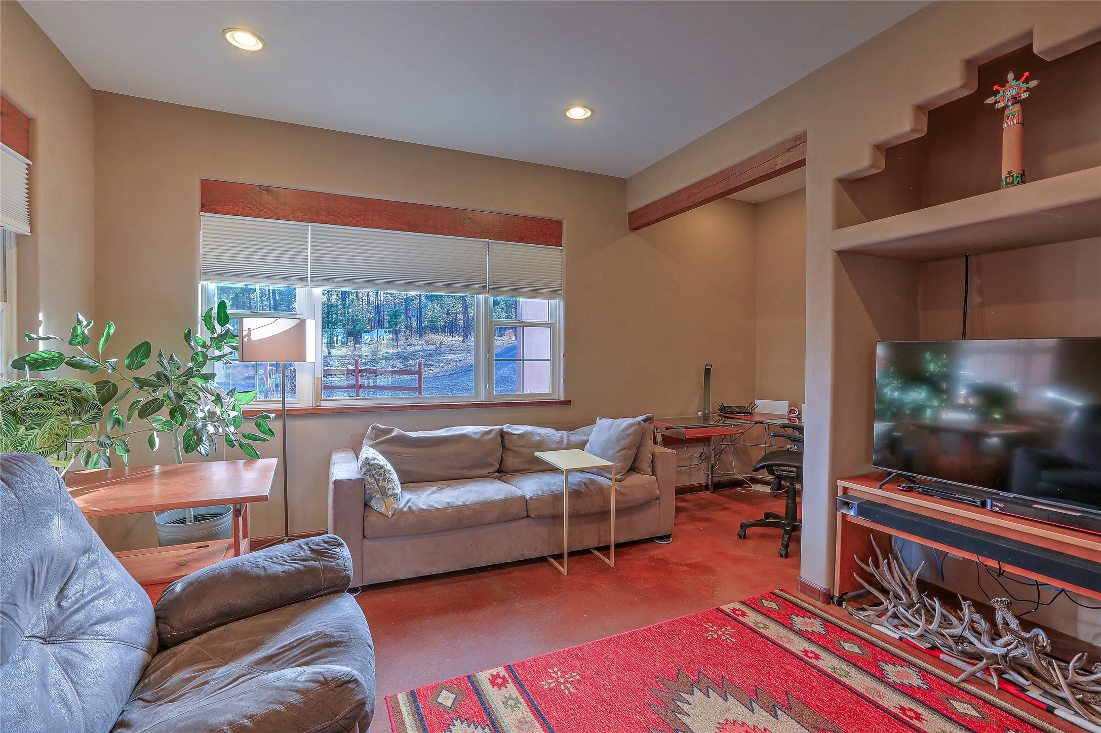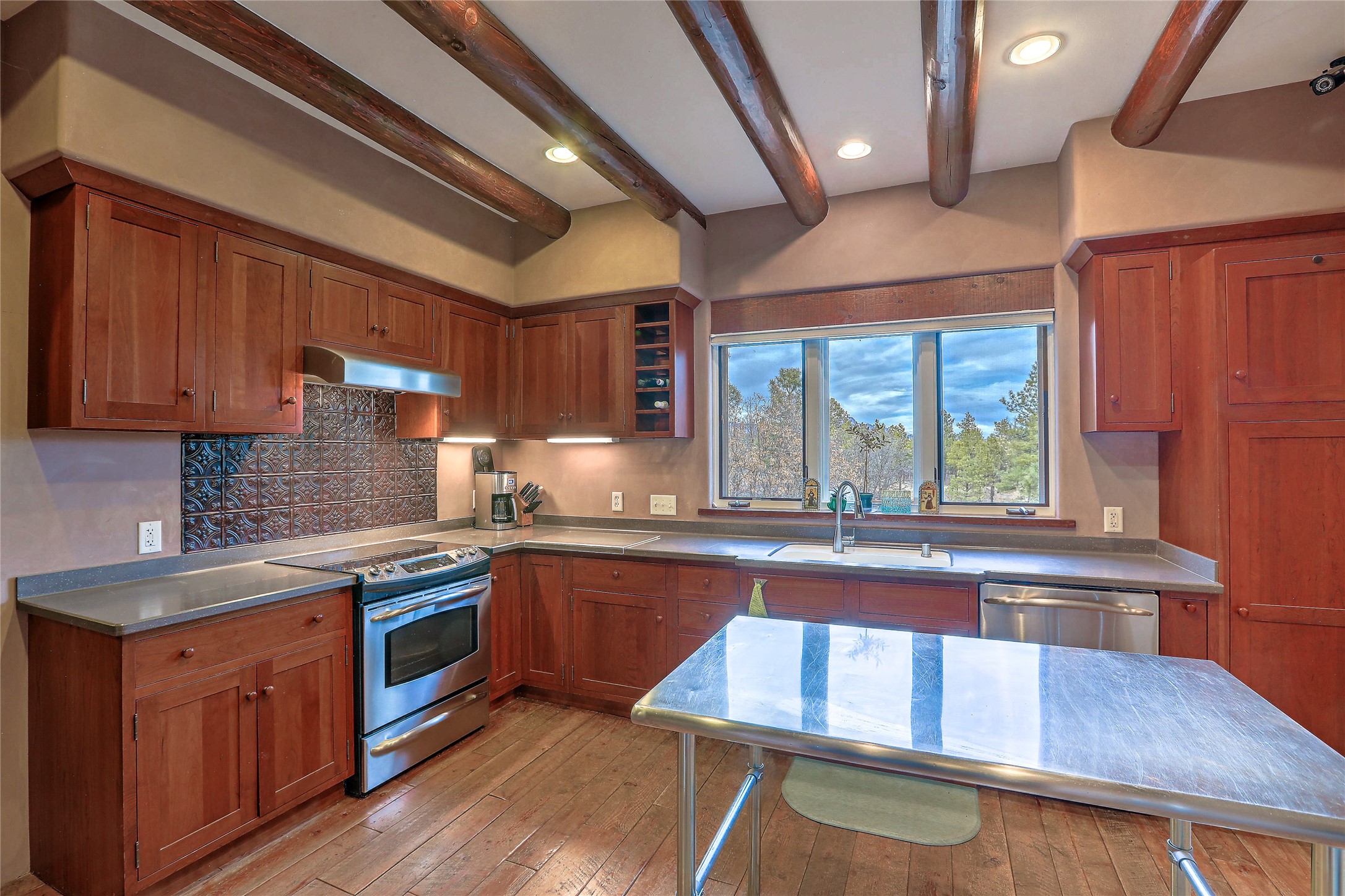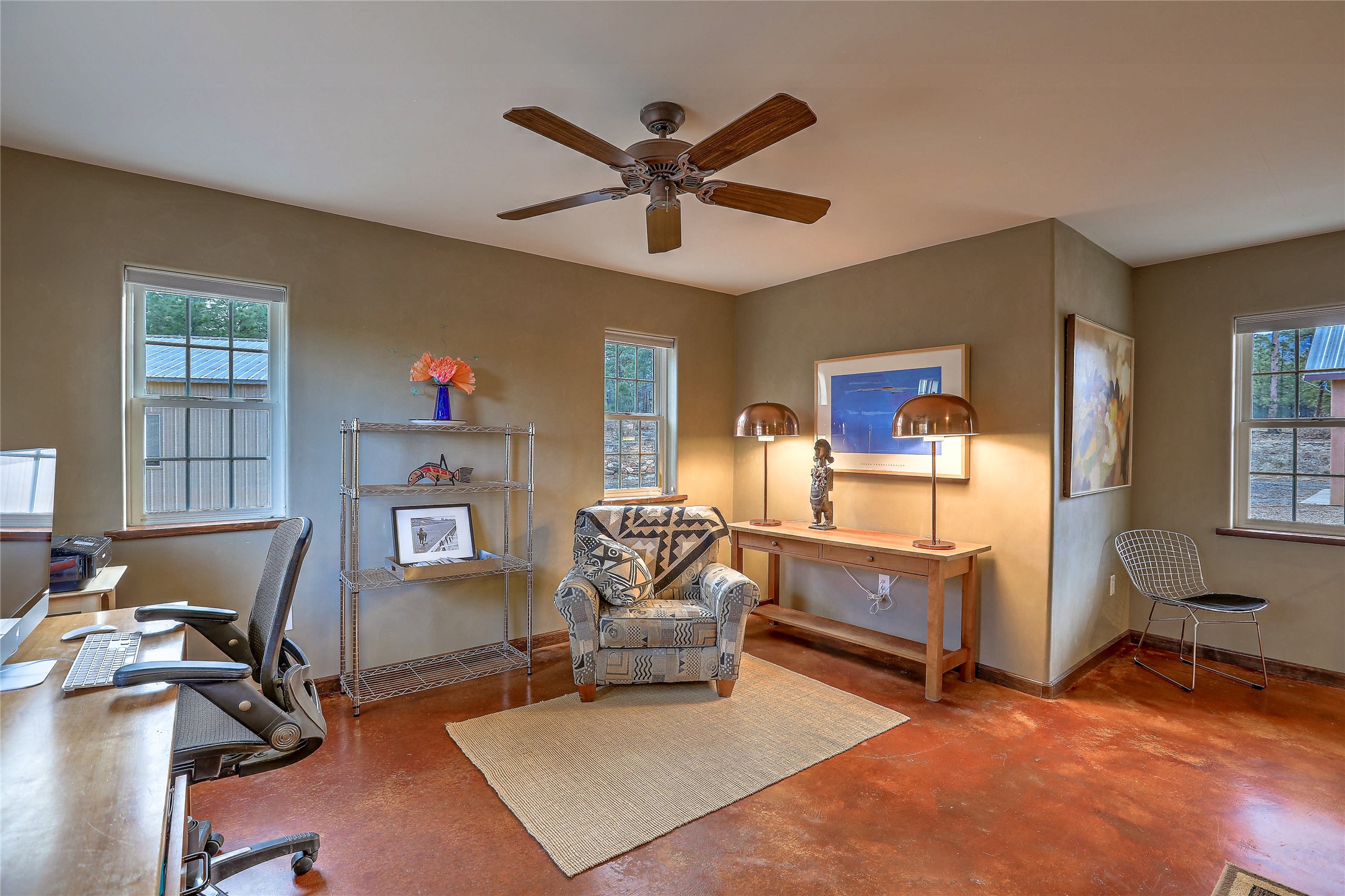 Price reduced by motivated sellers! This stunning custom-built 3,155 square-foot Northern New Mexico style home is situated on 13 beautiful, forested acres near Las Vegas, NM. Built by Knutson Construction in 2010, this three bedroom, two bath, two half bath house features Insulated Concrete Form construction with foot-thick walls and a standing seam metal roof, ensuring maximum durability and energy efficiency. The interior is highlighted by 9' ceilings with wood vigas, radiant in-floor heat, beautiful diamond plaster walls, solid Douglas Fir and stained concrete flooring, Cherry Shaker cabinets, Corian countertops, and a kiva fireplace with banco that add a natural feel to the home. French doors open to the back veranda with an outdoor kiva fireplace with bancos and iconic Hermit's Peak as the backdrop.For those needing additional space, the property includes an insulated 28-foot by 38-foot shop--ideal for projects, storing tools, equipment, and vehicles--complete with a commercial-grade walk-in cooler. An attached two-car garage provides further convenience. The property also benefits from a strong well, ensuring reliable water access for the home and landscape. With its modern amenities, natural beauty, and privacy, this home is the perfect retreat for anyone seeking tranquility and a connection to the New Mexico landscape.This Ranchito offers spectacular views of Hermit's Peak and is dotted with majestic Ponderosa Pines and Gambel Oaks, making it a haven for wildlife enthusiasts. Residents can enjoy easy access to the Santa Fe National Forest, which is perfect for horseback riding, ATV adventures, and hiking. The area teems with wildlife, including mule deer, elk, turkey, bears, foxes, coyotes, songbirds, hummingbirds, and raptors, providing an unparalleled connection to nature. The property is located in GMU 46, which offers unlimited landowner elk tags and over-the-counter landowner deer tags. Santillanes Creek Ranch is an ideal property for year-round living or a summer getaway, with the perfect mix of seclusion and convenience.