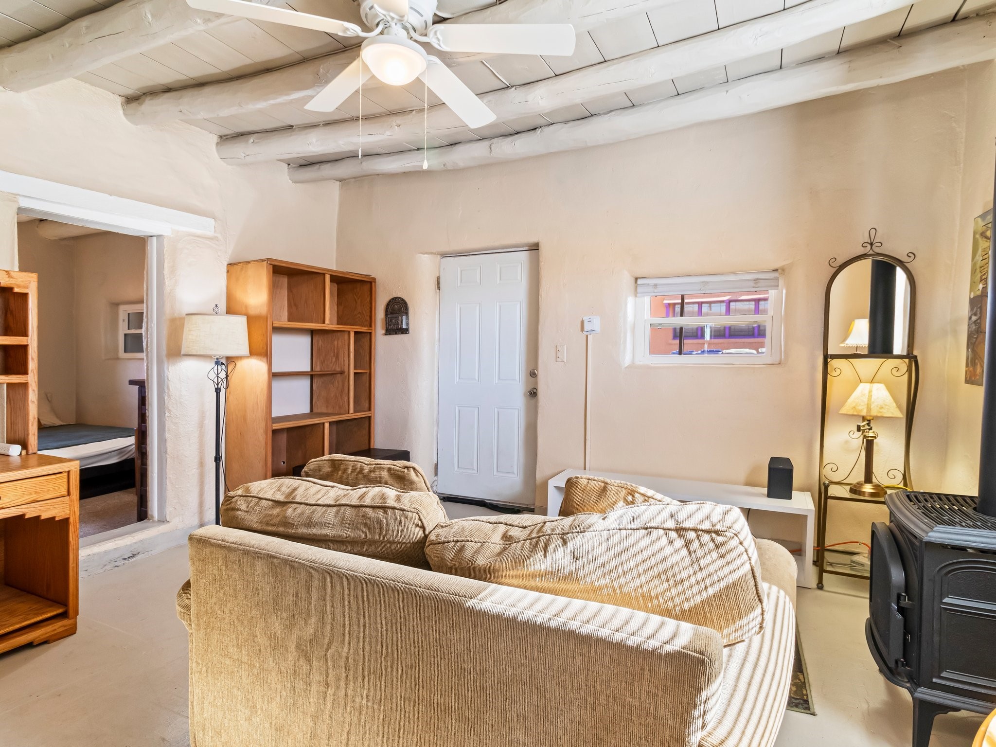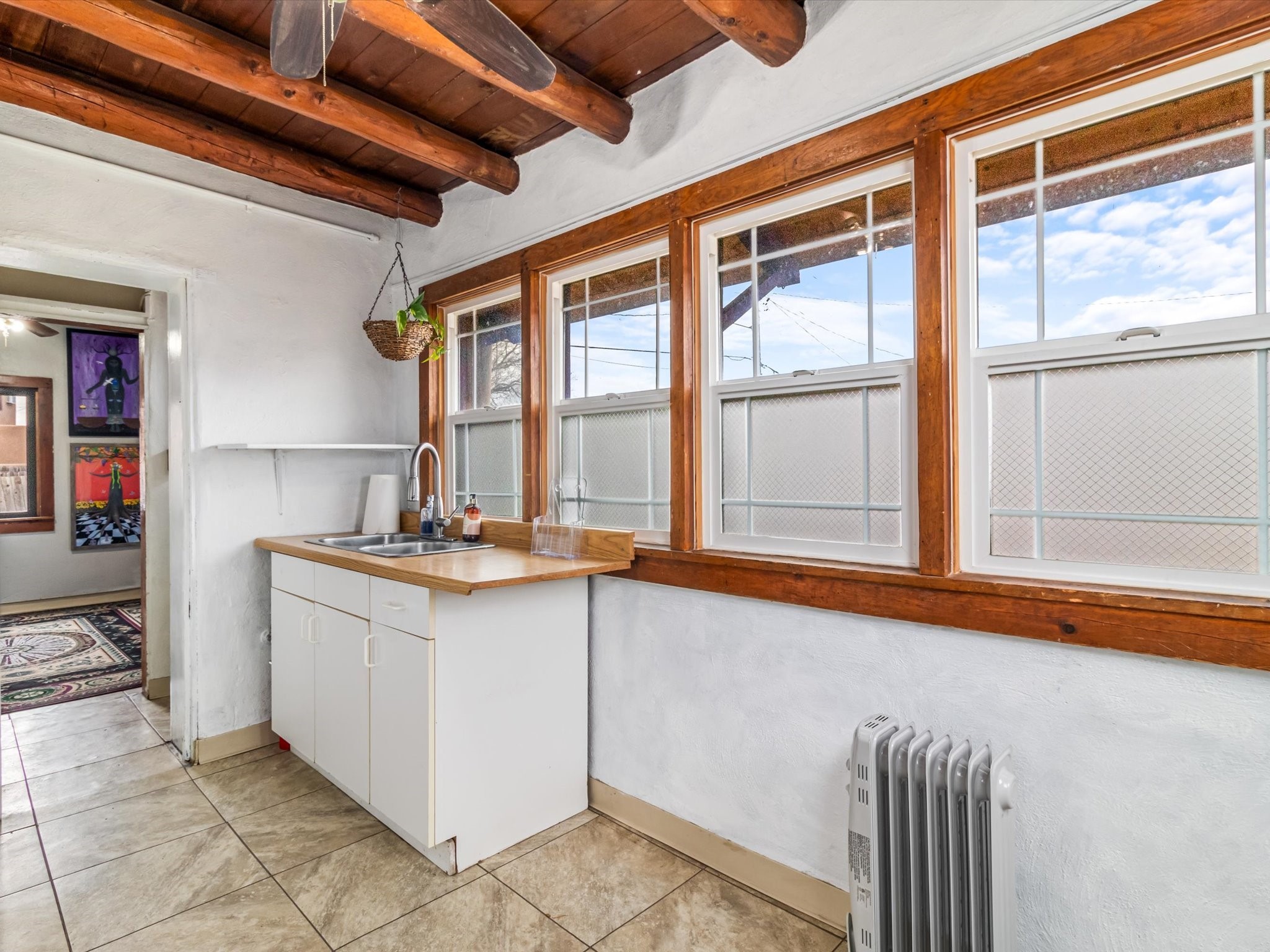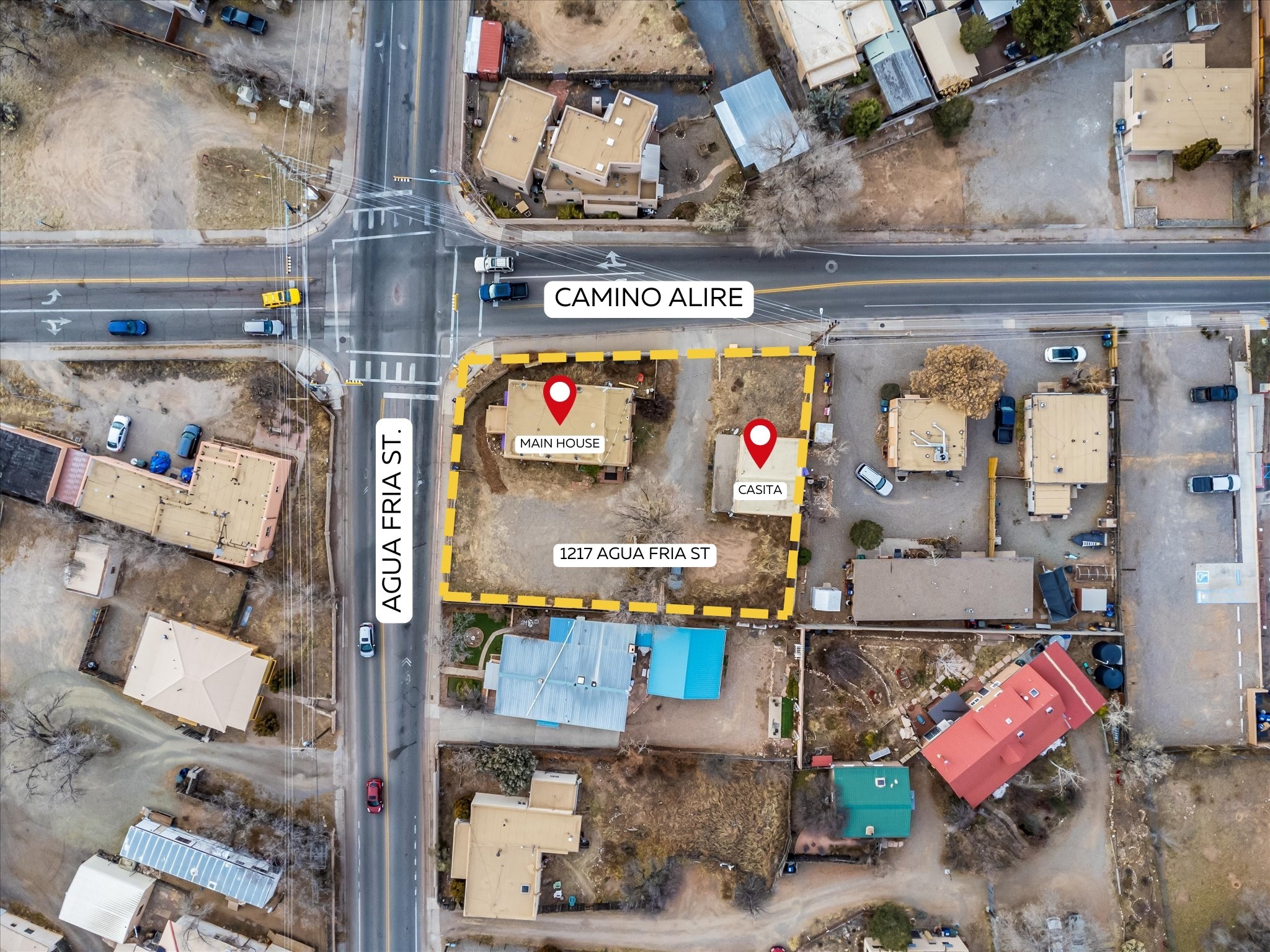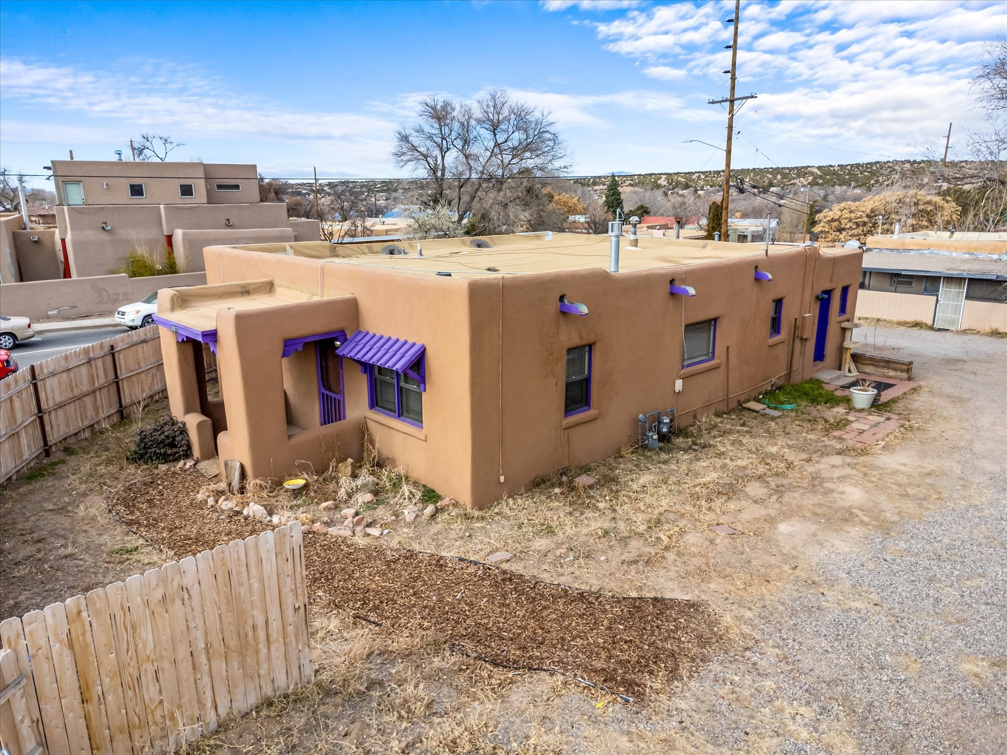 Welcome to 1217 Agua Fra Street, a versatile and charming adobe property that offers endless possibilities for families, multigenerational living, or investment opportunities. The main home features 2 bedrooms and 1 bath, complemented by a 1-bedroom, 1-bath attached unit. The main living area showcases Saltillo tile flooring, known for its durability AND scratch resistance making it a practical yet stylish choice. Lots of Santa fe Charm with wood ceilings and Vegas. In the back, you'll find a spacious 2-bedroom, 1-bath casita that exudes the same quintessential Santa Fe charm. Both homes highlight stunning adobe walls and authentic wood vigas, creating a warm and inviting atmosphere. Situated in the heart of Santa Fe, this property is perfectly positioned for easy access to local attractions, dining, and shopping. Ample parking and flexible zoning (C-1) add to its appeal, offering potential for additional development or creative uses. Don't miss the opportunity to own a piece of Santa Fe's rich heritage and vibrant culture. Contact us today to schedule your private tour!