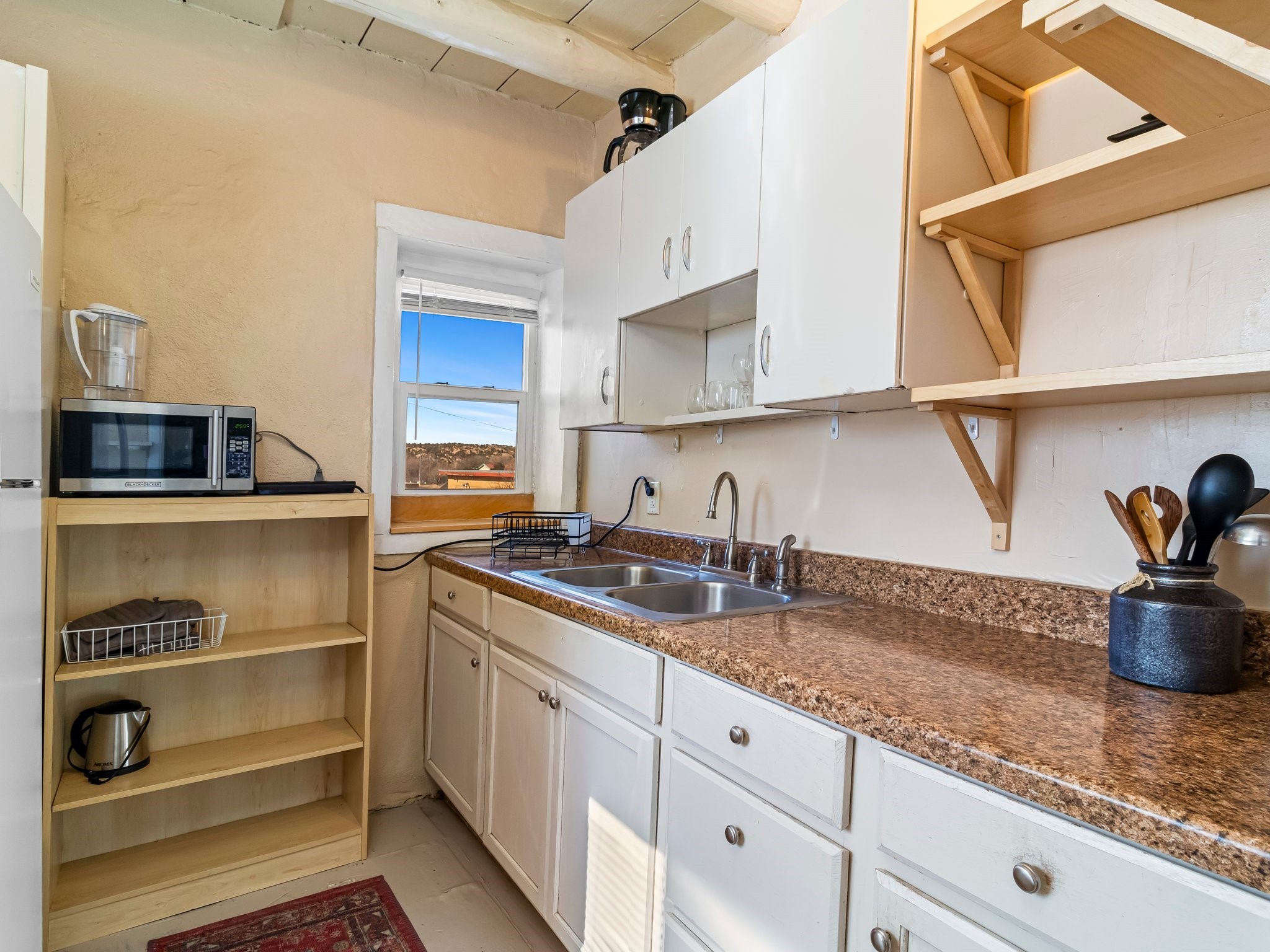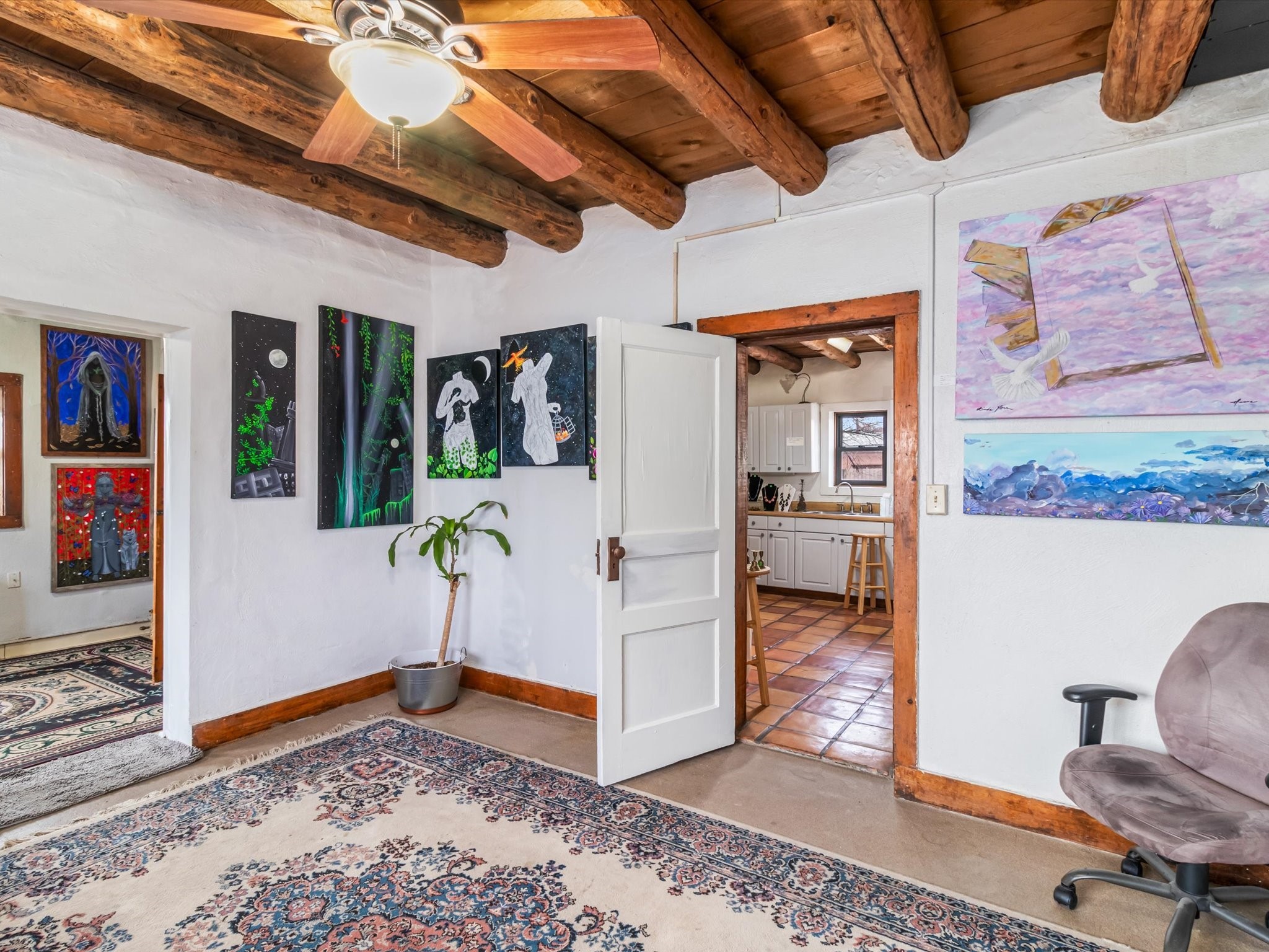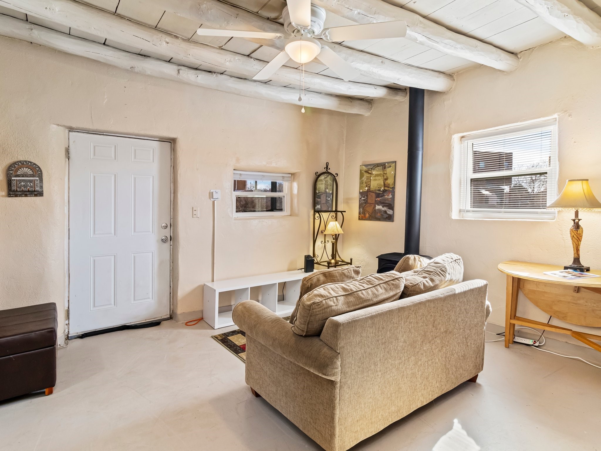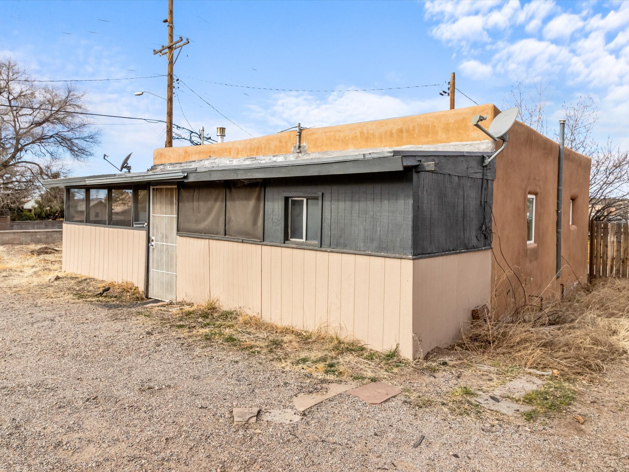 Welcome to 1217 Agua Fra Street, a versatile and charming adobe property that offers endless possibilities for families, multigenerational living, or investment opportunities. The main home features 2 bedrooms and 1 bath, complemented by a 1-bedroom, 1-bath attached unit. The main living area showcases Saltillo tile flooring, known for its durability AND scratch resistance making it a practical yet stylish choice. Lots of Santa fe Charm with wood ceilings and Vegas. In the back, you'll find a spacious 2-bedroom, 1-bath casita that exudes the same quintessential Santa Fe charm. Both homes highlight stunning adobe walls and authentic wood vigas, creating a warm and inviting atmosphere. Situated in the heart of Santa Fe, this property is perfectly positioned for easy access to local attractions, dining, and shopping. Ample parking and flexible zoning (C-1) add to its appeal, offering potential for additional development or creative uses. Don't miss the opportunity to own a piece of Santa Fe's rich heritage and vibrant culture. Contact us today to schedule your private tour!