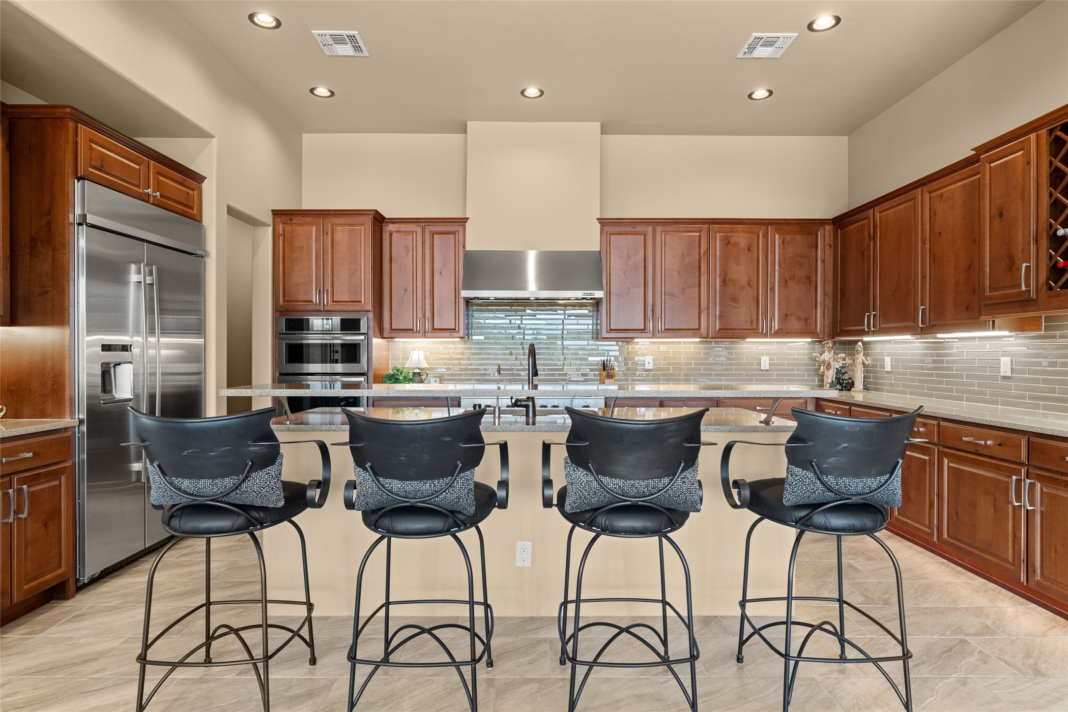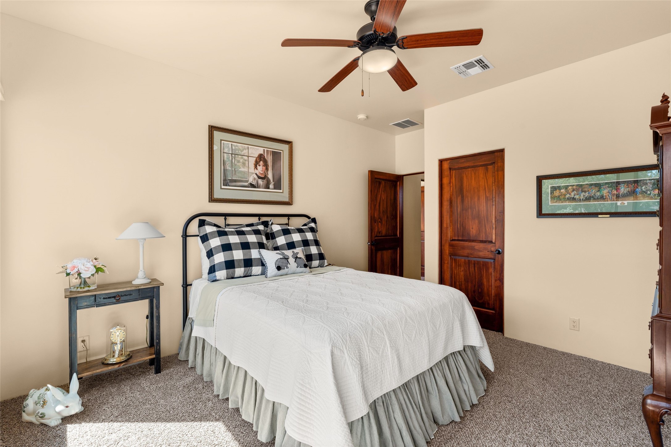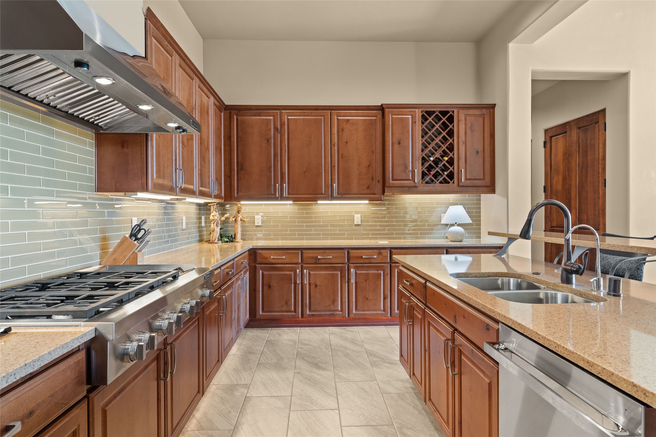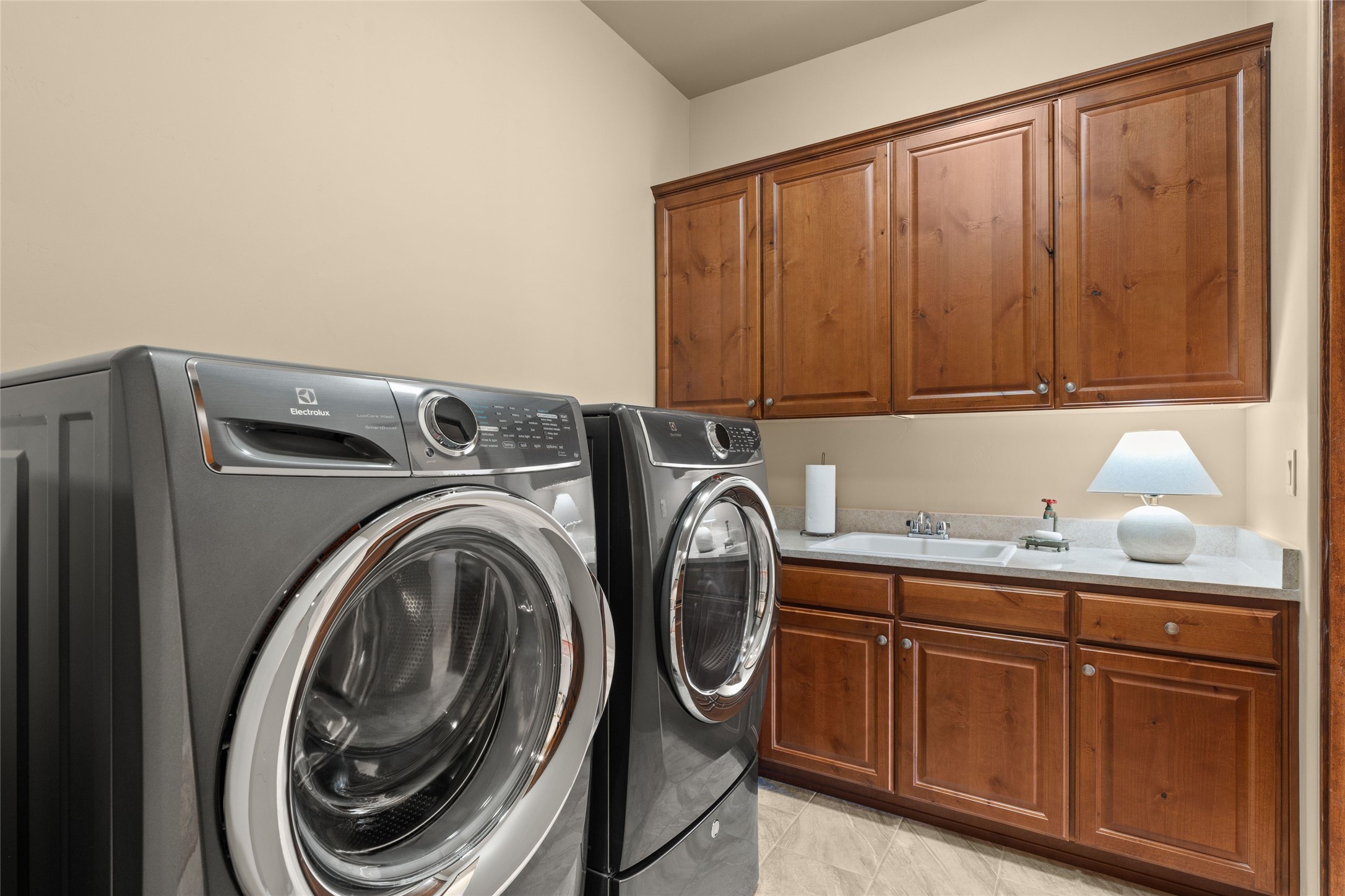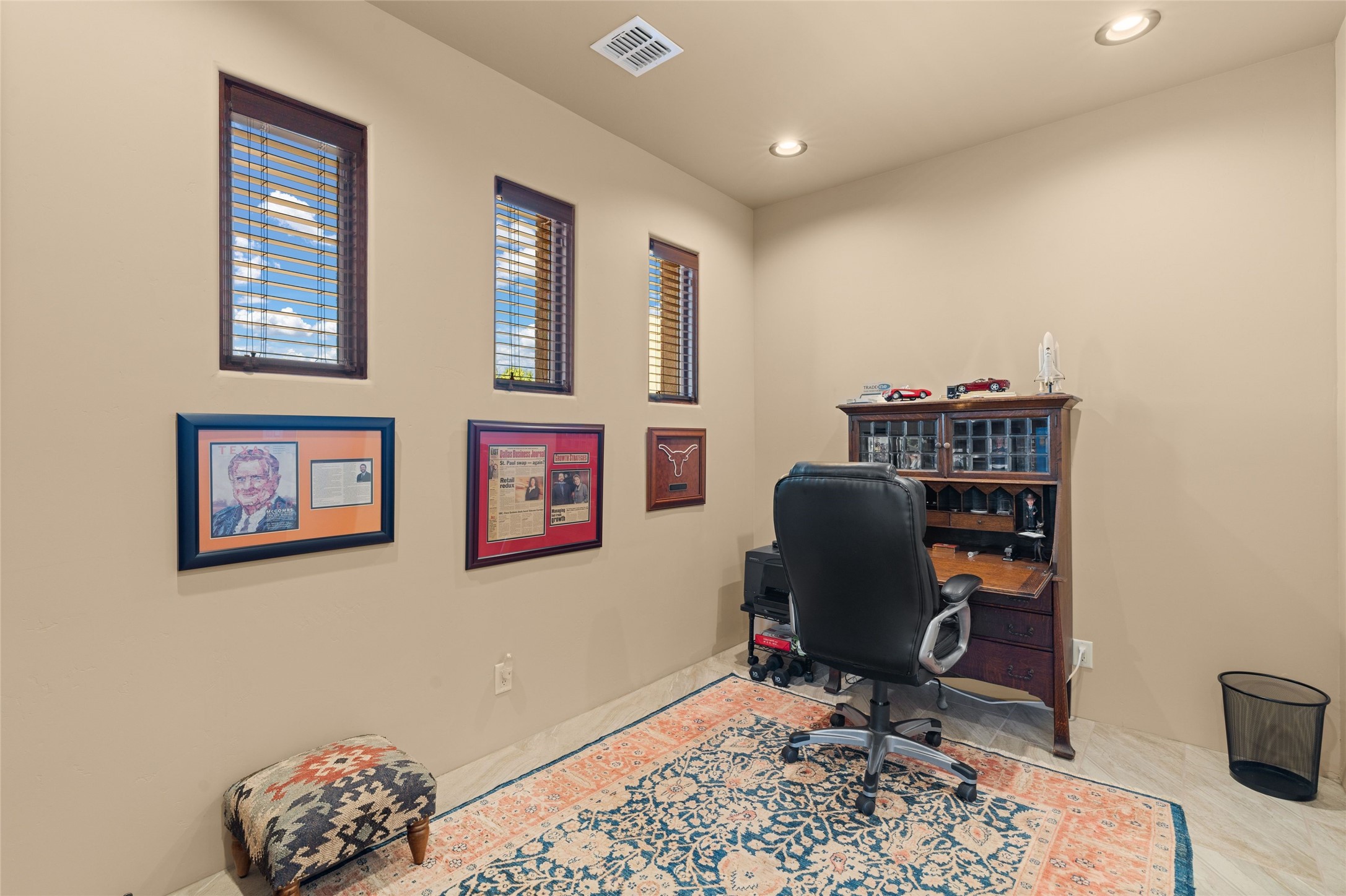 This contemporary Pueblo-style 3-bedroom residence located on nearly 2 acres in Las Campanas offers both elegant design and a setting selected to maximize the views and privacy. Built in 2016, the single level floorpan is ideal with two guest suites and an office opposite the house from a generous primary bedroom. The main living area is replete with 15-foot ceilings and nearly floor-to-ceiling glass doors that frame the dynamic panorama of the Sangre de Cristo Mountains. When the doors are pocketed fully into the wall, the dramatic, open concept living/dining/kitchen area flows seamlessly into a large portal and beautifully planted walled courtyard. This is a house built to enjoy a perfect summer evening. The sleek and modern kitchen includes an ample walk-in pantry, Jenn-Aire stainless steel appliances, a 6-burner gas cooktop and a bar level eat-in counter. The airy master bedroom suite captures mountain views to be enjoyed in a secluded sitting area with a raised hearth fireplace. The primary bathroom and closet are spacious and refined. With a 3-car garage, a private lot, no steps, a thoughtful floor plan and modern amenities, 63 Thundercloud lacks for nothing.
