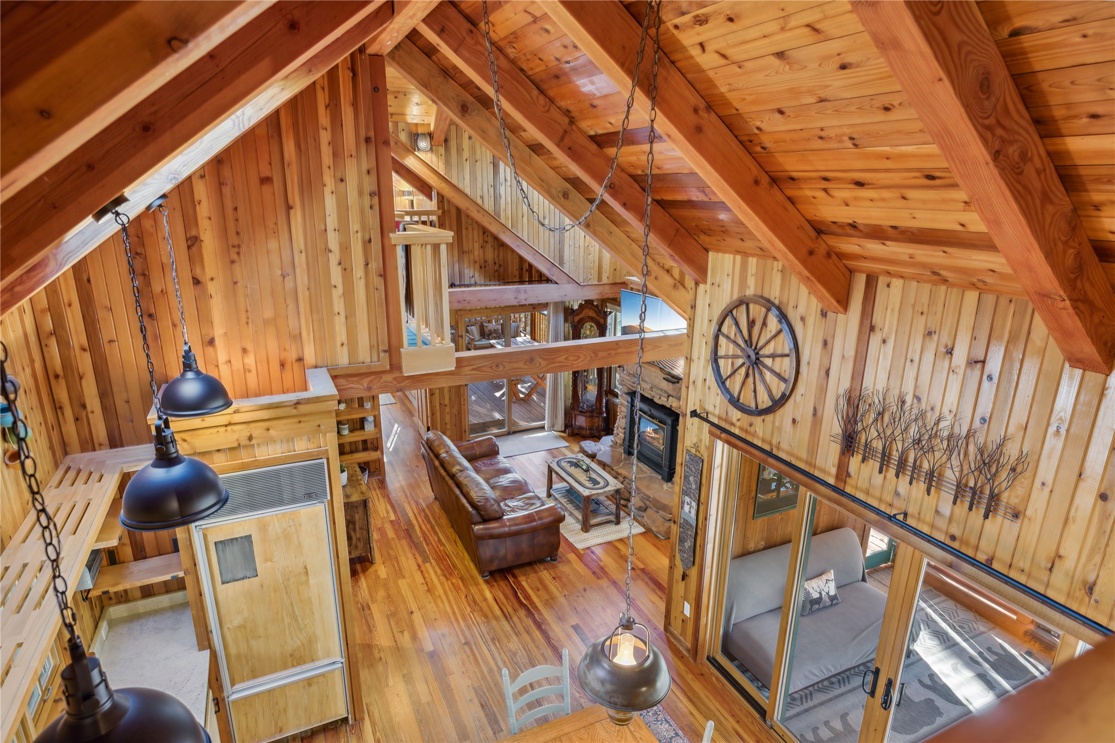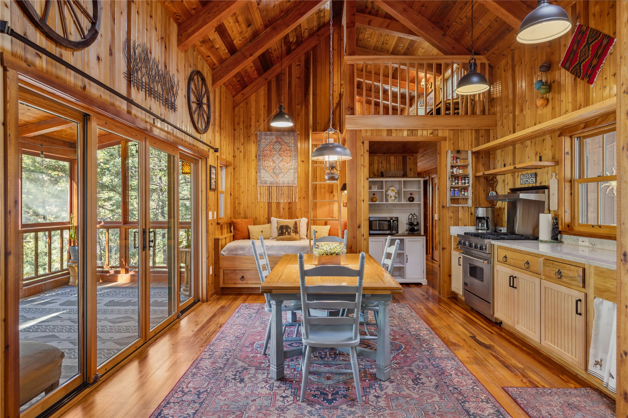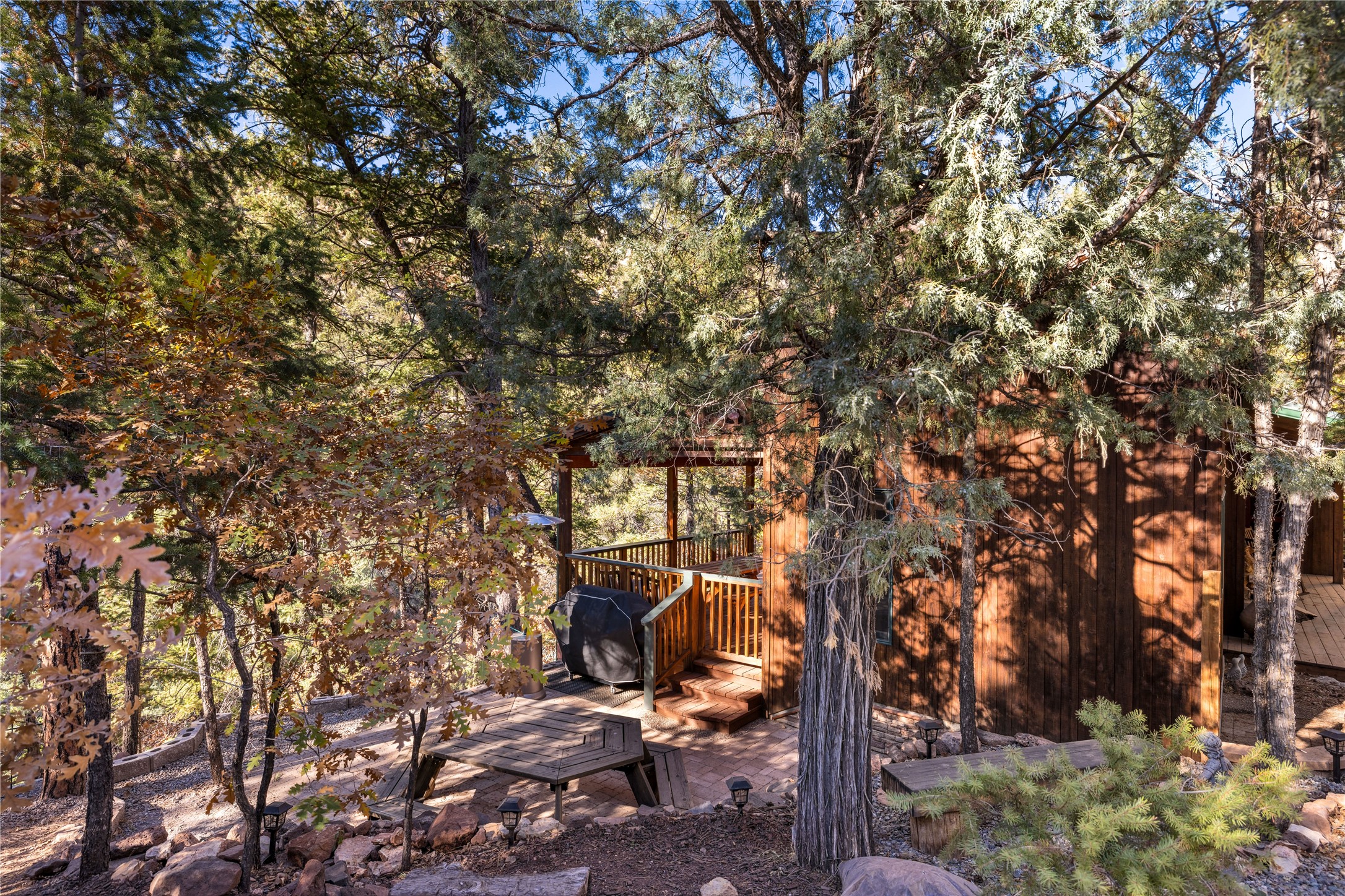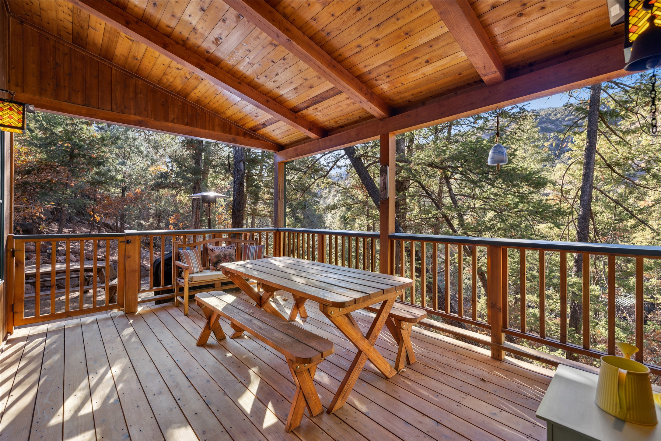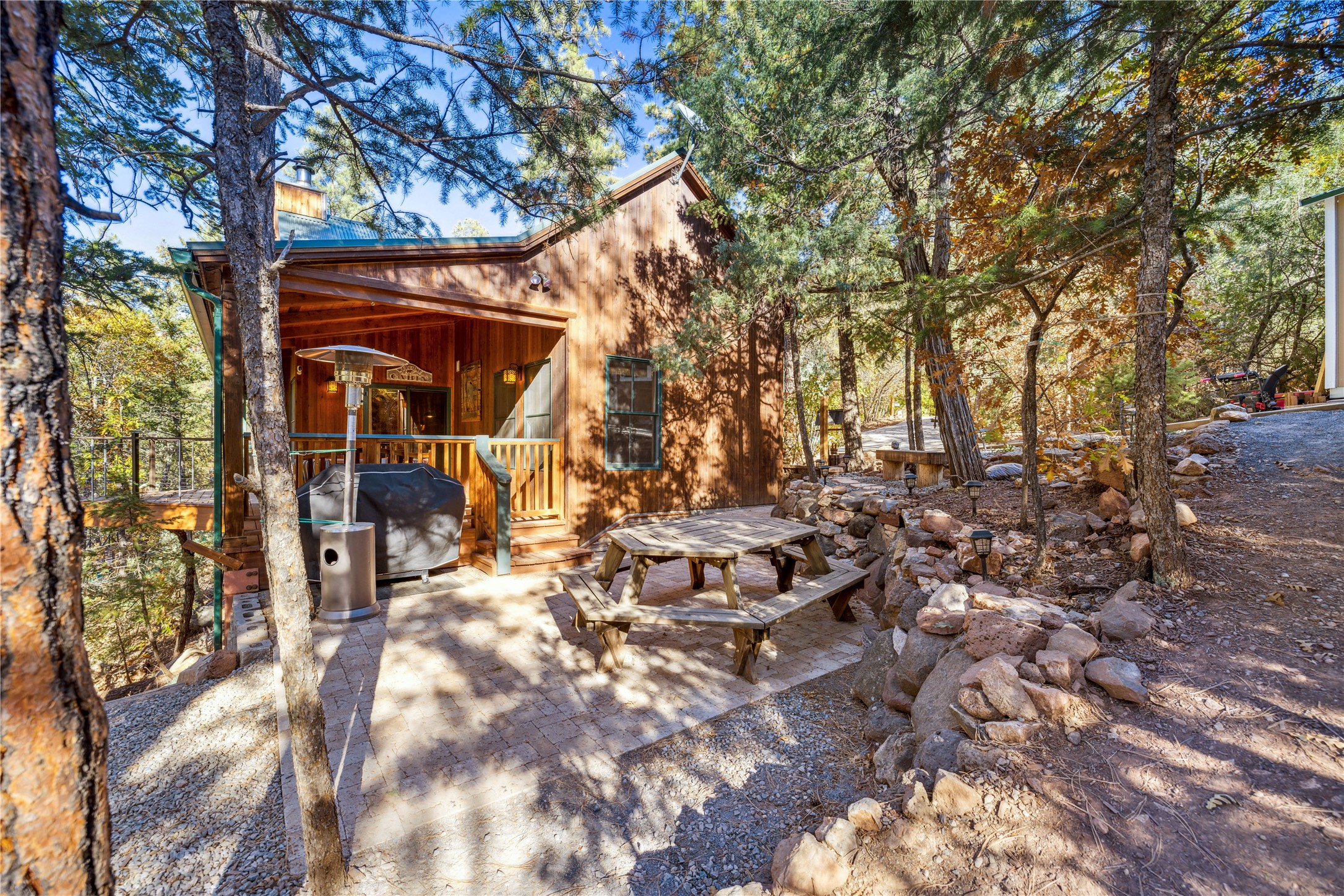 Tucked away in the breathtaking beauty of San Diego Canyon, where the Jemez River flows gently through a landscape of pines and rugged red rock, you'll find a home that feels like it was born from the forest itself. Welcome to 623 San Diego Loop--a custom-built cedar cabin that offers the rare balance of rustic tranquility and refined living.Thoughtfully designed by renowned architect Knight Seavey, this unique retreat offers 3 spacious bedrooms, 2 bathroom, and two lofts that open up endless possibilities. Whether you need an extra guest space, a peaceful home office, or an inspiring artist's nook, you'll find that every inch of this cabin invites creativity and calm. The exterior spaces are just as intentional--step out onto one of the many porches or the newly added bow deck and feel the stress melt away as you take in sweeping canyon views or the soothing rhythm of the river below. A screened-in porch allows you to enjoy your morning coffee in comfort, no matter the season, while listening to birdsong and the gentle flow of water.Recent updates add a layer of convenience and sophistication: a newly poured concrete driveway, gleaming granite countertops, upgraded sinks, and beautifully landscaped retaining walls. A 10'x12' Tuff Shed offers extra storage or could become your personal workshop hideaway.Inside, the home glows with natural warmth. Longleaf heart pine floors, radiant in the winter with in-floor heat, stretch across a bright, open layout framed by tongue-and-groove walls, high ceilings, and solid wood doors sourced from Placitas. Sunlight spills through large windows, catching on wooden beams and filling the space with a sense of peace that only a well-loved home can offer.With direct access to the river, your days can be filled with fishing, wildlife watching, or simply sitting still and letting nature speak. Whether you're searching for a full-time sanctuary or a weekend escape, this rare riverfront gem is ready to welcome you home.