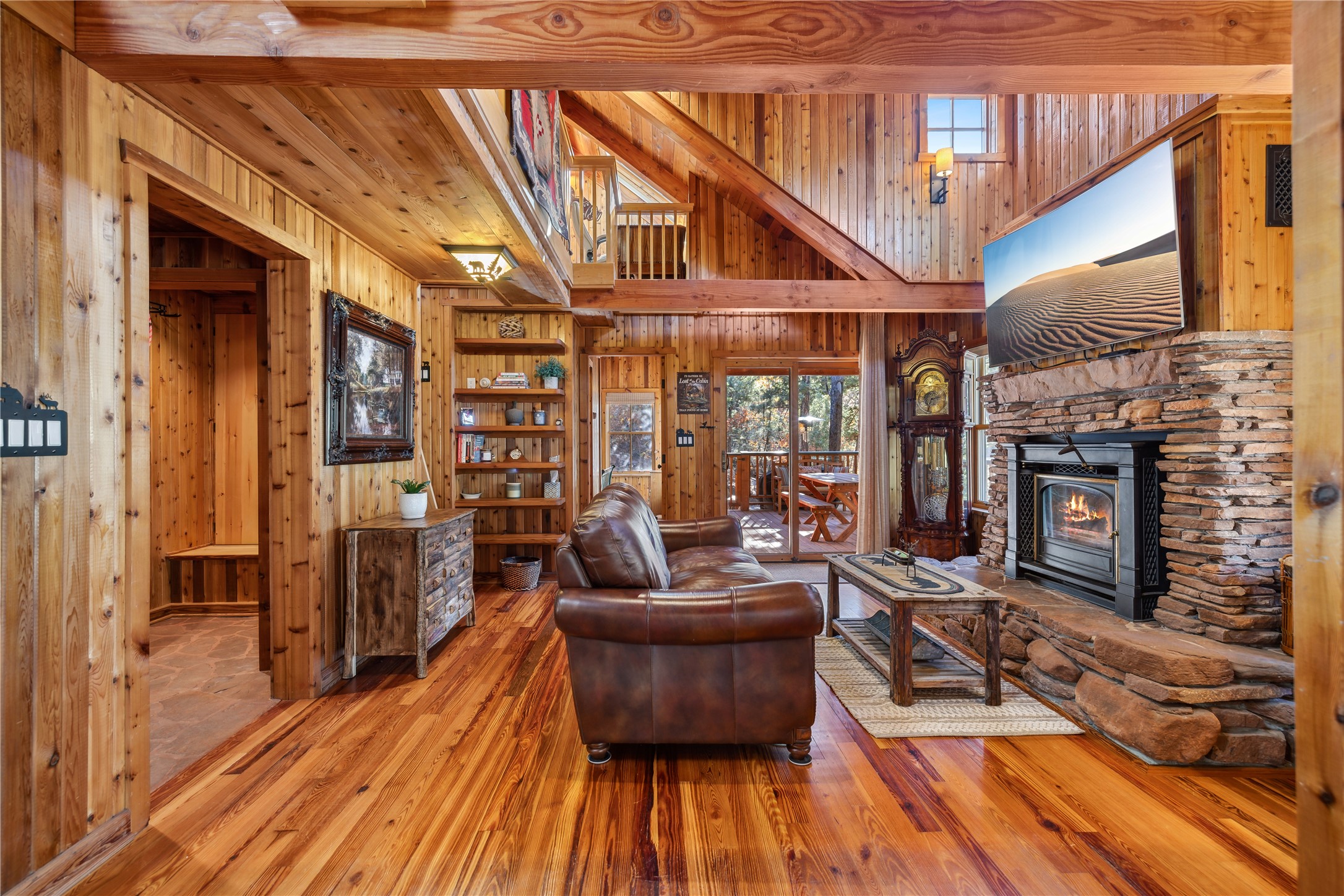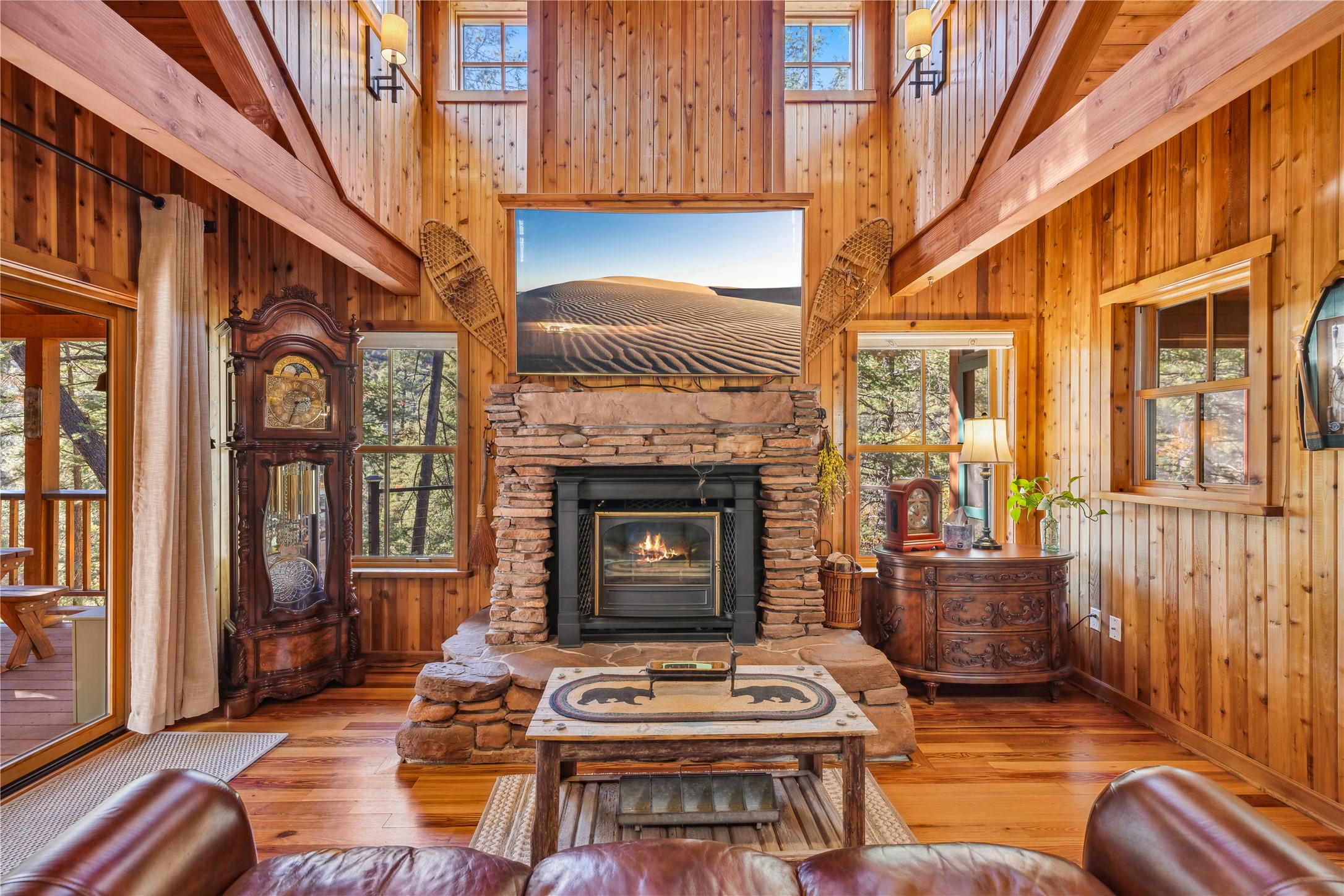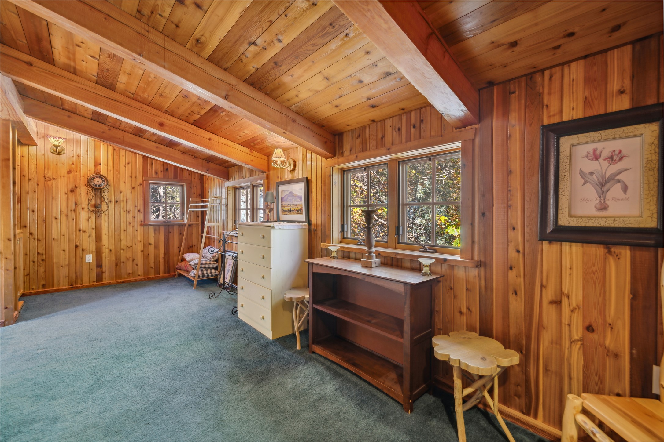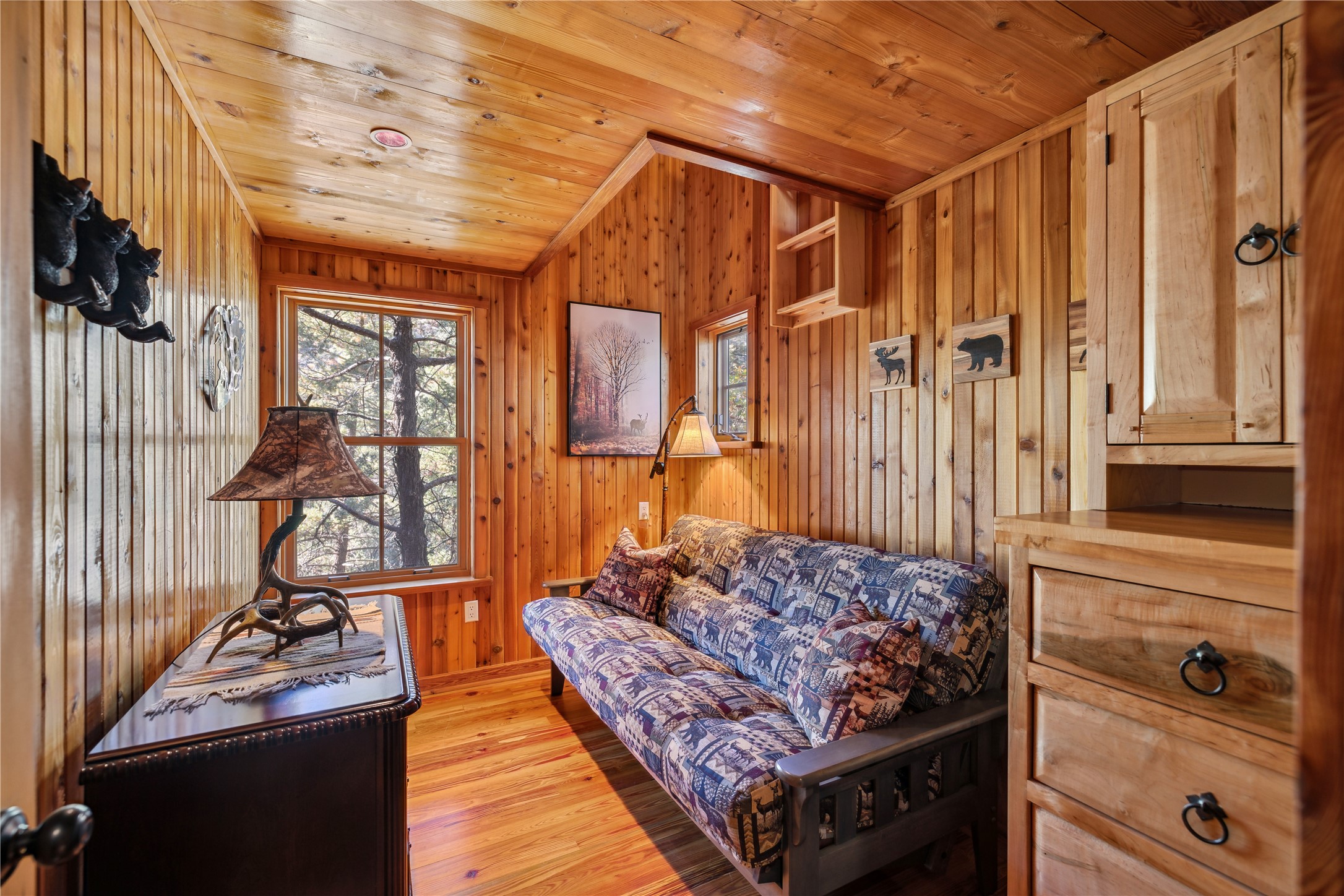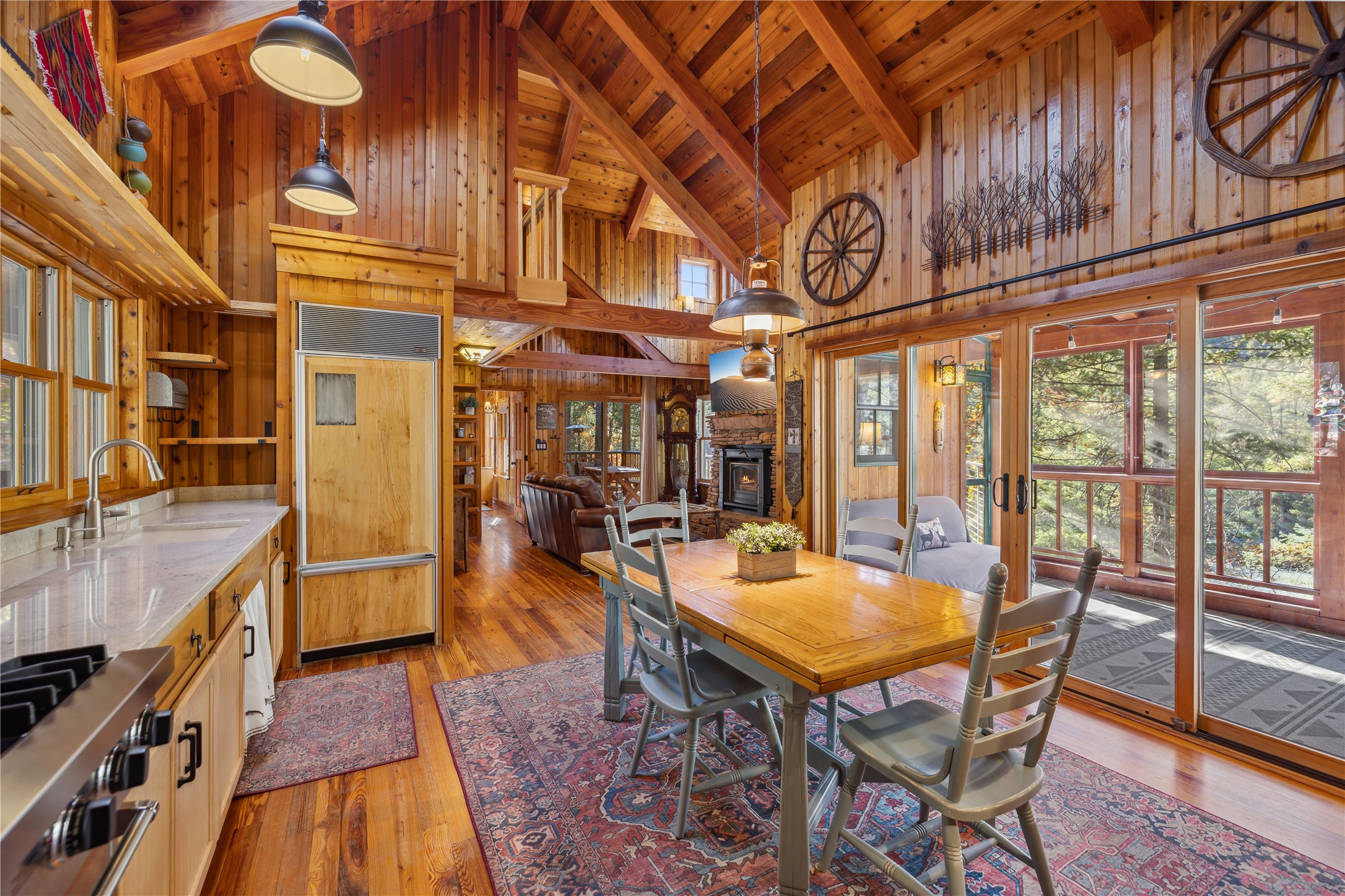 Tucked away in the breathtaking beauty of San Diego Canyon, where the Jemez River flows gently through a landscape of pines and rugged red rock, you'll find a home that feels like it was born from the forest itself. Welcome to 623 San Diego Loop--a custom-built cedar cabin that offers the rare balance of rustic tranquility and refined living.Thoughtfully designed by renowned architect Knight Seavey, this unique retreat offers 3 spacious bedrooms, 2 bathroom, and two lofts that open up endless possibilities. Whether you need an extra guest space, a peaceful home office, or an inspiring artist's nook, you'll find that every inch of this cabin invites creativity and calm. The exterior spaces are just as intentional--step out onto one of the many porches or the newly added bow deck and feel the stress melt away as you take in sweeping canyon views or the soothing rhythm of the river below. A screened-in porch allows you to enjoy your morning coffee in comfort, no matter the season, while listening to birdsong and the gentle flow of water.Recent updates add a layer of convenience and sophistication: a newly poured concrete driveway, gleaming granite countertops, upgraded sinks, and beautifully landscaped retaining walls. A 10'x12' Tuff Shed offers extra storage or could become your personal workshop hideaway.Inside, the home glows with natural warmth. Longleaf heart pine floors, radiant in the winter with in-floor heat, stretch across a bright, open layout framed by tongue-and-groove walls, high ceilings, and solid wood doors sourced from Placitas. Sunlight spills through large windows, catching on wooden beams and filling the space with a sense of peace that only a well-loved home can offer.With direct access to the river, your days can be filled with fishing, wildlife watching, or simply sitting still and letting nature speak. Whether you're searching for a full-time sanctuary or a weekend escape, this rare riverfront gem is ready to welcome you home.