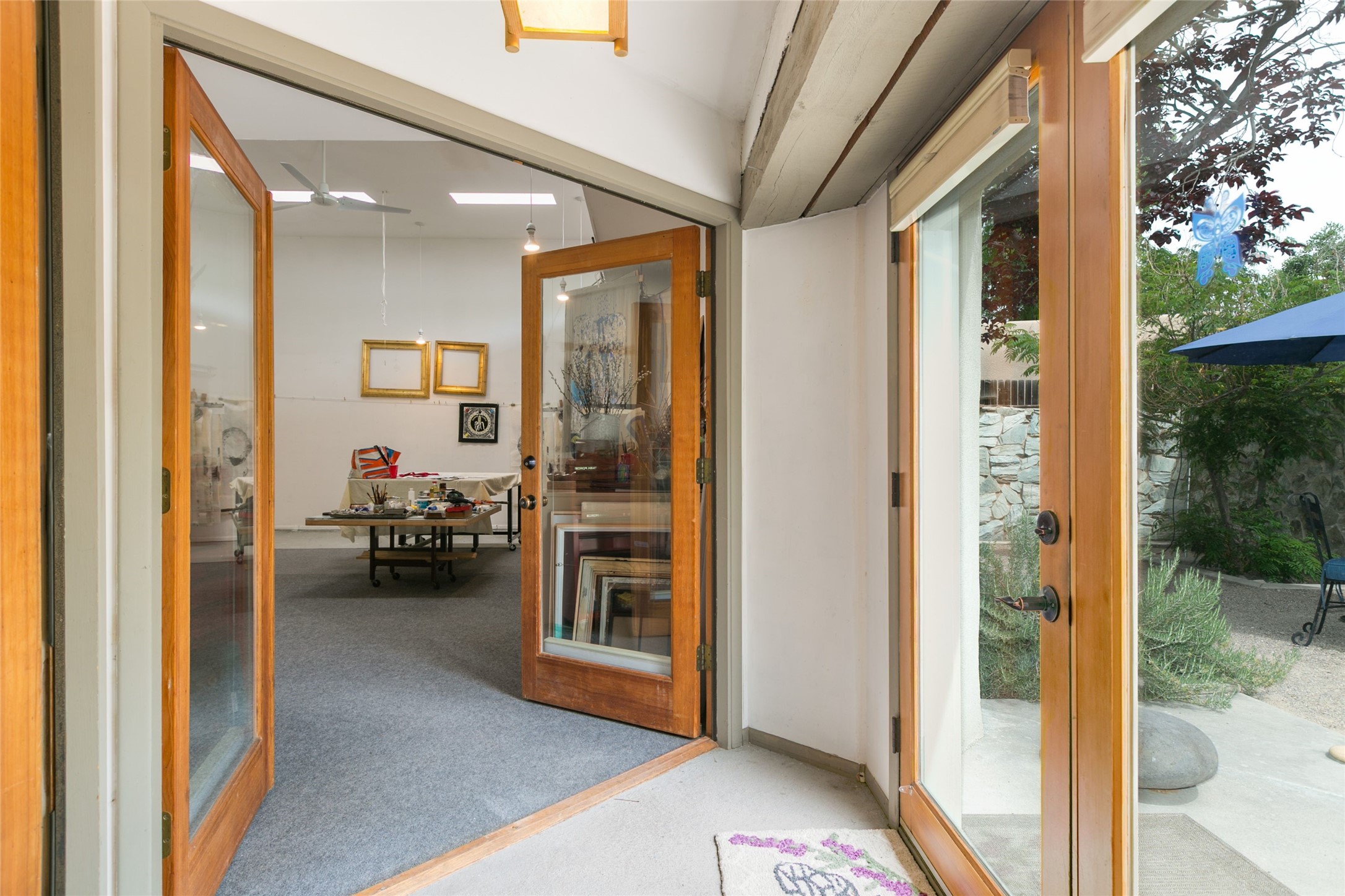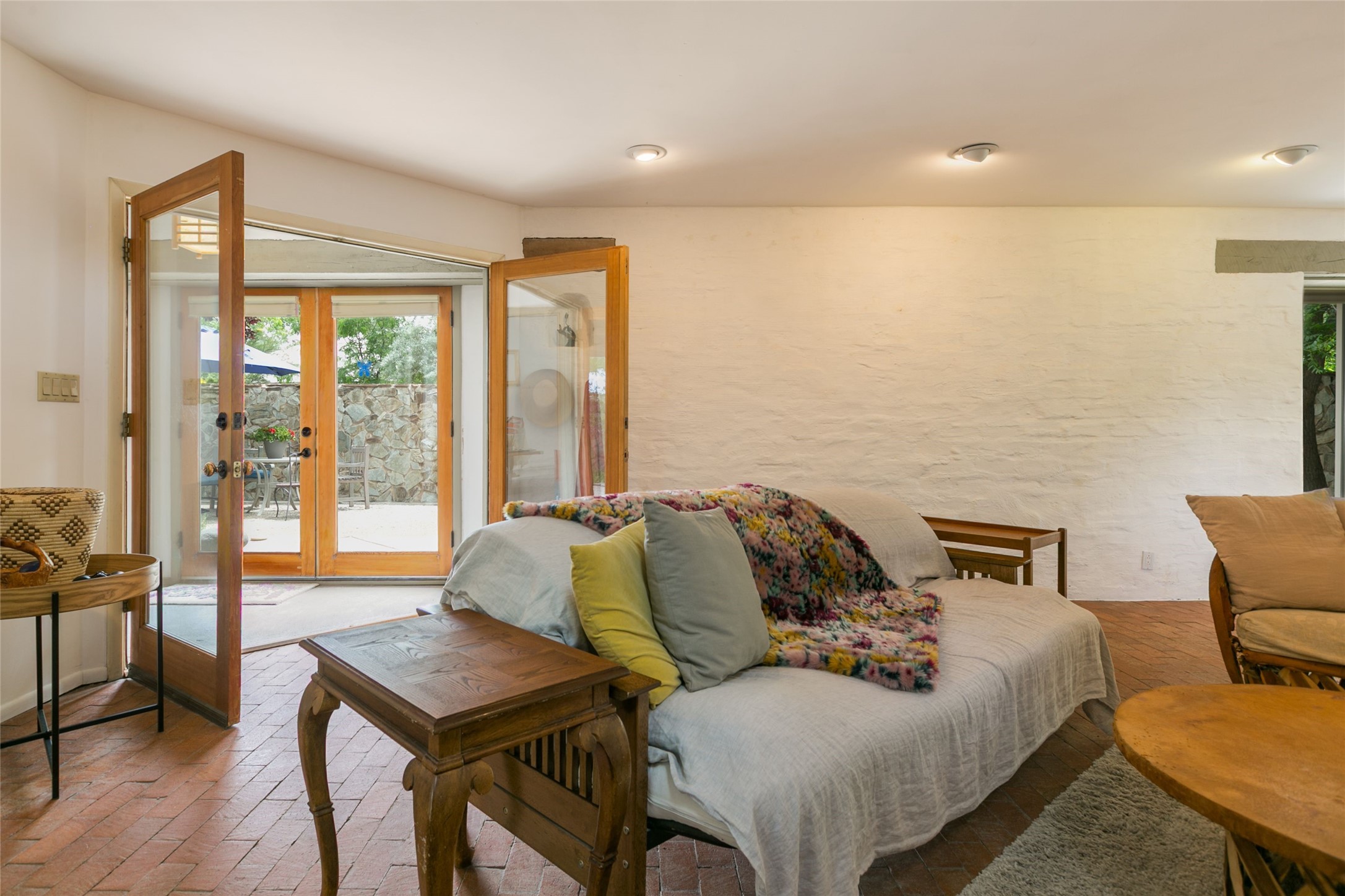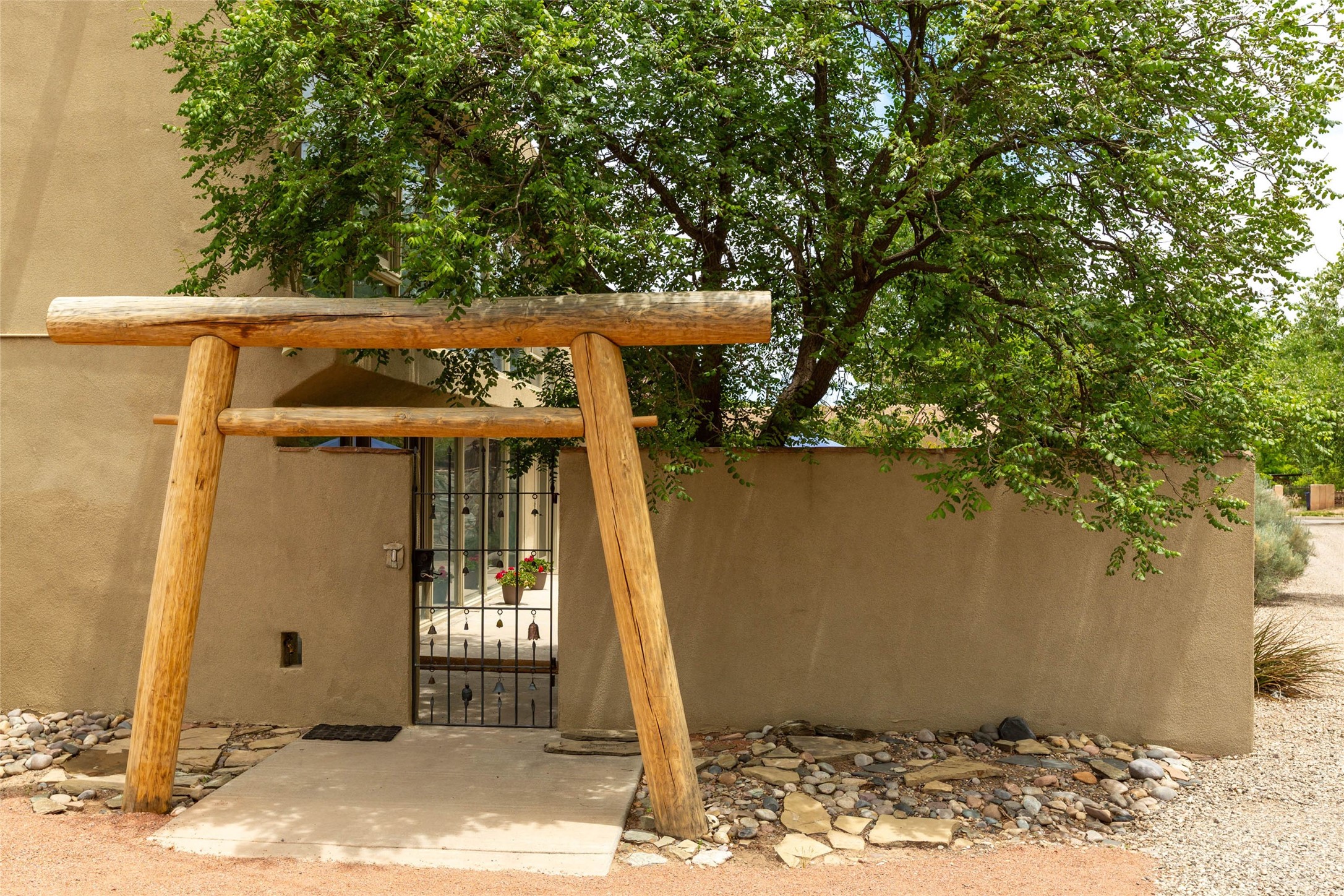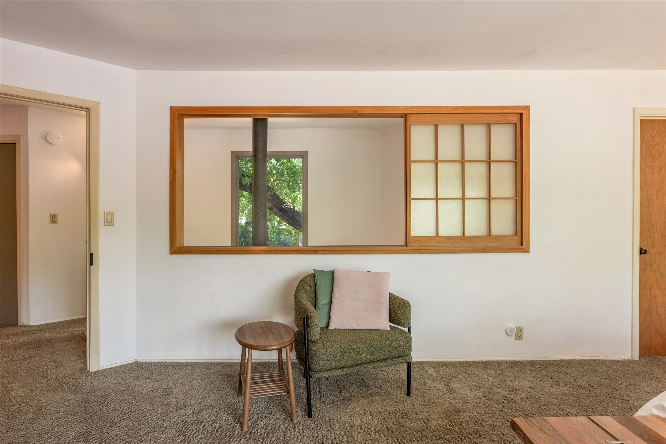 Artist's Sanctuary near the Nature Center, designed in 1982 by renowned solar architects Ed Mazria and Ric Schalk. This unique passive solar adobe home, blends sustainability with artistic inspiration. The thoughtfully positioned adobe Trombe walls keep it warm in winter and cool in summer. A high-efficiency Danish wood stove adds warmth on cold days. The great room has brick floors and opens to the outdoors, while a tucked-away kitchen overlooks mature cottonwoods. The spacious studio offers high ceilings and excellent light--ideal for creative work. Upstairs are two bedrooms and a full bath; the primary includes Japanese shoji screens that open to tranquil Bosque views. This is a one-of-a-kind, peaceful retreat--perfect for those seeking beauty, nature, inspiration and sustainability.