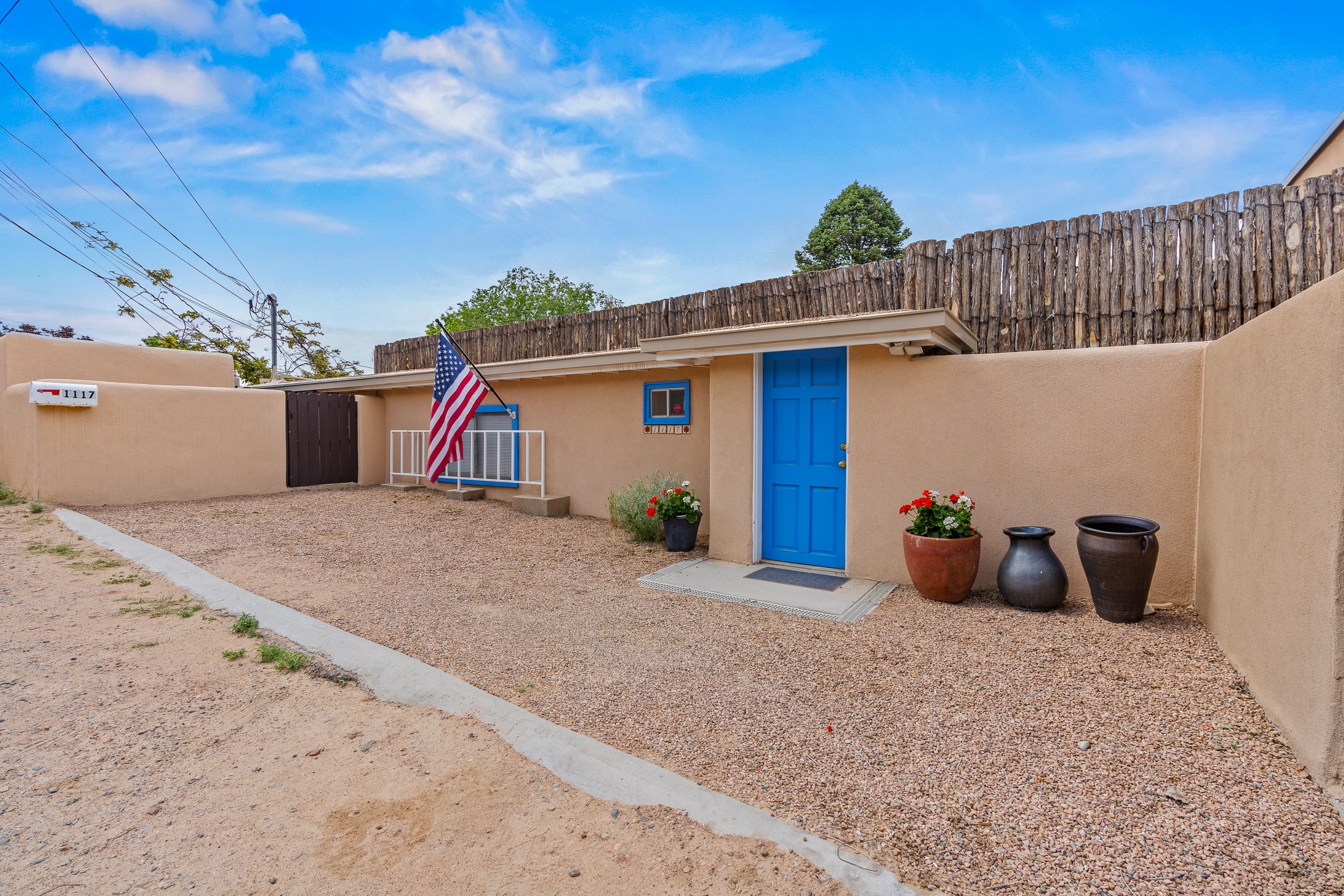 This Historic Eastside home is in the gated Girard Gardens Compound located a block from the Canyon Road arts district. It consists of a beautifully appointed main home and a guest casita. The casita has the possibility of being used as a wonderful studio, home office space or as an income generating rental. The location of this property has close proximity to all Santa Fe has to offer. Hiking, skiing, mountain biking, along with the fabulous restaurants and cultural activities for which it is famous. Mountain views from the expansive upstairs deck, a large private outdoor garden space. 3 large bedrooms, 3.5 bathrooms with ample closet space. The fully equipped kitchen has stainless appliances and is a bright welcoming space for the cook in the family. A detached garage is included with the main home. The guest casita has its own parking space. This is a turn-key sale which includes all designer selected furnishings.