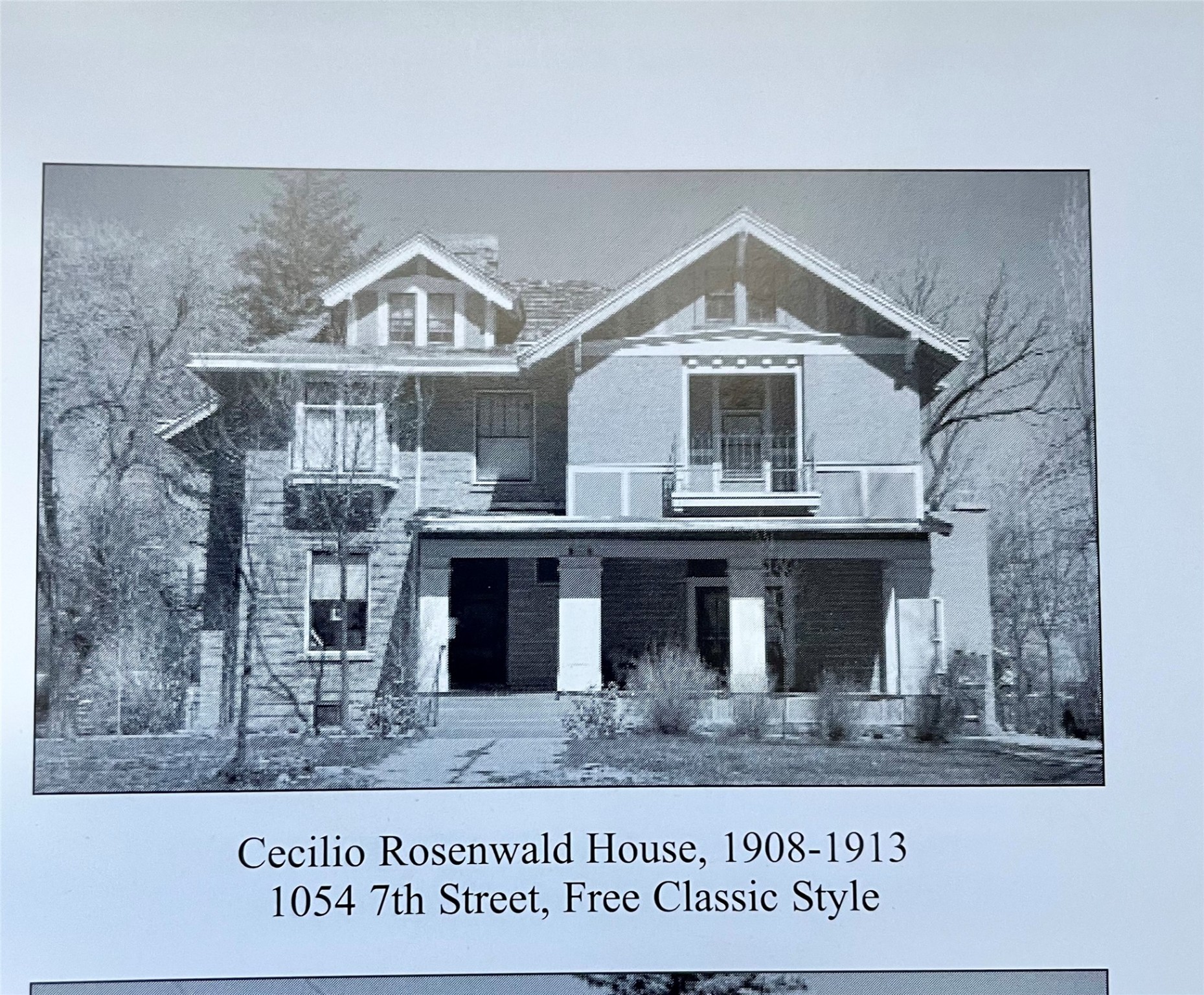 MOTIVATED SELLERS, BRING OFFER! 2025 historic preservation award winner. Gracious mansion designed by renowned Rapp and Rapp architects and built by historically significant merchant Cecilio Rosenwald (builder of historic Coronado theater) in 1913, utilizing the best materials and craftsmanship - the antique brass Antwerp Lion doorknobs still work perfectly! Recently restored and updated while preserving the historic charm. Hardwood floors, oak panelling, high coffered ceilings, many bay windows - enchanting details throughout! Too many updates to list including new: roof, boiler, granite counters, appliances, paint, landscaping, etc. Flexible floor plan - click video link! As you approach the home you are greeted by a large front porch. Enter the foyer through a towering oak front door. Ground floor includes a library-foyer with grand gas fireplace, living room with bay window, formal dining room with pellet stove, sunroom with doggy door to fenced yard, kitchen with breakfast bar and Forno gas range, walk in pantry, powder room, and a full bathroom. Take either the grand staircase or the servants stairs to the second floor which includes master suite with balcony, walk in closet and en suite bathroom, 4 other bedrooms, one with gas fireplace currently used as tv room, a deck, and a bathroom with laundry so you don't have to schlepp laundry up and downstairs! On the top floor is a 2 bedroom apartment that was originally built as servants quarters and has generated income as an airbnb. It can be accessed via the outdoor stairs with a separate entrance or from the inside of the main home for guests. The basement is partially finished with a great room, kitchen, bathroom, laundry, and several storage/hobby rooms. The back yard has 2 pear trees, a well for gardening, and a carriage house that has lots of potential. In town walkability near Highlands University, shopping, 10 minutes to Montezuma Hot Springs, 20 minutes Hermit's Peak and National Forest, on city water and sewer, so all the convenience and elegant luxury you would need. Be sure to click on the video link.Owner is listing realtor. Square footage is not guaranteed. Foo dog statues on front steps will not convey.