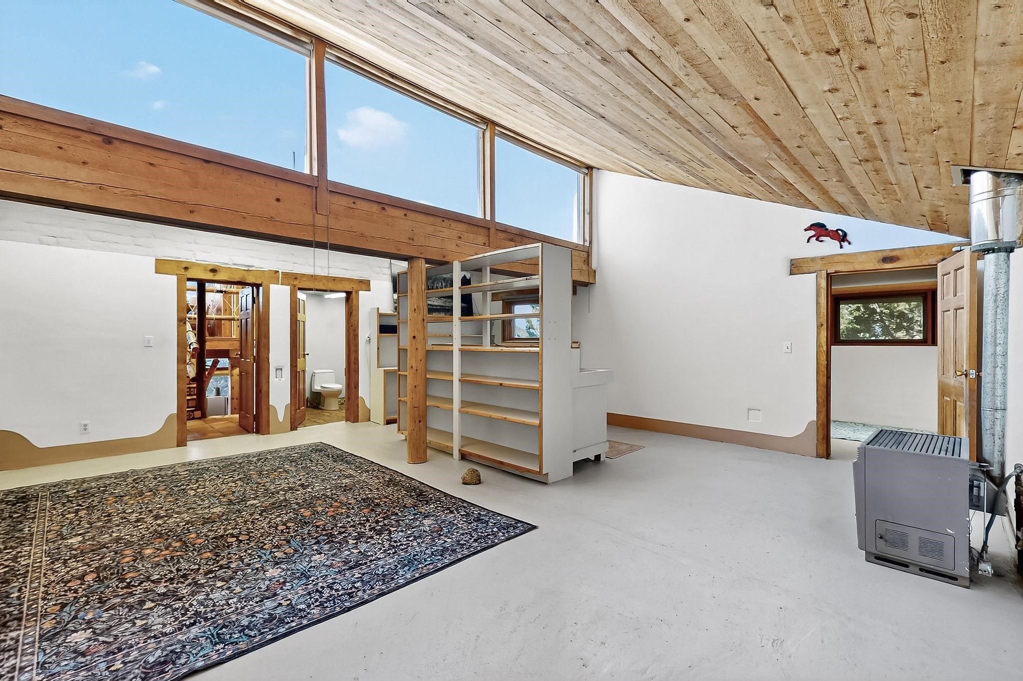 Tucked along the iconic Old Santa Fe Trail, ideal as a primary or get away residence, this enchanting adobe & frame-built appx 3147 sqft main home with an appx 480 sqft attached studio offers country living yet only 8 miles from the heart of downtown Santa Fe & close to amenities & restaurants (Harrys Rd House, El Gancho & more). Perfectly sited on 7.56 acres comprised of 4.56 acres + an additional lot of 3 acres, this property captures breathtaking panoramas of the Pecos & Galisteo Basins, Sandia & Jemez Mountains, & spectacular sunsets. Inside, you'll find a warm & inviting layout with a living room, kitchen with eat in nook, dining area, the charming "bottle" entry, a pantry, 3 bedrooms and 2.5 bathrooms, with a 3-car garage setup: a one-car attached garage w/ storage/workshop space, plus a detached two-car garage--all in an engaging split-level design full of Santa Fe charm & character with hand-crafted details including vigas, carved lintels, stain glass accents & more. The passive solar design with large south-facing windows & a pellet stove is efficient for heating, while adobe construction helps maintain comfortable indoor temperatures year-round. The wonderful appx 480-sqft studio with its own entrance, half bath, stainless steel work area, tongue & groove ceiling, sink & a propane heater--ideal as a home office, playroom, fitness or media room, or an easy guest suite conversion. Features/amenities include: NEW SEPTIC TANK, brick, tile & wood floors, kitchen with a conventional/convection oven, Bosch dishwasher & refrigerator, Pella windows, Artesanos fixtures, handmade tiles, solid wood doors, a balcony, peaceful patios, a pond, covered portals, walled courtyard, flagstone walkways, regraded and graveled driveway (no dirt) and more. There's even a dedicated "dog room" or additional storage leading to an appx 8-foot coyote-fenced enclosure. Gardeners will love the spacious greenhouse with sink & walled garden with apple trees ready for planting and harvest.