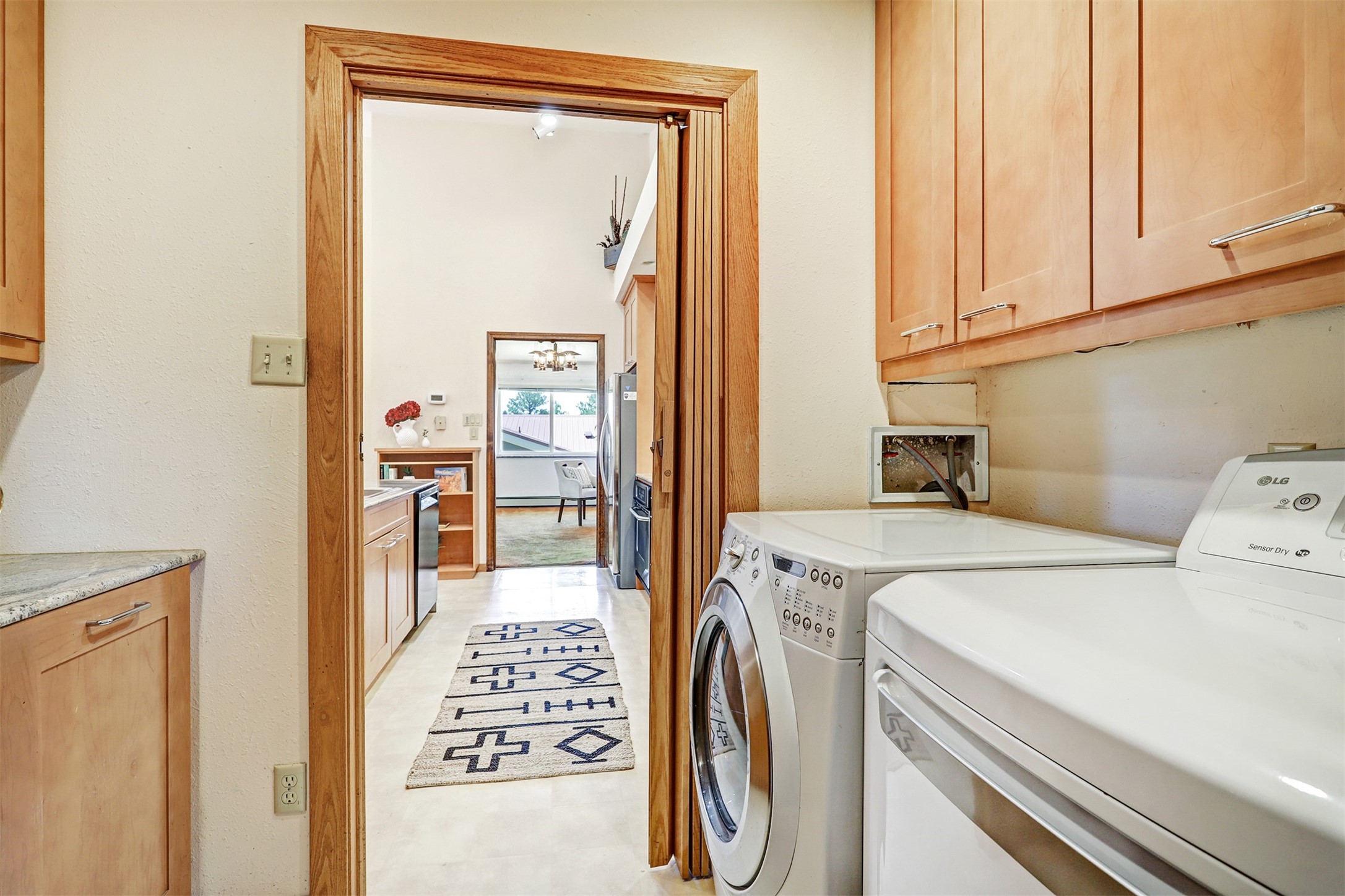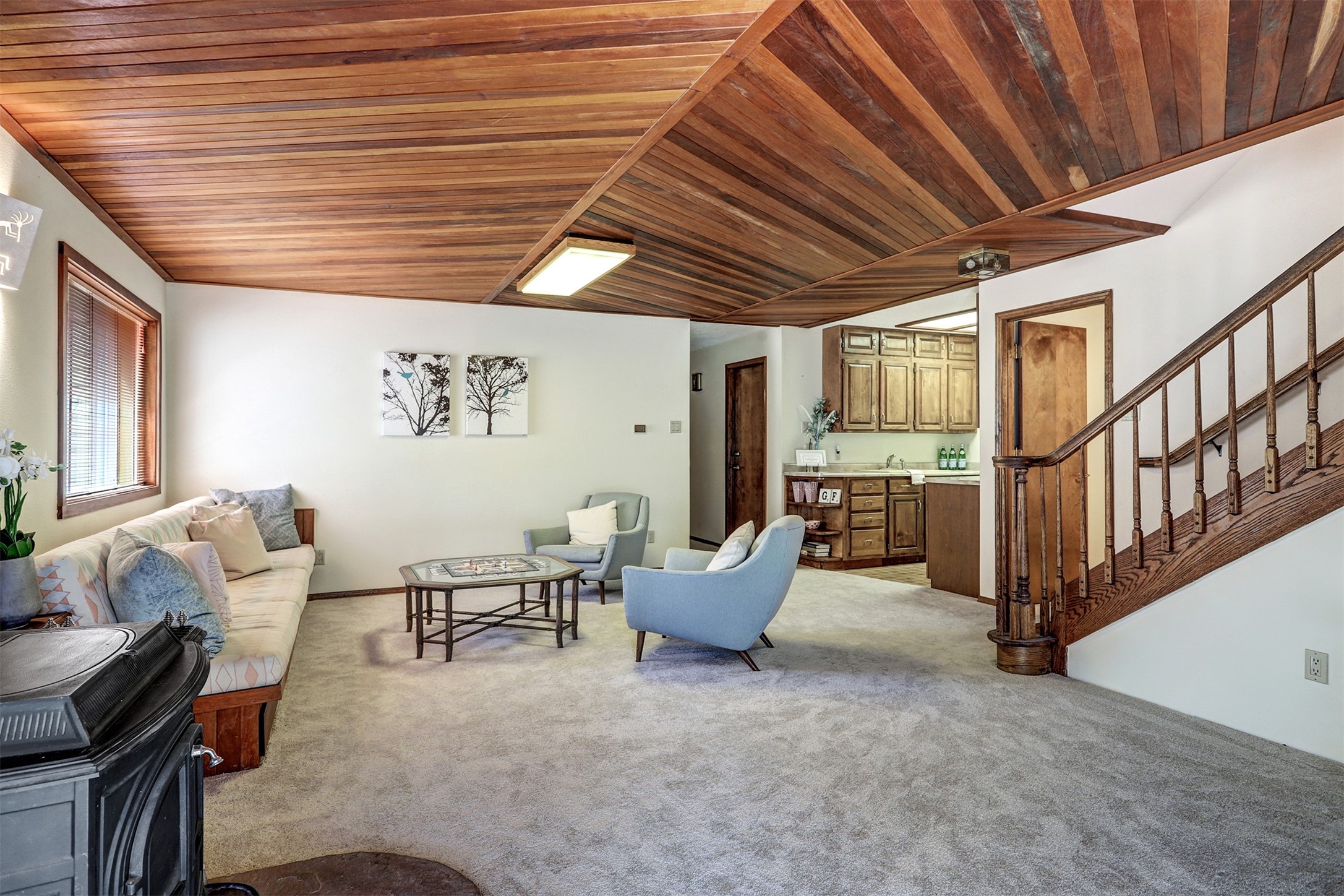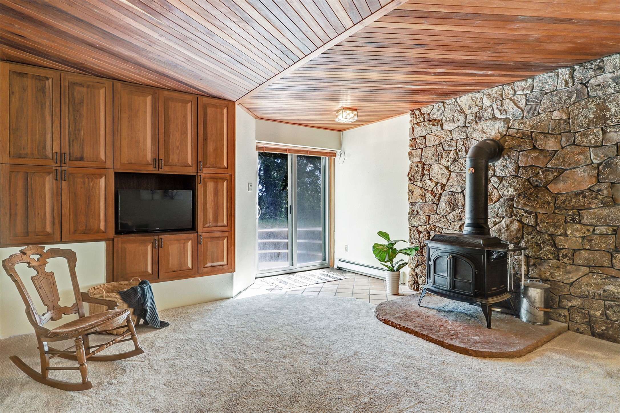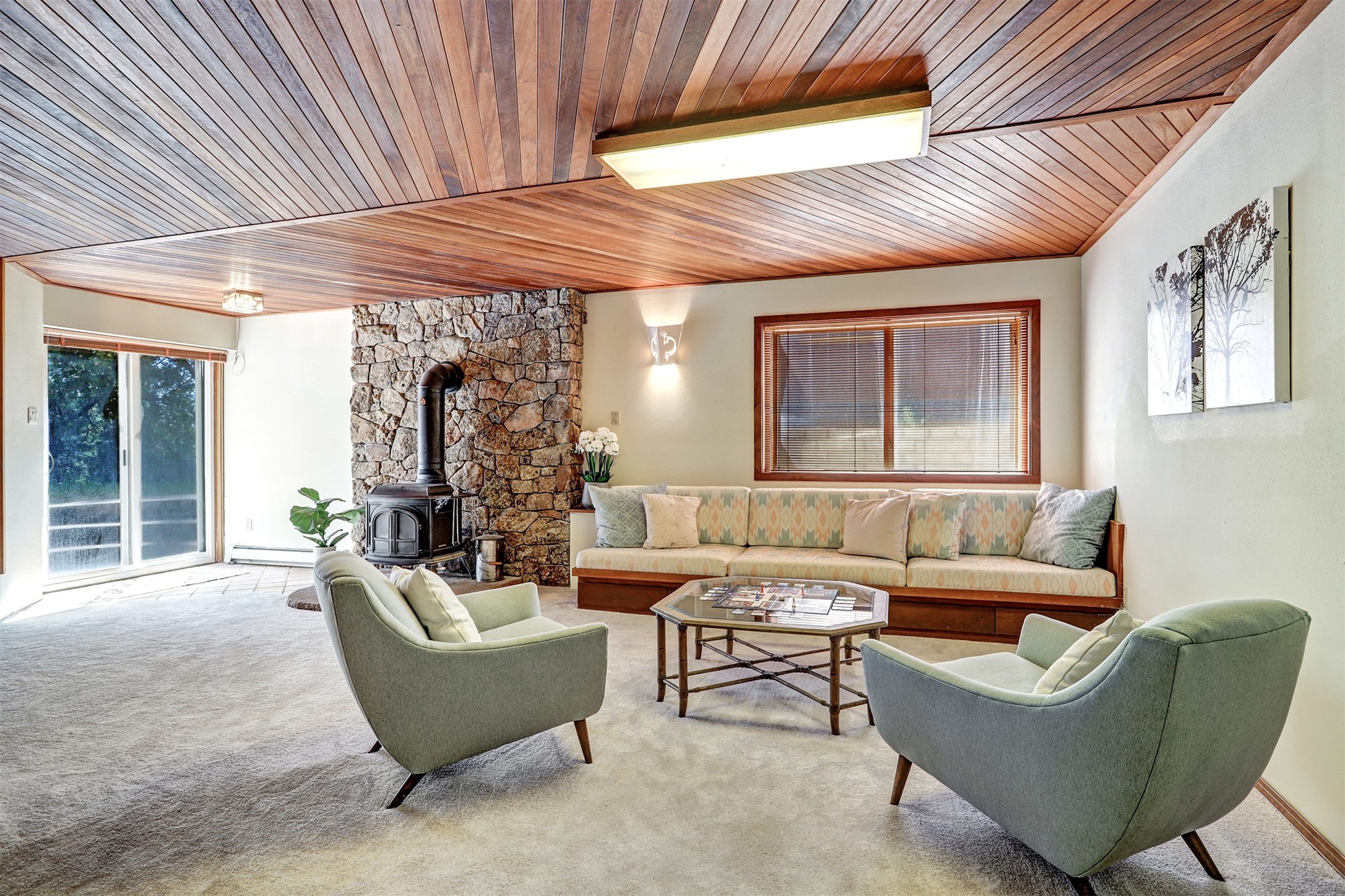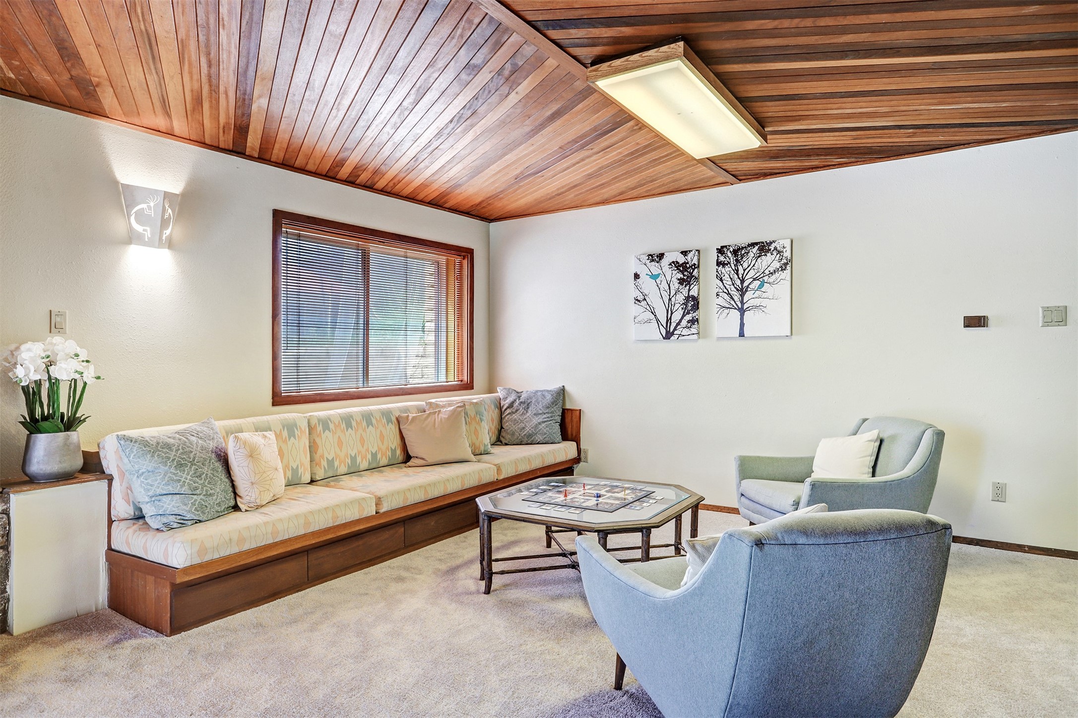 Nestled in the desirable North Mesa neighborhood, this exceptional two-story home offers privacy, natural beauty, and spacious living. Backed directly to the canyon, the property provides an unparalleled sense of peace and open space right from your backyard. The main level welcomes you with a beautifully updated kitchen, featuring maple cabinetry, granite countertops, double ovens, and ample storage perfect for culinary enthusiasts and family gatherings. Just off the dining room, step onto a charming outdoor porch where you can enjoy quiet mornings and evenings with forest views. The living room is a warm and inviting space, anchored by a dramatic floor-to-ceiling moss rock fireplace and framed by large picture windows that showcase the surrounding trees and greenery. This level also includes four comfortable bedrooms, a full hall bathroom, a designated laundry room, and convenient access to the attached two-car garage. Air conditioning keeps this main living area cool and comfortable year-round. Downstairs, you'll find a second expansive family room with striking Philippine mahogany ceilings and a versatile wet bar or kitchenette ideal for entertaining or multi-generational living. Two additional bedrooms provide flexible space, each outfitted with rich Mansonia African walnut cabinetry, and one featuring gorgeous Iroko African teak wall paneling. A large bathroom with double vanities and a jetted tub serves this level. Two spacious storage areas offer plenty of room for organization, one of which was previously used as a workshop. A dedicated wine cellar adds a special touch for collectors and connoisseurs. Outside, the lush, green backyard feels endless as it seamlessly blends into the bordering canyon. Furthermore, metal-clad siding offers durability and low maintenance exterior. With its stunning natural setting and thoughtfully designed interior, this unique property is a true North Mesa gem. Schedule a private showing today.