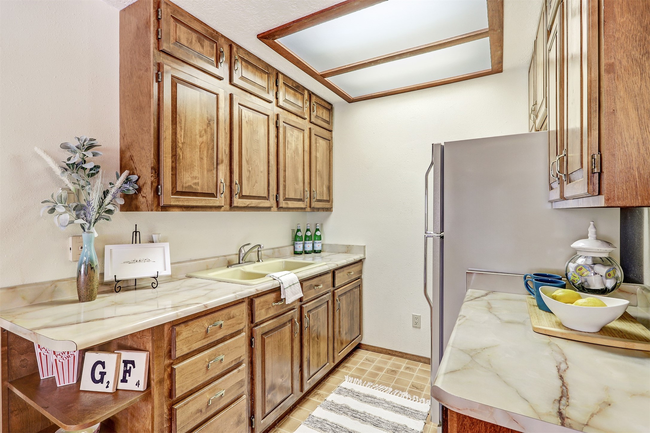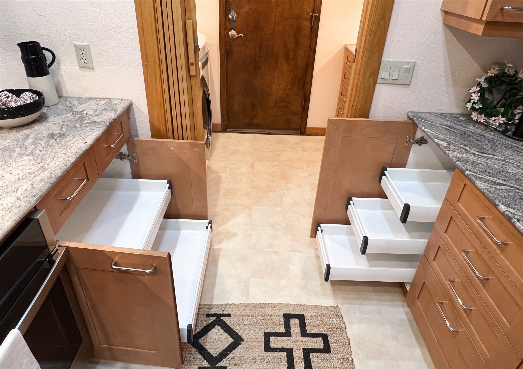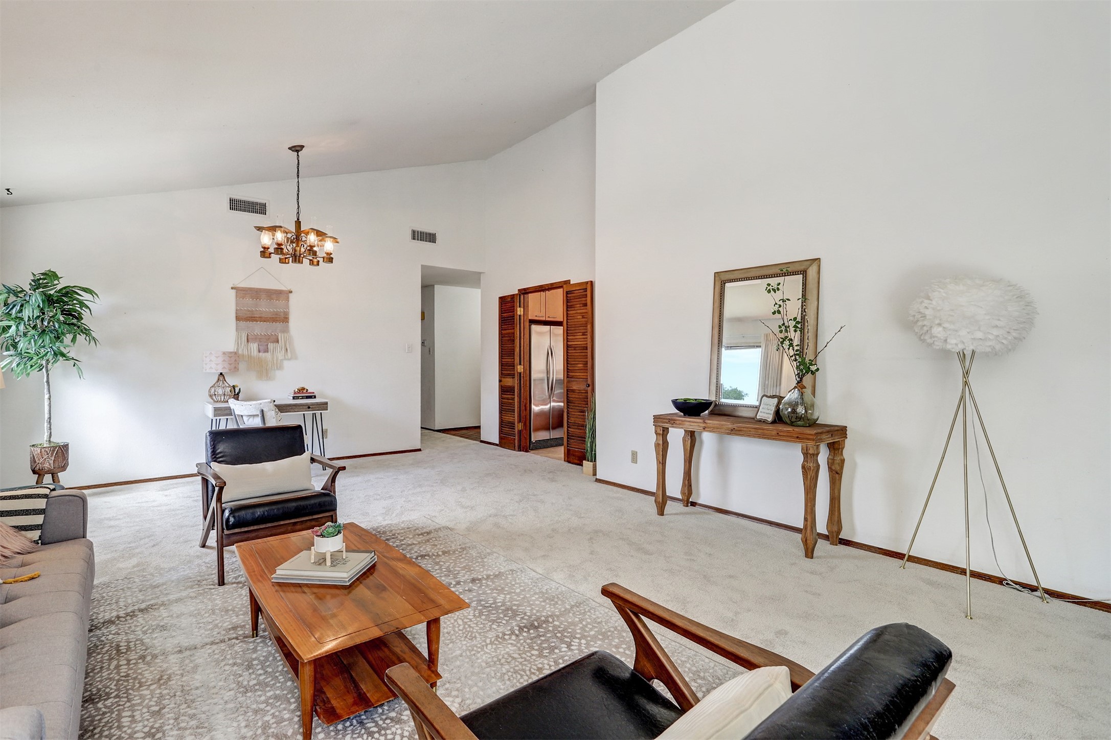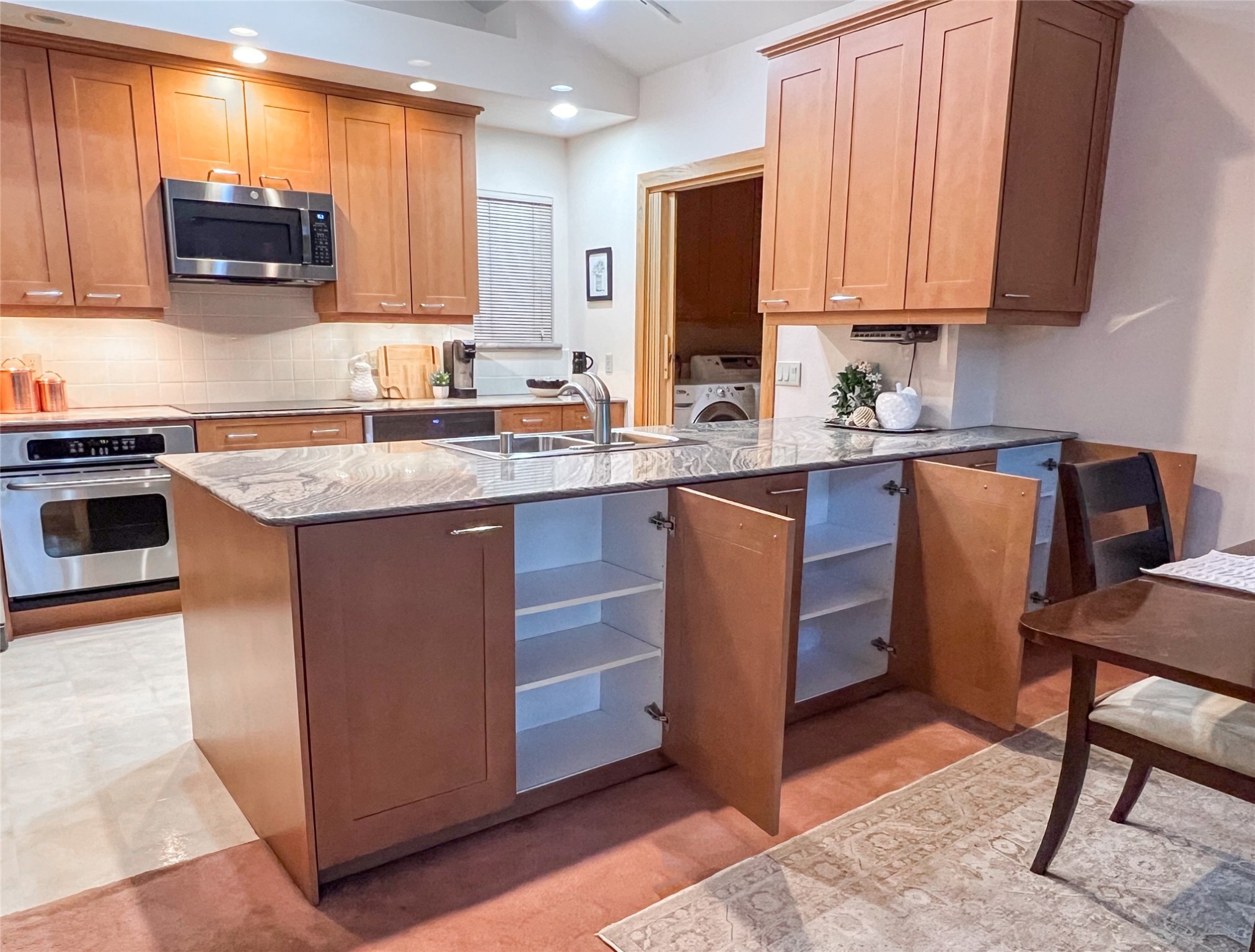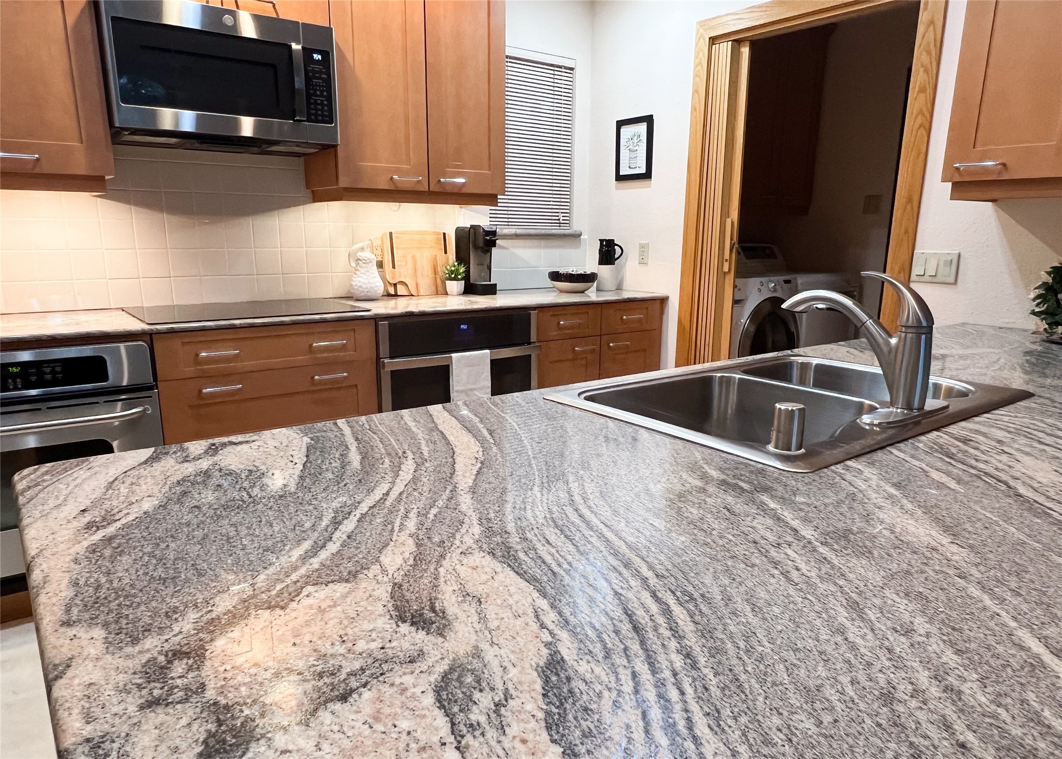 Nestled in the desirable North Mesa neighborhood, this exceptional two-story home offers privacy, natural beauty, and spacious living. Backed directly to the canyon, the property provides an unparalleled sense of peace and open space right from your backyard. The main level welcomes you with a beautifully updated kitchen, featuring maple cabinetry, granite countertops, double ovens, and ample storage perfect for culinary enthusiasts and family gatherings. Just off the dining room, step onto a charming outdoor porch where you can enjoy quiet mornings and evenings with forest views. The living room is a warm and inviting space, anchored by a dramatic floor-to-ceiling moss rock fireplace and framed by large picture windows that showcase the surrounding trees and greenery. This level also includes four comfortable bedrooms, a full hall bathroom, a designated laundry room, and convenient access to the attached two-car garage. Air conditioning keeps this main living area cool and comfortable year-round. Downstairs, you'll find a second expansive family room with striking Philippine mahogany ceilings and a versatile wet bar or kitchenette ideal for entertaining or multi-generational living. Two additional bedrooms provide flexible space, each outfitted with rich Mansonia African walnut cabinetry, and one featuring gorgeous Iroko African teak wall paneling. A large bathroom with double vanities and a jetted tub serves this level. Two spacious storage areas offer plenty of room for organization, one of which was previously used as a workshop. A dedicated wine cellar adds a special touch for collectors and connoisseurs. Outside, the lush, green backyard feels endless as it seamlessly blends into the bordering canyon. Furthermore, metal-clad siding offers durability and low maintenance exterior. With its stunning natural setting and thoughtfully designed interior, this unique property is a true North Mesa gem. Schedule a private showing today.