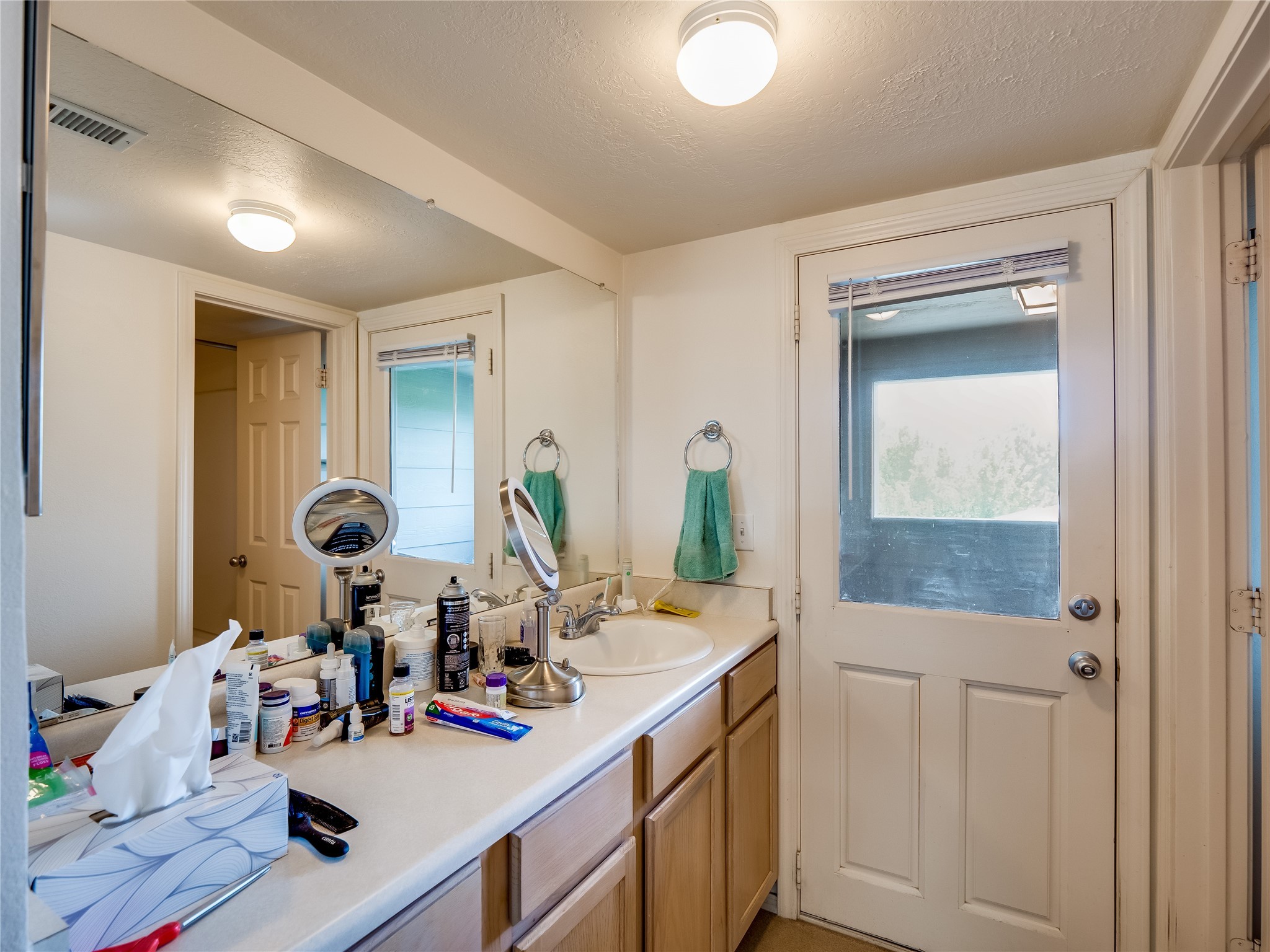 Welcome to this charming and move-in-ready multi-level condo, perfectly situated in the desirable Eastern Area of Los Alamos--just moments from parks, scenic trails, shopping, restaurants, and entertainment. This thoughtfully designed home offers spacious living across multiple levels, blending comfort with convenience. Step inside through the front entrance and onto laminate wood floors that flow through the main entry space. On this floor, you'll find interior access to the single-car garage, which also houses a washer and dryer for added convenience. Head upstairs to the inviting main living area featuring a bright and cozy living room with plush carpeting, a warm gas fireplace, and sliding glass doors that open to a private, fenced-in patio--ideal for relaxing or entertaining outdoors. Continue up a short flight of stairs to the open dining space, which overlooks the living room and connects seamlessly to the bright kitchen. The kitchen features classic wood cabinetry, white appliances, a pantry for added storage, and ample counter space. A crisp white powder room is also located on this level for guests. On the next level, two generously sized guest bedrooms provide comfortable accommodations with access to a full shared bathroom complete with a large single sink vanity and a tub/shower combo. The top floor is dedicated to the spacious primary en-suite retreat. This private level includes a large bedroom, walk-in closet, and full bathroom with a shower/tub combo and an extended single sink vanity. Step outside onto your own enclosed patio deck and enjoy peaceful views of the surrounding mountains--your very own personal sanctuary. With multiple levels of living, a functional layout, and an unbeatable location, this condo is a rare find. Don't miss your chance to call it home--schedule your private showing today!