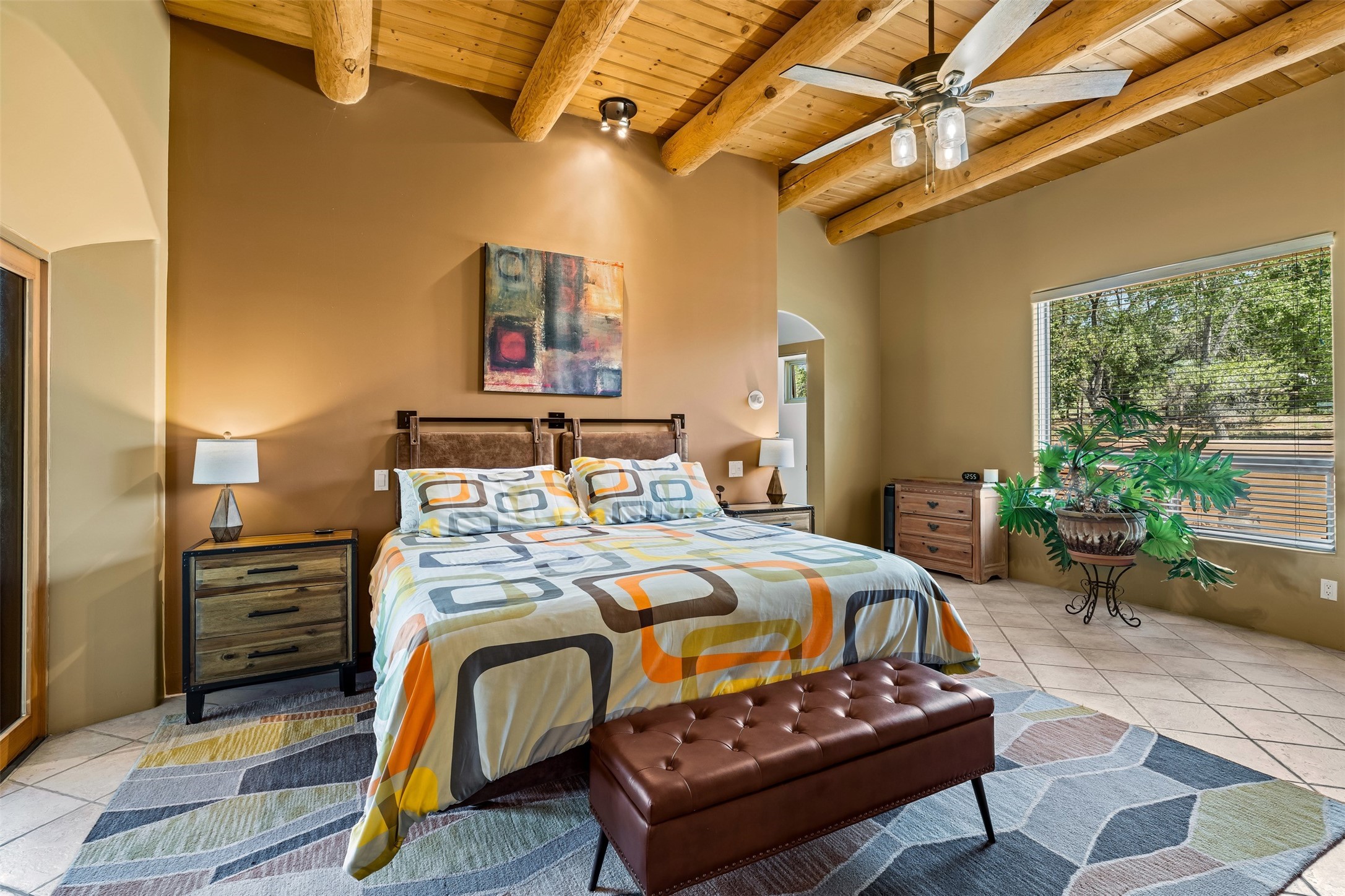 Refined Nambe Retreat with Premium Upgrades, Acreage & Iconic ViewsDiscover this exceptional Nambe property--now further elevated with thoughtful, high-end improvements that complement its natural charm and timeless Southwestern design. Nestled on over an acre of flat, lush land with a private well and acequia water rights, this home offers a lifestyle of comfort, beauty, and self-sufficiency.The property has been extensively upgraded to enhance both aesthetics and function, including a new professionally paved driveway, expanded water filtration with a reverse osmosis system, hot tub, and other improvements designed for long-term ease and enjoyment. Every enhancement reflects pride of ownership and investment in quality living. Step into the walled courtyard with mature landscaping and fruit trees, where sweeping mountain views and the iconic Sacred Heart Church create an unforgettable backdrop. Inside, the home is filled with natural light from skylights, smooth plaster walls, and charming Santa Fe architectural details like rounded walls and two traditional kiva fireplaces.The spacious, split-bedroom layout includes a luxurious primary suite featuring a soaking tub, walk-in closet, and direct access to the expansive wraparound portal--perfect for entertaining or relaxing outdoors in every season. The kitchen is a culinary highlight, boasting granite countertops, premium appliances, and a wall of windows that frame the surrounding beauty.A private guest wing offers flexibility with a bonus room ideal as a studio, office, or additional bedroom. Recent system upgrades also include a newer furnace, leach field, a 2022 roof with transferable warranty, and a pre-inspected structure for added peace of mind.With unparalleled views, water access, and a list of substantial enhancements, this move-in-ready home offers a rare blend of rural tranquility and refined living in one of Northern New Mexico's most scenic enclaves.