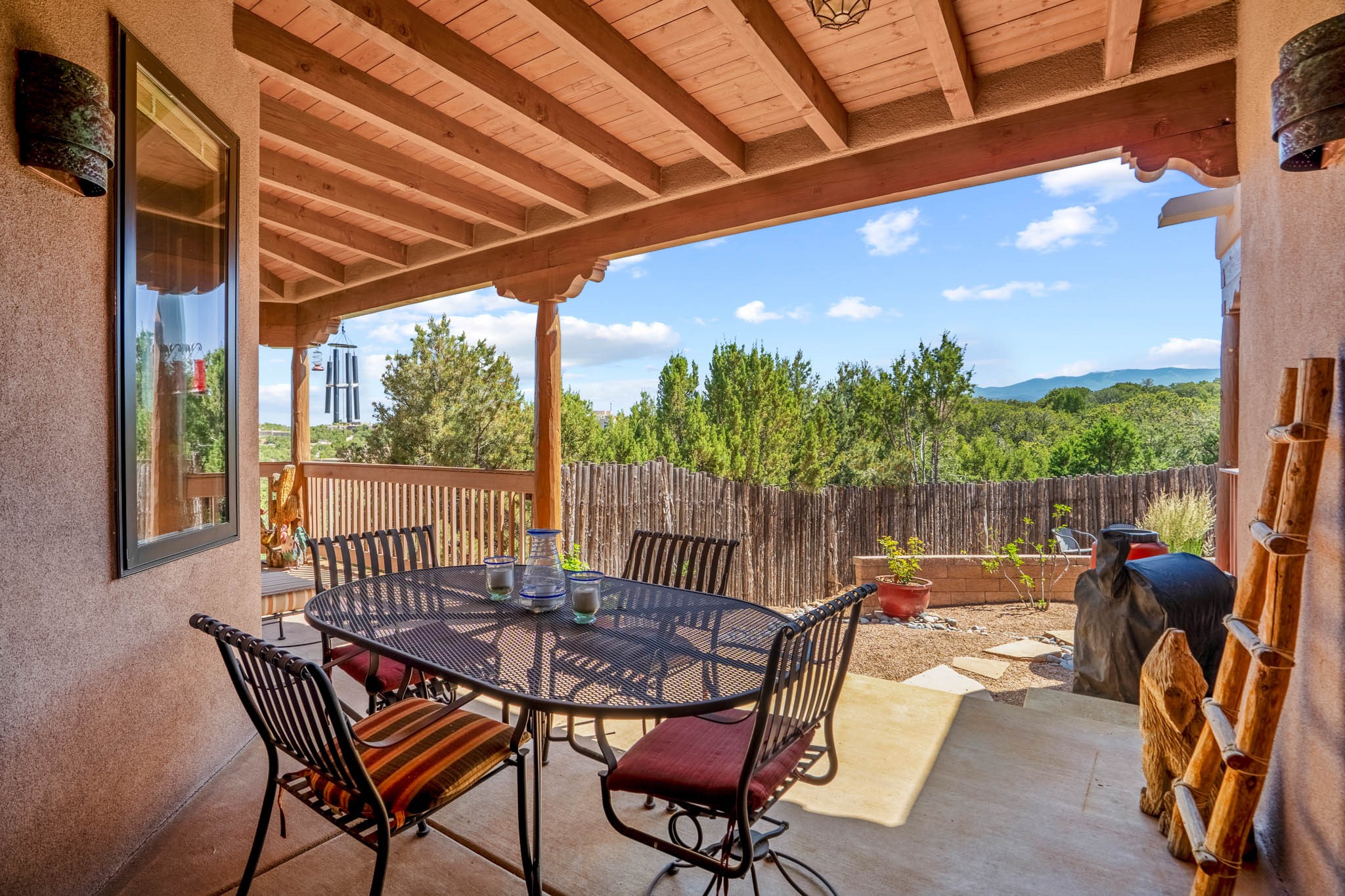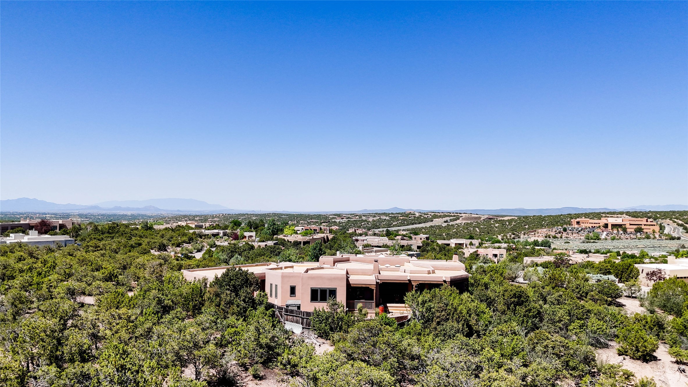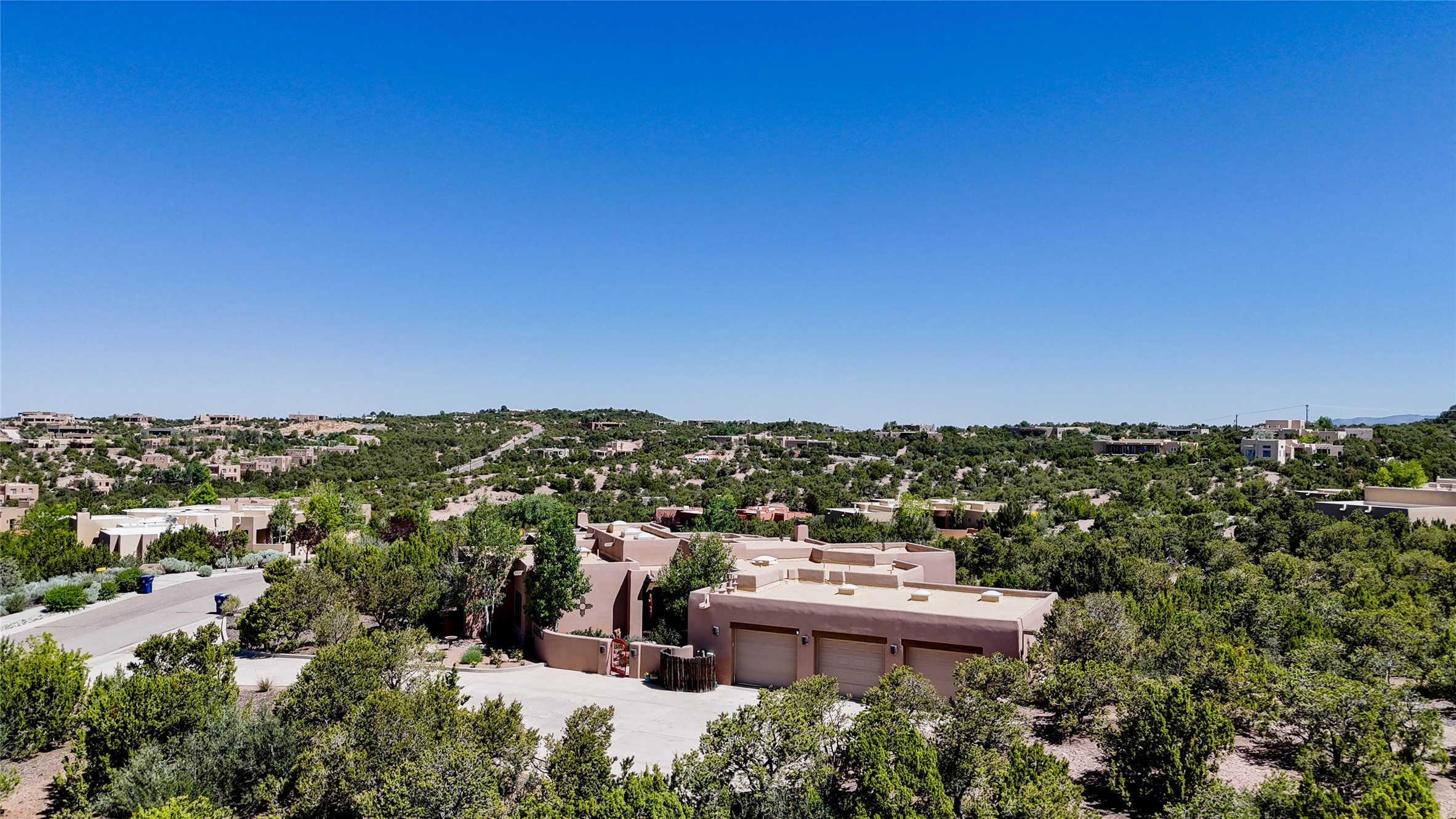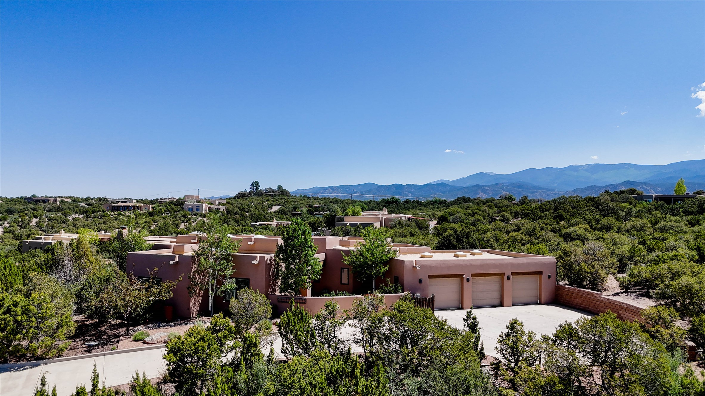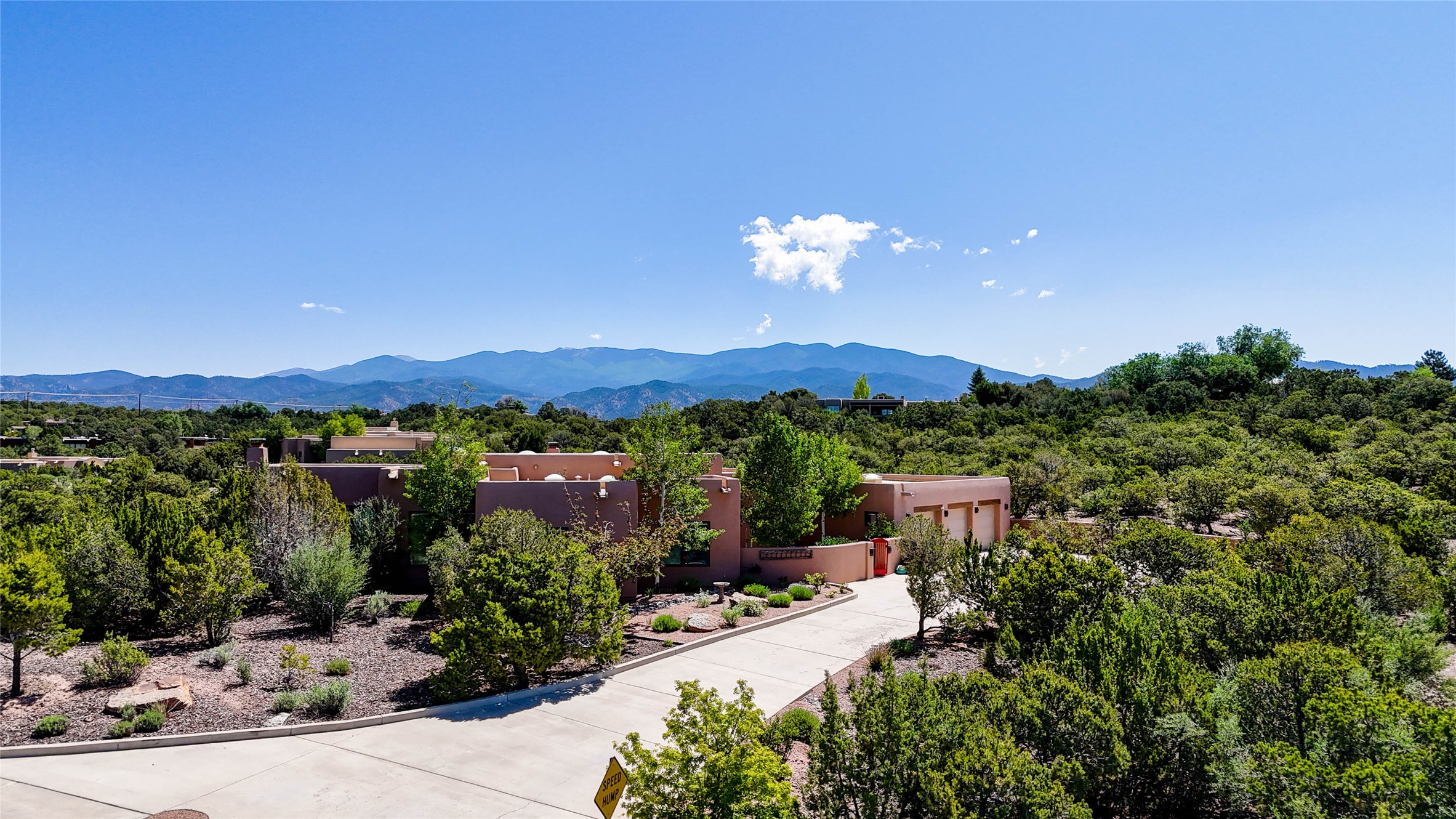 Perched on nearly 2 acres at the peak of Las Estrellas, this elegant 3-bedroom, 3-bathroom home offers sweeping views of the Sangre de Cristo Mountains and the serene lifestyle Santa Fe is known for. Just minutes from the historic Plaza, this 2771sq.ft. residence, built in 2007 by Beverly Chapman and lovely maintained by it's owners, is move in ready and full of timeless charm. Designed with both comfort and entertaining in mind, the home features a gracious floor plan with a formal dining room, living room and a cozy den anchored by a traditional Kiva fireplaces. The gourmet kitchen is a chef's dream, outfitted with high-end appliances, granite countertops and abundant storage. Additional highlights include a generous 3 car garage with built-in storage and thoughtful finishes throughout that reflect the understated elegance of Santa Fe living.