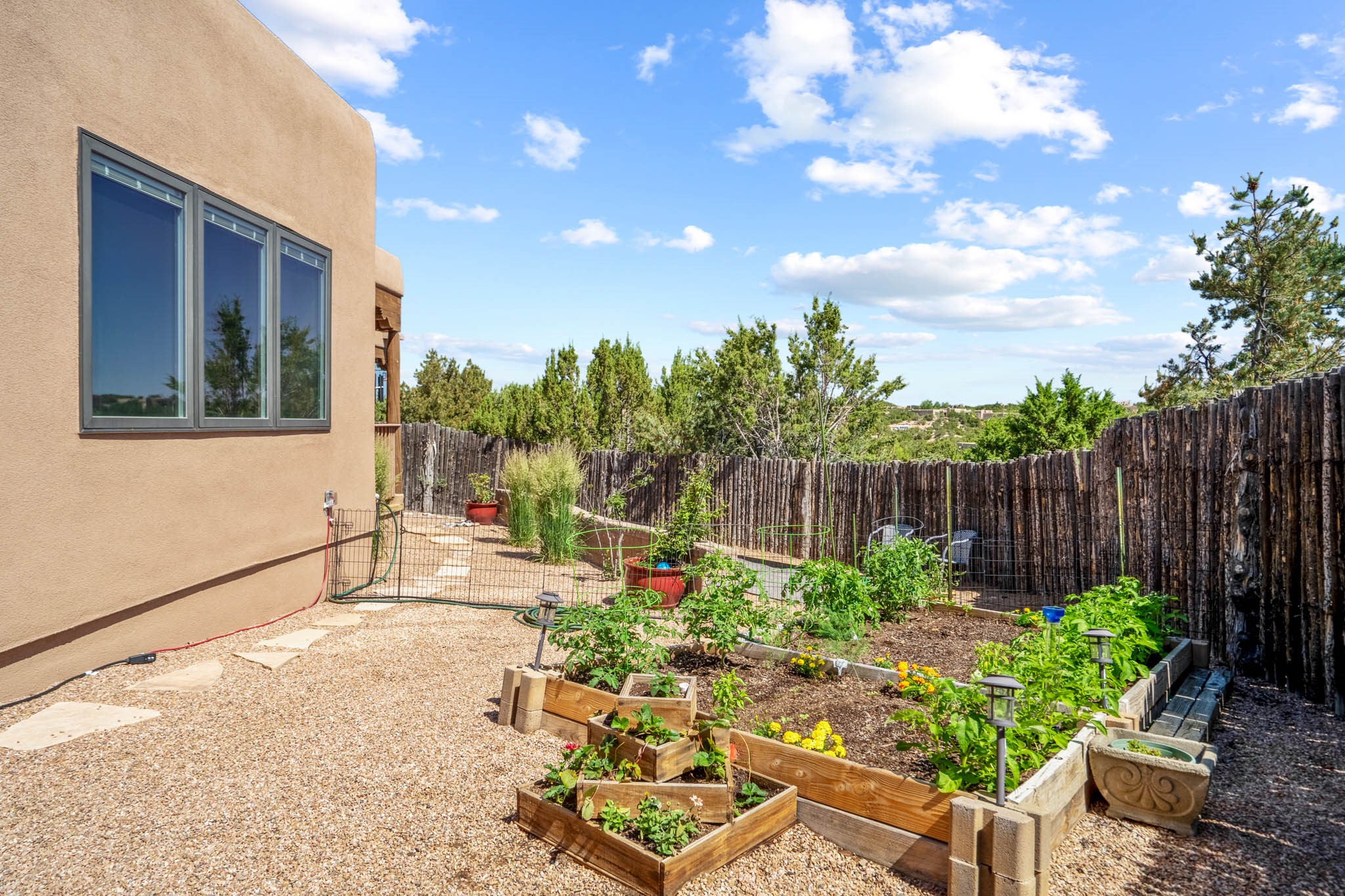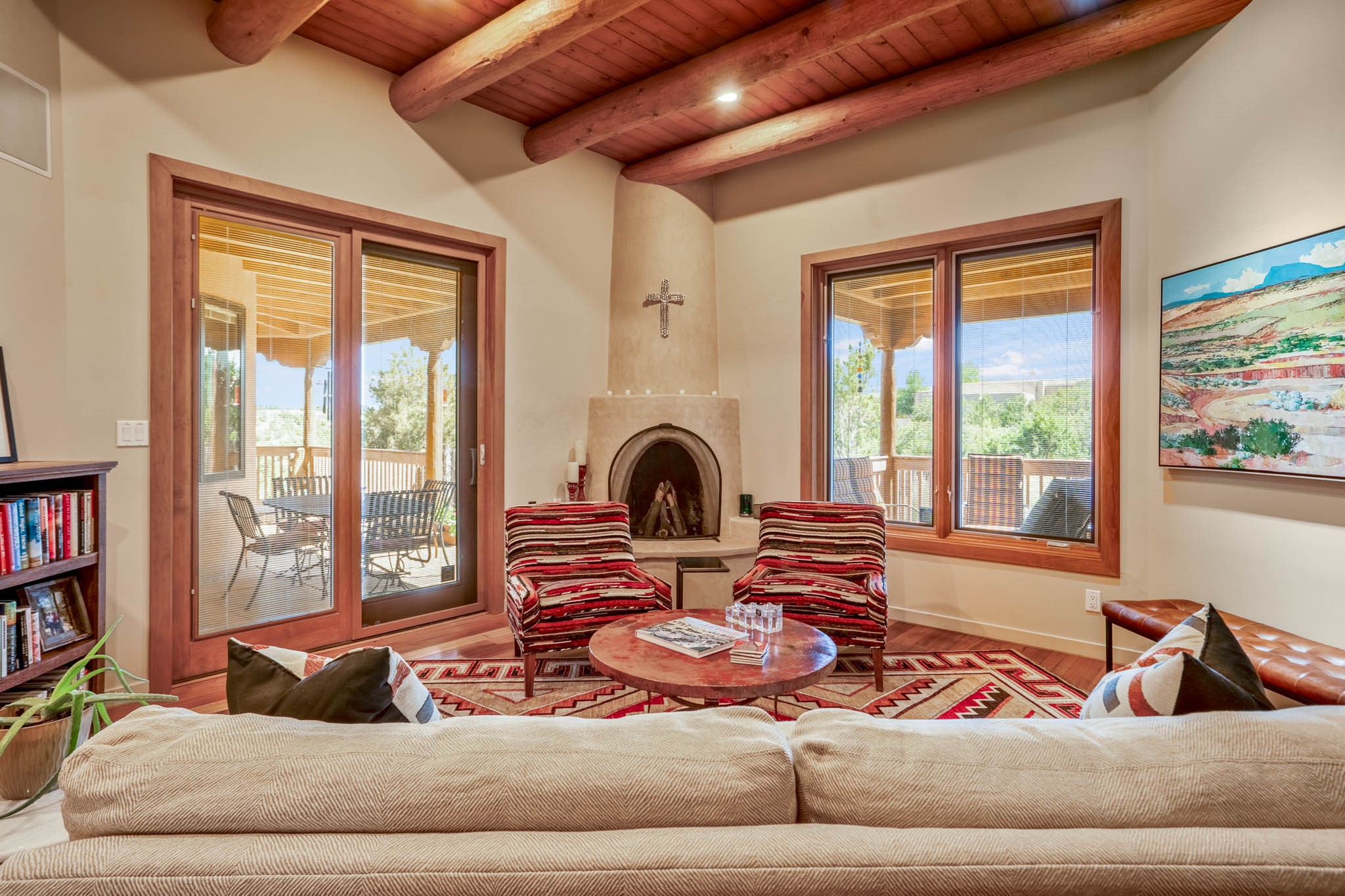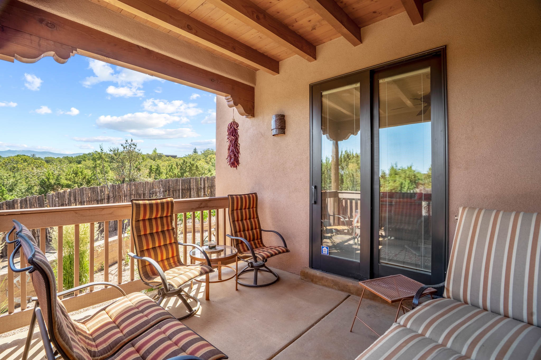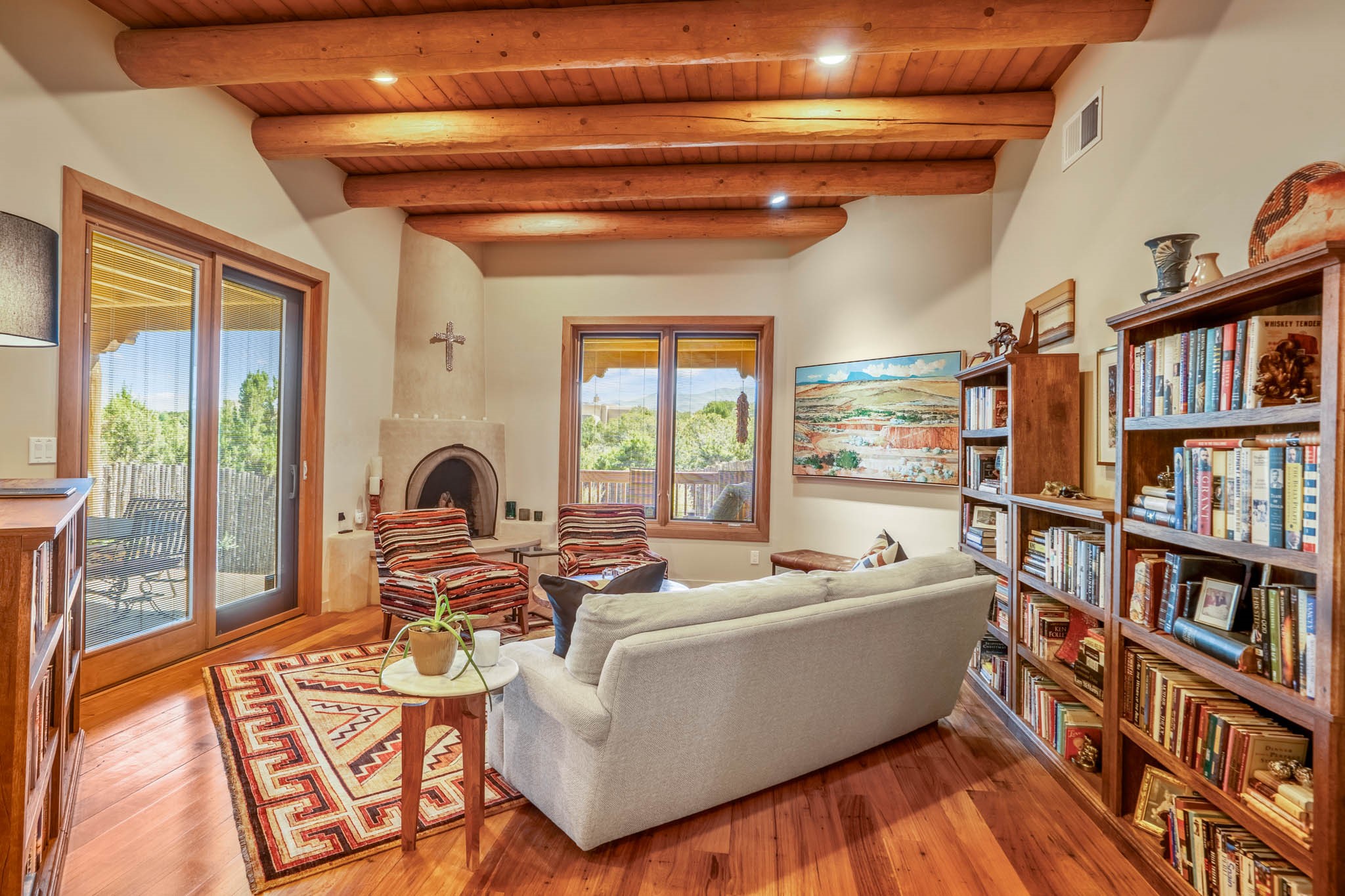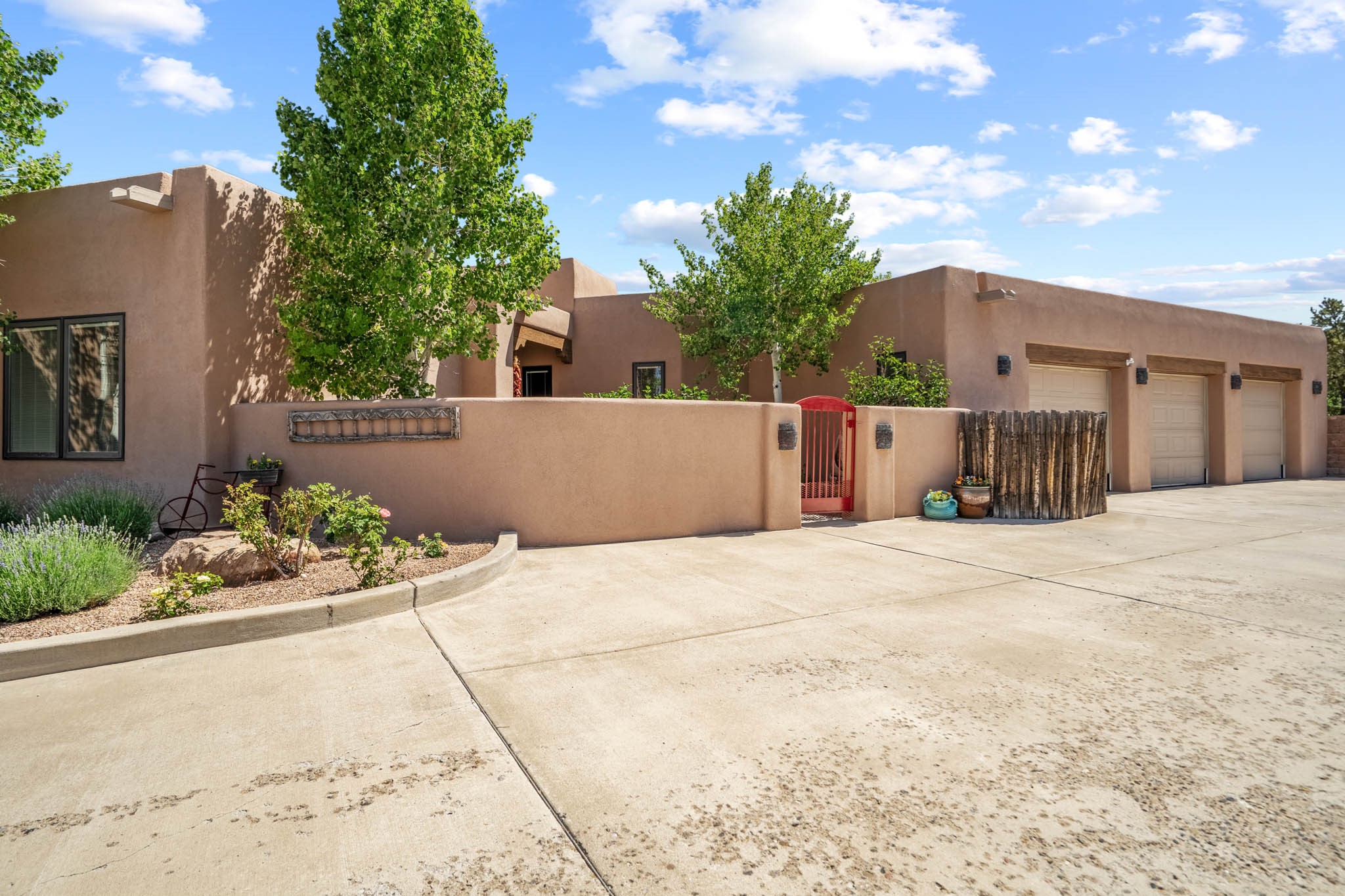 Perched on nearly 2 acres at the peak of Las Estrellas, this elegant 3-bedroom, 3-bathroom home offers sweeping views of the Sangre de Cristo Mountains and the serene lifestyle Santa Fe is known for. Just minutes from the historic Plaza, this 2771sq.ft. residence, built in 2007 by Beverly Chapman and lovely maintained by it's owners, is move in ready and full of timeless charm. Designed with both comfort and entertaining in mind, the home features a gracious floor plan with a formal dining room, living room and a cozy den anchored by a traditional Kiva fireplaces. The gourmet kitchen is a chef's dream, outfitted with high-end appliances, granite countertops and abundant storage. Additional highlights include a generous 3 car garage with built-in storage and thoughtful finishes throughout that reflect the understated elegance of Santa Fe living.