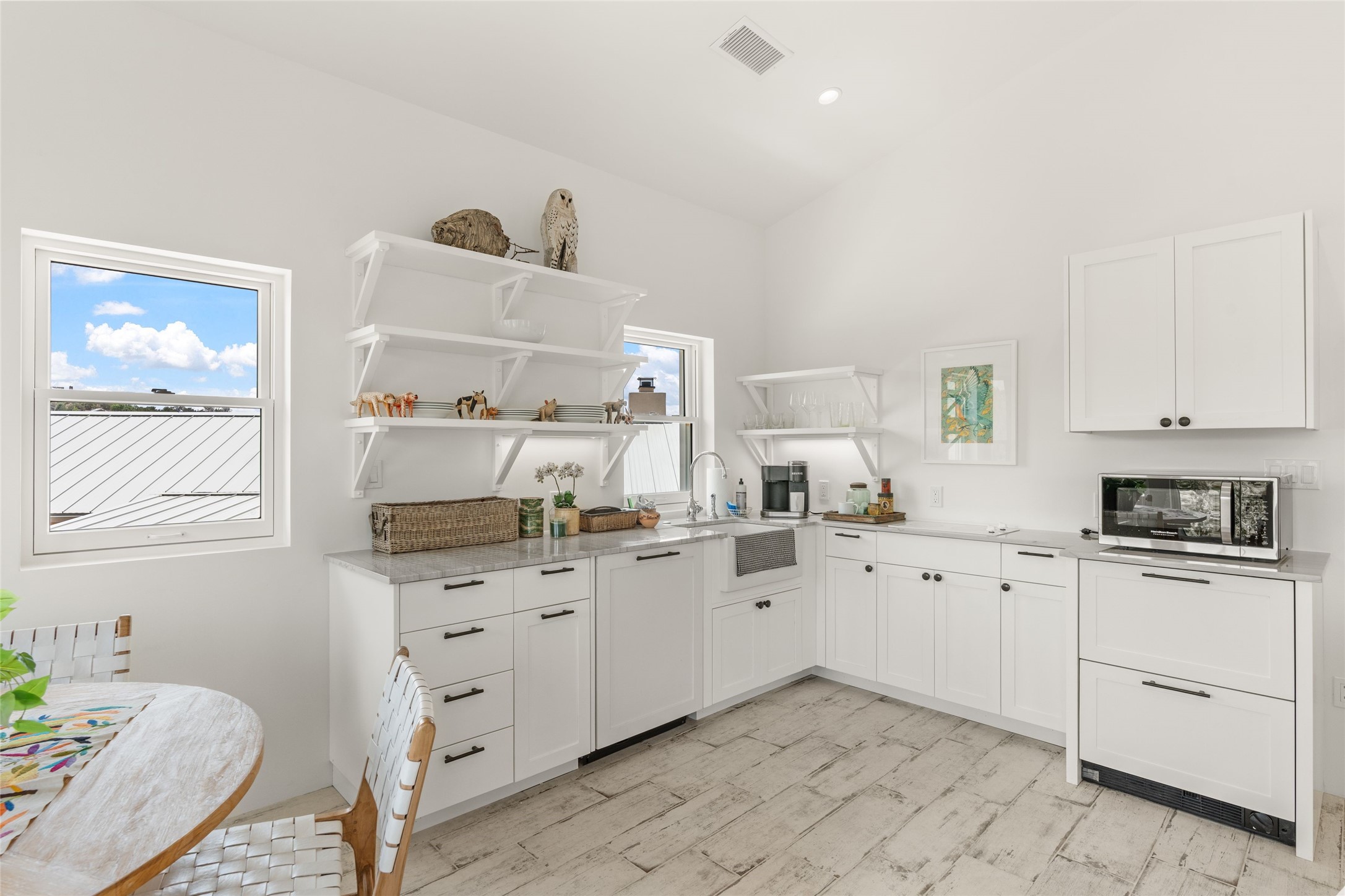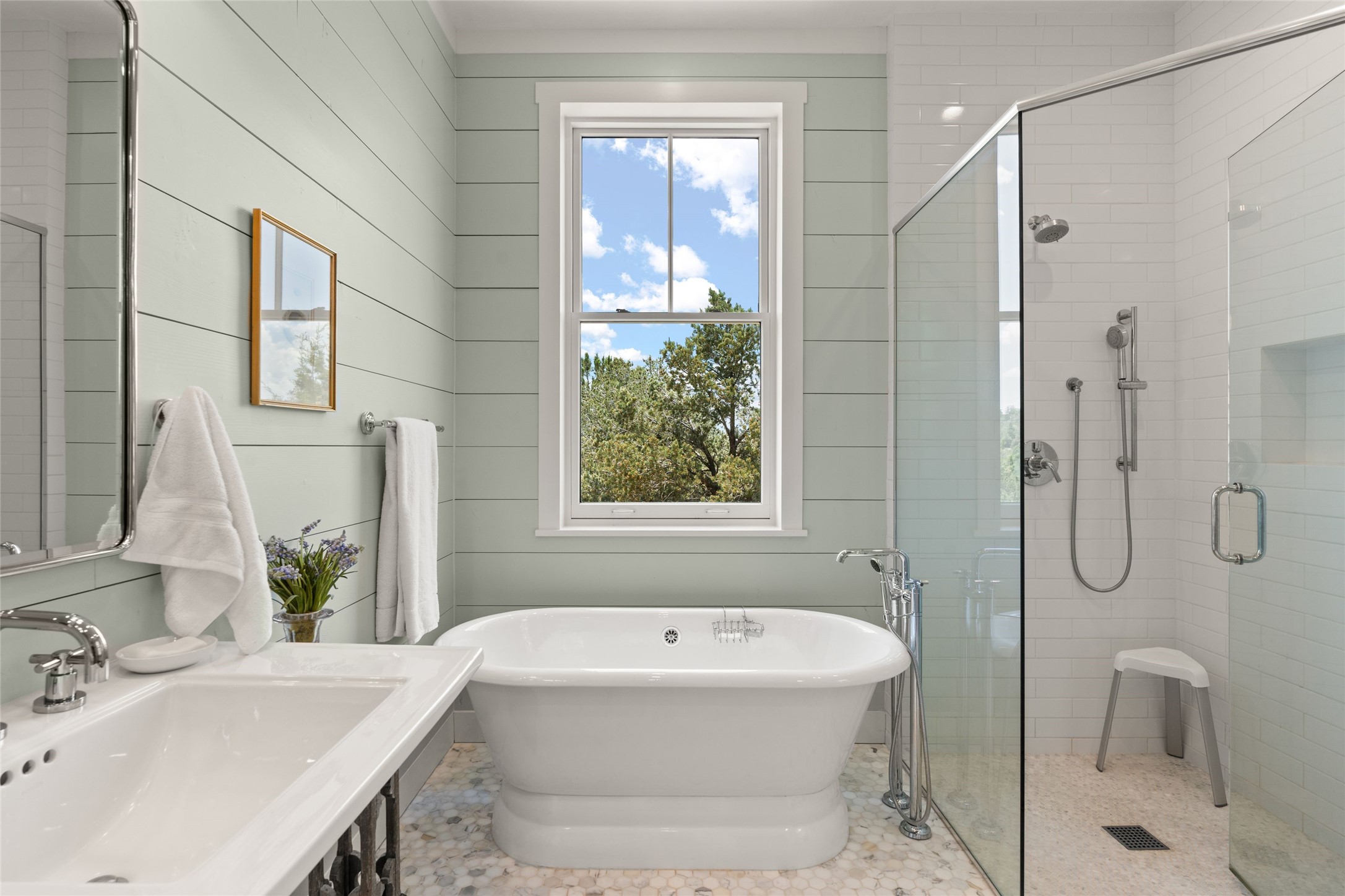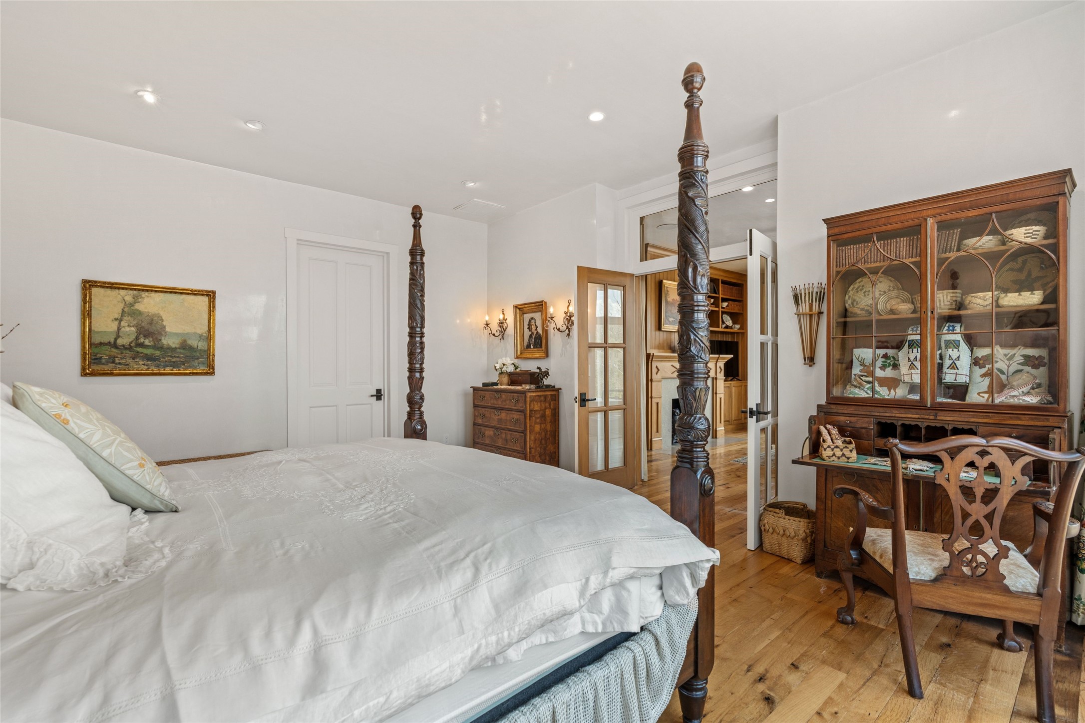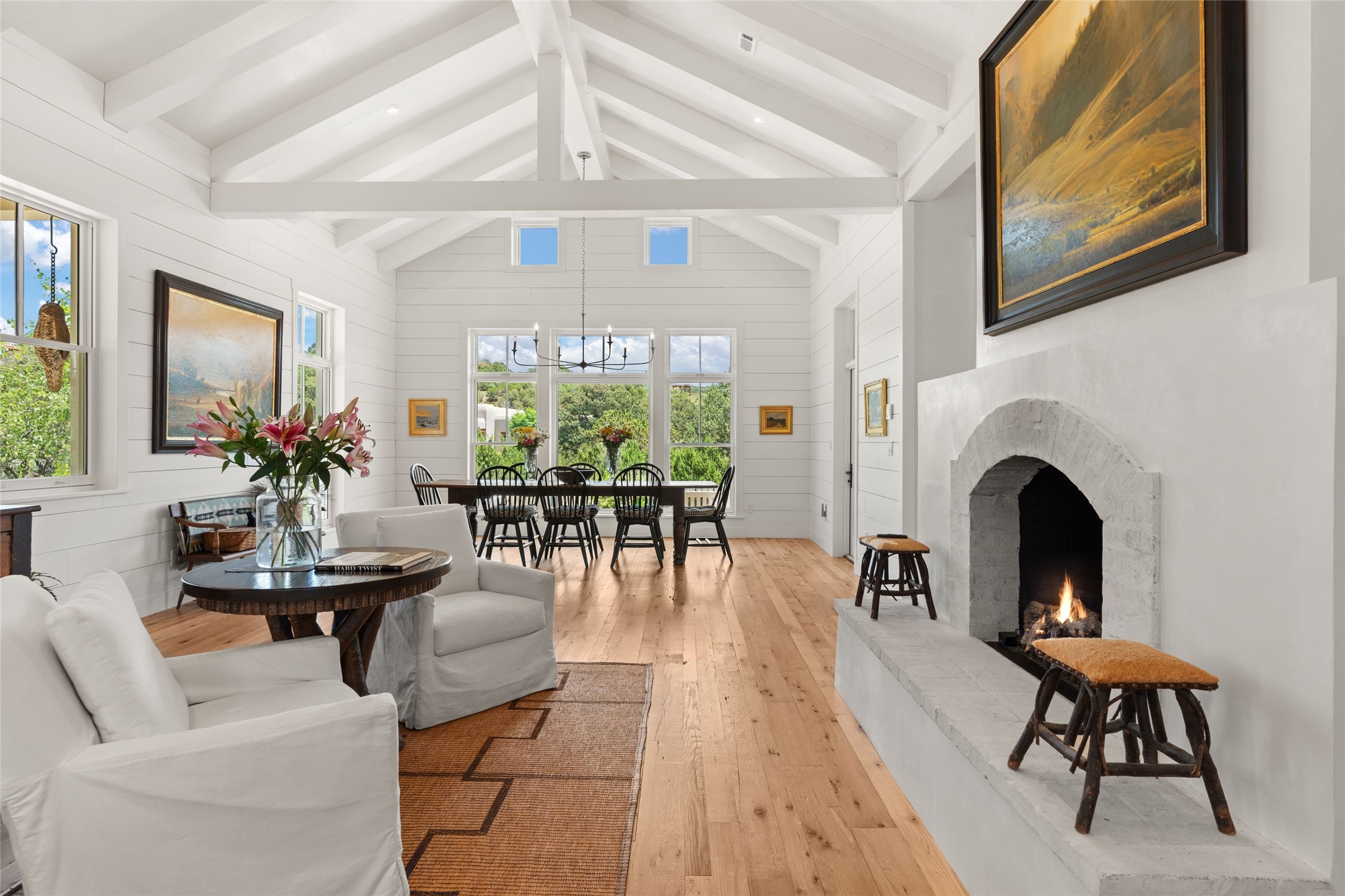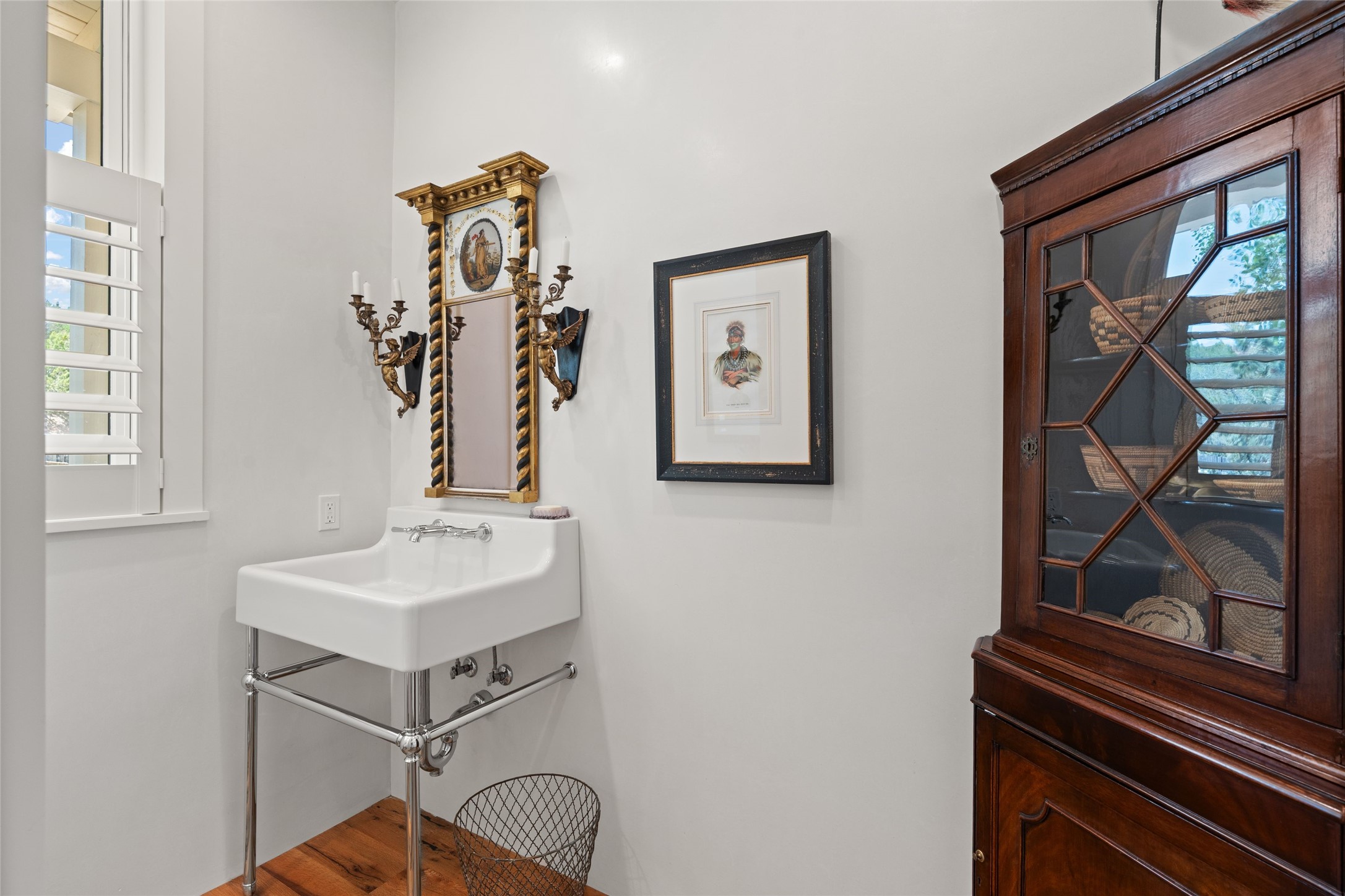 A masterpiece in Design and Location- Nestled in a premier address, this property s a gem that harmoniously blends sophisticated construction with natural beauty. Meticulously built by award winning Woods Construction, the home exudes exceptional craftsmanship, offering elegant yet comfortable living experience. Step inside to discover a space that is as gracious as it is inviting. The interior design showcases an array of unique details including: reclaimed oak floors, stunning ship-lath walls, and smooth diamond plaster that add texture and warmth to the home. Soaring ceilings and large picture windows bathe the interior in natural ight, while also framing sweeping views of the mountain desert landscape.The spacious 2 bedroom, 1 1/2 bath main house is a perfect retreat. The primary suite offers both luxury and privacy, featuring an elegant, wood paneled library that separates it from the rest of the home. A second bedroom is a versatile space that lends itself to an office, if needed.Above the detached garage, you will find a generously sized guest apartment with a living room and kitchen and offering superb views of the Sangres. Adjacent to the garage is a climatized workspace, perfect for converting into a wine cellar or studio. Spanning 2.4 acres, this lovely property celebrates the rugged beauty of the surrounding arroyo. The back portal of the main house is a protected spot for year round entertaining. This is more than a home - it is a sanctuary where every detail has been carefully considered to create a special and serene environment.