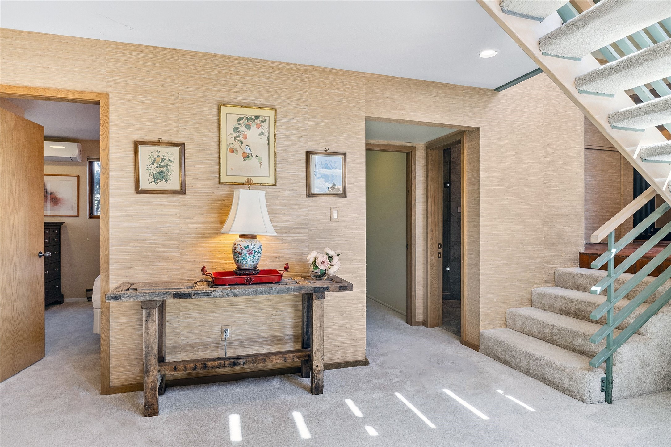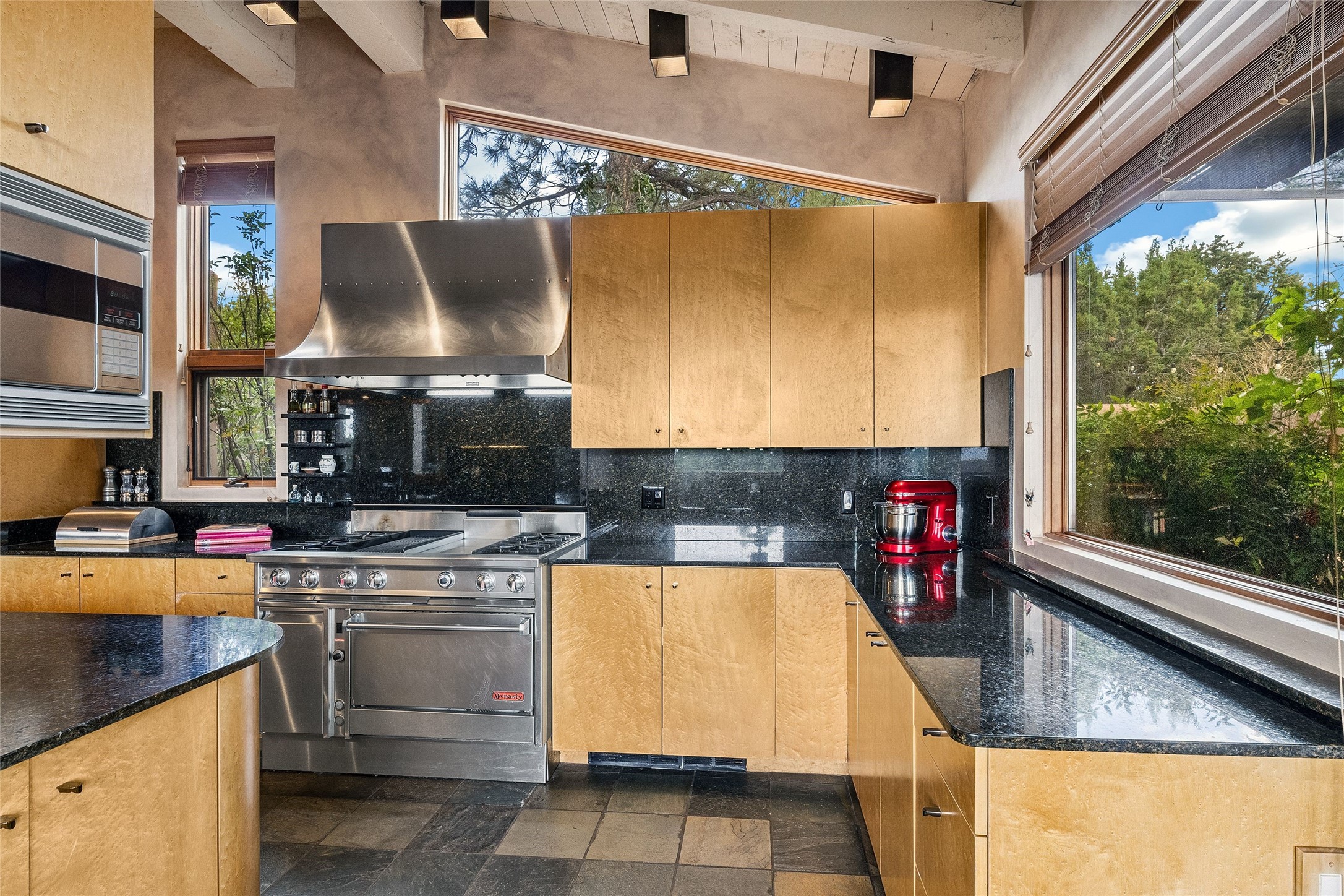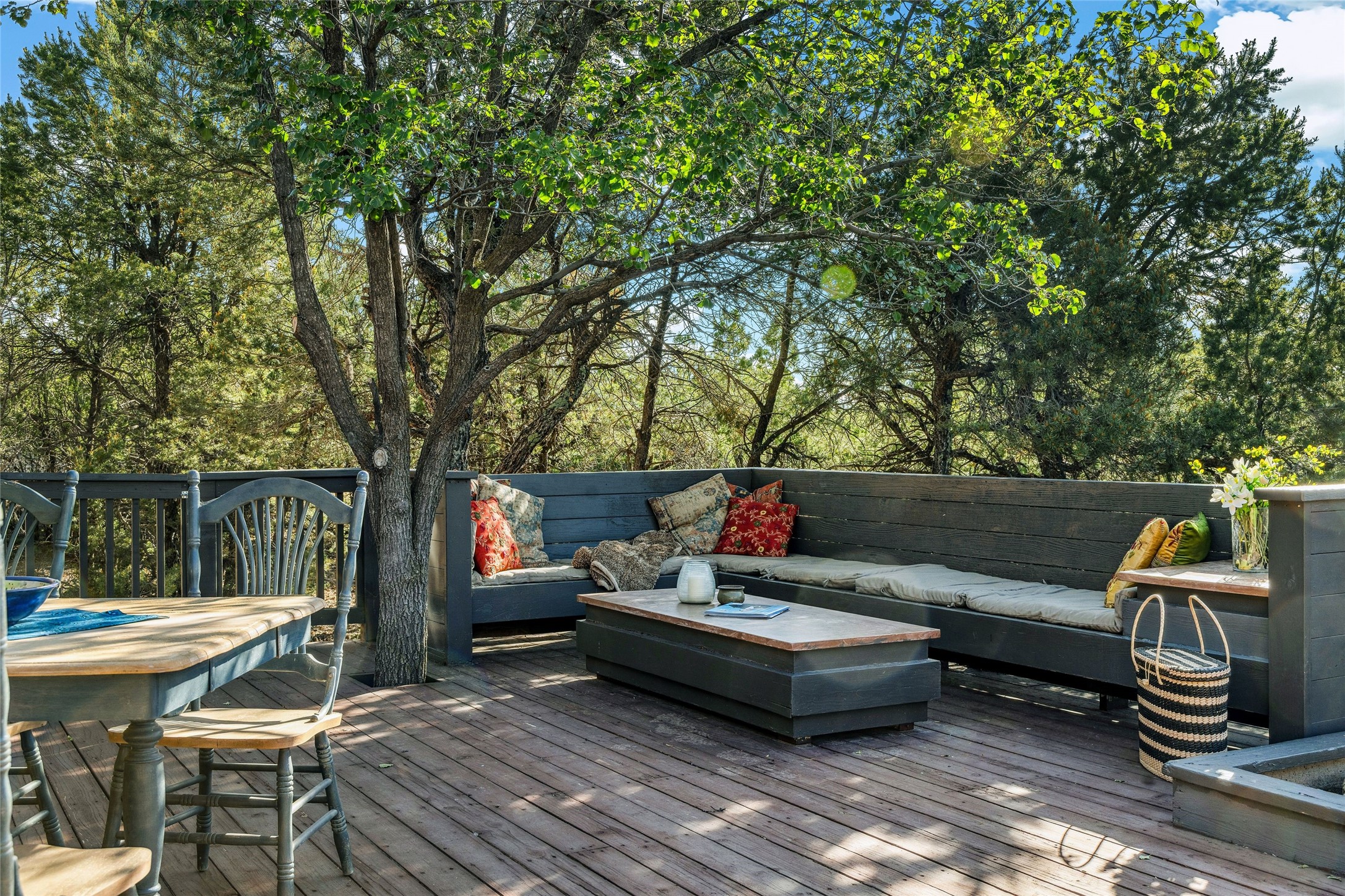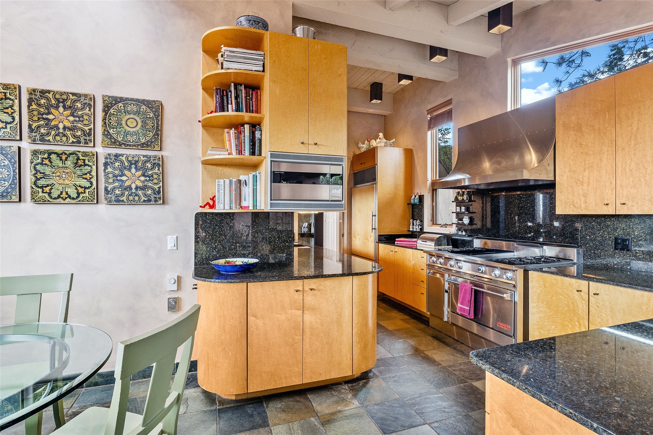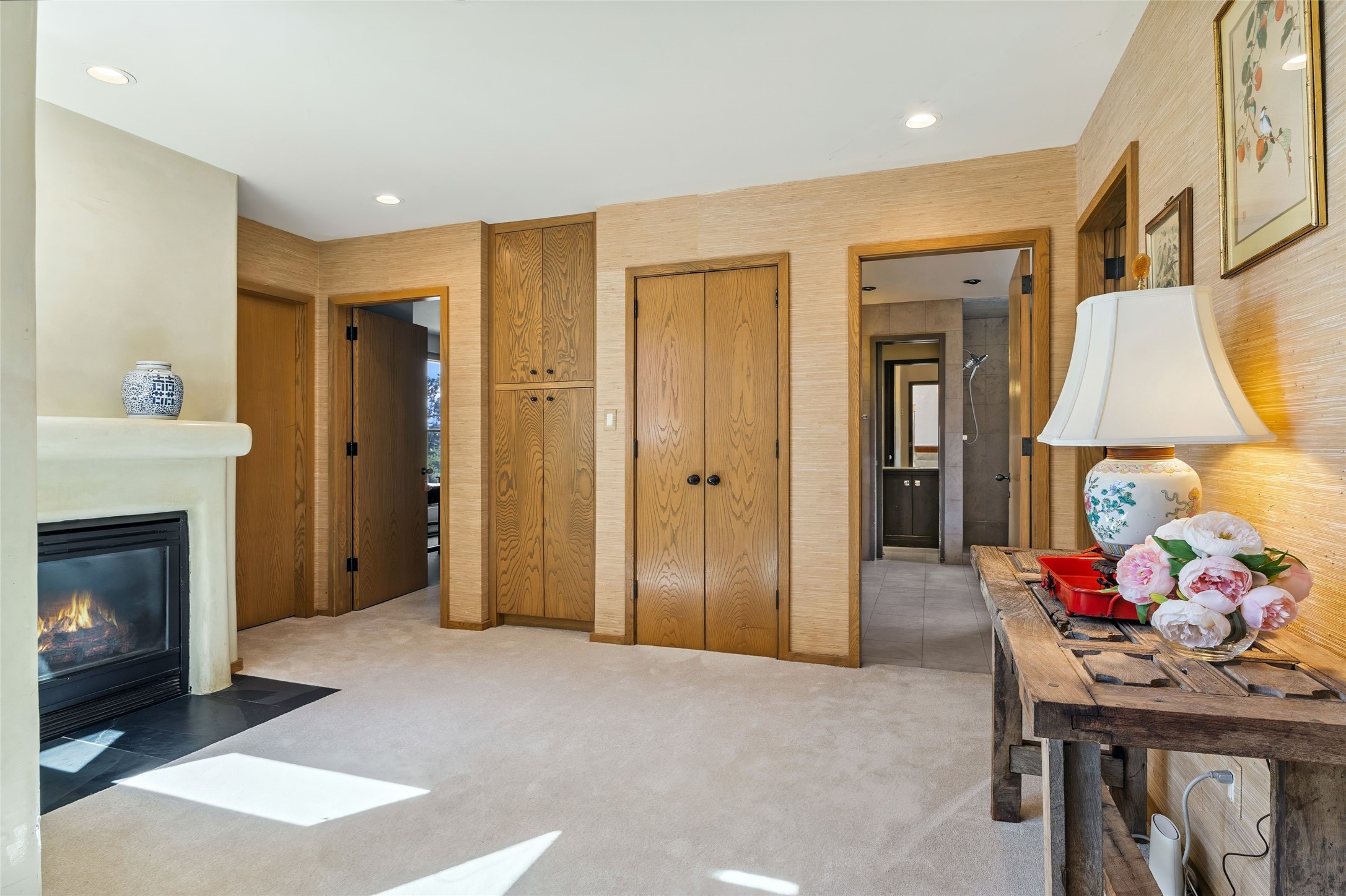 Contemporary Serenity with Panoramic Mountain Views in Vista Redonda: This gated sanctuary sits on 5.08 acres in the sought-after Vista Redonda neighborhood which is perched high on its own mesa. 54 Paseo Encantado offers awe-inspiring vistas of both the rugged Sangre de Cristo range to the east and the dramatic Jemez Mountains to the west--from sunrise to sunset, the views are nothing short of breathtaking.This architect designed 4-bedroom, 3-bath home spans 3,489 square feet and reflects a timeless contemporary design that complements its natural surroundings. With only three owners since its construction in 1973, it retains much of its original character and charm and was carefully maintained and thoughtfully preserved for over 21 years by the current owners. The layout is both functional and inviting. The main level features grand living and dining spaces that flow naturally to multiple outdoor living areas, including a deep covered portal ideal for al fresco dining. Just a few steps above the main floor is the spacious primary suite which includes a second living room with kiva fireplace and bar--perfect for quiet evenings or morning coffee with a view. Below the main level are three guest bedrooms and two baths, creating separation and privacy for family or visitors.The property includes a winding gravel drive, a two-car garage connected to the covered portal, mature native landscaping and ample flat buildable space should one wish to add a casita, guest house, or studio.A large solar array, installed in 2019, brings an added layer of energy efficiency to the property. Located just minutes from the Santa Fe National Forest, Four Seasons Resort Rancho Encantado, the Santa Fe Opera, Tesuque Village Market and approximately 15 minutes to all the cultural amenities of downtown Santa Fe, this rare offering in Vista Redonda is a private retreat with enduring style and soul.