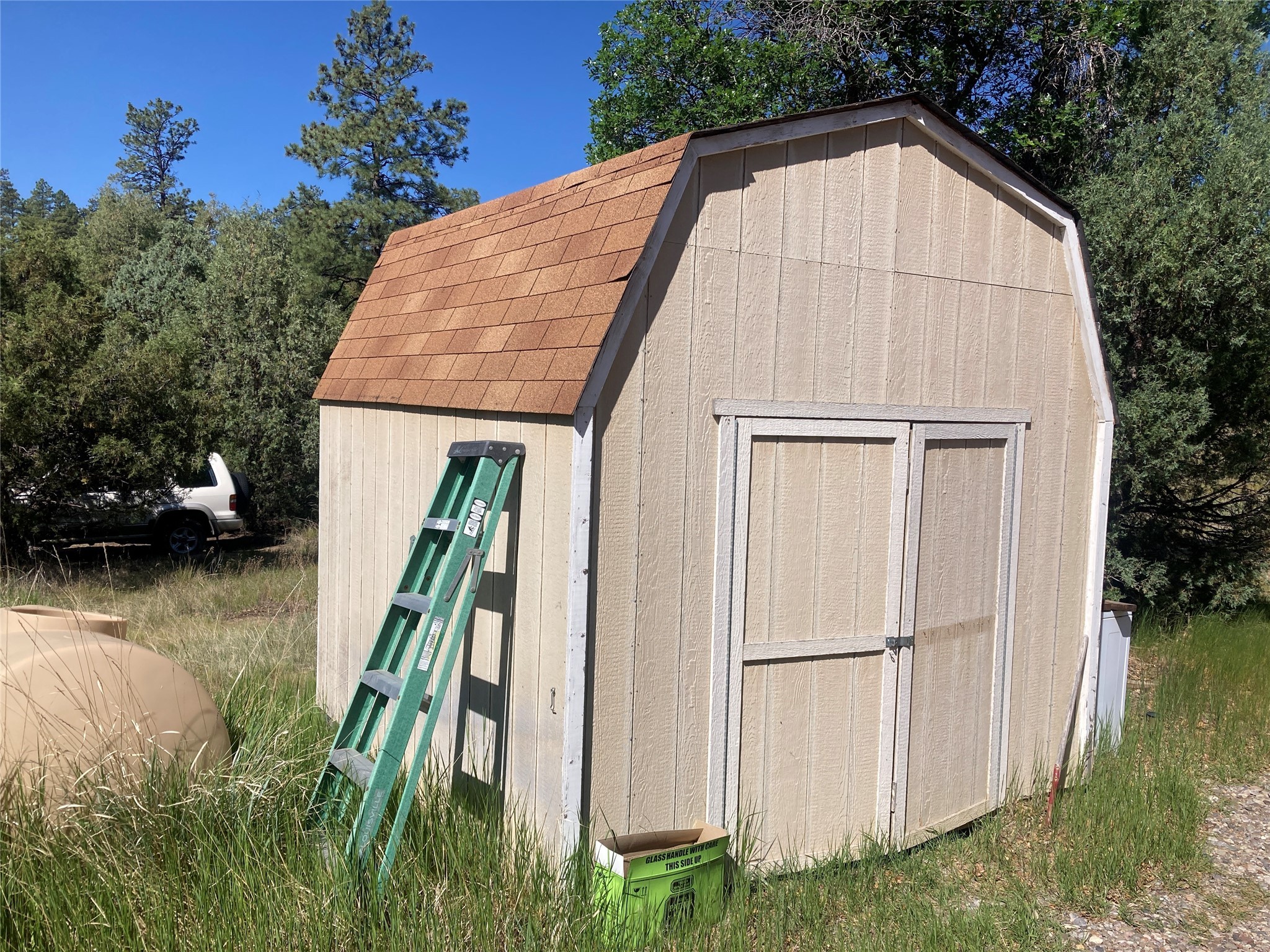 Tucked away in a quiet, gated mountain community, this rustic 4.64-acre retreat offers a blend of self-sufficiency, and charm. The cozy cabin features exposed beam construction, a warm and inviting wood stove, and a loft area that adds extra living or sleeping space. Step outside onto the large deck and take in the forested surroundings--your own peaceful getaway where wildlife and fresh mountain air abound.The property includes an existing well (functionality to be verified), plus two water catchment systems (1,700 and 500 gallons) with cisterns dedicated for both indoor and outdoor use--making off-grid living more accessible. The seller has only ever used the catchment systems during his stays at the cabin. Most furnishings will stay, making this a turnkey escape ready for your mountain lifestyle.Extras include a snow plow vehicle and a "parts" truck, perfect for those ready to take on a bit of mountain tinkering. Located in a gated subdivision with road maintenance on the main access road, this property could allow for year-round access and privacy in equal measure. Whether you're looking for a full-time home, seasonal retreat, or recreational base camp, this mountain cabin has the essentials in place and plenty of potential to make it your own.