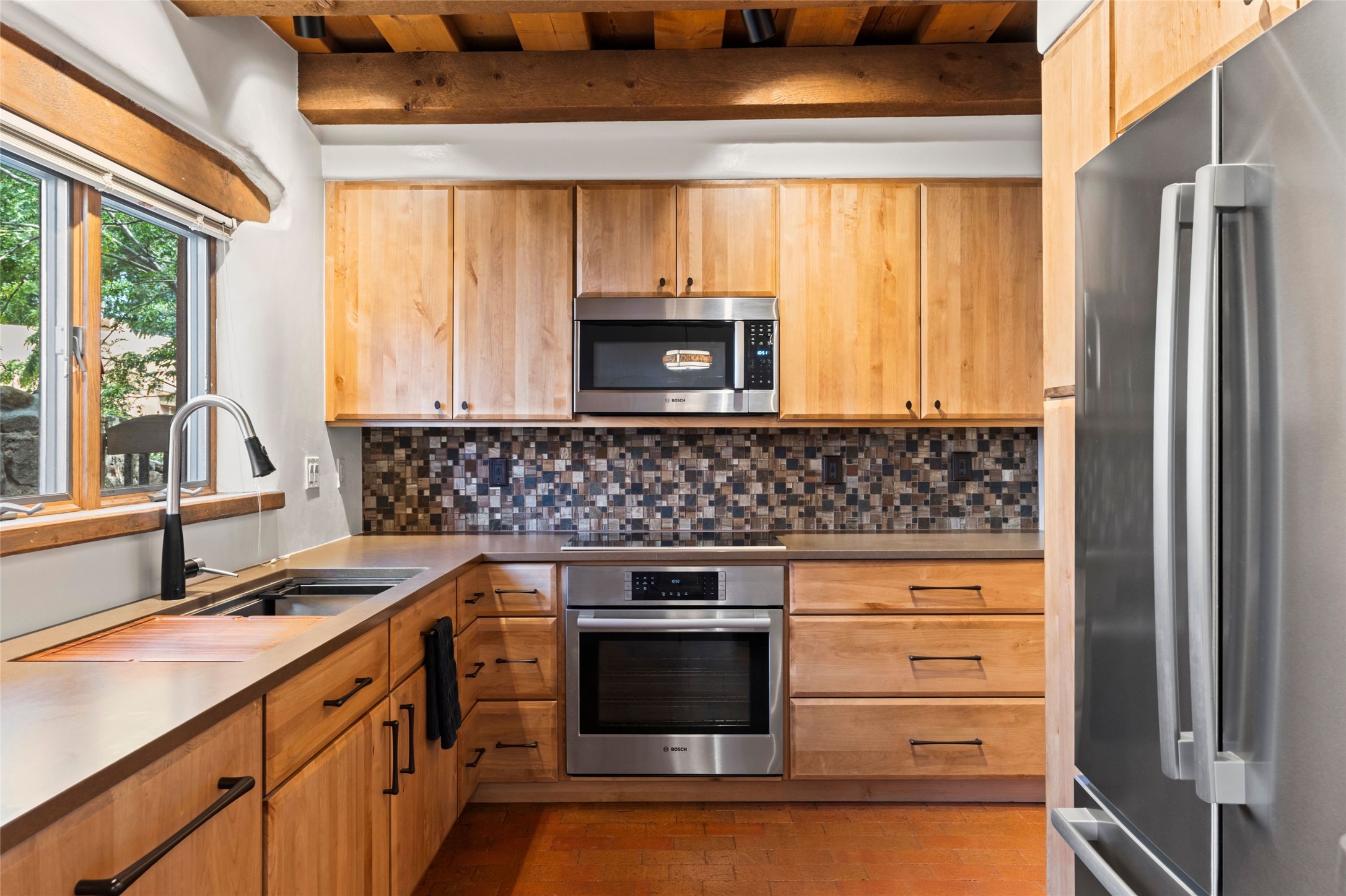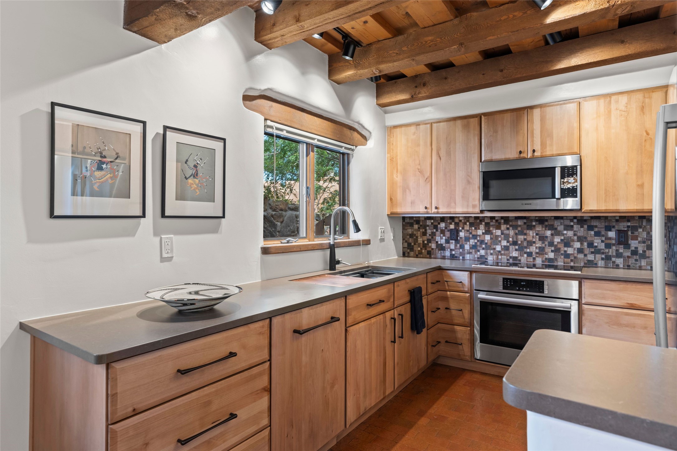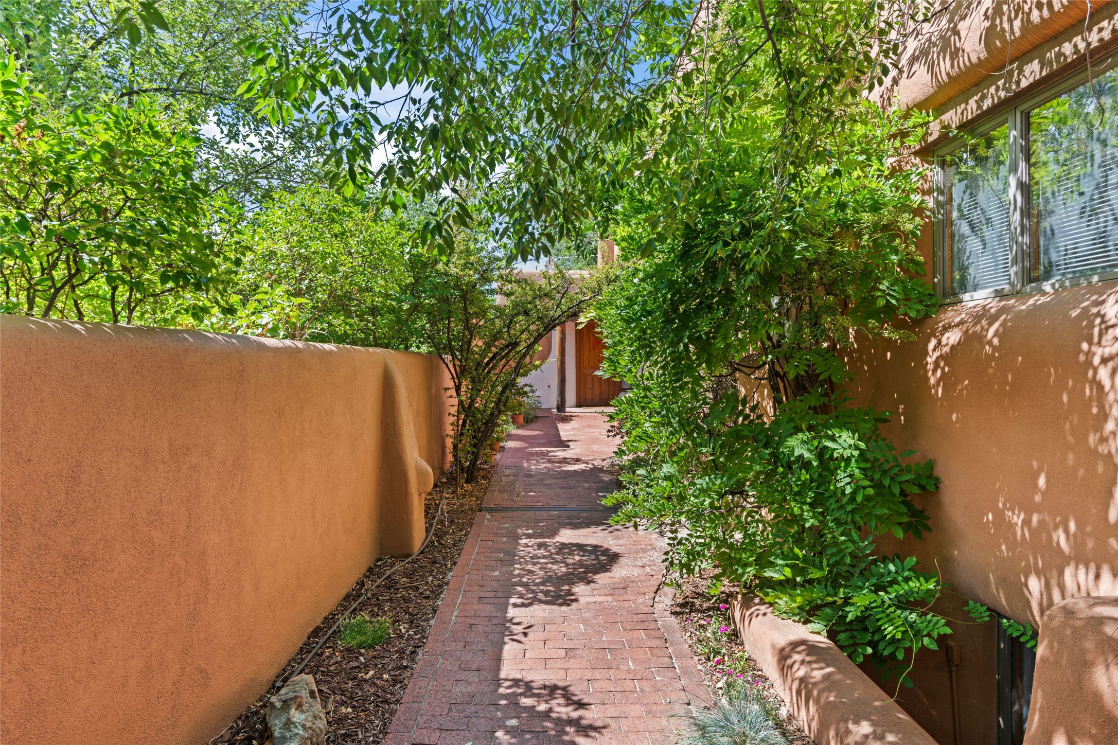 Seeking a Santa Fe getaway - escape from your busy life? This is a perfect "lock & leave" location, with no effort or concern, close the door and leave for 3 months. Seeking a rental opportunity? This condo would be a highly desirable rental because the location is what everyone wants -"walking distance to the Plaza". Seeking a precious place to call your new home? This is a perfect retreat to a town that offers the calm and serenity of Santa Fe: create your new life!Nothing says Santa Fe more than a precious adobe home, tucked into the most desirable of locations - South Capitol. And in real estate, nothing is more unique and rare than a completely renovated adobe home in Santa Fe. Ideal is the most applicable word for this condo. Ideal location because South Capitol offers such walkability/proximity - to the Plaza, Railyard District & Farmer's Market, the Lensic performance theatre, abundant choices of restaurants, Kaune's neighborhood market, multiple fascinating museums, a variety of wonderful shopping, all the well-known fiestas, markets on the Plaza, musical venues, biking, hiking, skiing, walking - anything you enjoy doing! Ideal because the location and privacy of this particular condo are unique to the center of Santa Fe. Ideal because you will never need to endure the dreaded renovation. Ideal because, as you can see from the photos, the Santa Fe details are abundant - all uniquely representing Santa Fe history & style. Every ceiling is designed with different details, hand-carved corbels and vigas, a charming and special wood burning two-sided fireplace. You will enjoy the private back yard: grassy tufts that require no effort and a patio to gather around the outdor fireplace. Will this treasure be your residence or your occasional escape to Santa Fe? Regardless, you would be sorry to miss this opportunity - special properties that surprise and delight are not so common.