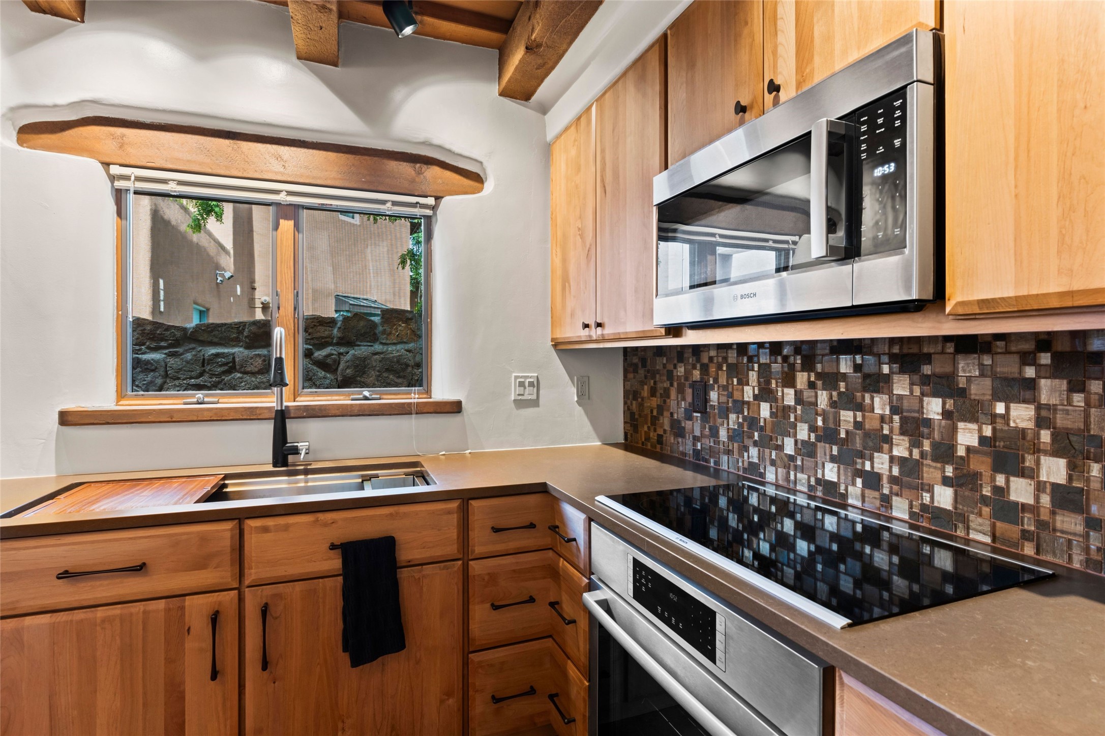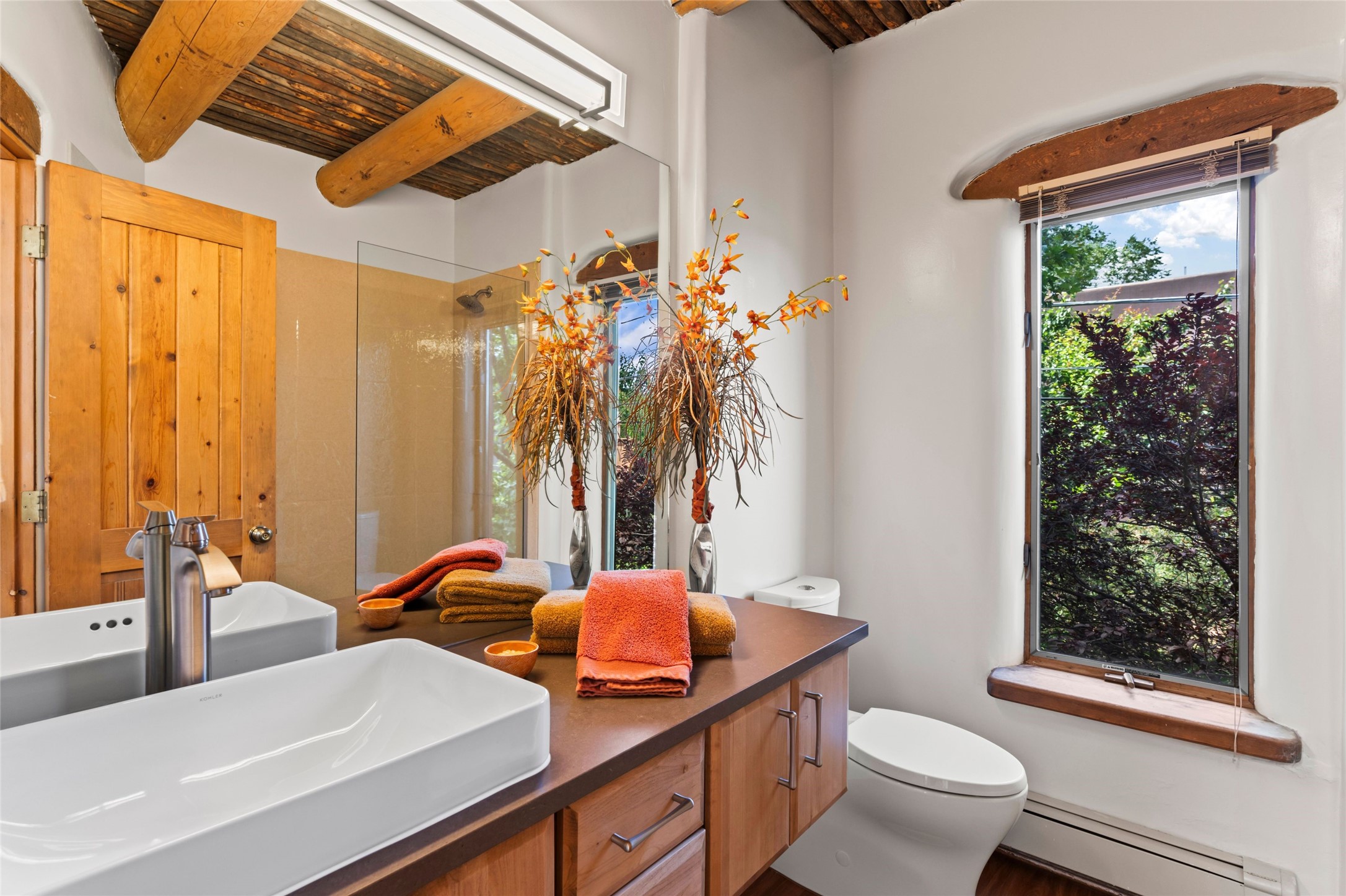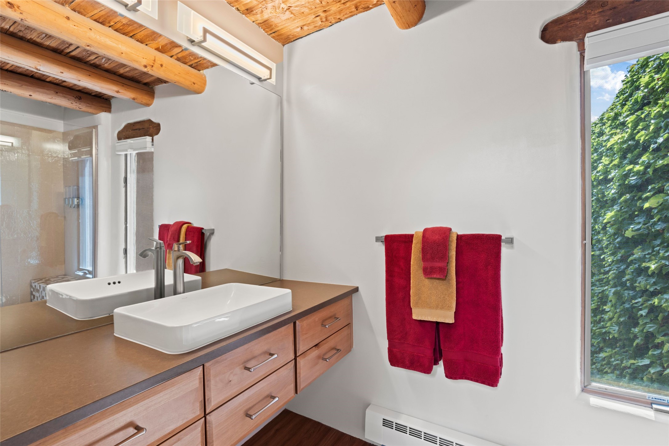 Seeking a Santa Fe getaway - escape from your busy life? This is a perfect "lock & leave" location, with no effort or concern, close the door and leave for 3 months. Seeking a rental opportunity? This condo would be a highly desirable rental because the location is what everyone wants -"walking distance to the Plaza". Seeking a precious place to call your new home? This is a perfect retreat to a town that offers the calm and serenity of Santa Fe: create your new life!Nothing says Santa Fe more than a precious adobe home, tucked into the most desirable of locations - South Capitol. And in real estate, nothing is more unique and rare than a completely renovated adobe home in Santa Fe. Ideal is the most applicable word for this condo. Ideal location because South Capitol offers such walkability/proximity - to the Plaza, Railyard District & Farmer's Market, the Lensic performance theatre, abundant choices of restaurants, Kaune's neighborhood market, multiple fascinating museums, a variety of wonderful shopping, all the well-known fiestas, markets on the Plaza, musical venues, biking, hiking, skiing, walking - anything you enjoy doing! Ideal because the location and privacy of this particular condo are unique to the center of Santa Fe. Ideal because you will never need to endure the dreaded renovation. Ideal because, as you can see from the photos, the Santa Fe details are abundant - all uniquely representing Santa Fe history & style. Every ceiling is designed with different details, hand-carved corbels and vigas, a charming and special wood burning two-sided fireplace. You will enjoy the private back yard: grassy tufts that require no effort and a patio to gather around the outdor fireplace. Will this treasure be your residence or your occasional escape to Santa Fe? Regardless, you would be sorry to miss this opportunity - special properties that surprise and delight are not so common.