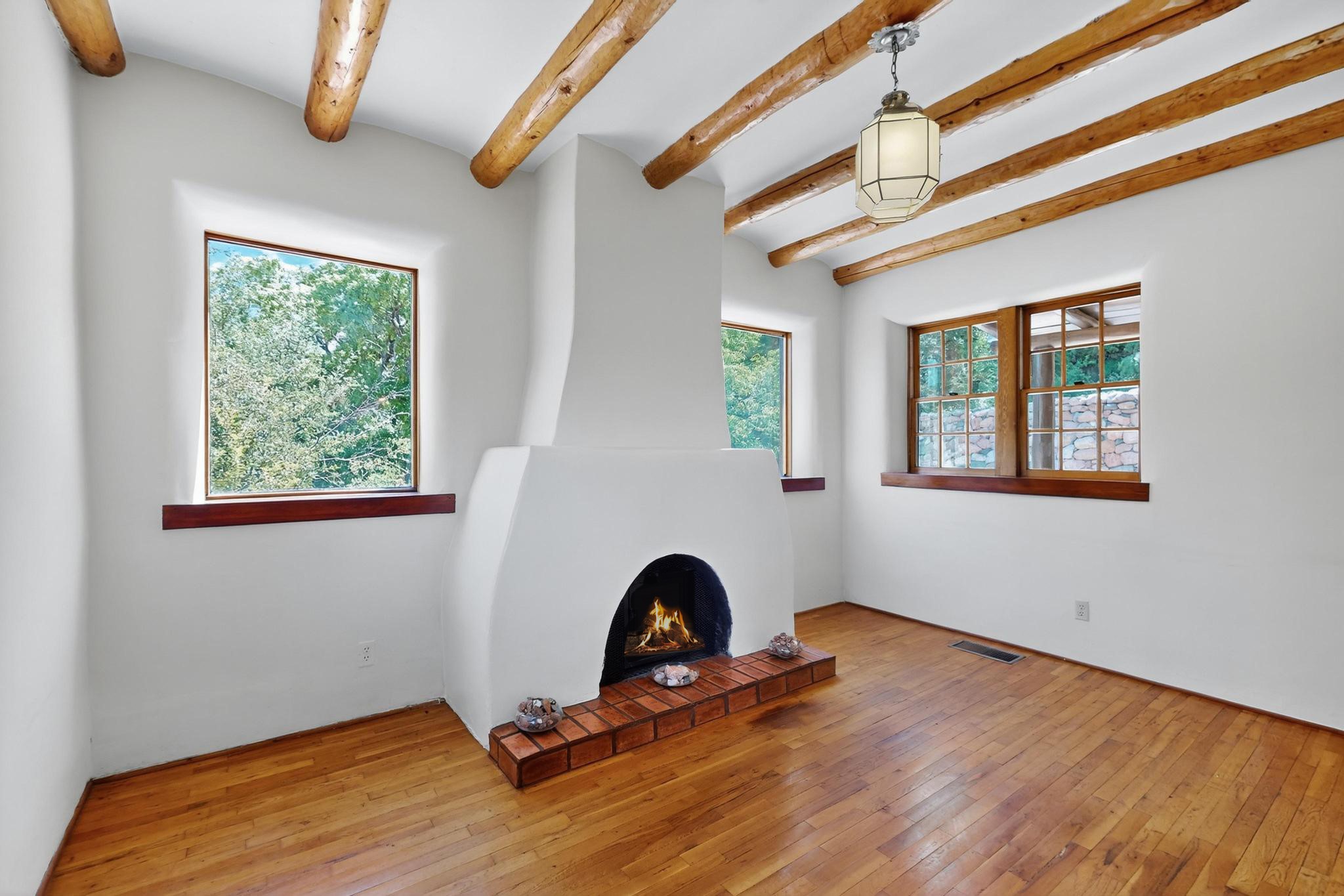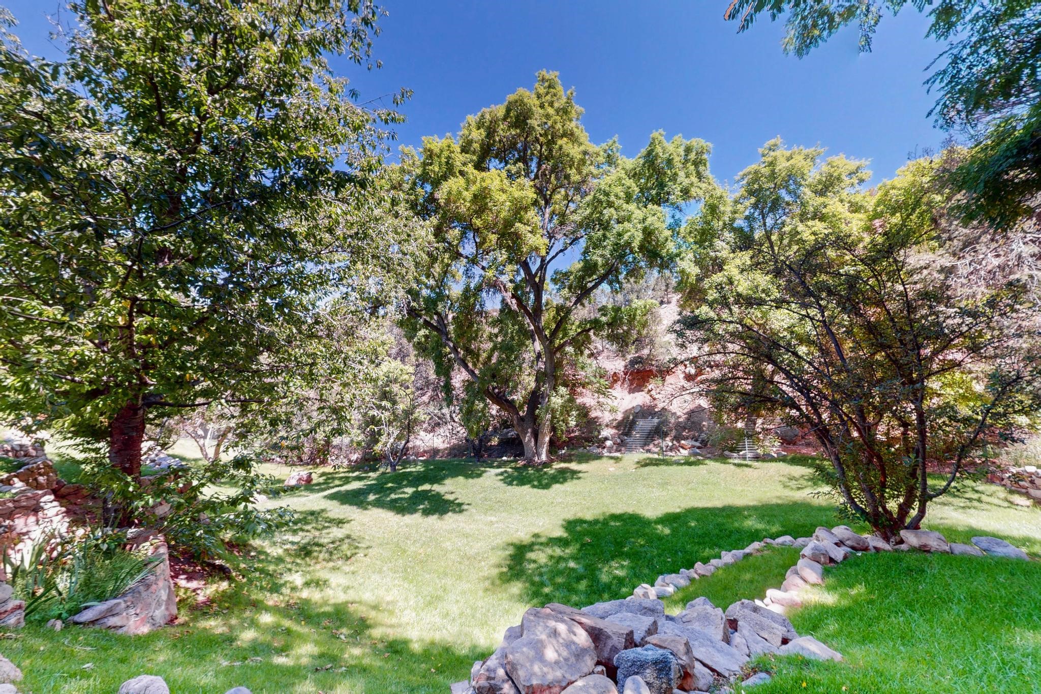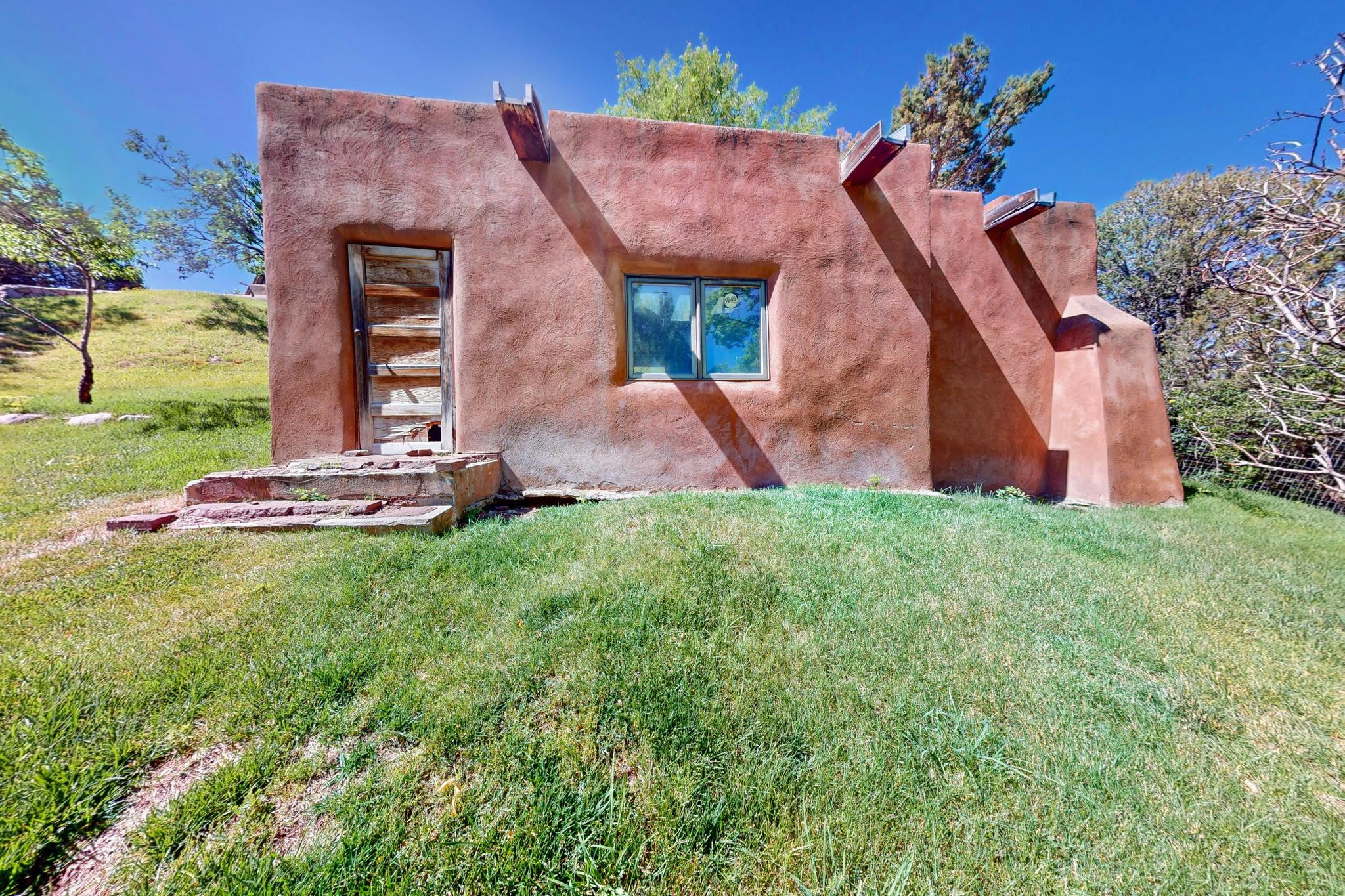 Rare Tesuque Offering & One of the last original Big Tesuque Canyon properties: all adobe and on nearly 9 acres this is a spectacular opportunity! Located at the end of the Canyon and bordering the National Forest, this has unparalleled privacy and quietude. Set in a verdant landscape, this three-bedroom two-bathtwo home is an original, charming adobe pueblo. In addition to this home on the hill, there is an adobe outbuilding which can become a guest house and or studio. There is also a small barn which can be further developed. The home and lovely acreage of sweeping hills, grassy knolls and many fruit trees is irrigated by a private well. Well loved and cared for many years by one family, this is a chance to have an extraordinary piece of beautiful Tesuque. All depictions of furniture are virtually staged.
