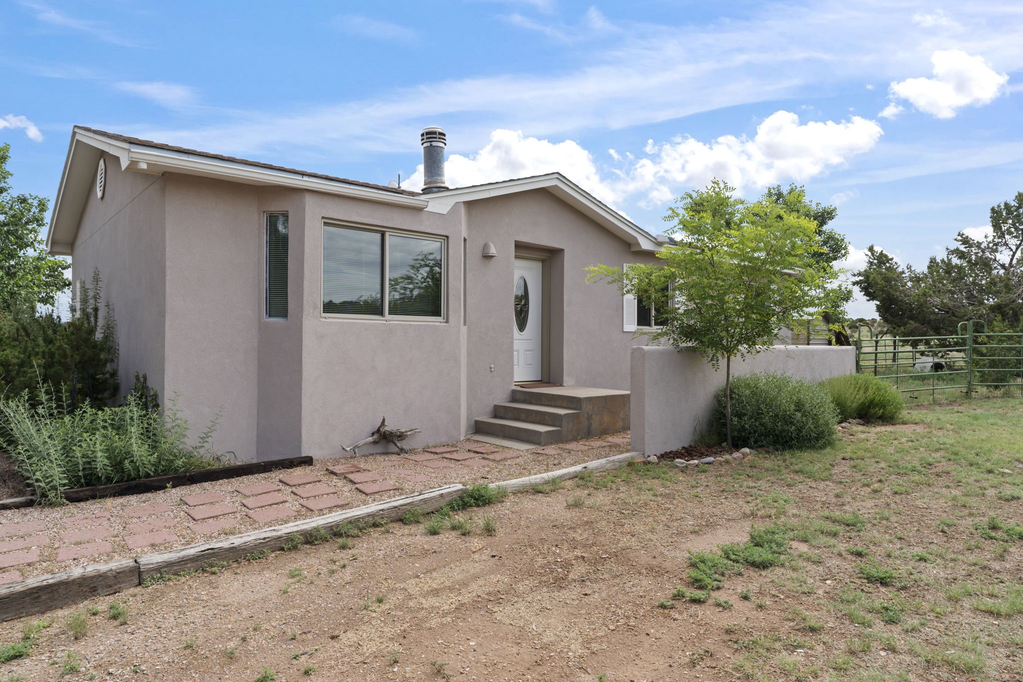 Dream retreat just south of Santa Fe! Nestled on 5 pristine acres, this well-maintained 3-bed, 1.5-bath home offers 1,320 sq ft of cozy comfort & endless outdoor freedom. Perfectly tailored for equestrian lovers and nature enthusiasts alike. The property features a large barn with 5 stalls, training pen, and two storage sheds--plus a hot tub for unwinding under the stars. The home is meticulously cared for & has its own private well. Electricity across the property, and a dedicated sub-panel in the barn. Your back gate opens directly to 700 acres of untouched state land, complete with horse and hiking trails. 35 year old plantings and countless tall shade trees grace the property in key areas. A new pro-panel metal roof was installed 11/25, as well as a brand new evaporative cooling system. A rare opportunity to live on the edge of wild New Mexico beauty--but just 20 minutes to the city.