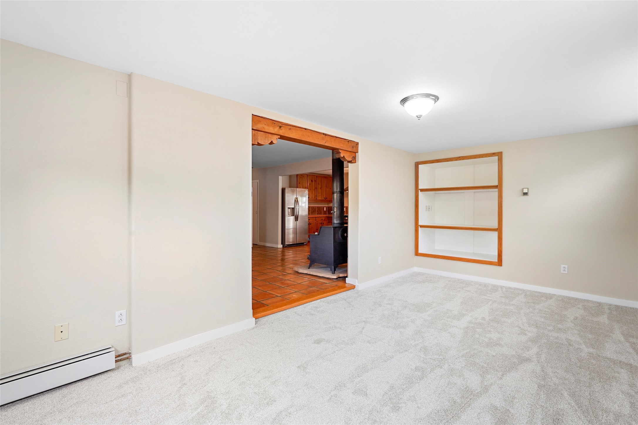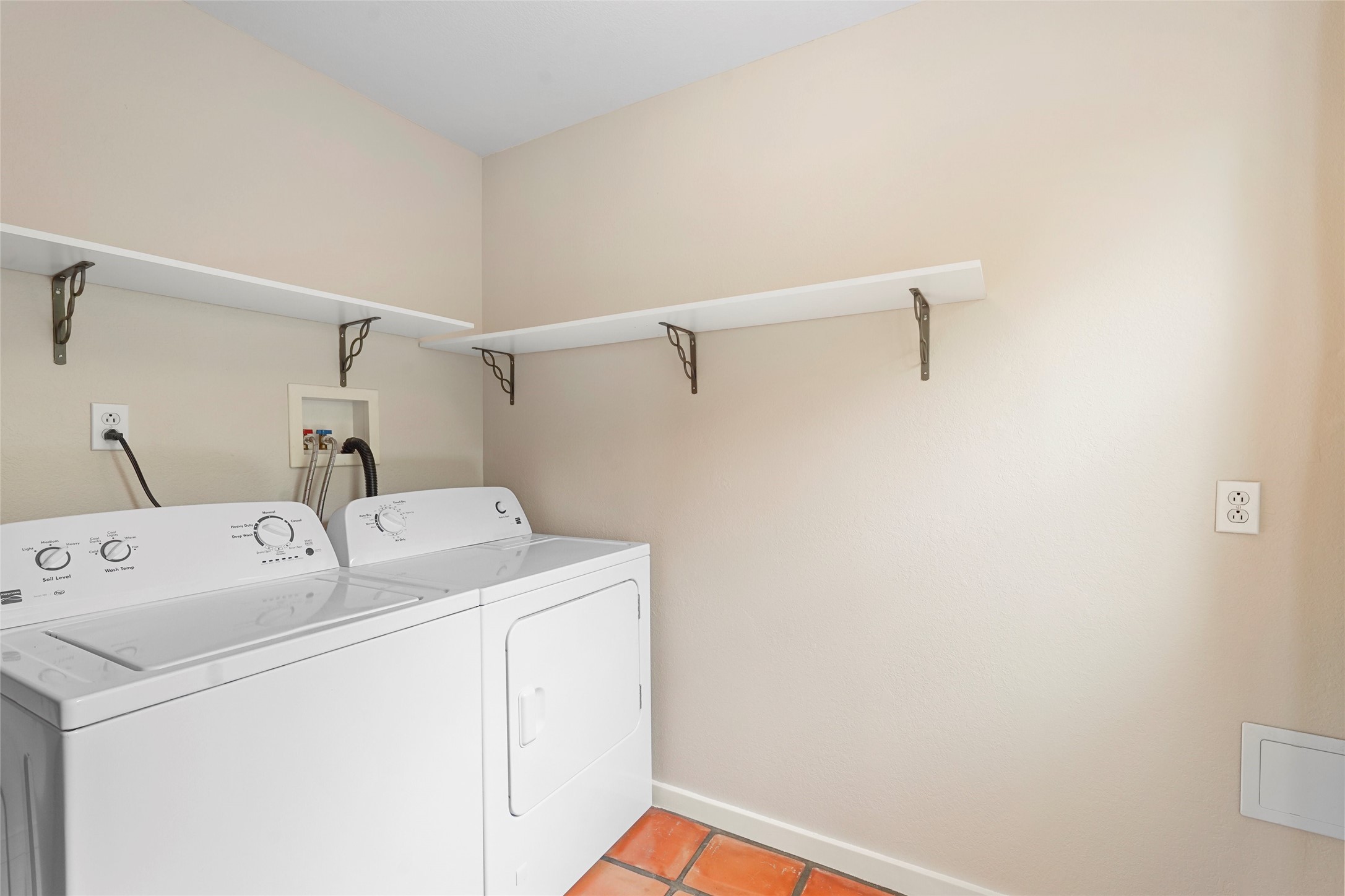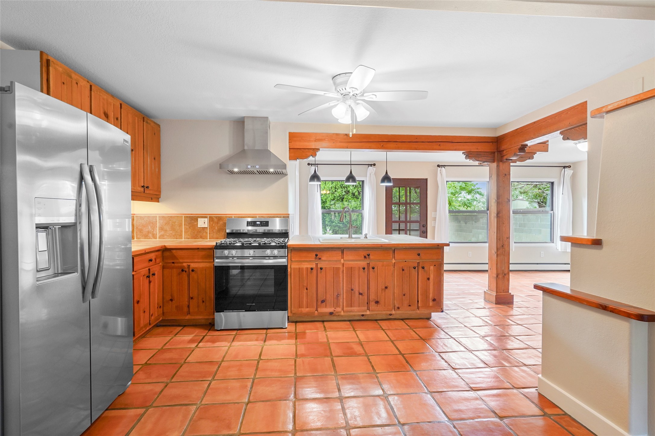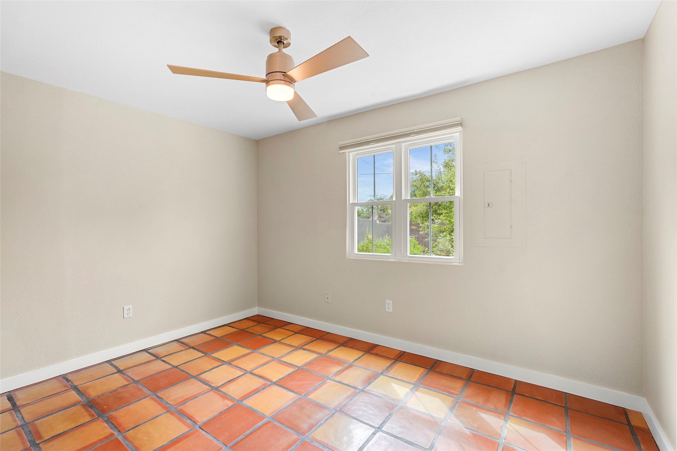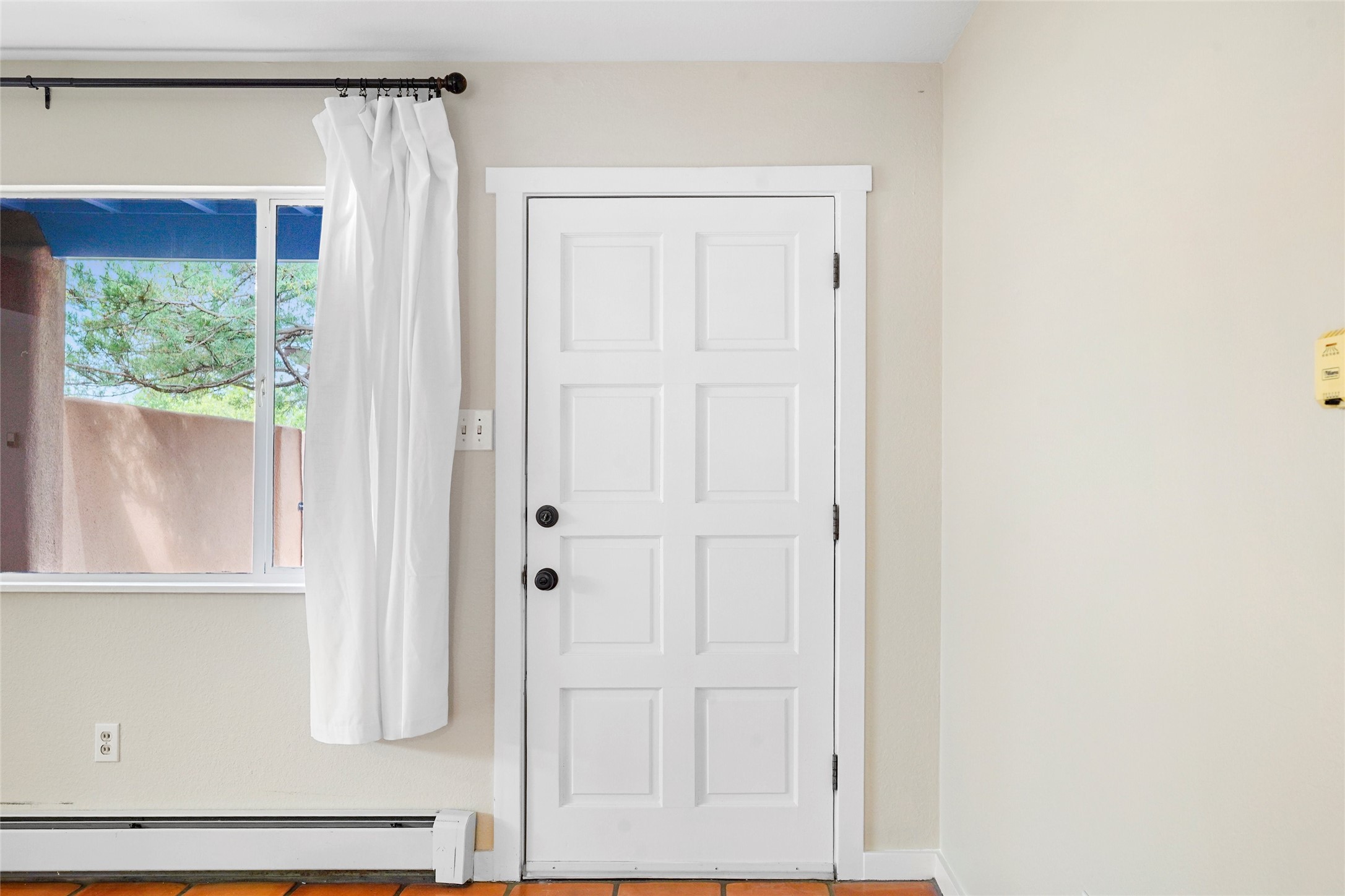 Charming 1,600 sq ft three-bedroom home in the inviting Bellamah neighborhood, steps from schools, parks, bike/walking trails, and the Genoveva Chavez Community Center. This meticulously maintained residence boasts an open-concept living room, carpeted den, dining area, and kitchen featuring custom natural wood cabinets with ample storage. The south-facing living space is accented by elegant wood pillars, beams, and corbels, with large windows flooding the area with natural light and offering views of the lush dream like courtyard. All new paint inside and out. Enjoy cozy winters with a free-standing wood stove, complemented by rich Talavera Saltillo tile throughout. A spacious laundry room adds convenience. Outside, thrive in well-tended organic front and back gardens, with a fully enclosed, expansive backyard. Off-street parking flanks both sides of the front yard, and a lockable shed provides extra storage. Move-in ready, this pristine home awaits its new owner!