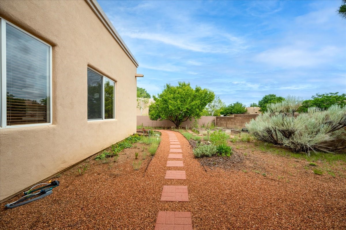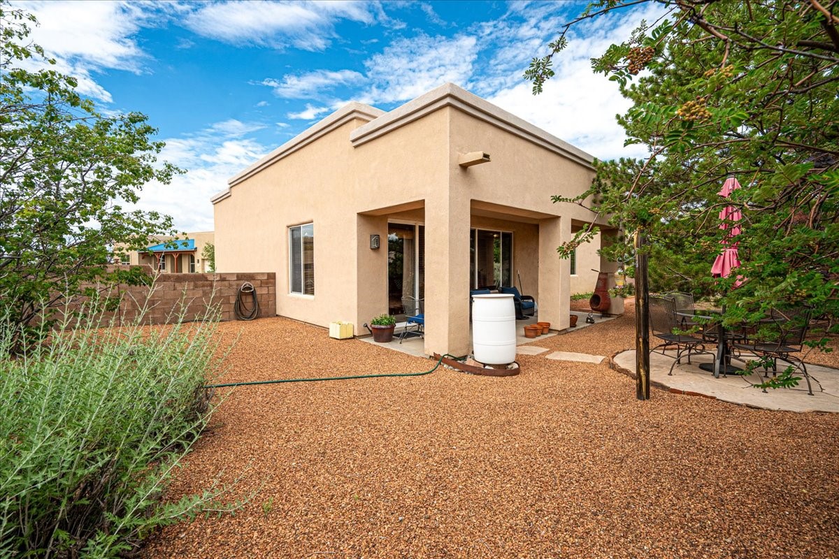 This home is quite the gem! From the moment you enter the foyer and see the open and airy space with a view to the back patio, you at once feel happy to be home. This single level home has been well tended and gently lived in, sports a neutral pallet, tile floors in the main living areas, an adjacent office or den, and 2 well separated bedrooms. The kitchen is spacious and offers a cozy eat-in area. The beautifully landscaped yard is private, easy to care for and has a lovely patio to enjoy our fantastic summer weather! The home is conveniently located to all the southside amenities, The Santa Fe Community College, and is a quick drive to Highway 599 for those who wish to commute to Los Alamos! About 20 minutes to The Santa Fe Plaza! Choice!