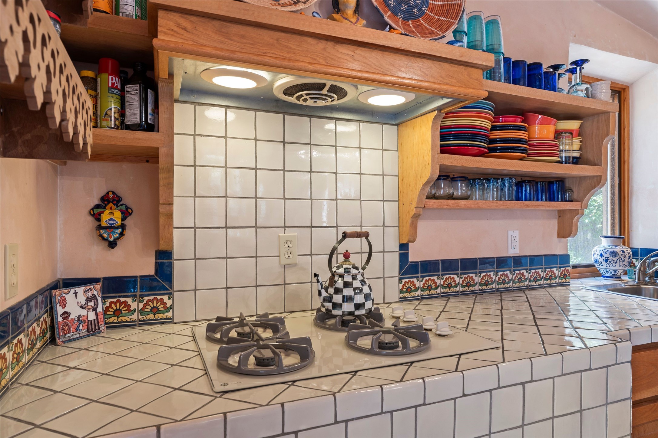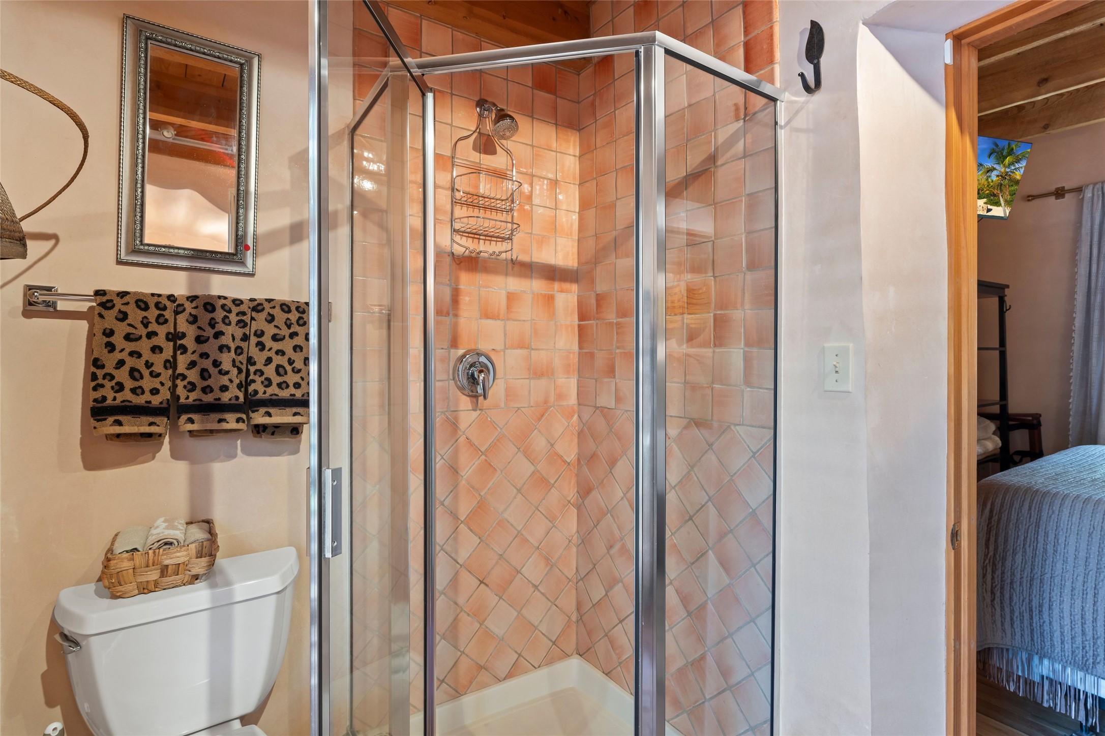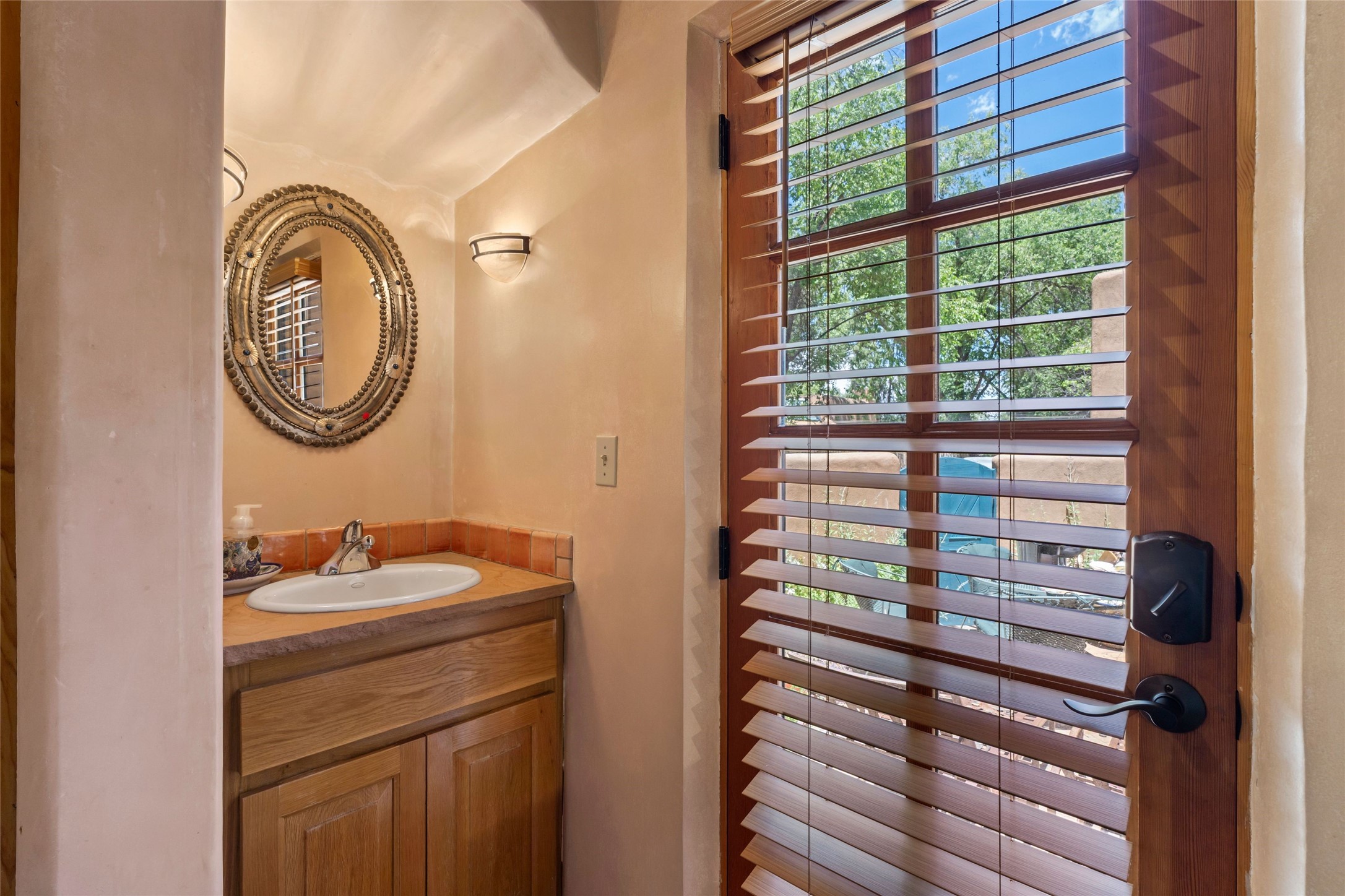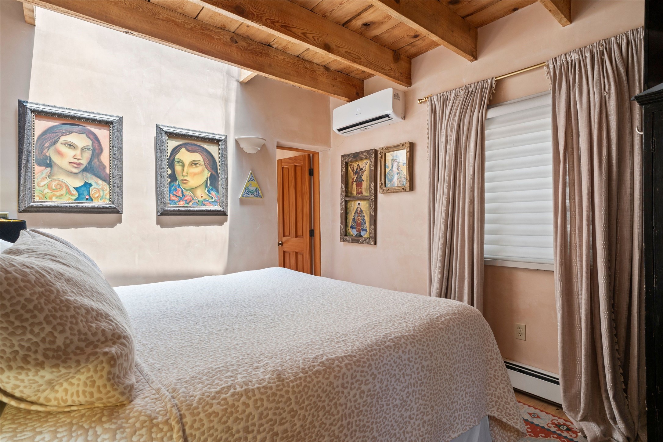 Classic Santa Fe Charm in the Coveted Historic Eastside.Nestled in one of Santa Fe's most historic and desirable neighborhoods, this enchanting residence with a main house and casita, offers timeless appeal. Located on a quiet, tree-lined street, and featuring a lush front garden, this serene property is surrounded by nature and just 5 minutes from the Plaza.The main house features authentic Santa Fe character with warm wood floors, a cozy wood burning Kiva fireplace, and elegant wall-washer and skylight lighting. Two ensuite bedrooms boast beautifully tiled bathrooms and skylights that fill the space with natural light. The kitchen is a true gem, showcasing Saltillo tiles, decorative tile countertops and backsplash, and convenient access to the charming interior courtyard.The interior courtyard is a private oasis, ideal for outdoor dining or relaxing, and connects to a spacious casita. With a kitchenette, this casita can be used independently or as an extension of the main house, creating a large primary suite. It includes generous closets, wood burning kiva fireplace, and inviting banco seating, and spacious bathroom accented with decorative tile. Don't miss this rare opportunity to own a home in one of Santa Fe's most sought-after locations, brimming with historic charm and modern functionality.