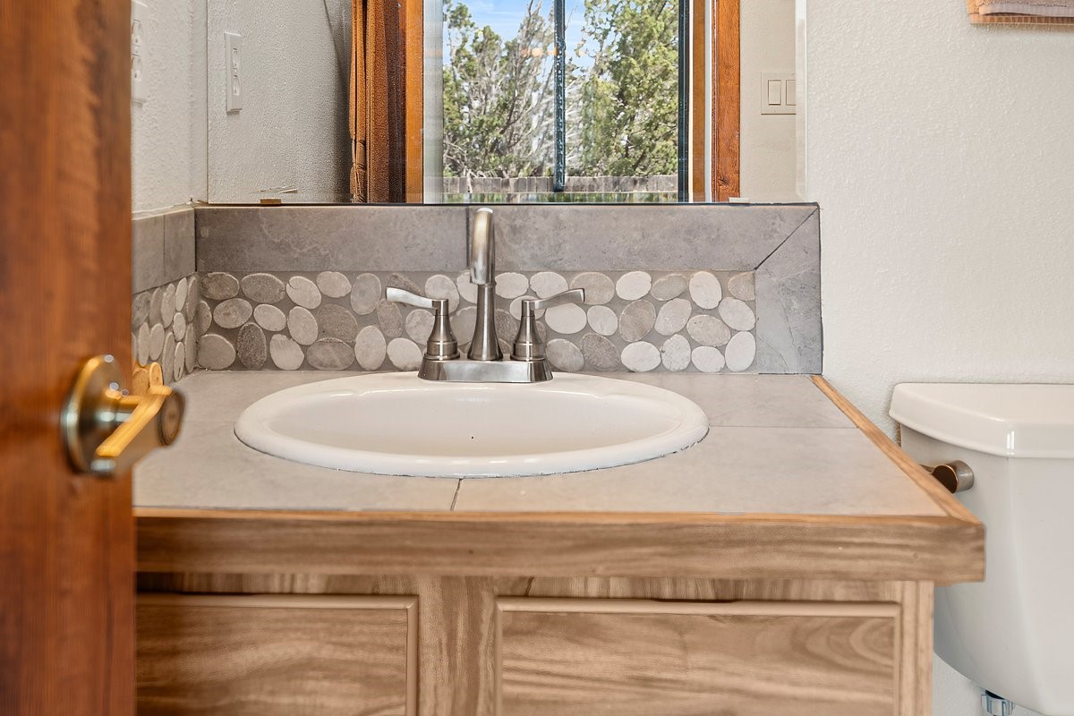 Turn Key and Affordable in Eldorado. This sweet, charming home is on the market for the first time. The long paved, circular driveway is clean and beautiful at the same time. Two additional parking spaces next to the one car garage, and a wide gate to the back yard offer great space to the car enthusiast. Inside there is Saltillo tile in the main parts of the home, New carpeting in the 3 bedrooms keep the sleeping areas quiet. Both bathrooms have been tastefully upgraded. Several new doors and door frames throughout, New Stucco and new Pella Windows. The rare pitched roof with tiles, This is a beautiful green lot. A Westerly facing deck provides viewing of the incredible sunsets Eldorado is known for. All the home needs is your personality!
