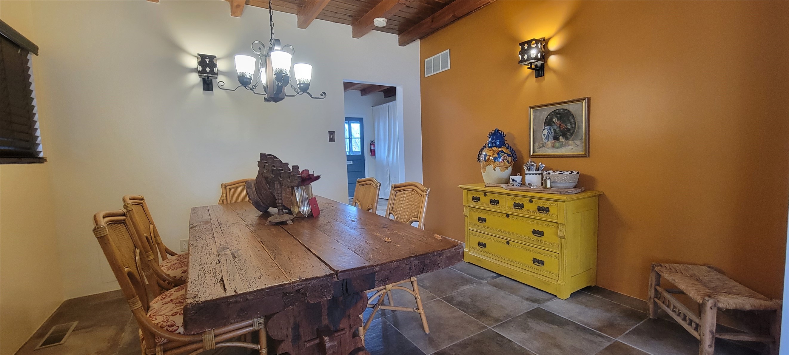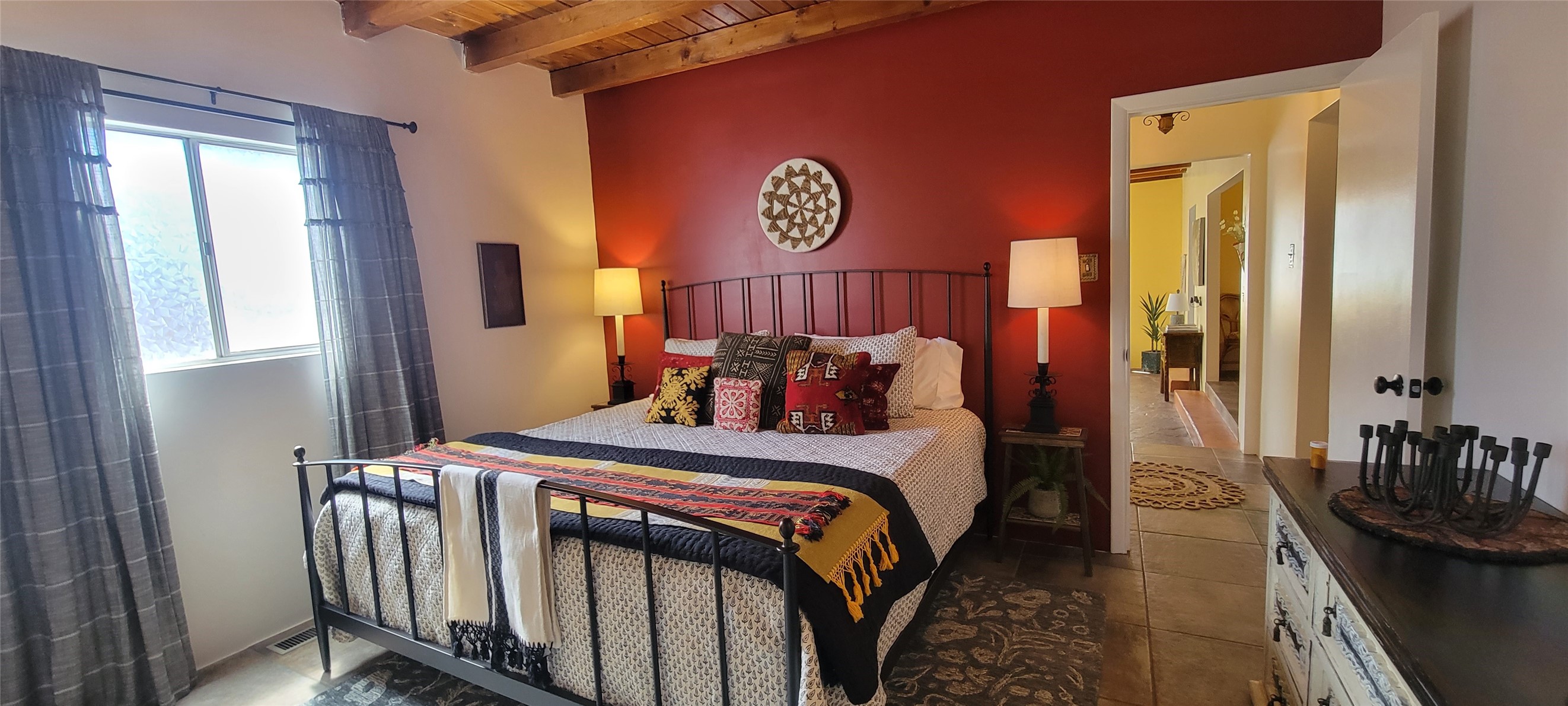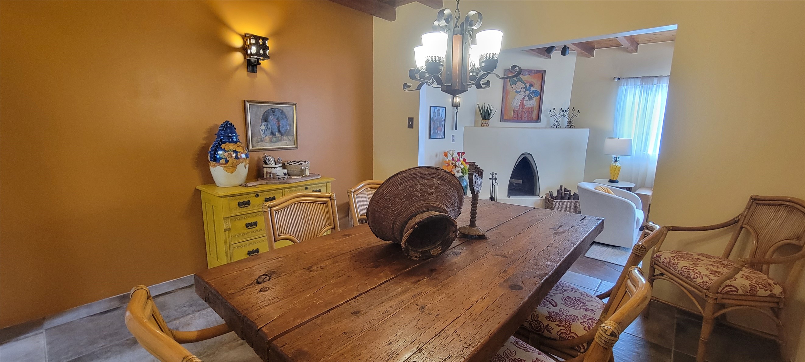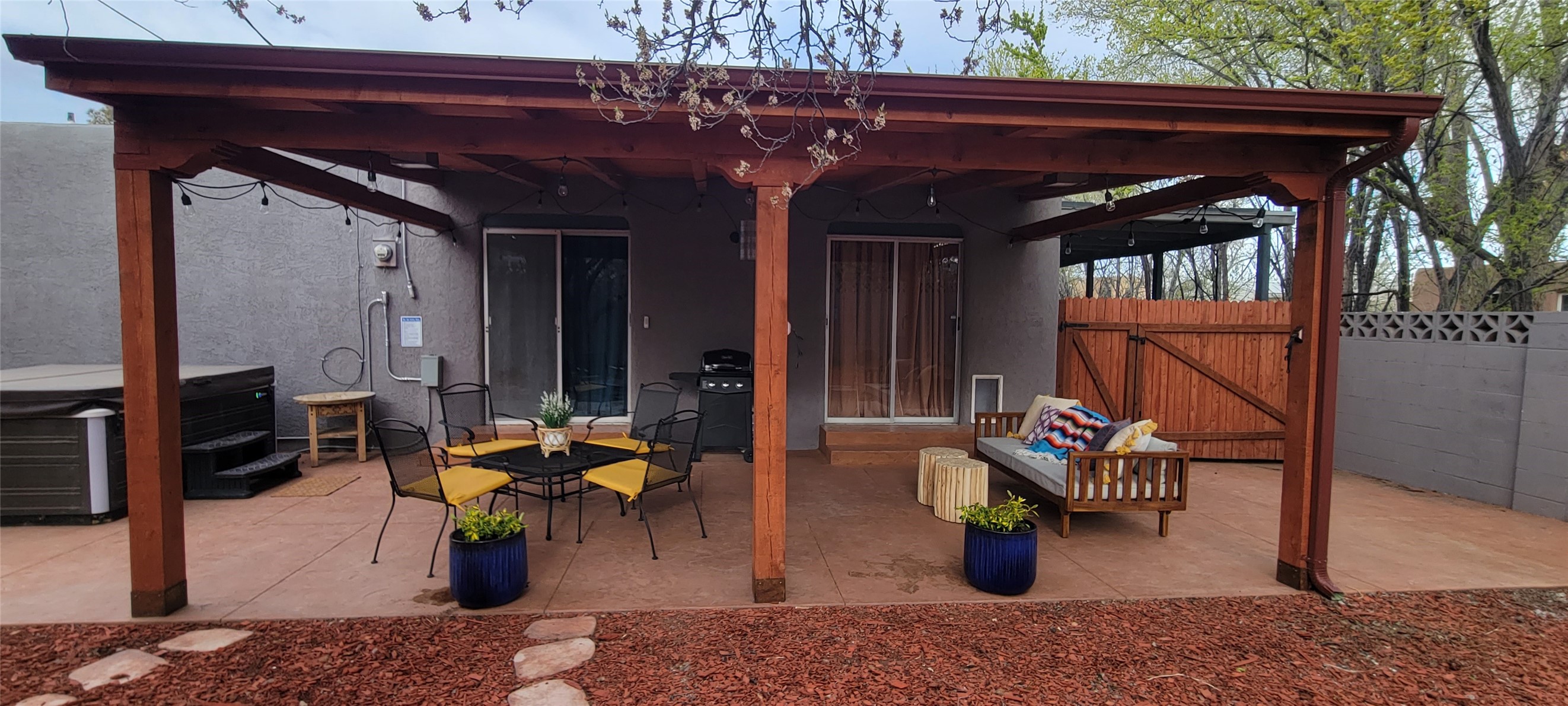 Santa Fe Style adorable classic pueblo! Bright airy sunny living room, original working kiva fireplace, amazing viga ceilings throughout provide warm, rustic ambiance. Well insulated quiet bedrooms w/ fabulous skylights. Owner's suite has private bath, tiled shower, walk-in closet. Gorgeous kitchen, stunning tile, granite counters, gas range, newer dishwasher & disposal. DR flows from Kitchen to LR for carefree entertaining. Charming hand-painted stenciled walls, unique lighting, Central HVAC system, new sinks/fixtures in both BAs. Murphy bed in 3rd BR, ideal as a multi-use flex room. Front & back courtyards ready for great conversation, morning coffee, or relax in the hot tub. Lots of extras: Wrought iron custom gates/fencing for front courtyard. Awesome covered back porch, attached carport for two cars, driveway space for two more cars, large insulated storage building has built in shelving & electricity. Hot tub, one year old cover. Beautiful apricot trees front & back, mature landscaping. Built in 1968 by Santa Fe builder Allen Stamm, Stamm's classic pueblo structures are synonymous with solid, well-built homes and are considered icons of the Santa Fe style in the Santa Fe market. Say you own a Stamm home, and you receive nods of approval from the locals. Lovingly named Casa de Flora, close to Frenchy's Park, only 2.8 miles from the Plaza, convenient to everything old & new in Santa Fe with a perfect location. Discover Santa Fe's culture, rich heritage & deep history through architecture, art, festivals, cuisine, performing arts and museums. The City Different feels like no other city in the World. A fascinating blend of Native American and Spanish cultures, all of it could be right on your doorstep! 2005 UNESCO Creative City Designation, 3rd largest art market in US, 250+ art galleries, 18 performing arts venues. Santa Fe is surrounded by 1.6 million acres of public land perfect for hiking, biking, camping, sightseeing. 300 sunny days a year! Owner GA Licensee.
