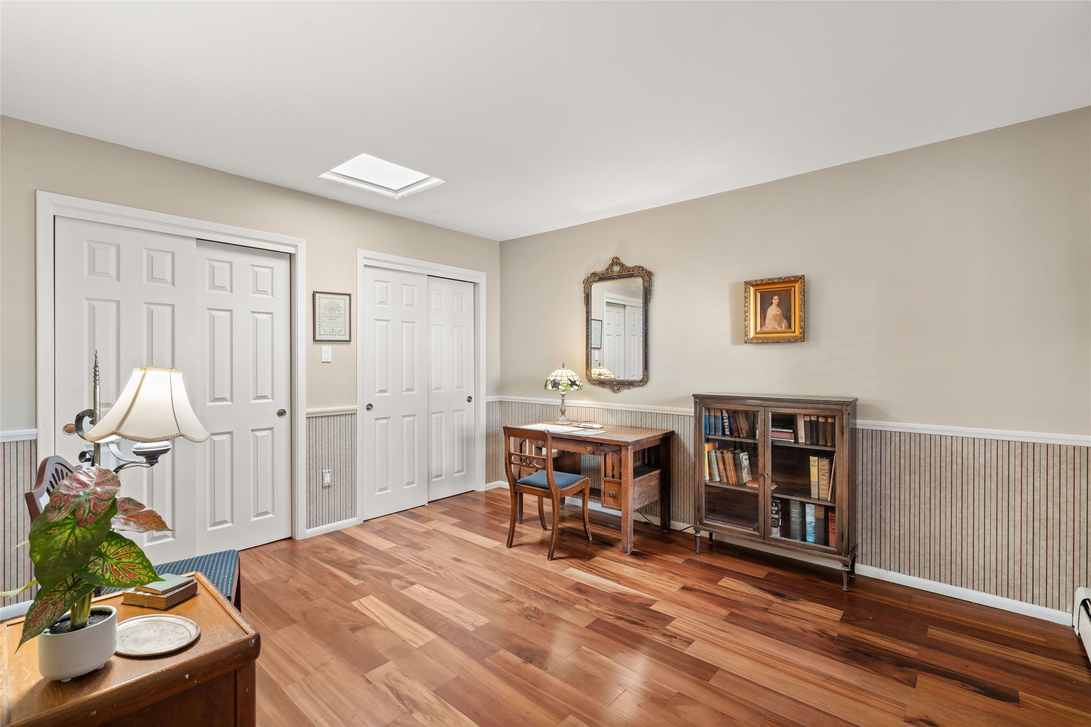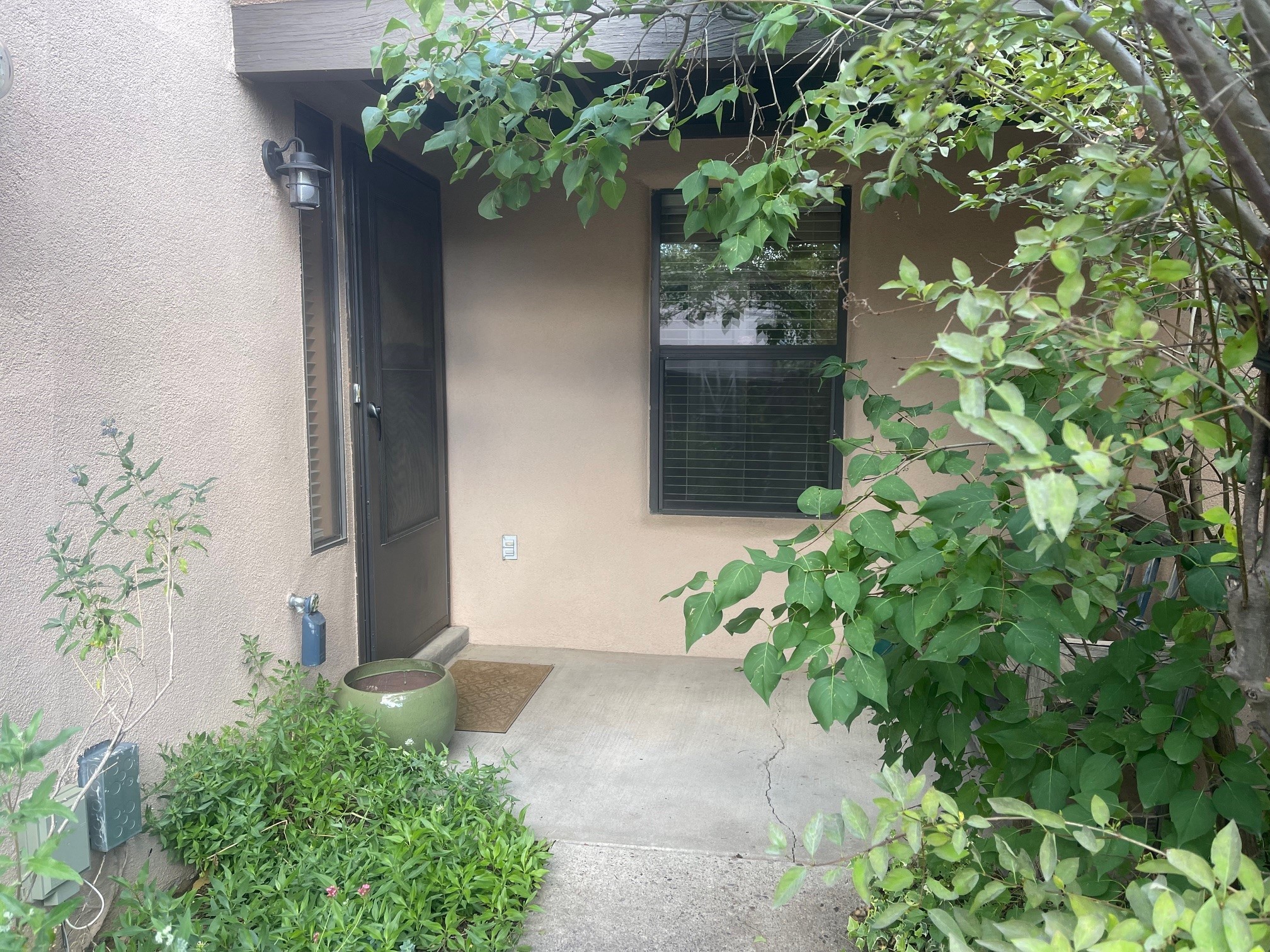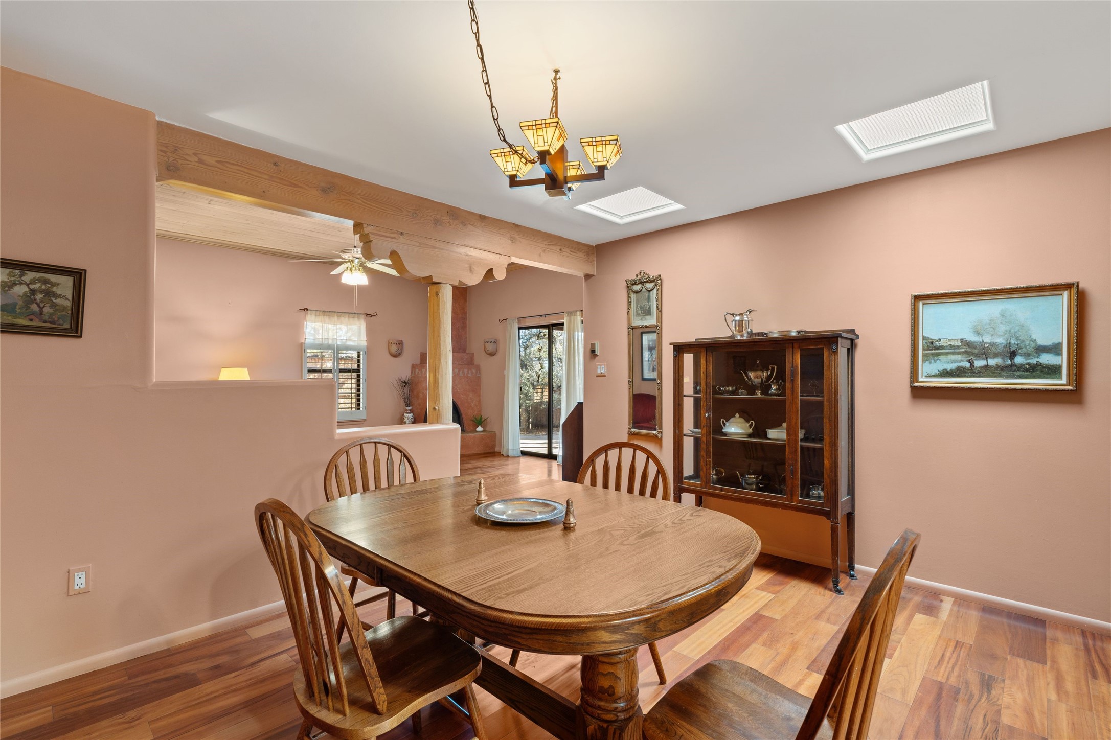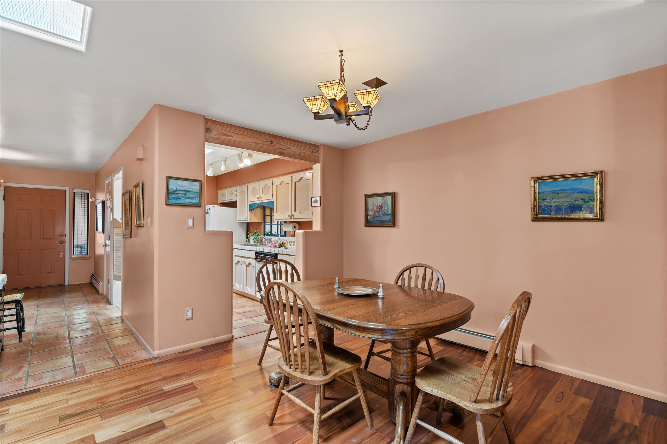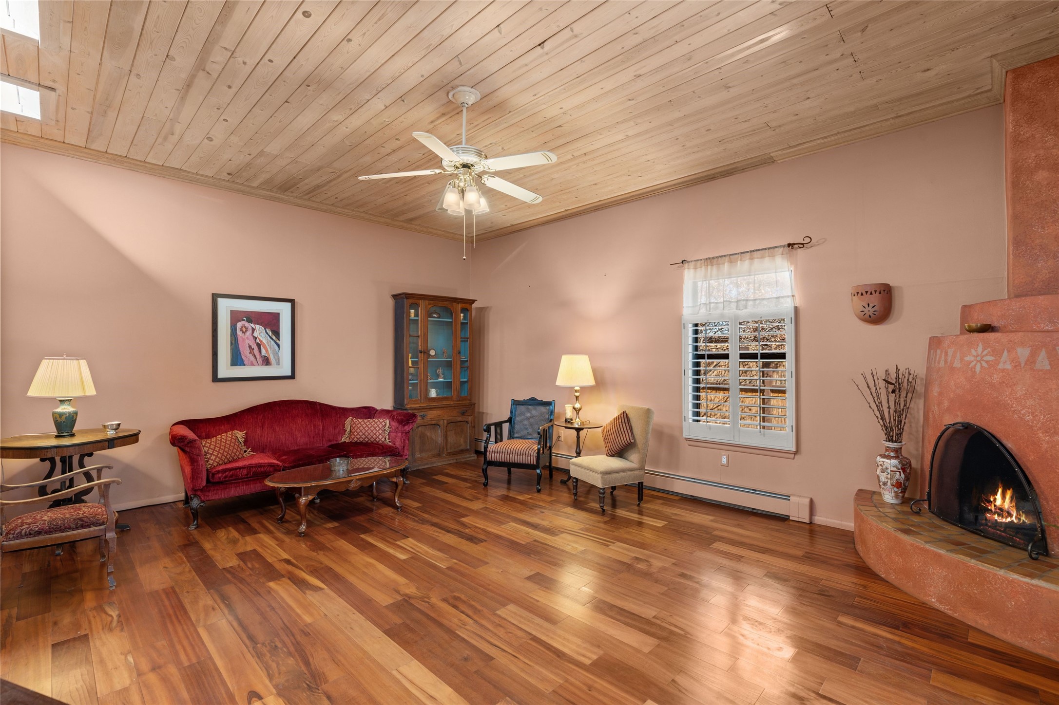 This is an ideal primary or secondary home in Santa Fe. This lovely Park Plaza two-bedroom, two-bath home features hardwood and tile floors, tongue-and-groove (T&G) ceiling finishes in the living room, no interior steps, a courtyard entry, a private backyard, and an upgraded roof with a 10-year warranty. It's centrally located in Santa Fe, offering easy living at its best! It is a charming private property. Do not miss this Park Plaza beauty!