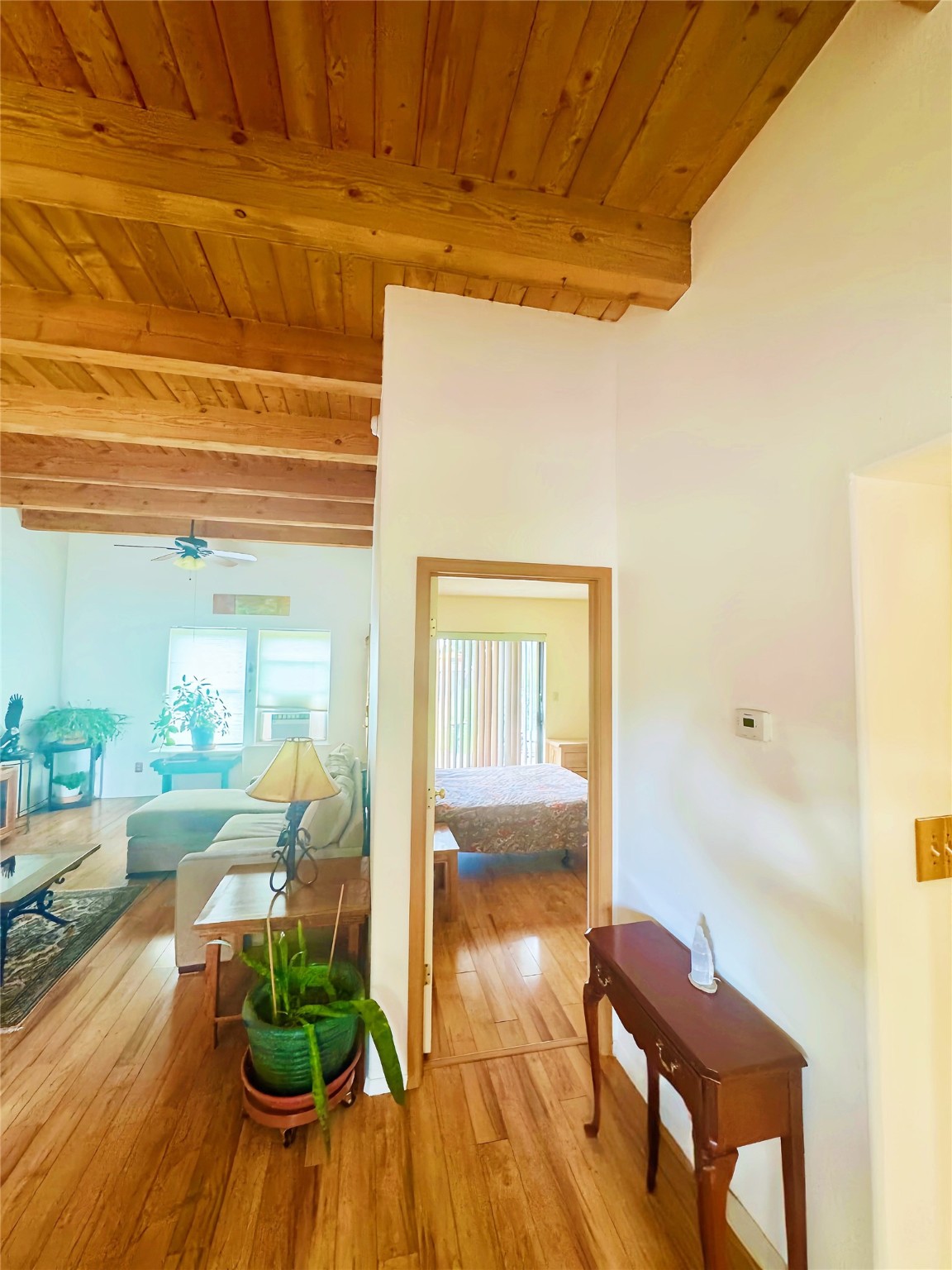 Welcome to 1084 Avenida Linda--a charming 2-bedroom, 2-bathroom residence offering comfort, character, and convenience. Step inside to a living room with soaring ceilings accented by beautiful vigas, creating an open and airy Southwestern feel. The primary suite offers a private bath, access to the fenced backyard, and plenty of natural light. The backyard backs directly to Las Acequias Park, giving you both privacy and easy access to walking trails and a tranquil open space. Located in a convenient Santa Fe neighborhood, this home is close to parks, schools, and shopping, with quick access to Airport Rd, Cerrillos Rd, Rufina St., and Agua Fria St. Whether you're looking for your first home, downsizing, or seeking a Santa Fe retreat, this inviting property has so much to offer. Schedule a showing today!