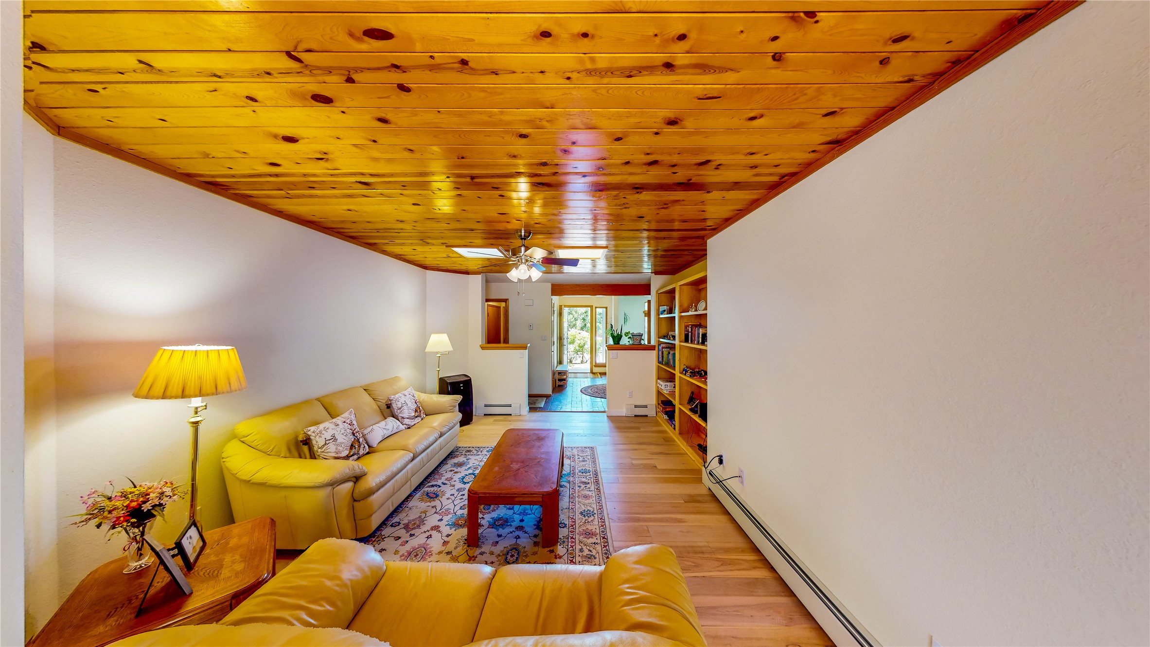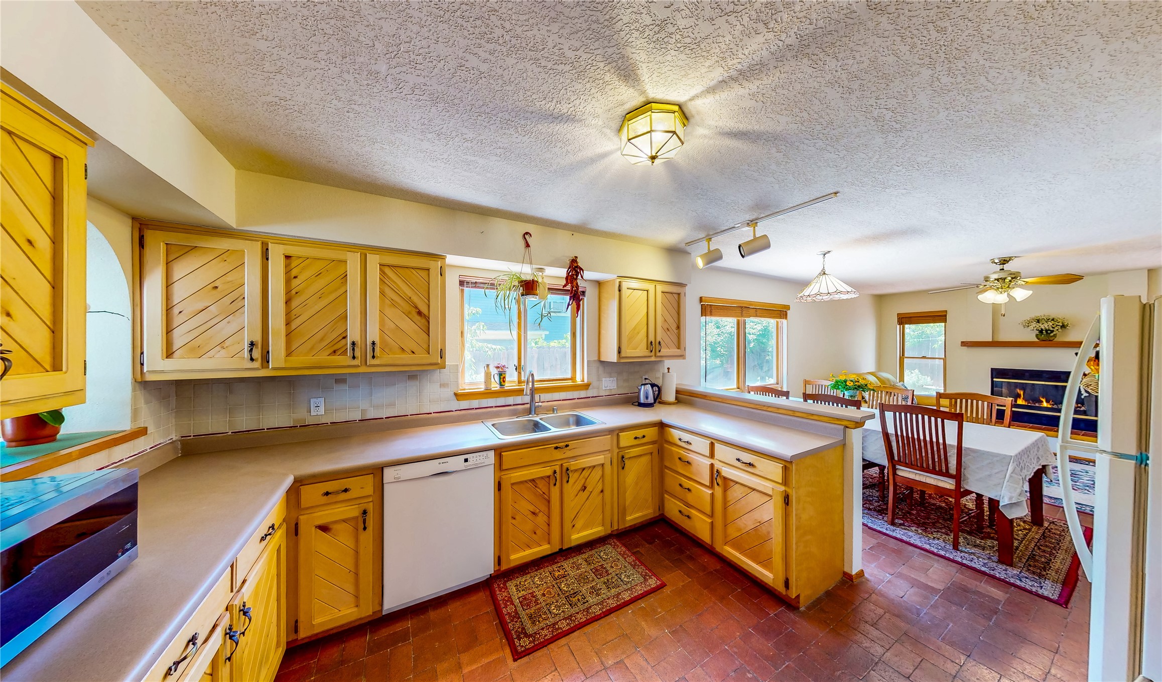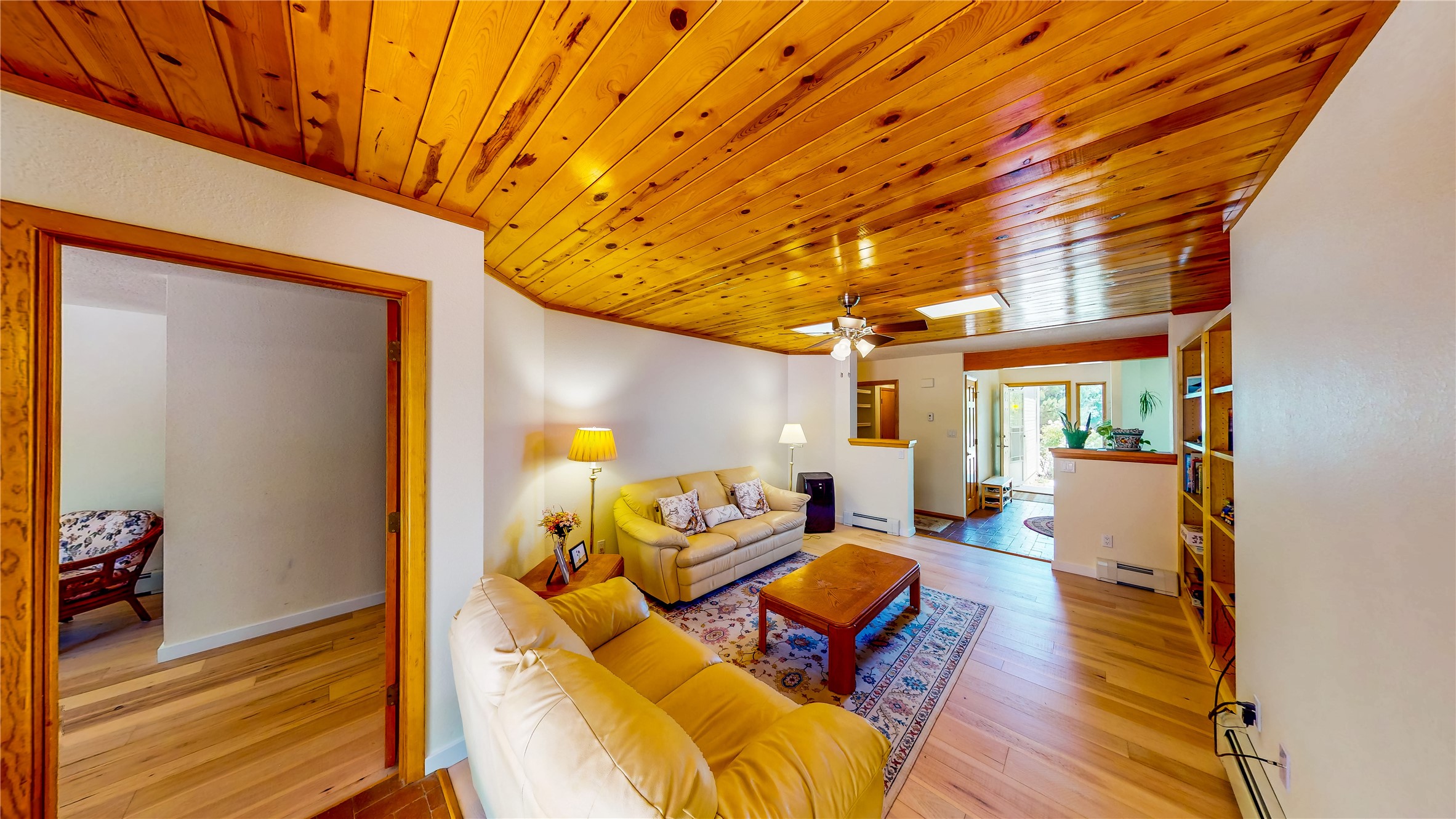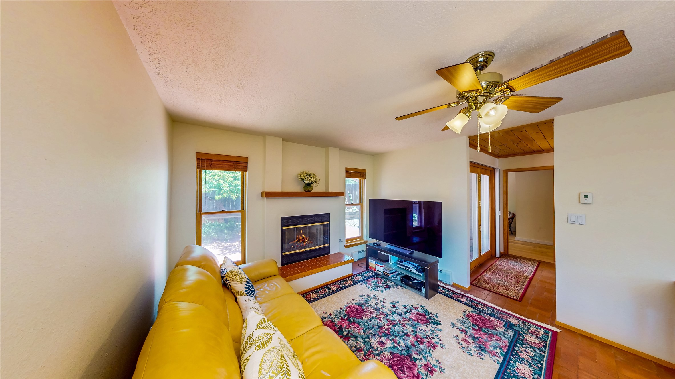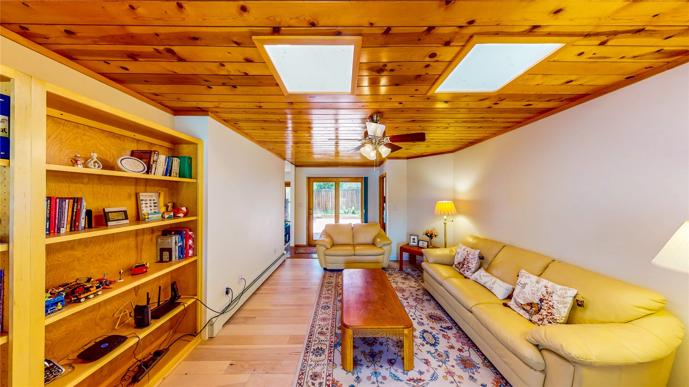 Tucked behind mature shrubs and trees, this charming custom ranch-style home located on a cul-de-sac in North Mesa offers a peaceful sense of privacy and timeless character. A lush front lawn welcomes you to the front entrance, where a brick-floored foyer sets a warm and inviting tone. Just off the entry is a versatile den that could easily serve as a formal dining room, office, or creative space. Straight ahead, the living room features wood plank ceilings with skylights, built-in shelving, and newly installed engineered wood floors that create a cozy yet open atmosphere. Glass doors open to a spacious covered patio and the beautifully landscaped backyard. The kitchen is well-appointed with wood cabinetry, tile backsplash, a pantry, and a peninsula bar top that provides extra seating and connects to the dining/family room. This inviting space centers around a gas fireplace, offering a comfortable spot to gather with family and friends. Down the hallway are two well-sized guest bedrooms and a full guest bathroom with a single sink vanity and a shower/tub combo. A dedicated laundry room provides additional storage and convenient access to the attached two-car garage. The spacious primary en-suite is privately located at the end of the hall for a true retreat, filled with natural light and complete with a large walk-in closet and built-in shelves. The en-suite bathroom includes a single sink vanity, a tub/shower combo in a private toilet closet for added functionality. Step outside to the fully fenced backyard, where mature landscaping, colorful flower beds, vegetable planters, and fruit trees create a lush, serene setting. A large patio offers the ideal space for outdoor dining, entertaining, or simply enjoying the sunshine. Located close to parks, hiking trails, schools, and local horse stables, this North Mesa home is perfect for those seeking both comfort and adventure. Don't miss your opportunity--schedule your private tour today!