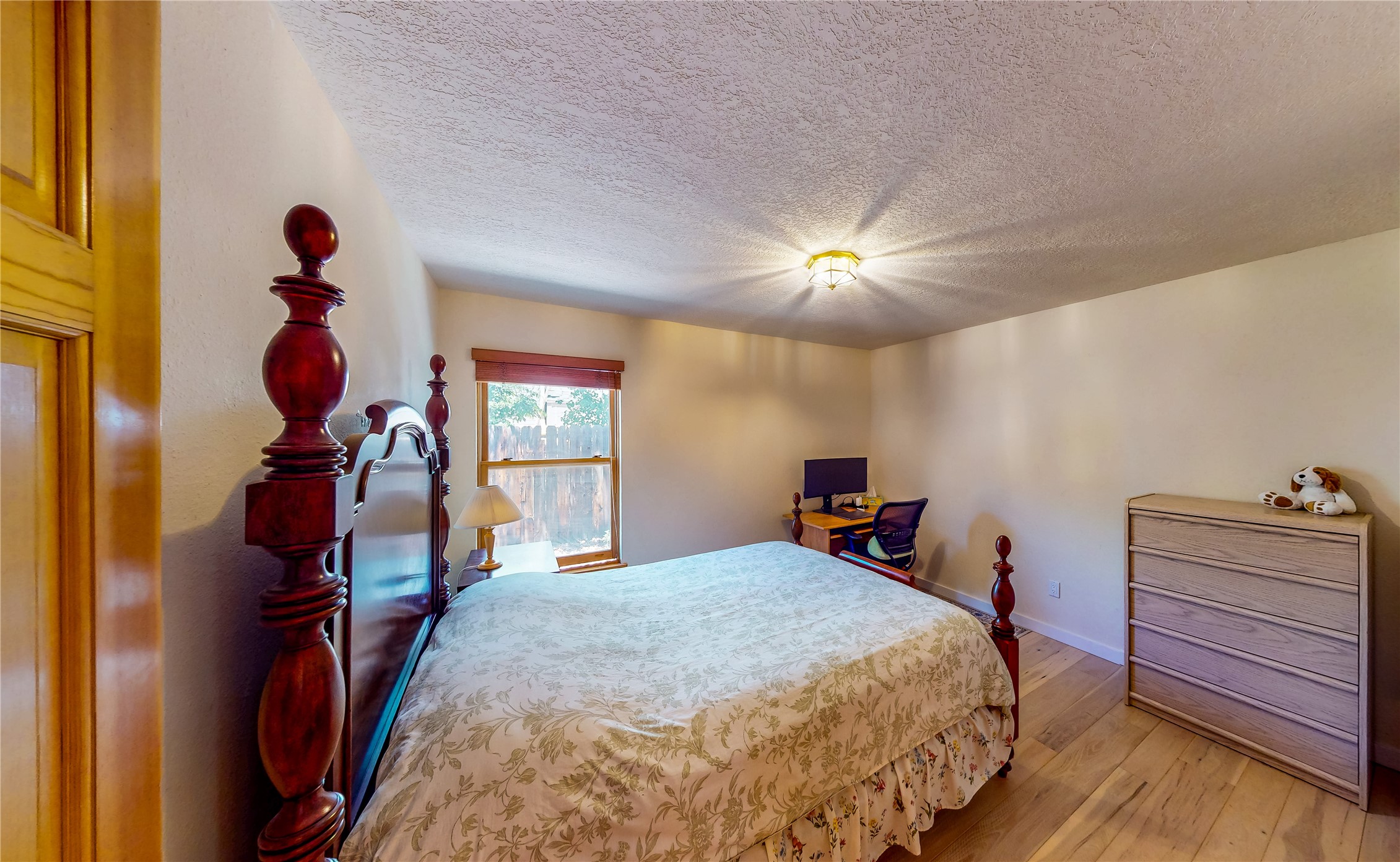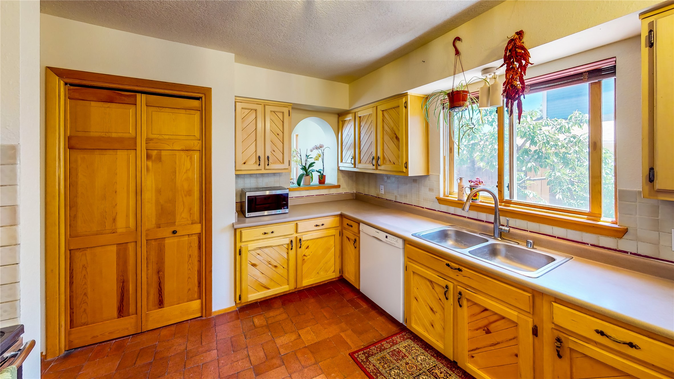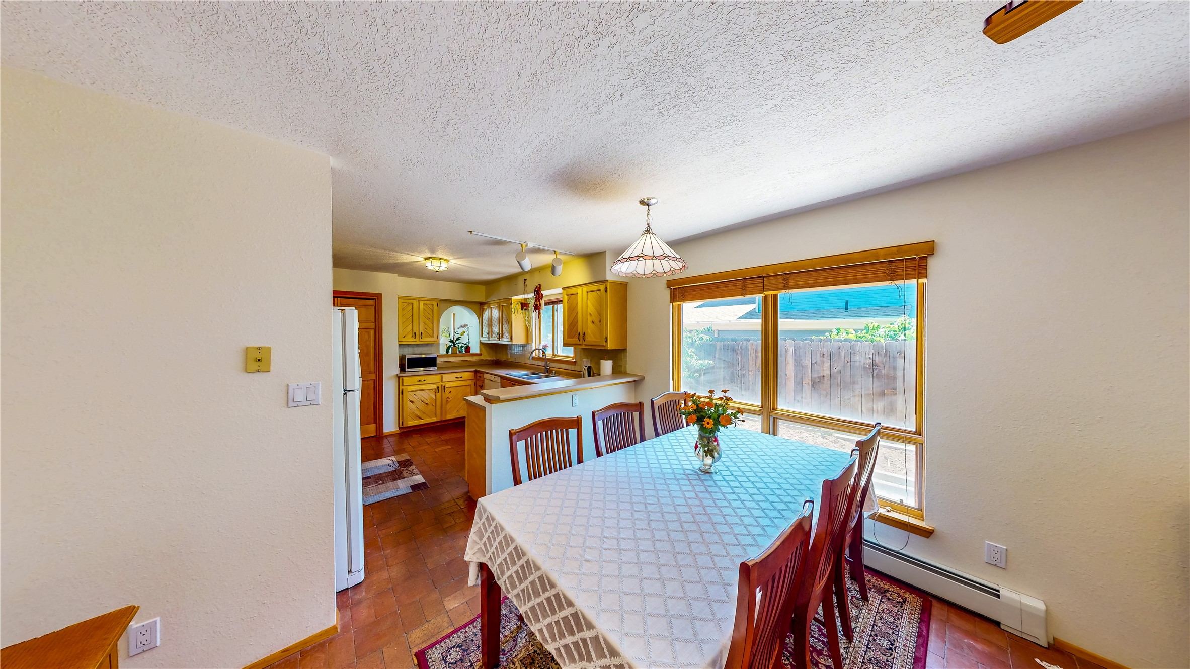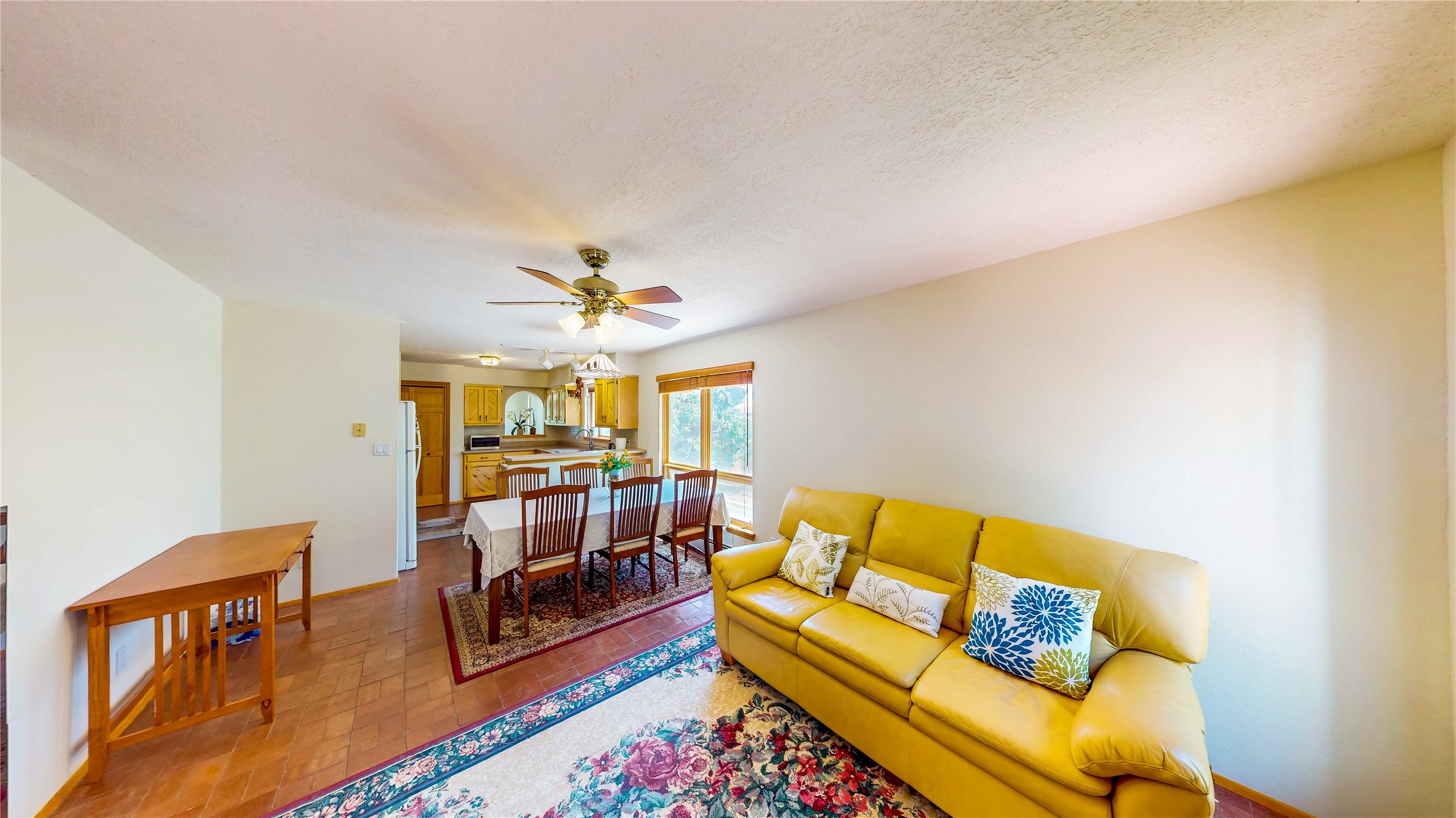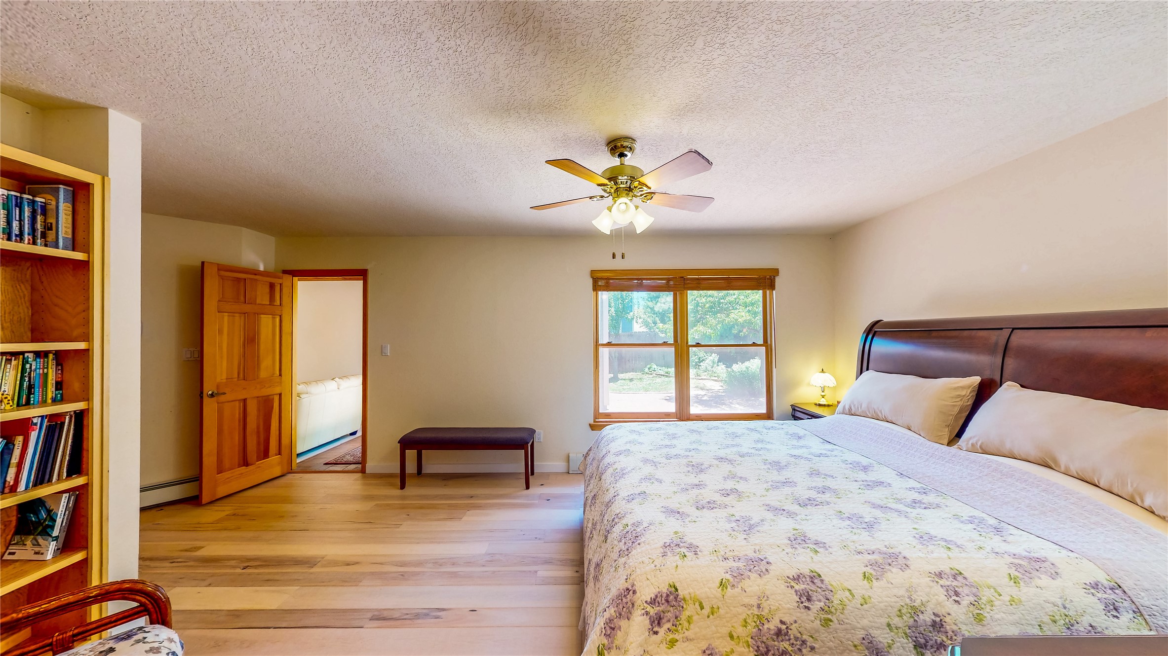 Tucked behind mature shrubs and trees, this charming custom ranch-style home located on a cul-de-sac in North Mesa offers a peaceful sense of privacy and timeless character. A lush front lawn welcomes you to the front entrance, where a brick-floored foyer sets a warm and inviting tone. Just off the entry is a versatile den that could easily serve as a formal dining room, office, or creative space. Straight ahead, the living room features wood plank ceilings with skylights, built-in shelving, and newly installed engineered wood floors that create a cozy yet open atmosphere. Glass doors open to a spacious covered patio and the beautifully landscaped backyard. The kitchen is well-appointed with wood cabinetry, tile backsplash, a pantry, and a peninsula bar top that provides extra seating and connects to the dining/family room. This inviting space centers around a gas fireplace, offering a comfortable spot to gather with family and friends. Down the hallway are two well-sized guest bedrooms and a full guest bathroom with a single sink vanity and a shower/tub combo. A dedicated laundry room provides additional storage and convenient access to the attached two-car garage. The spacious primary en-suite is privately located at the end of the hall for a true retreat, filled with natural light and complete with a large walk-in closet and built-in shelves. The en-suite bathroom includes a single sink vanity, a tub/shower combo in a private toilet closet for added functionality. Step outside to the fully fenced backyard, where mature landscaping, colorful flower beds, vegetable planters, and fruit trees create a lush, serene setting. A large patio offers the ideal space for outdoor dining, entertaining, or simply enjoying the sunshine. Located close to parks, hiking trails, schools, and local horse stables, this North Mesa home is perfect for those seeking both comfort and adventure. Don't miss your opportunity--schedule your private tour today!