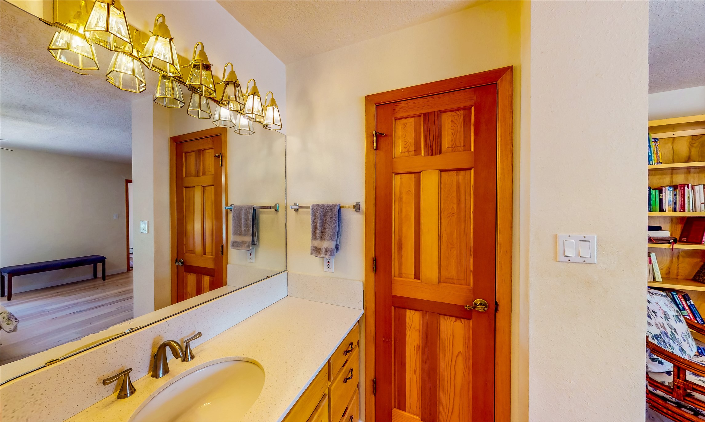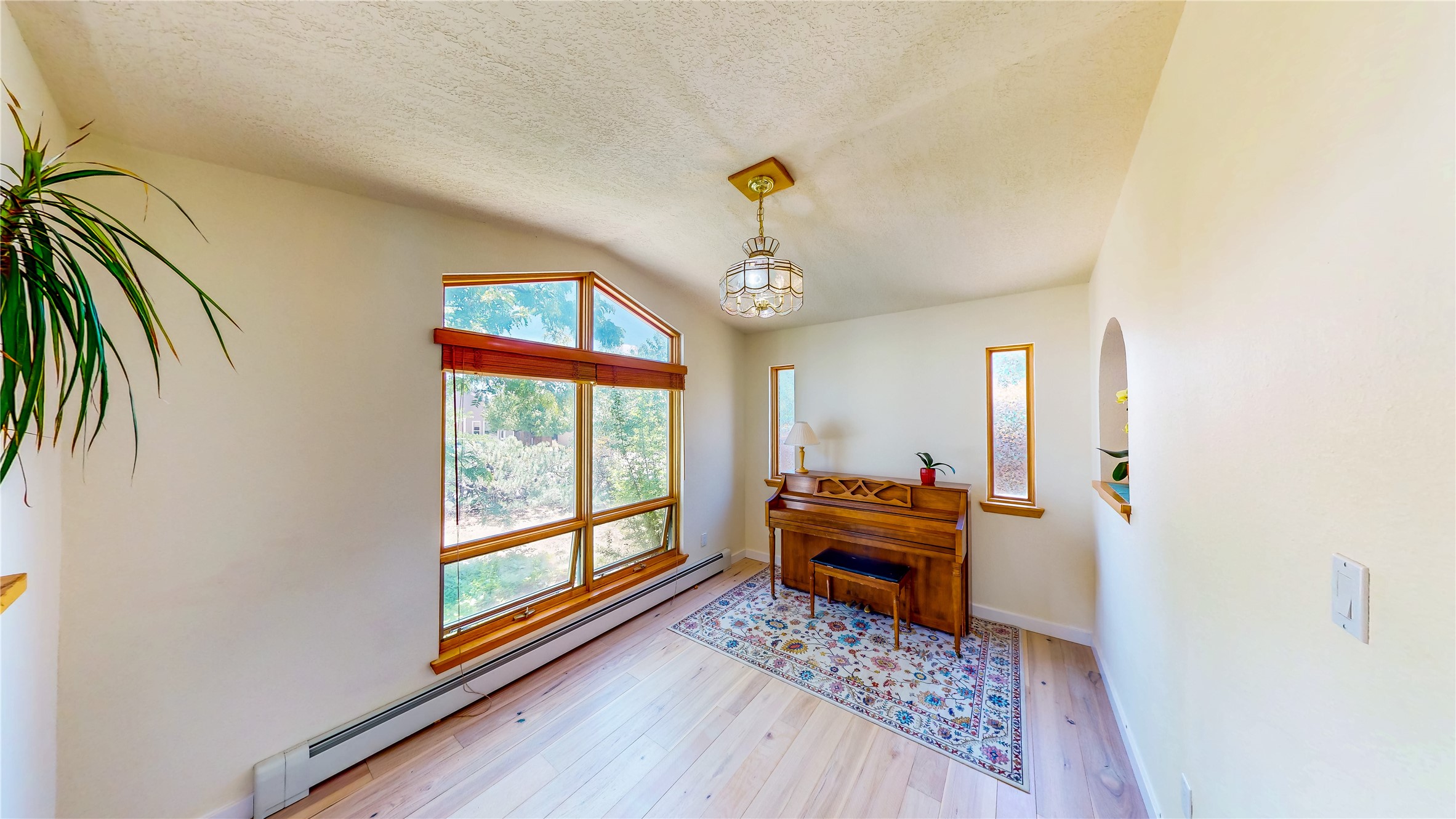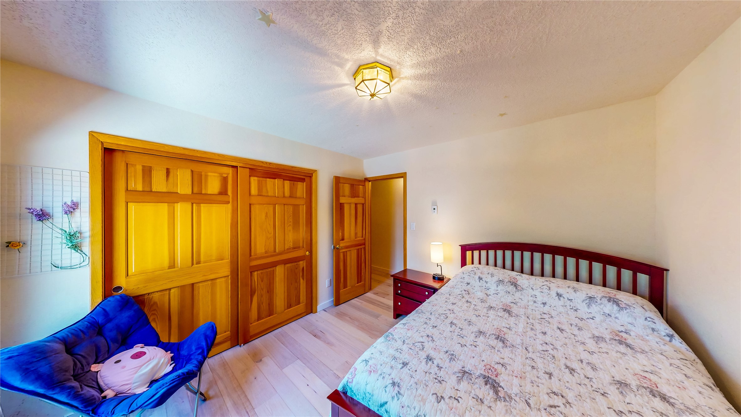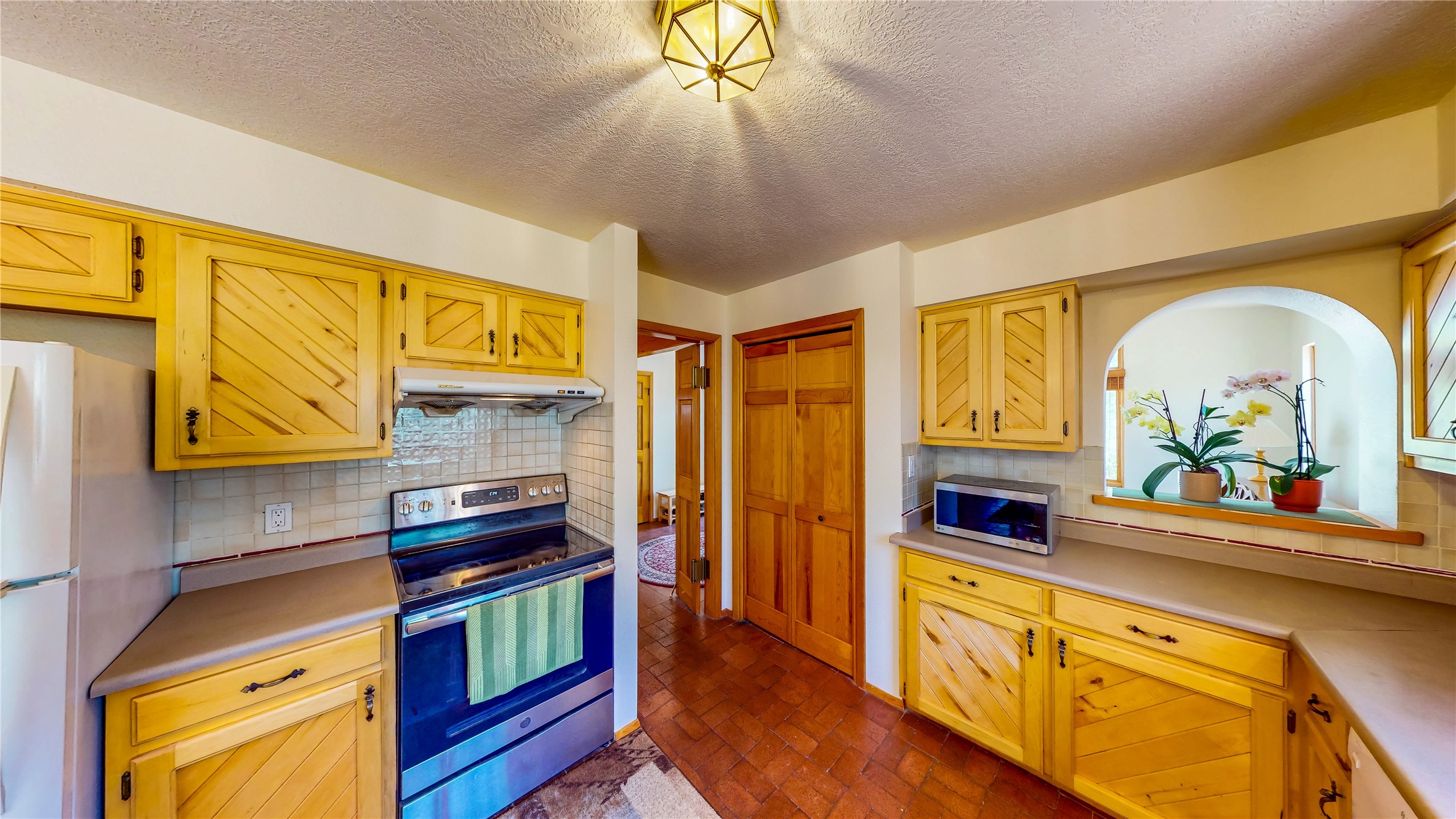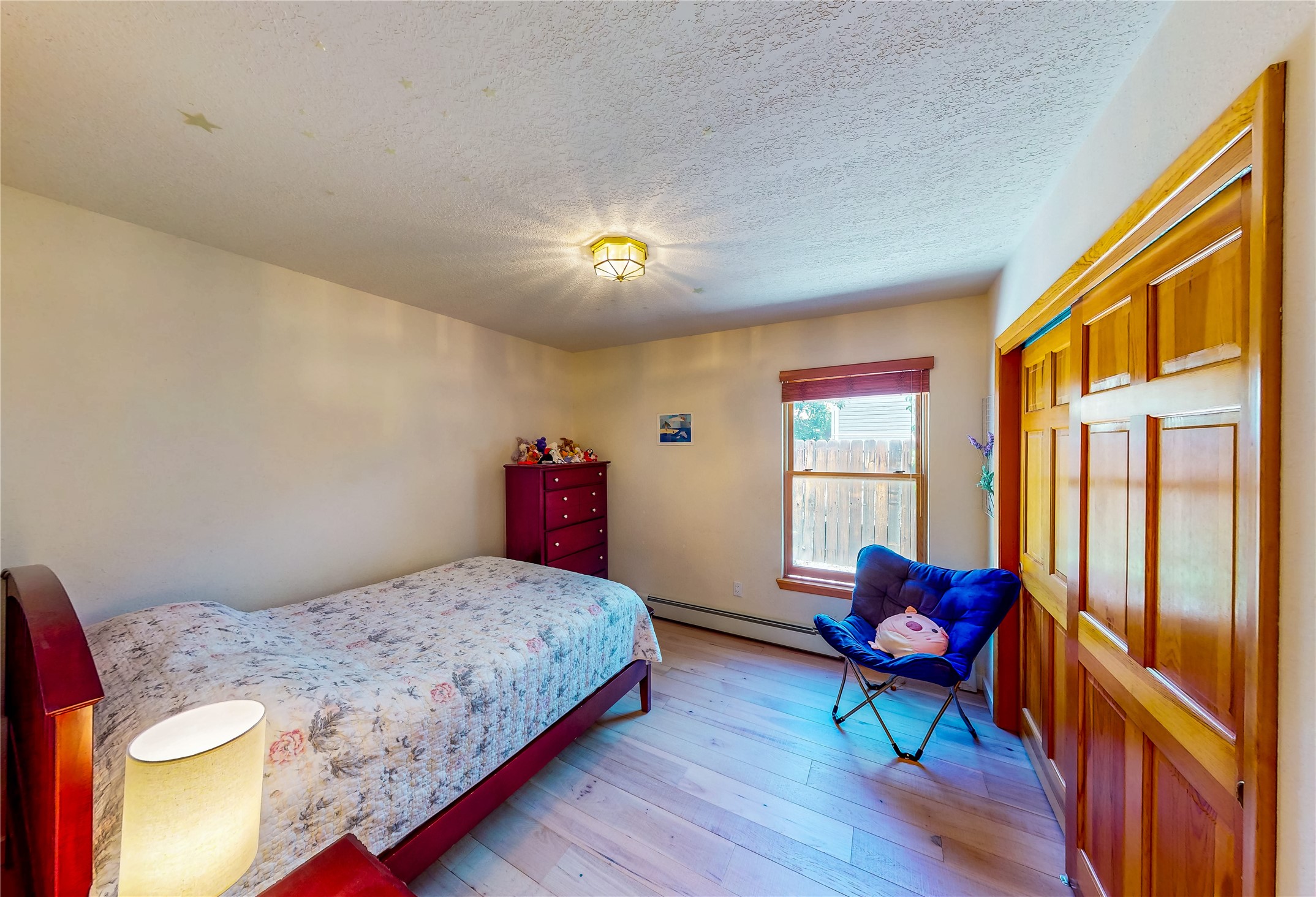 Tucked behind mature shrubs and trees, this charming custom ranch-style home located on a cul-de-sac in North Mesa offers a peaceful sense of privacy and timeless character. A lush front lawn welcomes you to the front entrance, where a brick-floored foyer sets a warm and inviting tone. Just off the entry is a versatile den that could easily serve as a formal dining room, office, or creative space. Straight ahead, the living room features wood plank ceilings with skylights, built-in shelving, and newly installed engineered wood floors that create a cozy yet open atmosphere. Glass doors open to a spacious covered patio and the beautifully landscaped backyard. The kitchen is well-appointed with wood cabinetry, tile backsplash, a pantry, and a peninsula bar top that provides extra seating and connects to the dining/family room. This inviting space centers around a gas fireplace, offering a comfortable spot to gather with family and friends. Down the hallway are two well-sized guest bedrooms and a full guest bathroom with a single sink vanity and a shower/tub combo. A dedicated laundry room provides additional storage and convenient access to the attached two-car garage. The spacious primary en-suite is privately located at the end of the hall for a true retreat, filled with natural light and complete with a large walk-in closet and built-in shelves. The en-suite bathroom includes a single sink vanity, a tub/shower combo in a private toilet closet for added functionality. Step outside to the fully fenced backyard, where mature landscaping, colorful flower beds, vegetable planters, and fruit trees create a lush, serene setting. A large patio offers the ideal space for outdoor dining, entertaining, or simply enjoying the sunshine. Located close to parks, hiking trails, schools, and local horse stables, this North Mesa home is perfect for those seeking both comfort and adventure. Don't miss your opportunity--schedule your private tour today!