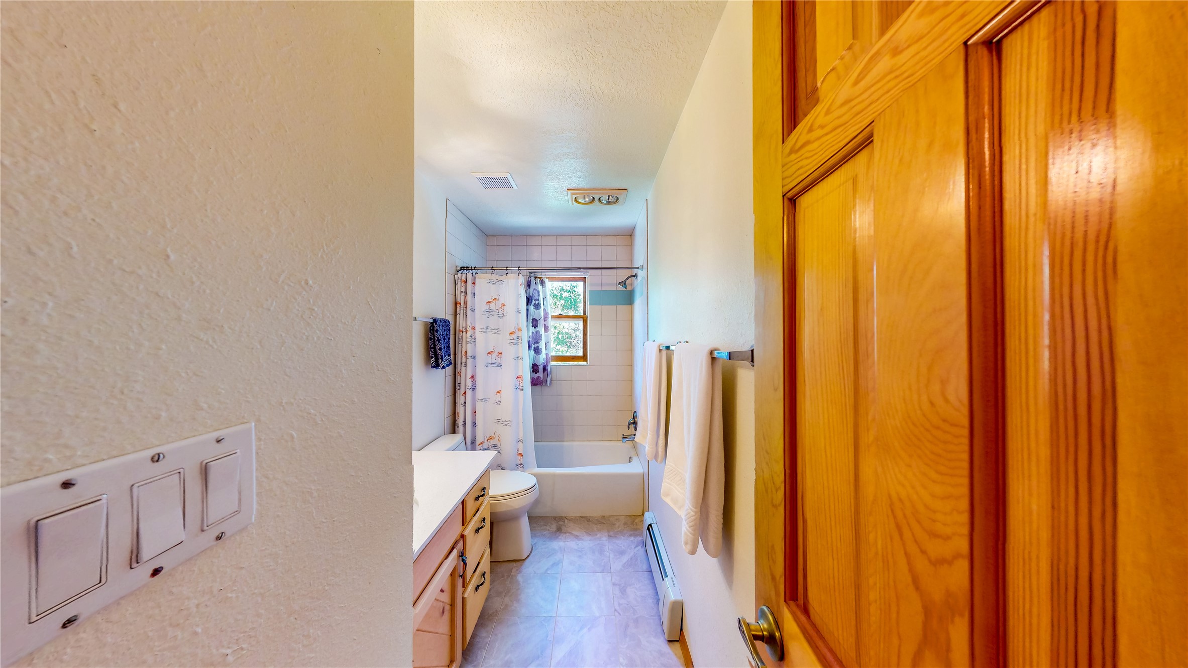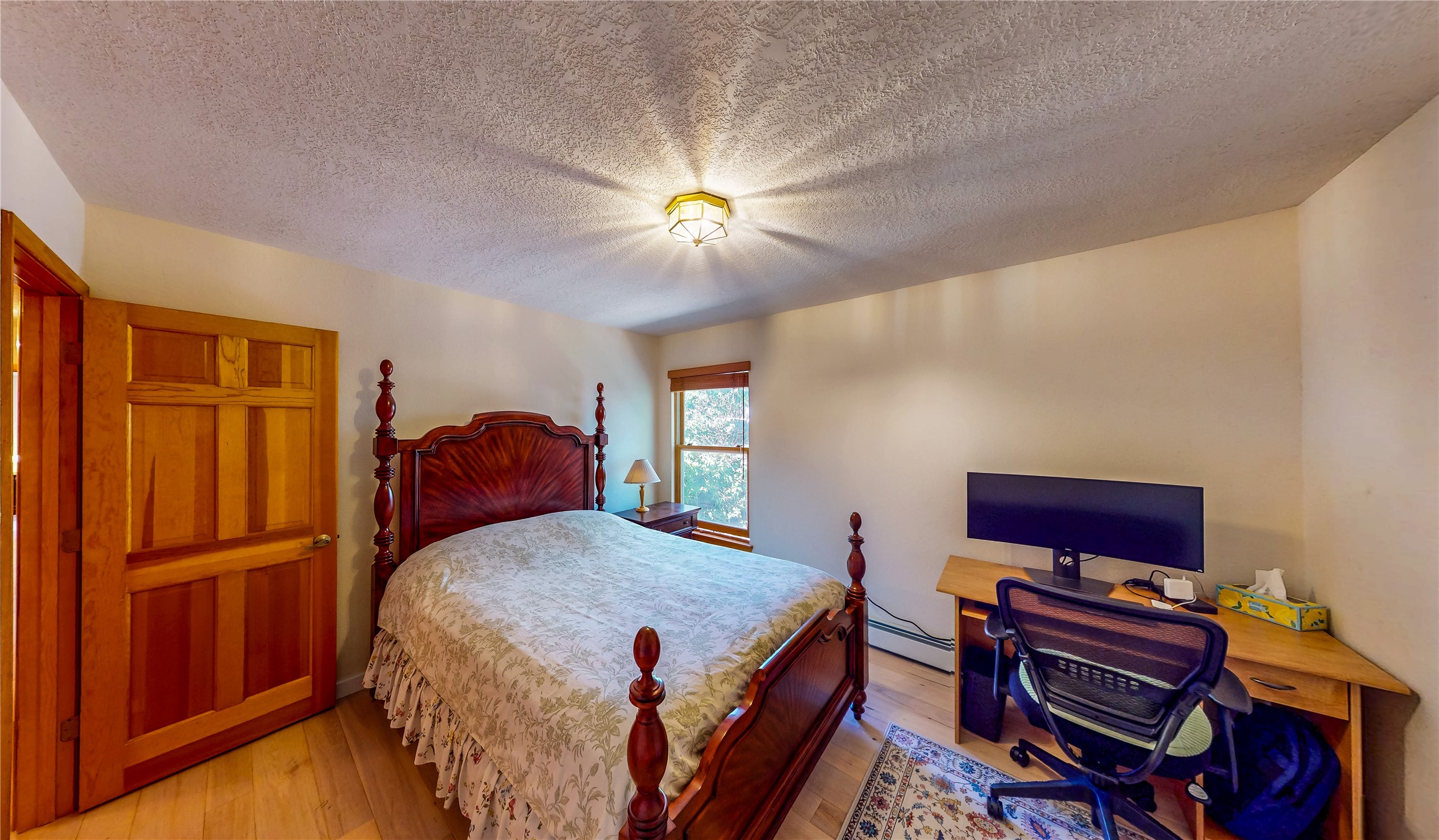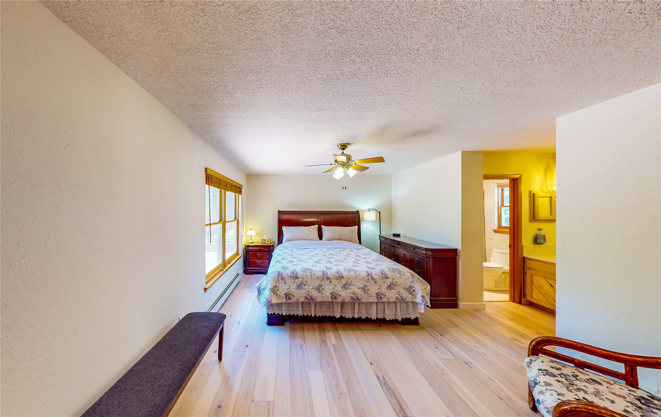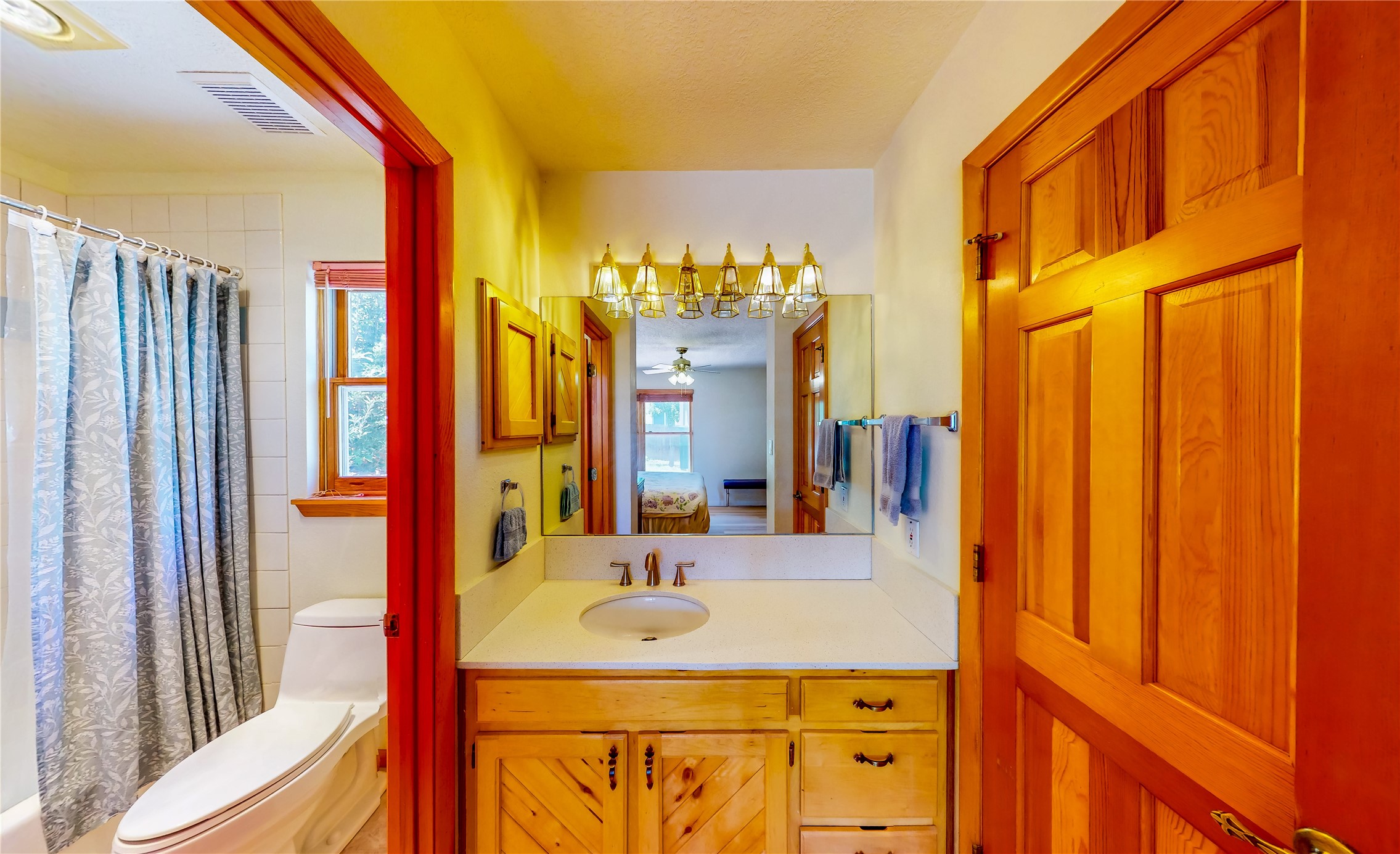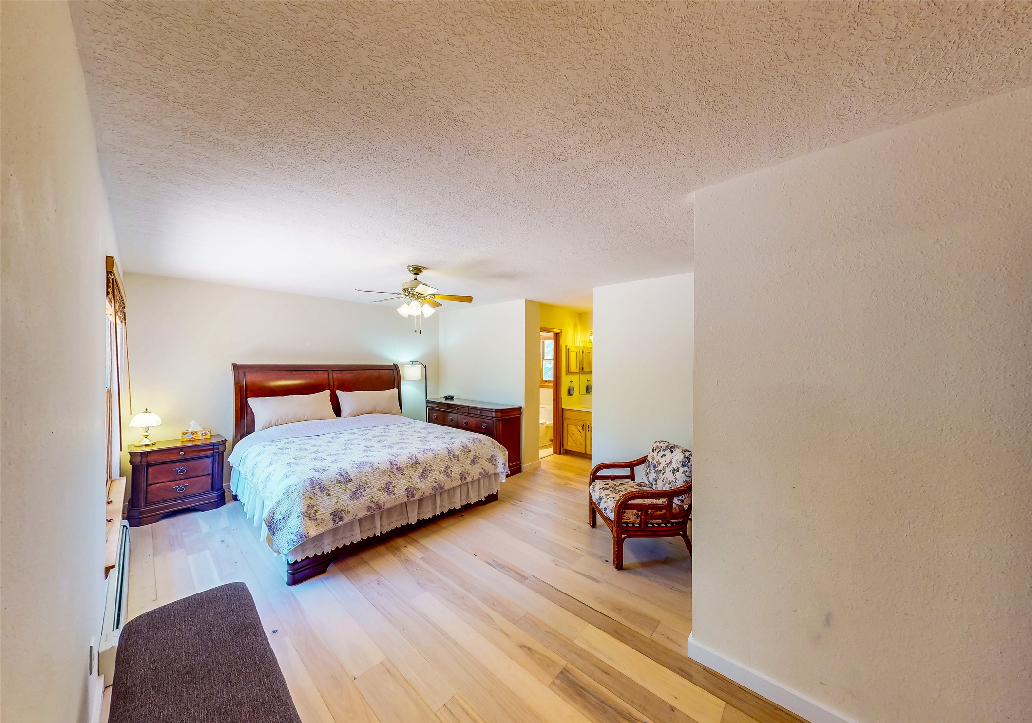 Tucked behind mature shrubs and trees, this charming custom ranch-style home located on a cul-de-sac in North Mesa offers a peaceful sense of privacy and timeless character. A lush front lawn welcomes you to the front entrance, where a brick-floored foyer sets a warm and inviting tone. Just off the entry is a versatile den that could easily serve as a formal dining room, office, or creative space. Straight ahead, the living room features wood plank ceilings with skylights, built-in shelving, and newly installed engineered wood floors that create a cozy yet open atmosphere. Glass doors open to a spacious covered patio and the beautifully landscaped backyard. The kitchen is well-appointed with wood cabinetry, tile backsplash, a pantry, and a peninsula bar top that provides extra seating and connects to the dining/family room. This inviting space centers around a gas fireplace, offering a comfortable spot to gather with family and friends. Down the hallway are two well-sized guest bedrooms and a full guest bathroom with a single sink vanity and a shower/tub combo. A dedicated laundry room provides additional storage and convenient access to the attached two-car garage. The spacious primary en-suite is privately located at the end of the hall for a true retreat, filled with natural light and complete with a large walk-in closet and built-in shelves. The en-suite bathroom includes a single sink vanity, a tub/shower combo in a private toilet closet for added functionality. Step outside to the fully fenced backyard, where mature landscaping, colorful flower beds, vegetable planters, and fruit trees create a lush, serene setting. A large patio offers the ideal space for outdoor dining, entertaining, or simply enjoying the sunshine. Located close to parks, hiking trails, schools, and local horse stables, this North Mesa home is perfect for those seeking both comfort and adventure. Don't miss your opportunity--schedule your private tour today!
