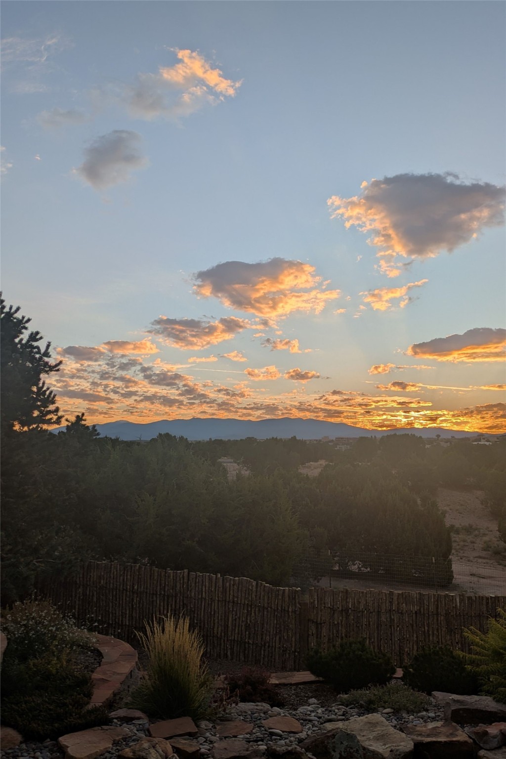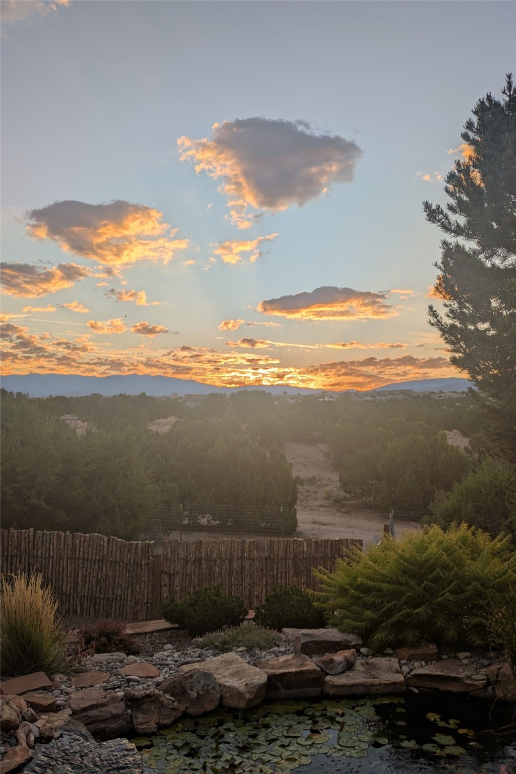 A true Santa Fe masterpiece, this luxurious estate seamlessly blends art, architecture, and nature on a serene 2.46-acre lot with breathtaking views of the Sangre de Cristo mountains. Designed for comfort, sustainability, and inspired living, this extraordinary property offers every amenity for the discerning homeowner.Notable features include double and single-car garages plus a large RV garage, ideal for car enthusiasts, adventure seekers or workshop. The 62-panel solar system and five 2,500-gallon interconnected buried cisterns support an eco-conscious lifestyle, while the extensive drip irrigation system nourishes a lush 1,000 sq. ft. irrigated vegetable garden, orchard (peach, apple, and plum trees), a berry patch bursting with blueberries, blackberries, and raspberries.Enjoy miles of hiking, biking, and horseback riding trails just across the street, or relax in your private oasis with green space bordering the eastern edge of the property, a tranquil water feature with Koi pond, and multiple covered outdoor entertaining spaces, including a plumbed gas fire pit and a fully insulated hot tub.Inside, comfort and luxury abound with radiant floor heating throughout, mini-split systems for cooling, and a security system with cameras. The heart of the home is the spectacular Great Hall, anchored by a gas fireplace, and offering soaring ceilings and an atmosphere of timeless elegance and opening to outdoor spaces. Additional highlights include a top-of-the-line chef's kitchen, butler's pantry, and a quilting/art studio.The estate also includes a charming 2-bedroom guest house and a spacious 2-bedroom studio, also with Sangre de Cristo mountains views. Perfect for guests, extended family, or creative workspaces.There is ample parking for guests and extra vehicles, this estate is ideal for entertaining or enjoying peaceful privacy and solitude. A rare opportunity to own a truly magical home that celebrates the best of indoor-outdoor living in Santa Fe.