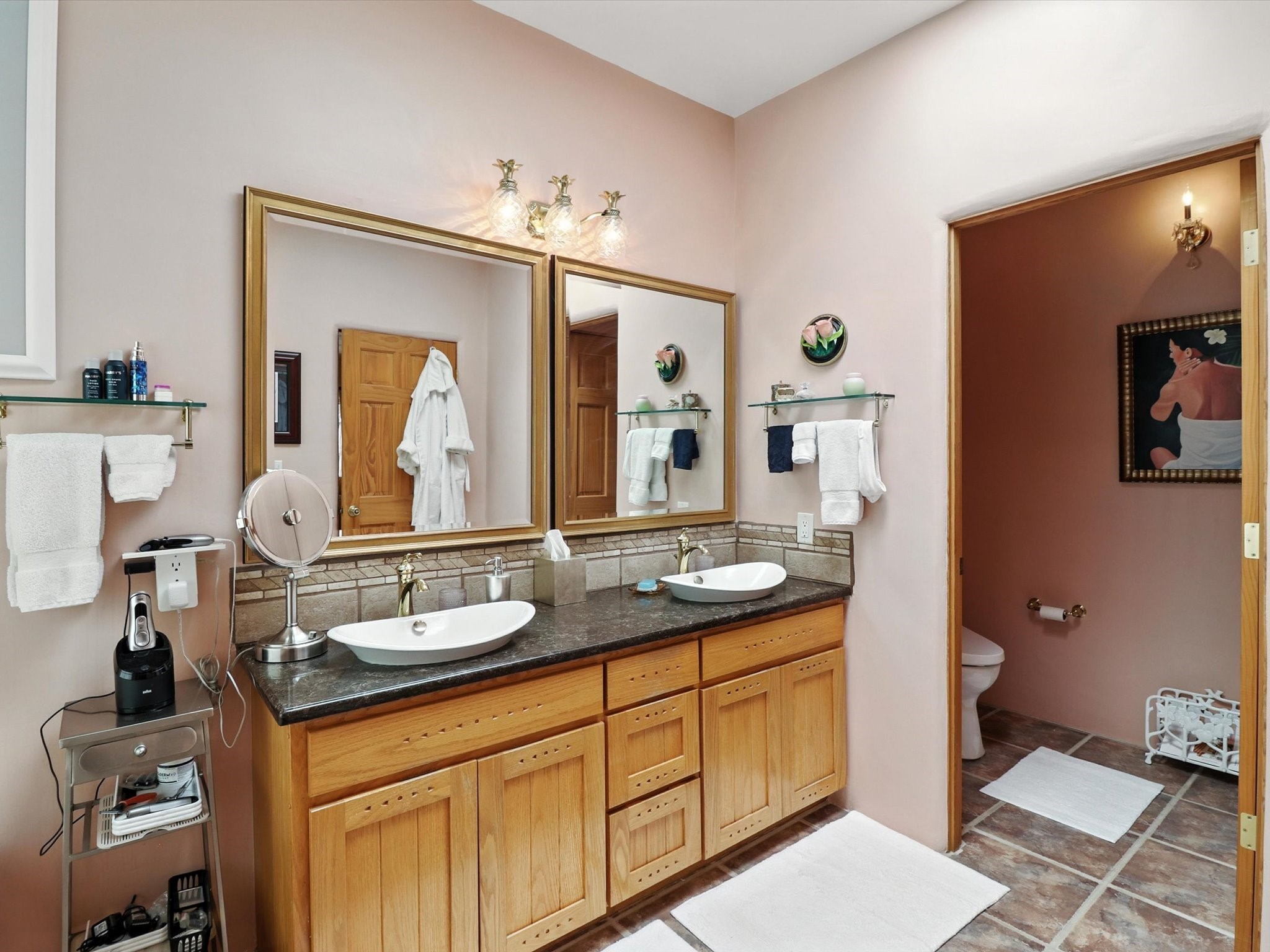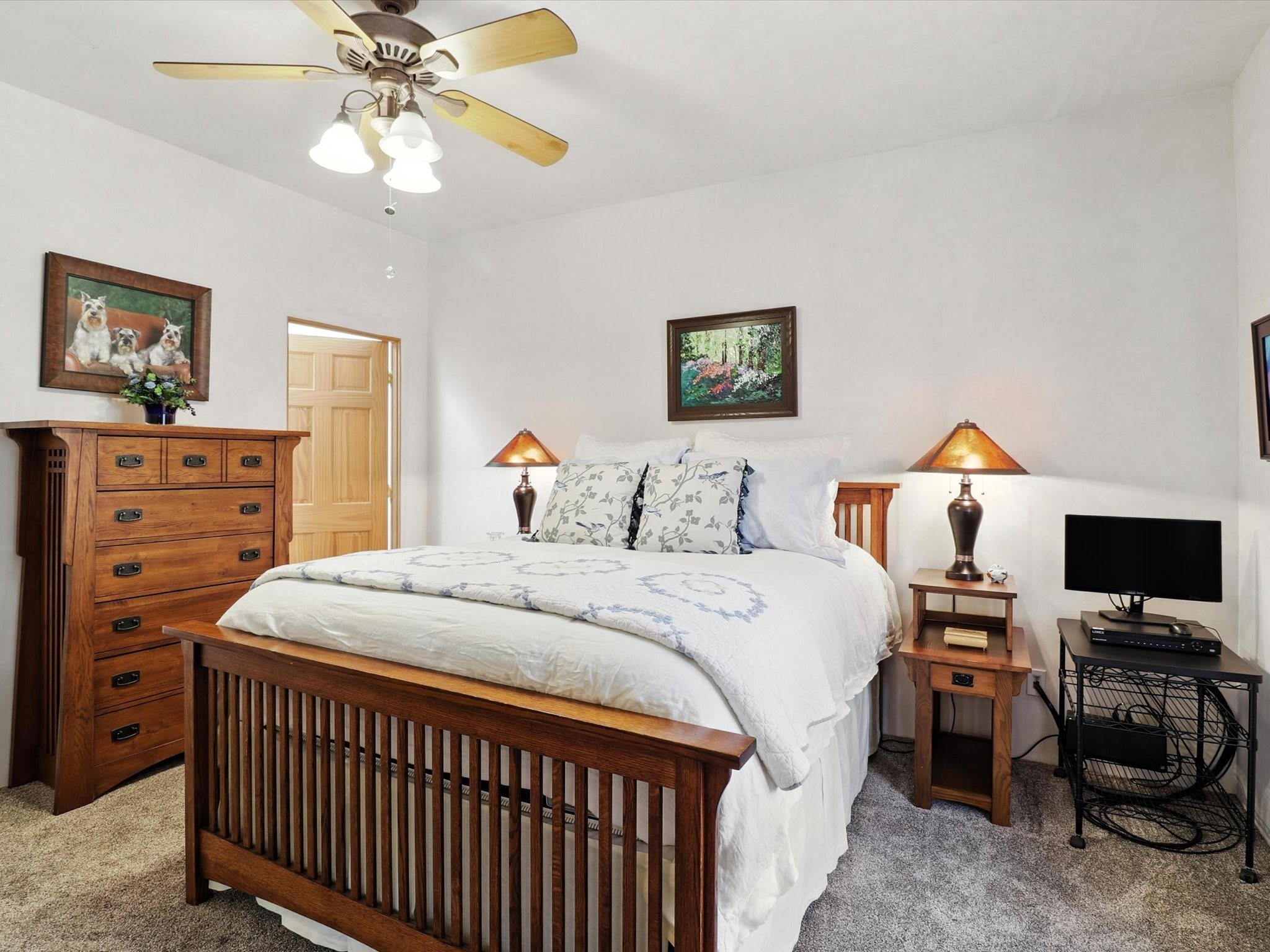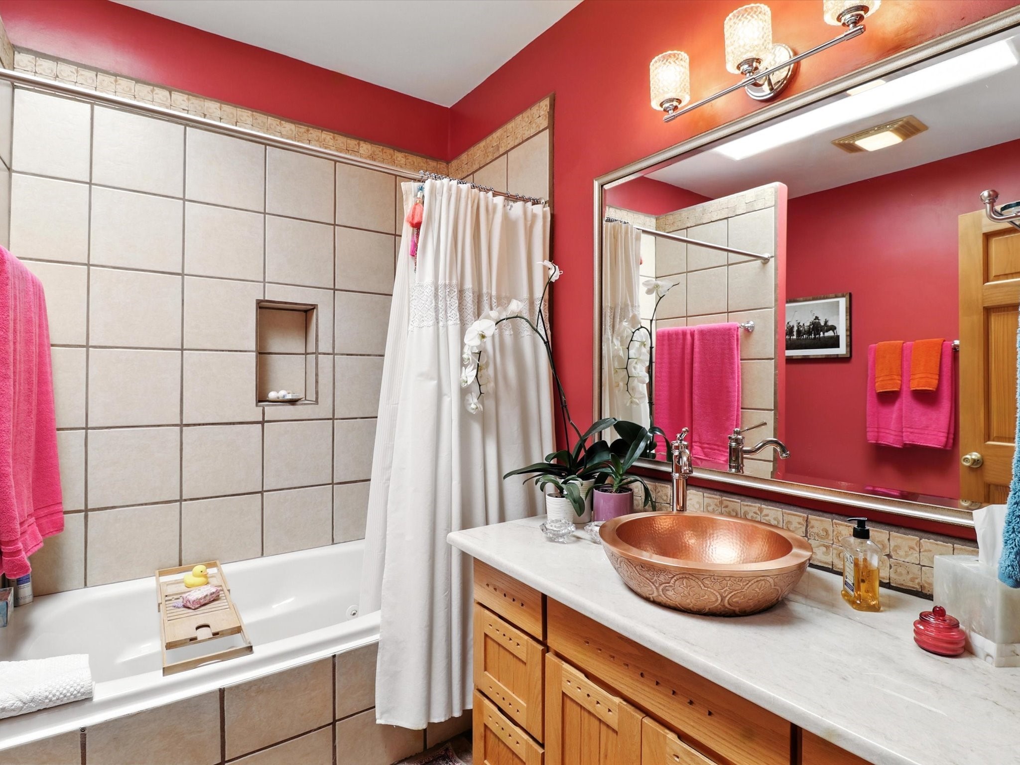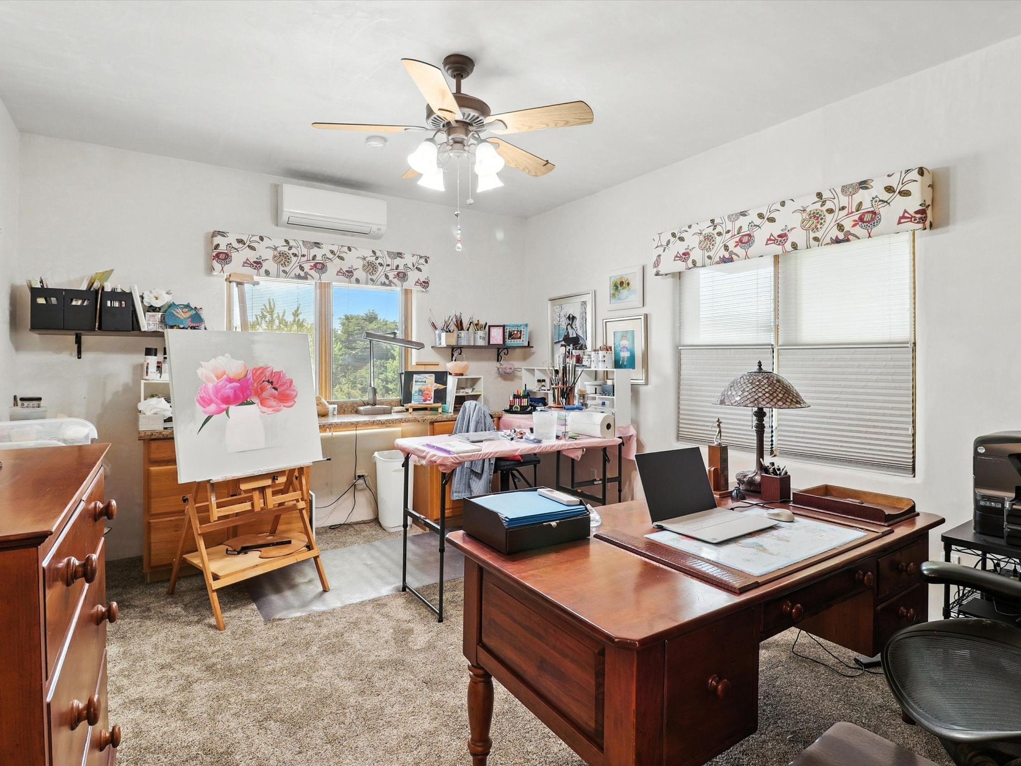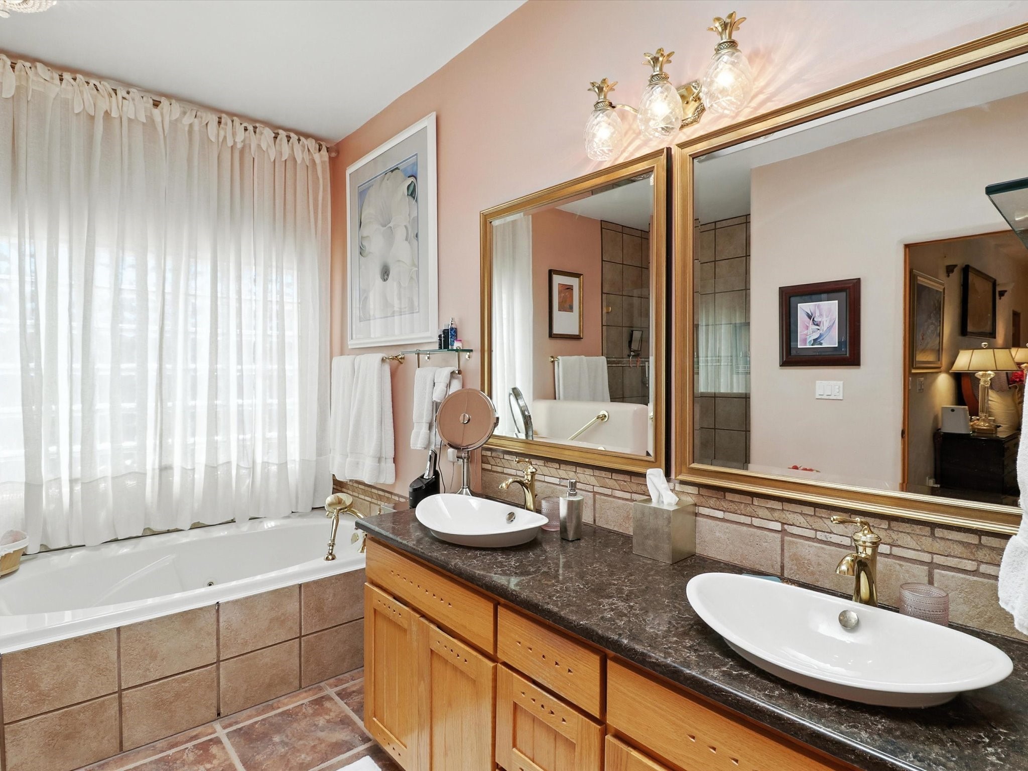 This beautifully maintained and thoughtfully updated home blends timeless Southwestern charm with refined, modern comfort. Spacious and gracefully proportioned rooms are enhanced by luxurious details throughout, including diamond finish plaster walls and elegant, large-format ceramic tile flooring. Step into the dramatic great room, where a soaring 12-foot viga ceiling and a cozy kiva fireplace create a stunning central gathering space. The fully remodeled kitchen is open to the living area and features slab granite countertops, stainless steel appliances, abundant custom cabinetry, and a sunny breakfast nook, perfect for everyday living and entertaining alike. The adjacent formal dining room, also crowned by a high viga ceiling, offers seamless flow for gatherings both intimate and celebratory.A separate den with a wood-burning kiva-style fireplace provides additional flexible living space and opens to a private rear patio and manicured outdoor area.The expansive owner's suite is thoughtfully positioned for privacy and serenity. It includes a peaceful sitting area, direct access to the heated sunroom, and a beautifully appointed updated bath featuring a glass brick wall that gently filters natural light. Two additional bedrooms are located at the opposite end of the home. One is currently serving as studio and office, the other a wonderful guest room, with both sharing a generous full bath. Additional features include: walled and gated yard with security cameras, attached oversized two-car garage, large walk-in closets in every bedroom, heated enclosed Portal Santa Fe room with adjoining covered BBQ area, 5 mini-split Mitsubishi systems for personalized cooling and supplemental heat w/ upgraded hyper compressors, 13 GPM tankless water heater, Toto Washlet toilets, 18 solar panel (owned), and a large in-town lot with all city utilities. This home has been a place of deep joy, creativity, & care, now ready to welcome its next chapter w/ warmth & grace.