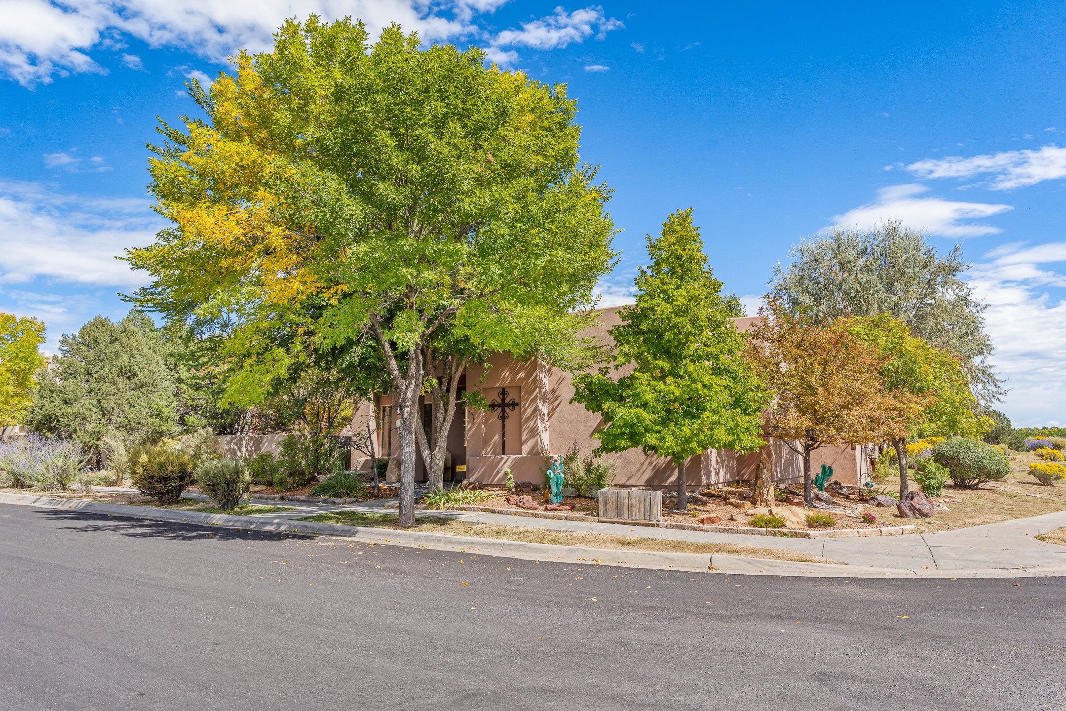 Welcome to this spacious 2,291 sq. ft. single-level home in the sought-after Windmill Ridge neighborhood of Rancho Viejo. Built in 2001, this thoughtfully designed residence offers 3 bedrooms plus an office, 2 bathrooms, 2 courtyards, and a 2-car garage, blending comfort and convenience with timeless Santa Fe style. Interior highlights include high ceilings with beams in the great room, tile flooring throughout, and a gas kiva fireplace in the living room. The extra-large lot is enhanced with mature trees and irrigated plantings.The open-concept design features a light-filled living area anchored by a unique round dining space, creating the perfect flow for both everyday living and entertaining. A comfortable family room sits just off the kitchen, which is equipped with a gas range, granite countertops, and new appliances including a refrigerator, dishwasher, and sink - adding modern ease to this inviting space.A split floor plan places the private primary suite on one side of the home, with two guest bedrooms plus the office on the other--ideal for hosting visitors or creating a home office. Outdoor living is equally inviting with a walled private courtyard perfect for morning coffee, gardening, or starlit evenings. A second courtyard at the back of the home offers charming landscaping and tile murals, creating another serene space to enjoy.Set at the end of a quiet street and just across from walking trails and open space, this property provides a rare sense of serenity while staying connected to the best of Santa Fe.Located within Rancho Viejo, a thriving planned community designed around open land, residents enjoy over 15 miles of paved walking trails, multiple parks, and a strong neighborhood spirit. Shopping, dining, and city amenities are only minutes away, making this home as practical as it is beautiful.Come discover the perfect balance of space, style, and community at 2 Sobradora.