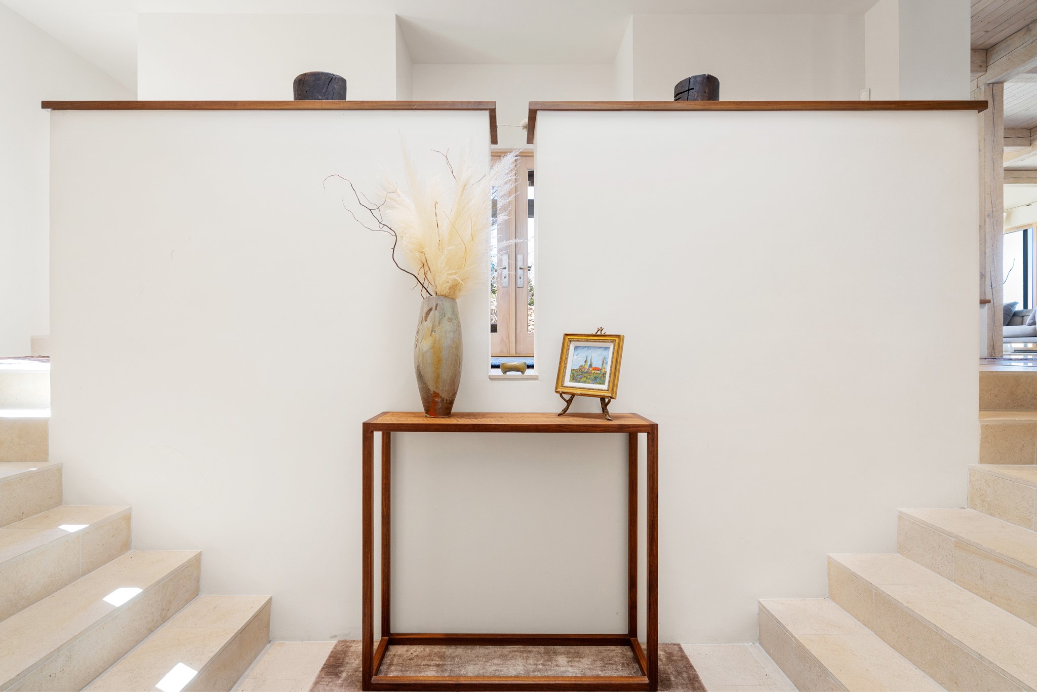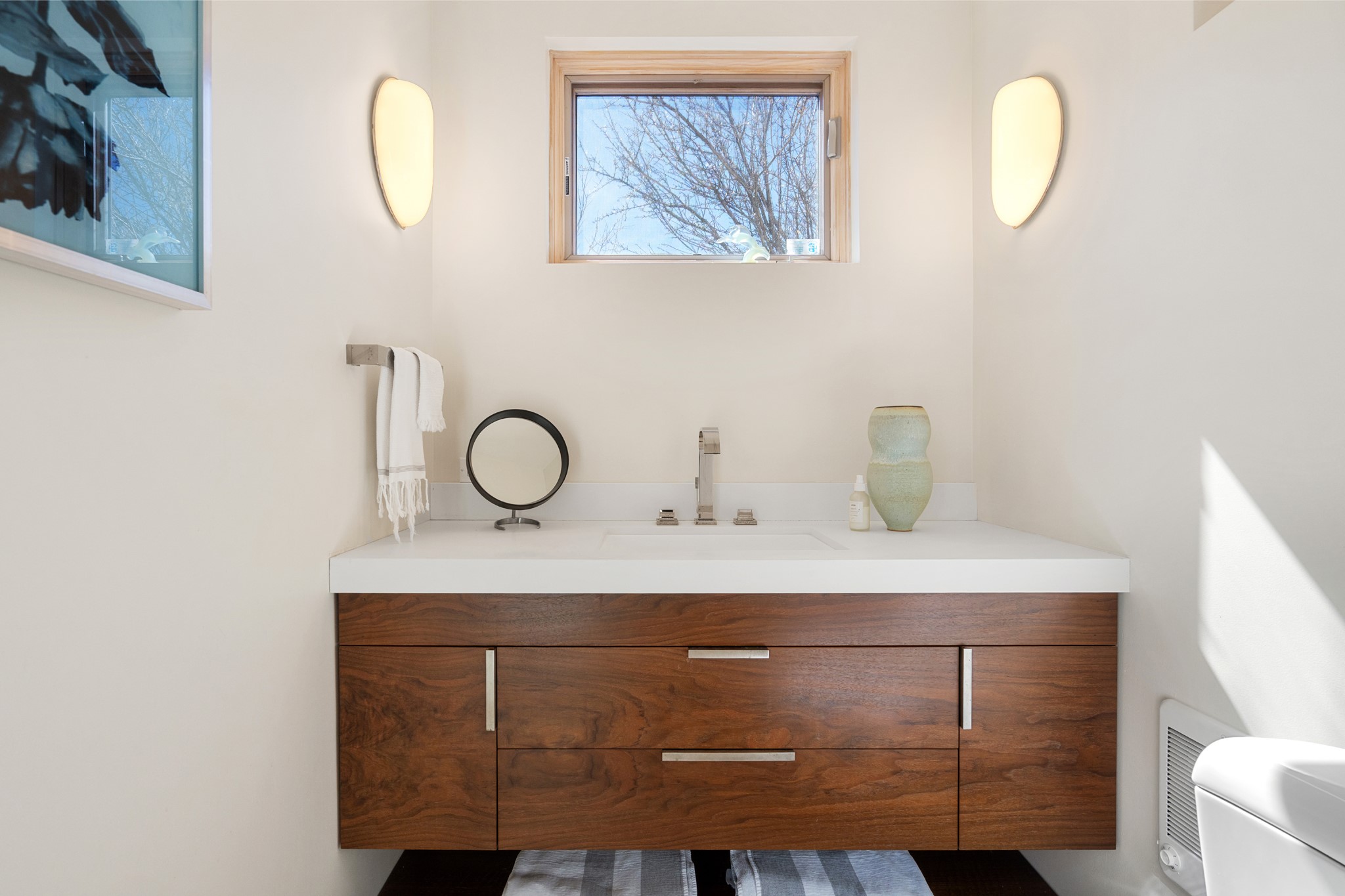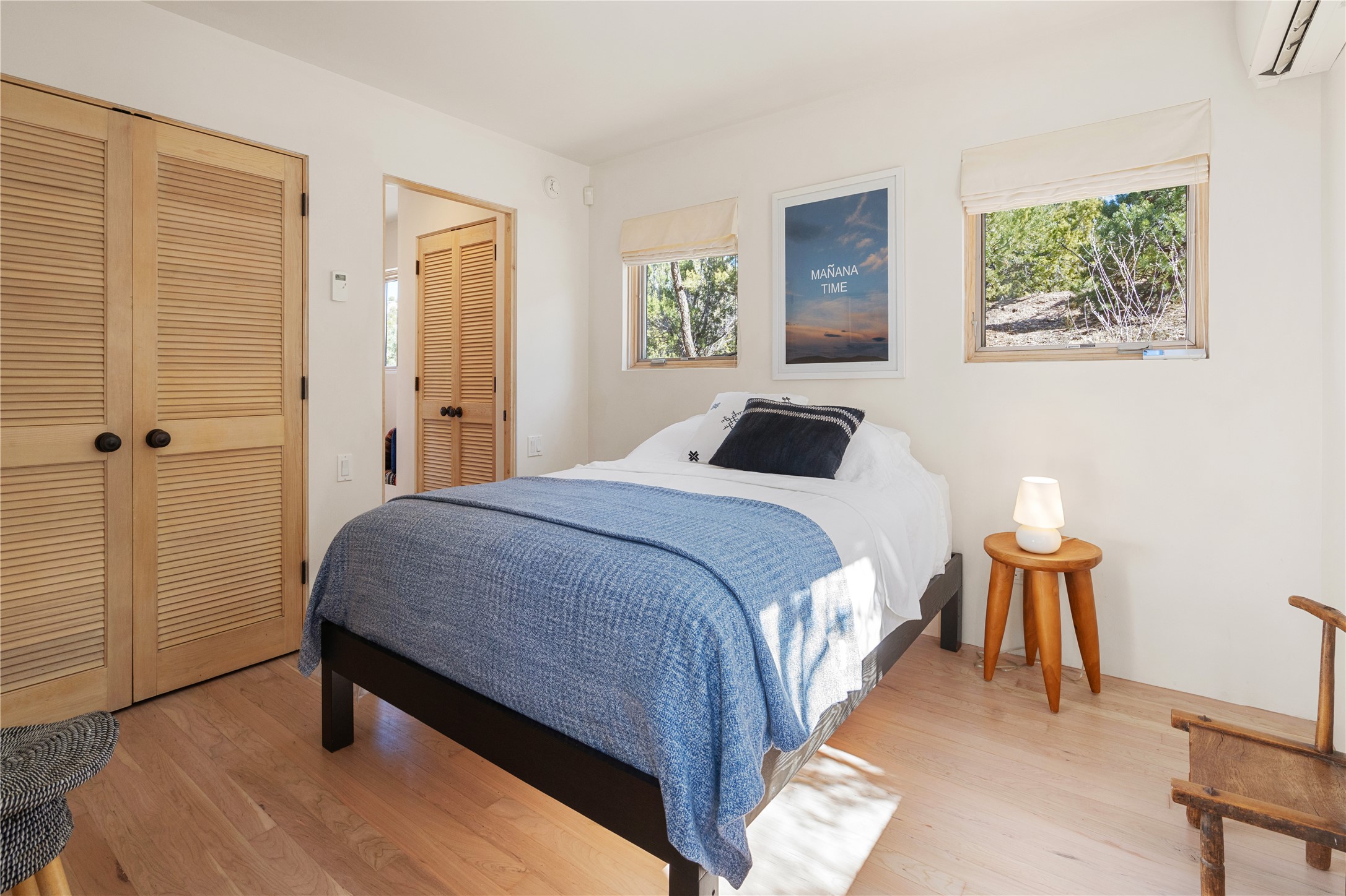This refined main house and privatecasitais set high in the rolling Tesuque foothills of the Sangre de Cristo Mountains.Extensively re-designed and guided by Feng Shui principles so that energy moves smoothly, the main house creates an immediatesense of calm and well-being, with cherrywoodfloors, rich surfaces and fine details.A quiet retreat with serene spaces sets youinside the landscape of atmospheric views that stay with you. Three patios offer a choice of light and spacethroughout the day. Effortless indoor-outdoor living can be enjoyed from sunrise to sunset--this home welcomesbothquiet reflection andgreat hosting.The kitchen cabinetry and other custom pieces were milled and hand made from a single walnut tree from Oregon by alocal artisan.The great room and den offer warmth and light, with curated views, and each open directly ontoits own outdoor space. The calming primary bedroom flows into a restorative, spa-like experience: From soaking tub to sauna toshower, then stepping outdoors to the hot tub for star gazing--an outdoor shower completes the experience. Next, thecharming 2-bedroom, 2-bath guest house, which is separated by gorgeous native plantings and fruit trees, has its own entrance and parking toprovide exceptional privacy and flexibility for guests. This home offers a rare balance of seclusion and access--equally suited as a lock-and-leave retreat or a primary residence. Serene and immersed in nature, yet minutes from The Four Seasons,Tesuque Village Market, El Nido, andapp. 15 minutes to the Plaza and the Santa Fe Opera. Gated Los Caminitos comprises 573-acres with mapped trails for residents, a clubhouse, pool, tennis and pickleball. There is a staircase from the garage to main level.