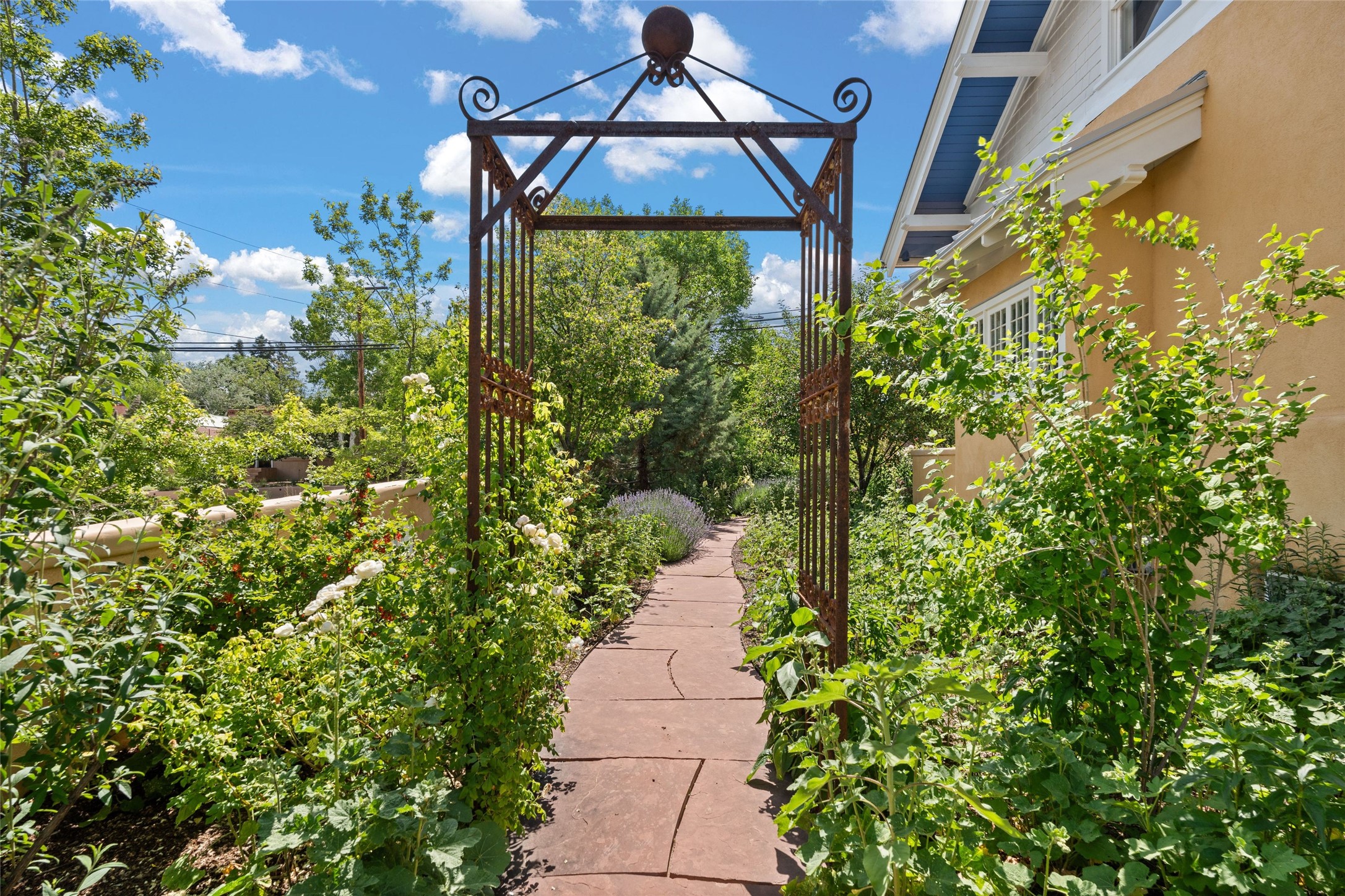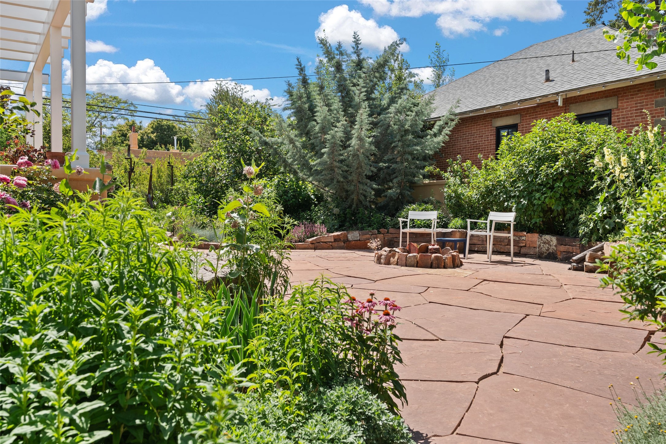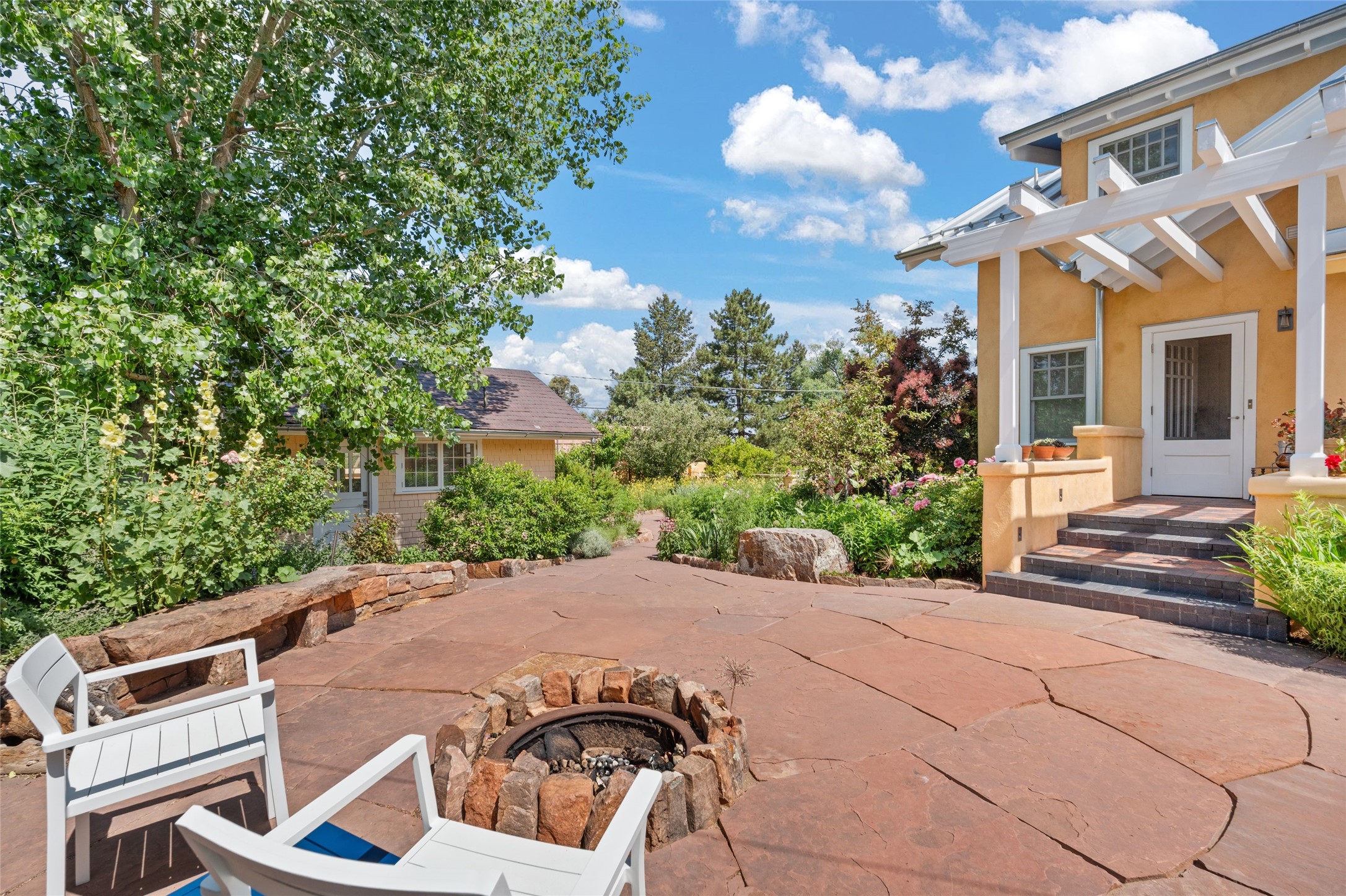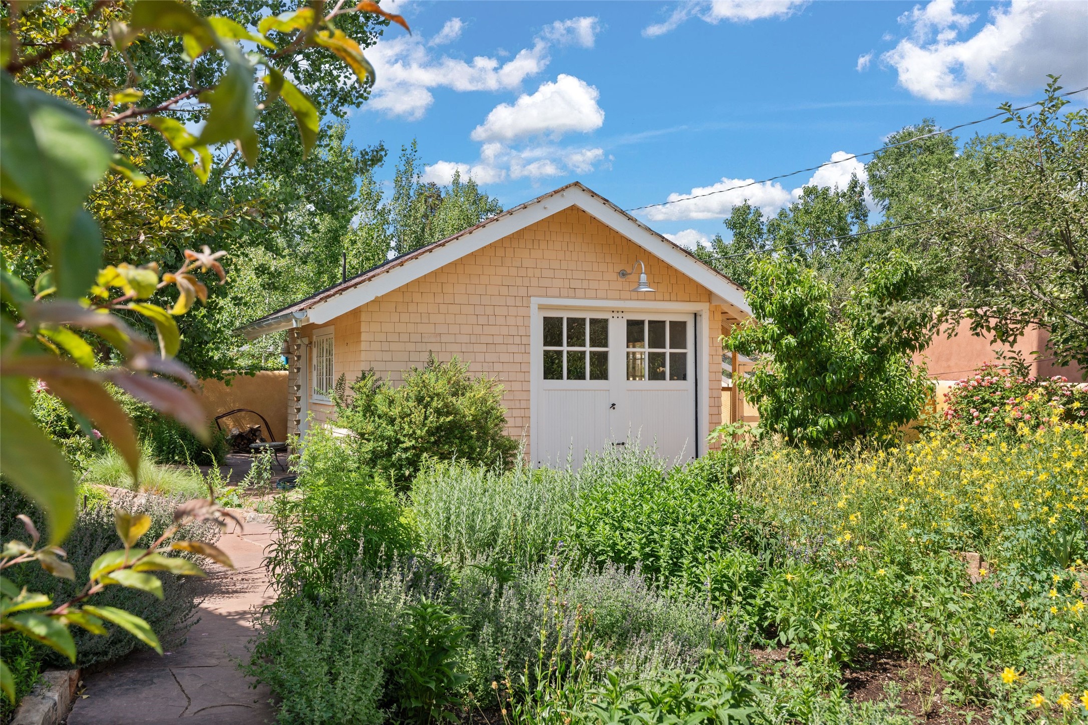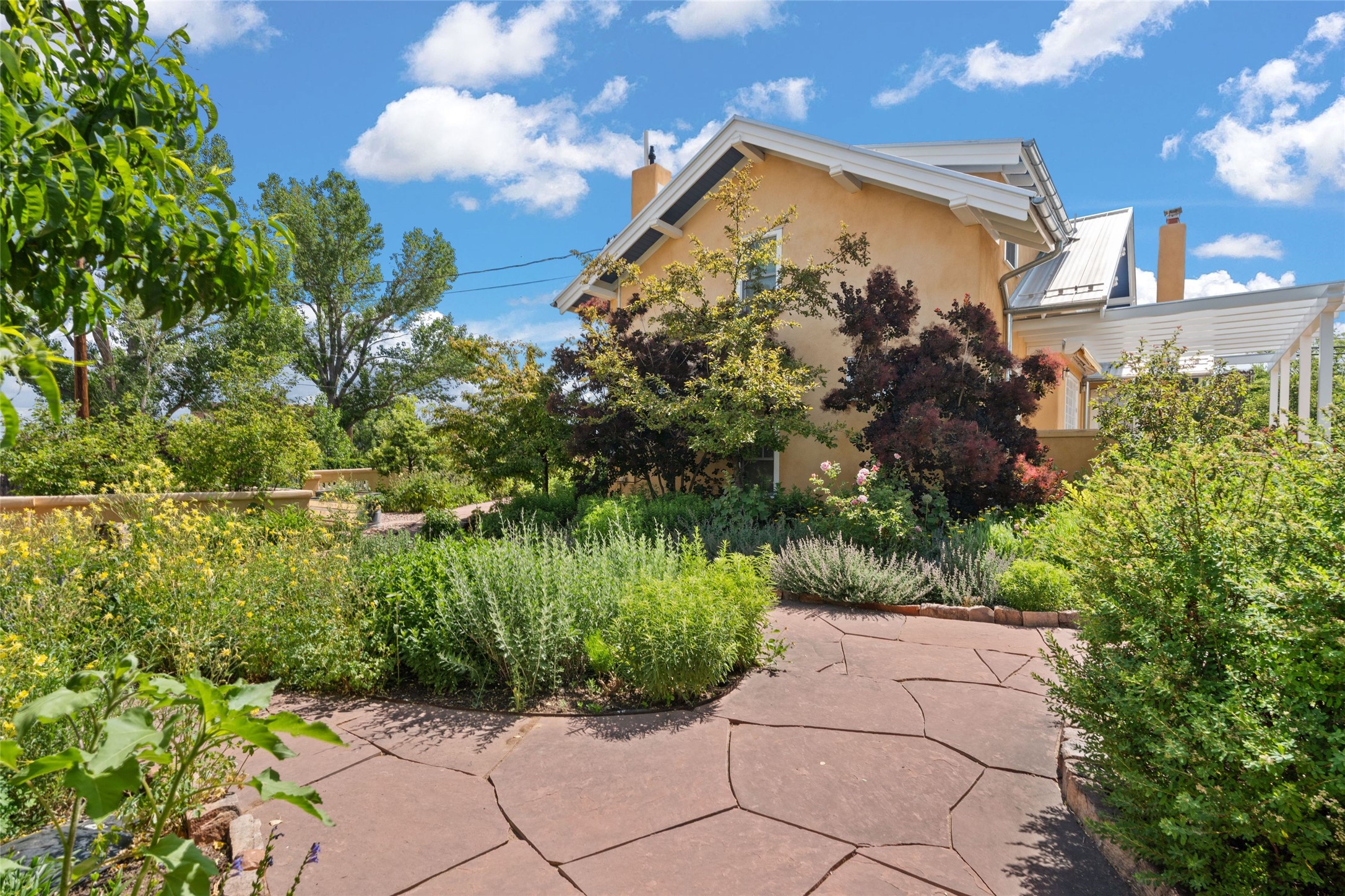 Here's an opportunity to own a rare and special Craftsman-style home in South Capitol. The magnificent, flowering grounds, quality and scale separate this property from its surroundings, making it one of the most charming and irreplaceable properties in this sought-after downtown neighborhood. The over 3,000 square-foot, 4-bedroom, 3-bathroom, two-story home is complimented by a detached 450-square foot studio. Originally restored by award-winning builder Tierra Concepts, the historical home has updated finishes that are refined and timeless. The first level contains the elegant kitchen, primary bedroom suite, dining room, and flexible entertaining and relaxation spaces. The upstairs fits a den and three bedrooms or offices, sharing a full bathroom. Throughout the interior spaces are charming details and accents, like a reading nook built into the stairwell landing. A finished basement provides surprisingly ample storage, hard to find elsewhere downtown. While wrapped in a nostalgic package of a past architectural era, the house holds a Gold LEED certification. Modern updates include a whole-house water treatment system, high-efficiency furnace, on-demand water heater, ERV air circulation system, and rainwater catchment cisterns. Despite the bounties of the home and studio, the real highlight are the stunning landscaped grounds. Flagstone paths meander past fountains and blooming garden beds to sitting areas tucked away behind masks of purple, yellow, red flowers. Outside the kitchen is a brick patio beneath a wooden pergola, overlooking the fire pit seating area. The privacy and serenity of the property is in contrast to its in-town and walkable location. 904 Don Gaspar is a world of privacy in the heart of Santa Fe, offering a rare balance of history and design.