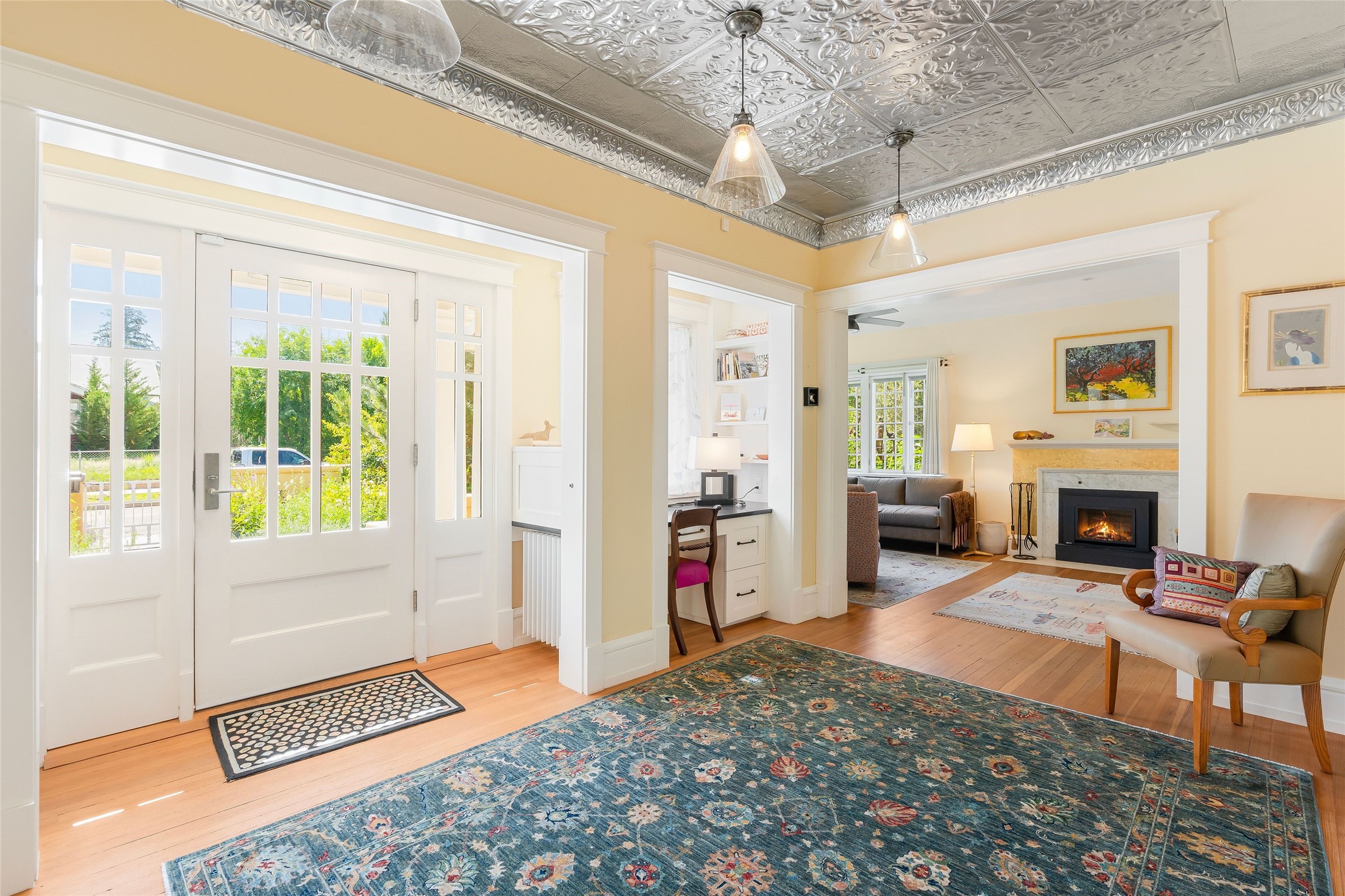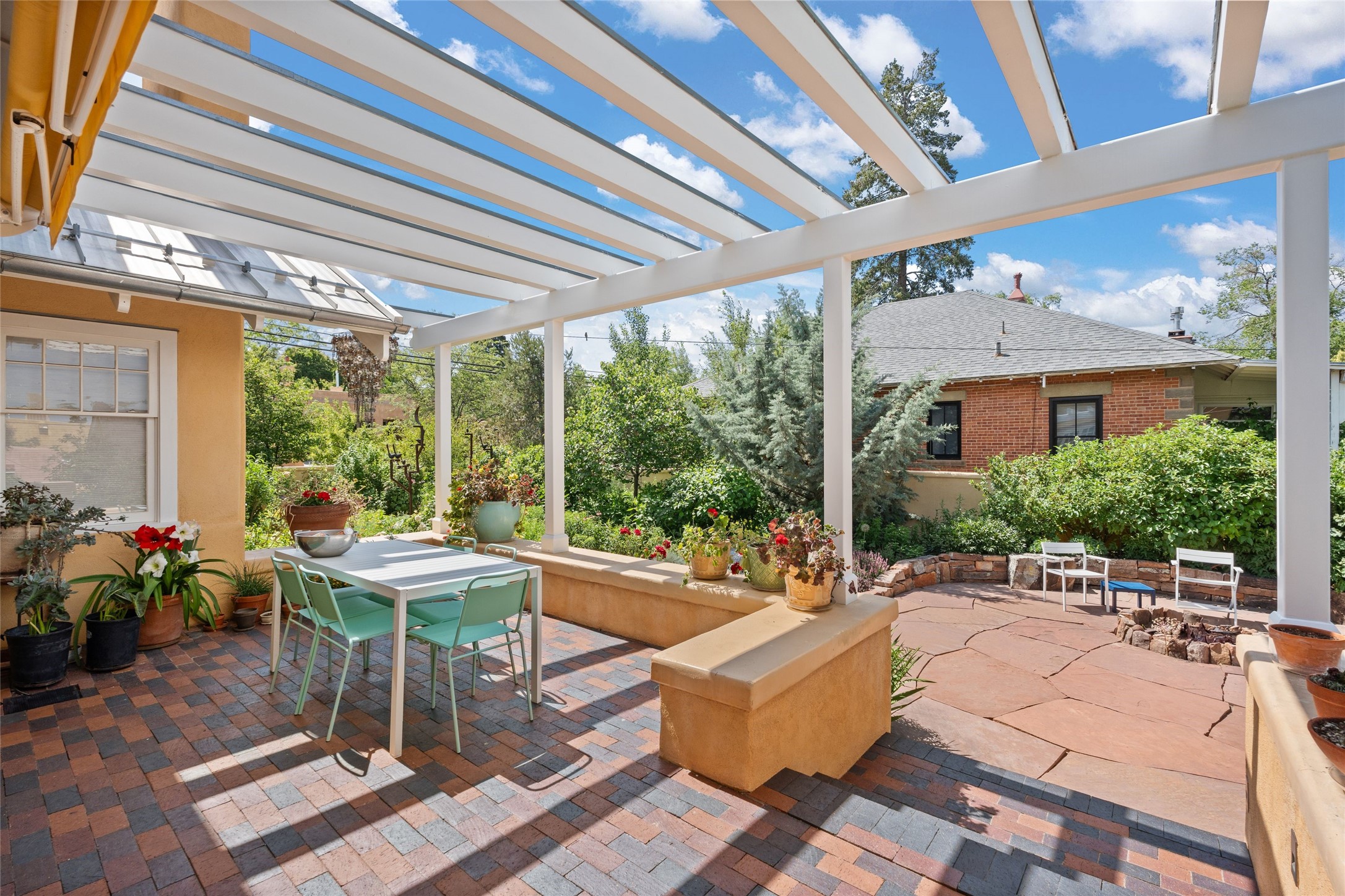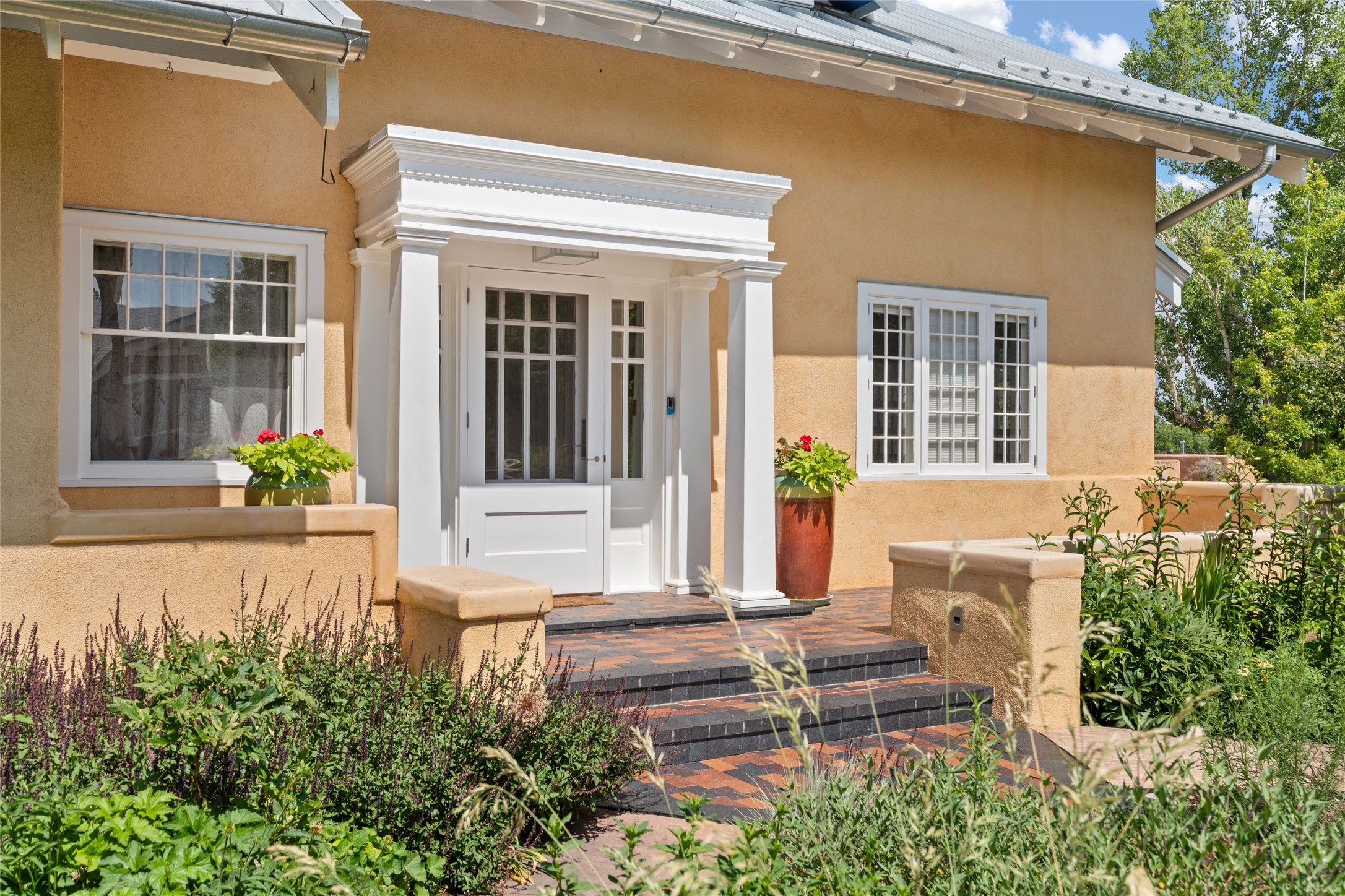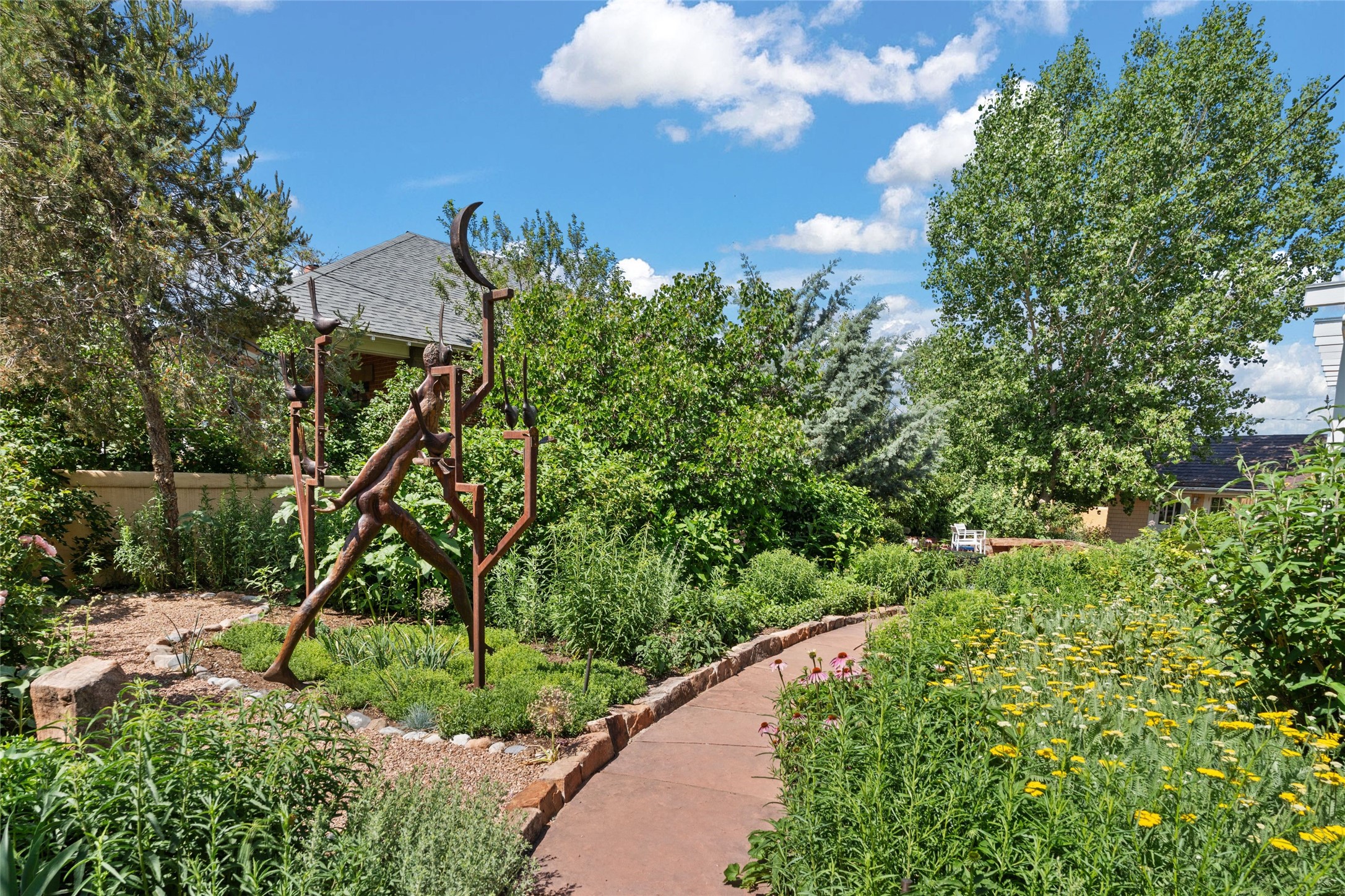 Here's an opportunity to own a rare and special Craftsman-style home in South Capitol. The magnificent, flowering grounds, quality and scale separate this property from its surroundings, making it one of the most charming and irreplaceable properties in this sought-after downtown neighborhood. The over 3,000 square-foot, 4-bedroom, 3-bathroom, two-story home is complimented by a detached 450-square foot studio. Originally restored by award-winning builder Tierra Concepts, the historical home has updated finishes that are refined and timeless. The first level contains the elegant kitchen, primary bedroom suite, dining room, and flexible entertaining and relaxation spaces. The upstairs fits a den and three bedrooms or offices, sharing a full bathroom. Throughout the interior spaces are charming details and accents, like a reading nook built into the stairwell landing. A finished basement provides surprisingly ample storage, hard to find elsewhere downtown. While wrapped in a nostalgic package of a past architectural era, the house holds a Gold LEED certification. Modern updates include a whole-house water treatment system, high-efficiency furnace, on-demand water heater, ERV air circulation system, and rainwater catchment cisterns. Despite the bounties of the home and studio, the real highlight are the stunning landscaped grounds. Flagstone paths meander past fountains and blooming garden beds to sitting areas tucked away behind masks of purple, yellow, red flowers. Outside the kitchen is a brick patio beneath a wooden pergola, overlooking the fire pit seating area. The privacy and serenity of the property is in contrast to its in-town and walkable location. 904 Don Gaspar is a world of privacy in the heart of Santa Fe, offering a rare balance of history and design.