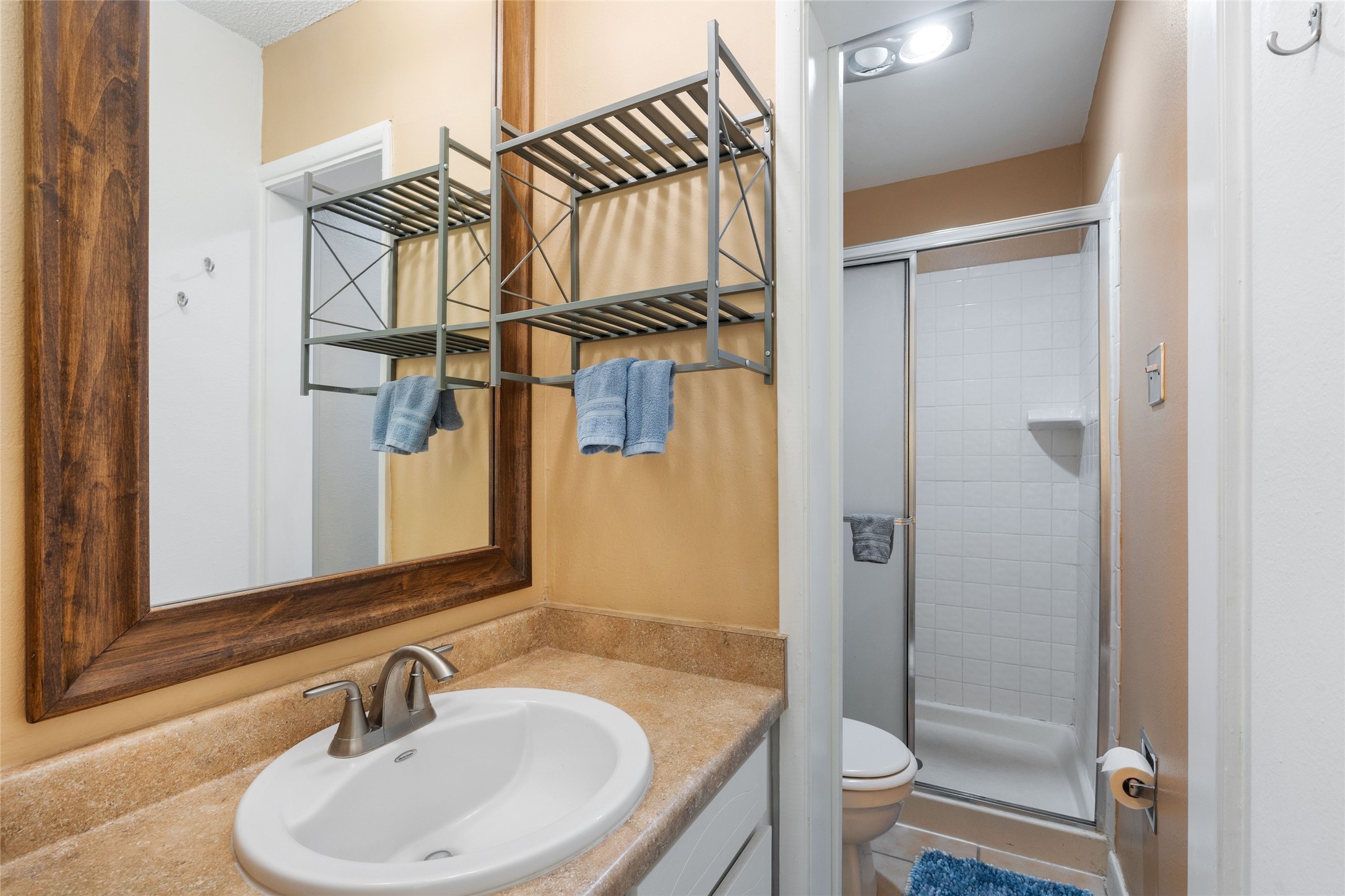 Renovated 2-bedroom, 2-bathroom condo located on the second floor of the Los Arroyos Compound on the shady side of the building. Upon entry, the living and dining areas flow onto an outdoor deck with views of Atalaya, Picacho Peak, and the Sun and Moon Mountains. The modern L-shaped kitchen is appointed with clean, white cabinets and provides ample storage and workspace for cooking. The split bedroom plan ensures privacy and convenience for guests or roommates. Additionally, it includes a large laundry and storage room with a stacked washer and dryer. The Los Arroyos Compound includes access to an array of amenities, including a clubhouse and outdoor space for social gatherings, an indoor pool, exercise room, sauna, and tennis courts. Easy access to 285, I-25 and restaurants, health/wellness facilities and shopping