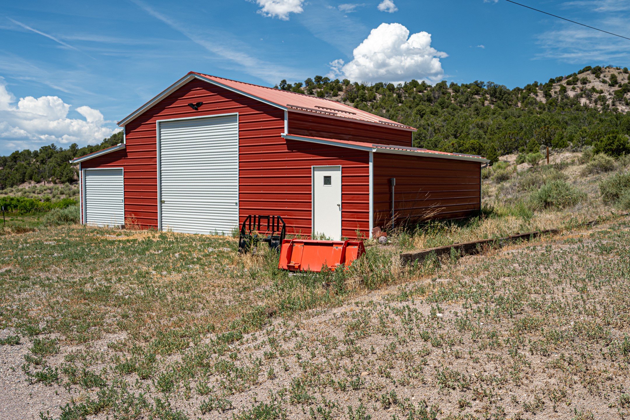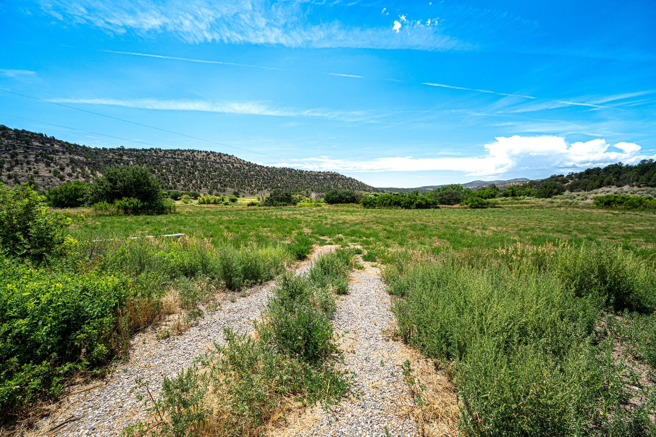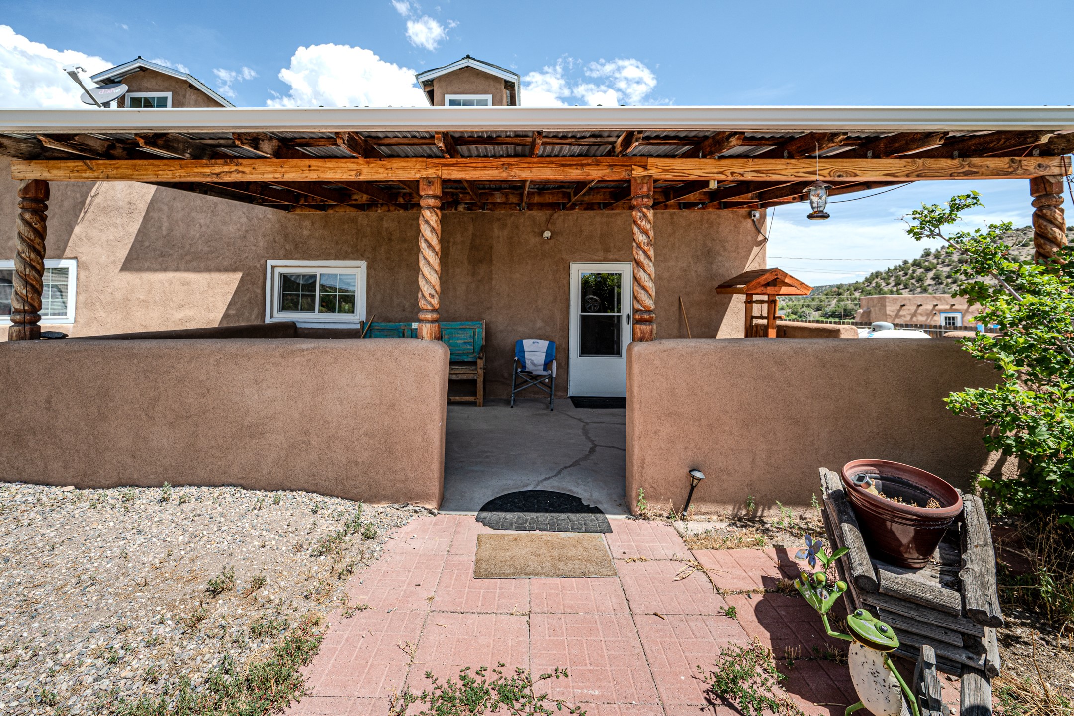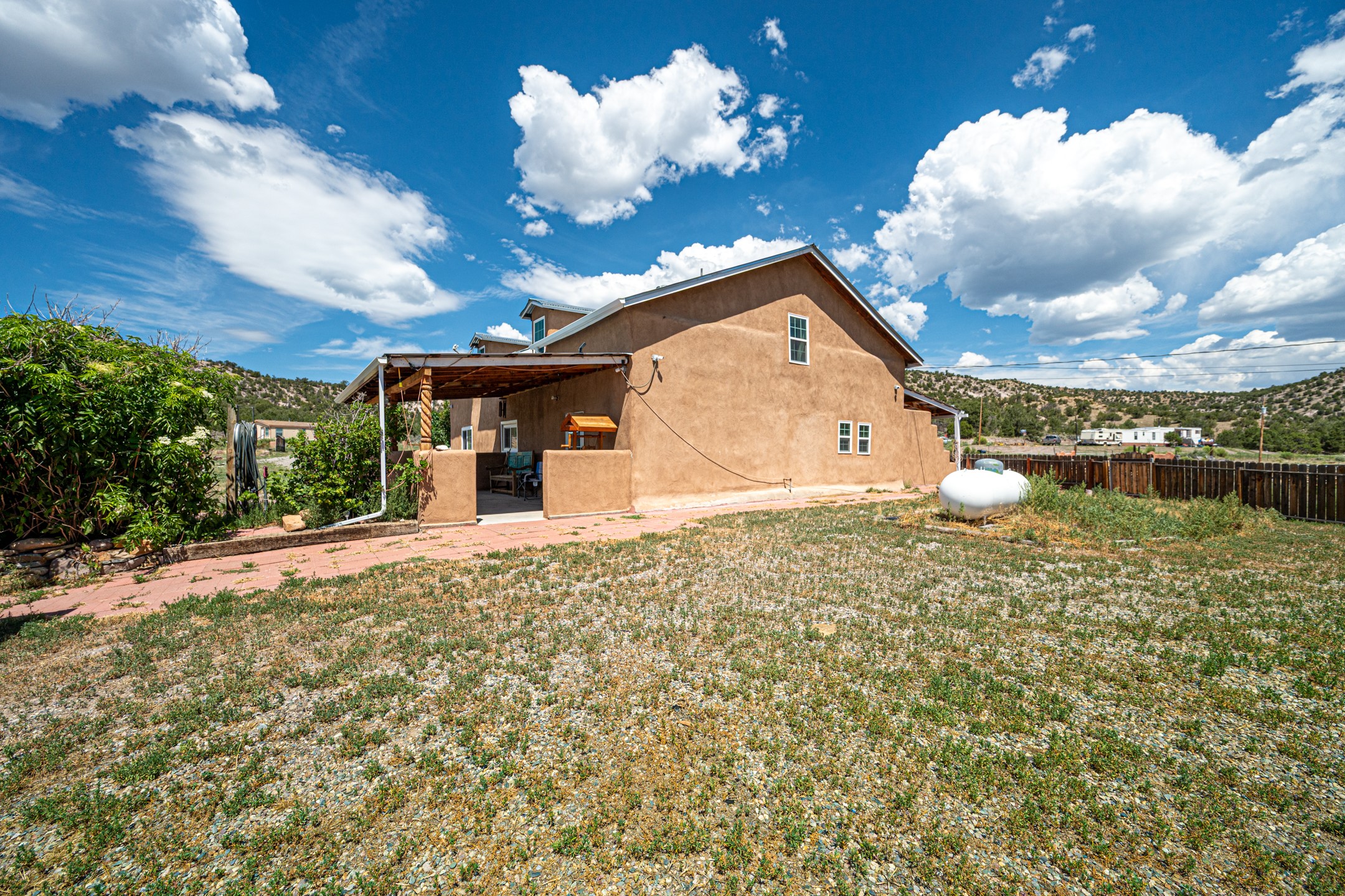 This sprawling ranch sits on 24 acres with an underground irrigation system throughout and the Tusas River winding through the estate. It consist of an 2600 Sq/Ft adobe (mud block) two-story main house built in the early 1940s. The thick, earthen walls, offers a unique and comforting warmth during the colder months and are cool during the hot summer days are also a glimpse into the rich historic past of New Mexico. Within a short walking distance from the main home, is the 320 Sq/Ft casita dating early circa 1830's. The allure of adobe-style home building, often referred to as Pueblo style, lies in its romantic visual appeal that resonates with many seeking a traditional Southwestern aesthetic. The influence of Moorish architecture on adobe homes is notable, reflecting centuries of cultural exchange between North Africa and Spain, which subsequently impacted the architectural landscape of New Mexico. This historical connection adds a layer of depth to the architectural heritage of the area. The property additionally features a 24'x28' two-car garage; a 36'x 40' workshop and a 36' x36' metal barn. Traditional farming in the area included harvesting alfalfa, vegetables and other farming, largely organic. The community of La Madera population is about 150 people, which offers a great deal of privacy. The mountains surrounding the property are a "high-elevation desert landscape" are characterized by dramatic mountains, broad valleys, high elevation, alkaline soil, and an abundance of diverse plant and animal life. Also offered is the potential of purchasing the farm equipment at a reduced rate. Property is ideal for horses, sheep, cattle, goats, pets and other livestock.
