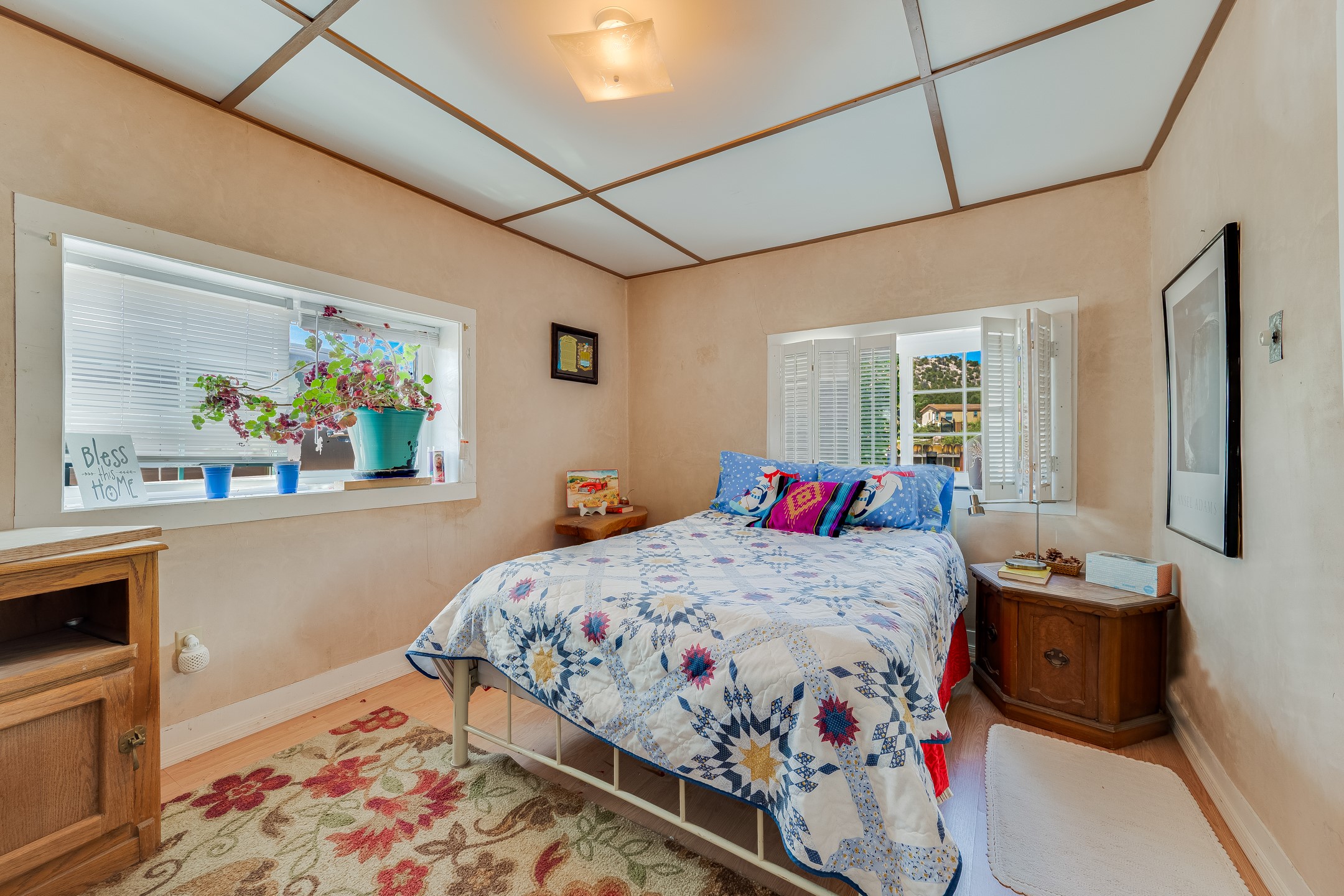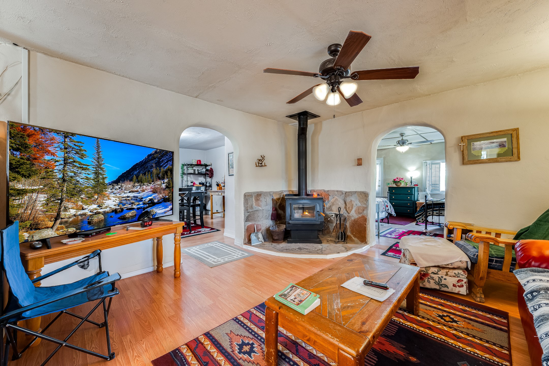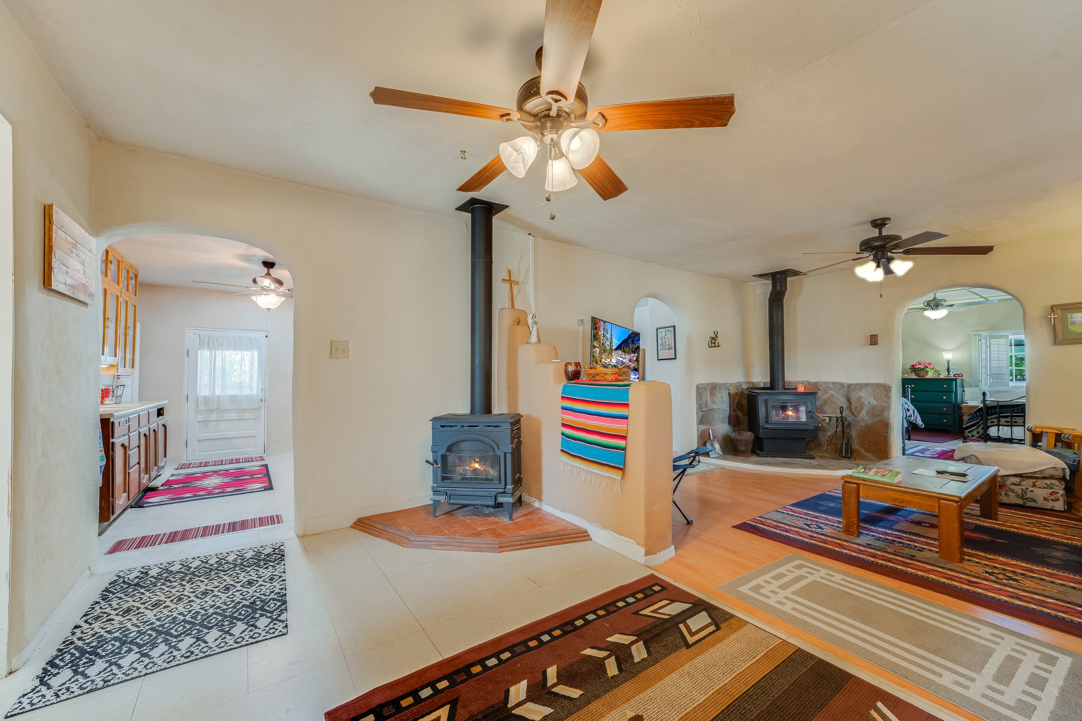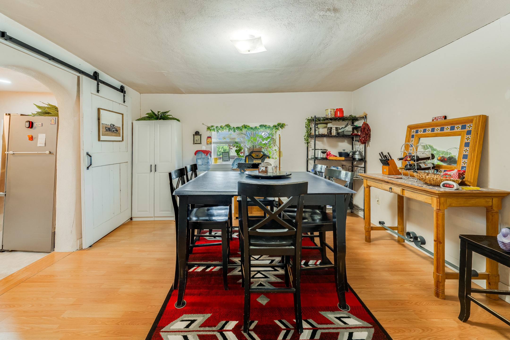 This sprawling ranch sits on 24 acres with an underground irrigation system throughout and the Tusas River winding through the estate. It consist of an 2600 Sq/Ft adobe (mud block) two-story main house built in the early 1940s. The thick, earthen walls, offers a unique and comforting warmth during the colder months and are cool during the hot summer days are also a glimpse into the rich historic past of New Mexico. Within a short walking distance from the main home, is the 320 Sq/Ft casita dating early circa 1830's. The allure of adobe-style home building, often referred to as Pueblo style, lies in its romantic visual appeal that resonates with many seeking a traditional Southwestern aesthetic. The influence of Moorish architecture on adobe homes is notable, reflecting centuries of cultural exchange between North Africa and Spain, which subsequently impacted the architectural landscape of New Mexico. This historical connection adds a layer of depth to the architectural heritage of the area. The property additionally features a 24'x28' two-car garage; a 36'x 40' workshop and a 36' x36' metal barn. Traditional farming in the area included harvesting alfalfa, vegetables and other farming, largely organic. The community of La Madera population is about 150 people, which offers a great deal of privacy. The mountains surrounding the property are a "high-elevation desert landscape" are characterized by dramatic mountains, broad valleys, high elevation, alkaline soil, and an abundance of diverse plant and animal life. Also offered is the potential of purchasing the farm equipment at a reduced rate. Property is ideal for horses, sheep, cattle, goats, pets and other livestock.