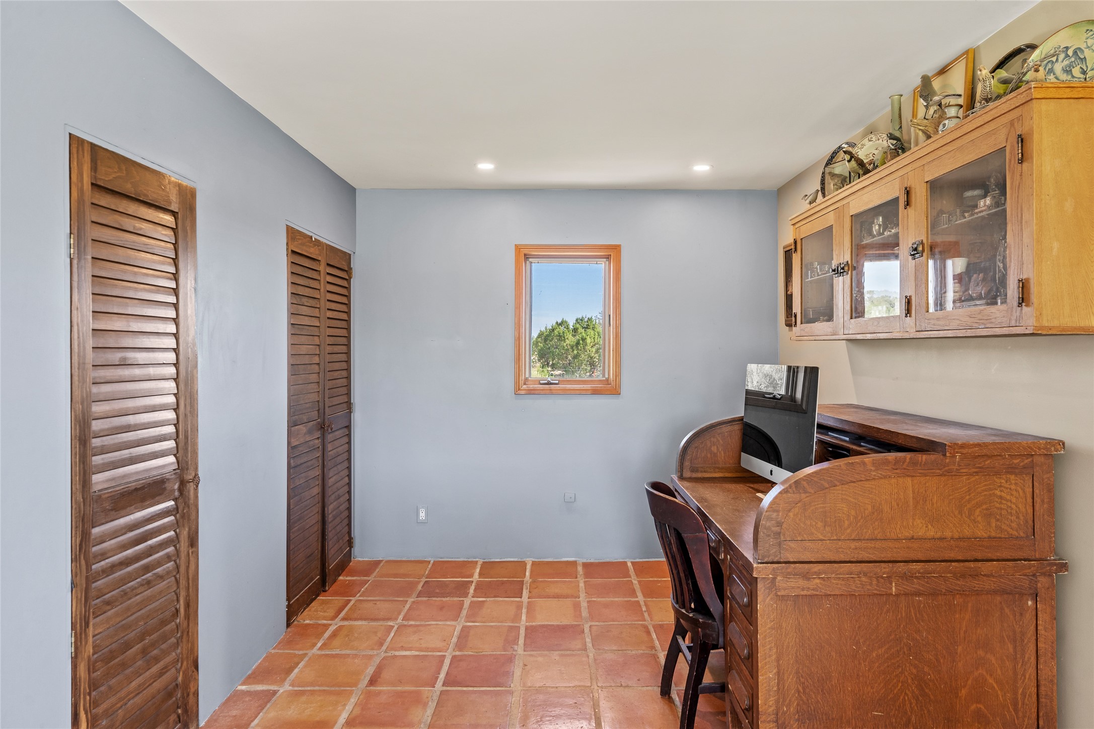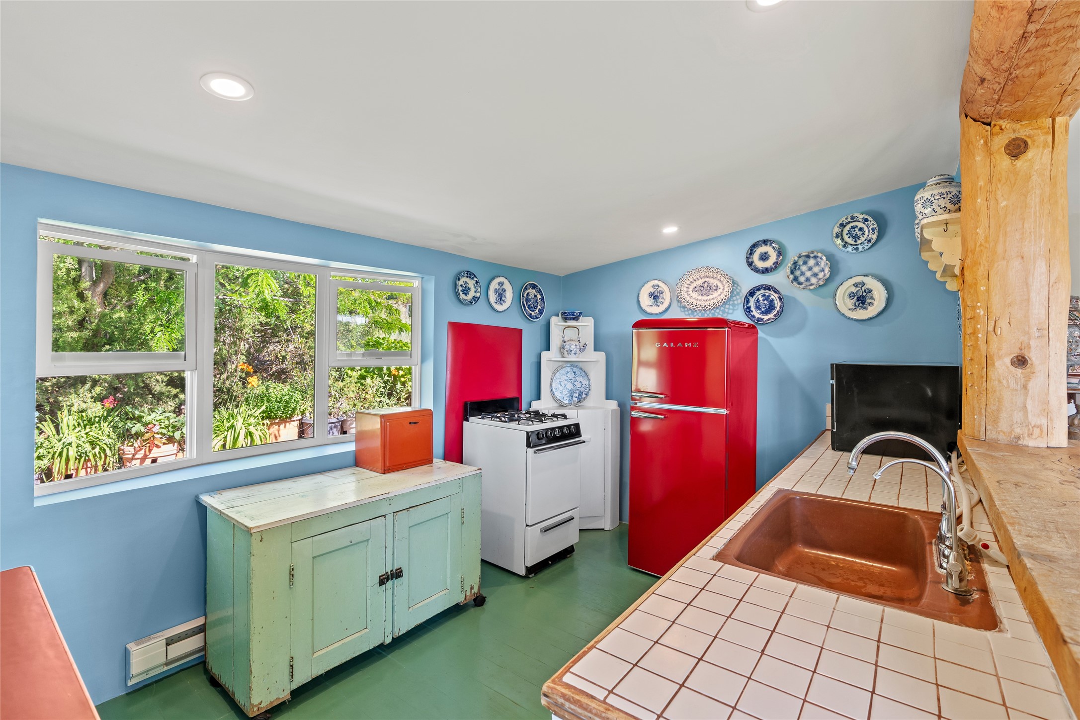 So much to offer! One bed, one bath home plus one bed, one bath detached studio on nearly 10 acres. This versatile property could function as a multi-generational home, produce rental income, or offer an excellent space for working artists, with end of the road privacy, excellent outdoor spaces, and mature gardens. This home has a private well and a grid-tied solar array and has extremely low utility builds. Lovingly cared for and updated, with Santa Fe style combined with modern touches, and significant recent work, including newly remodeled bathrooms and newer metal roofs. An upstairs deck off of the studio takes in impressive views, while the primary home is anchored in lush gardens.